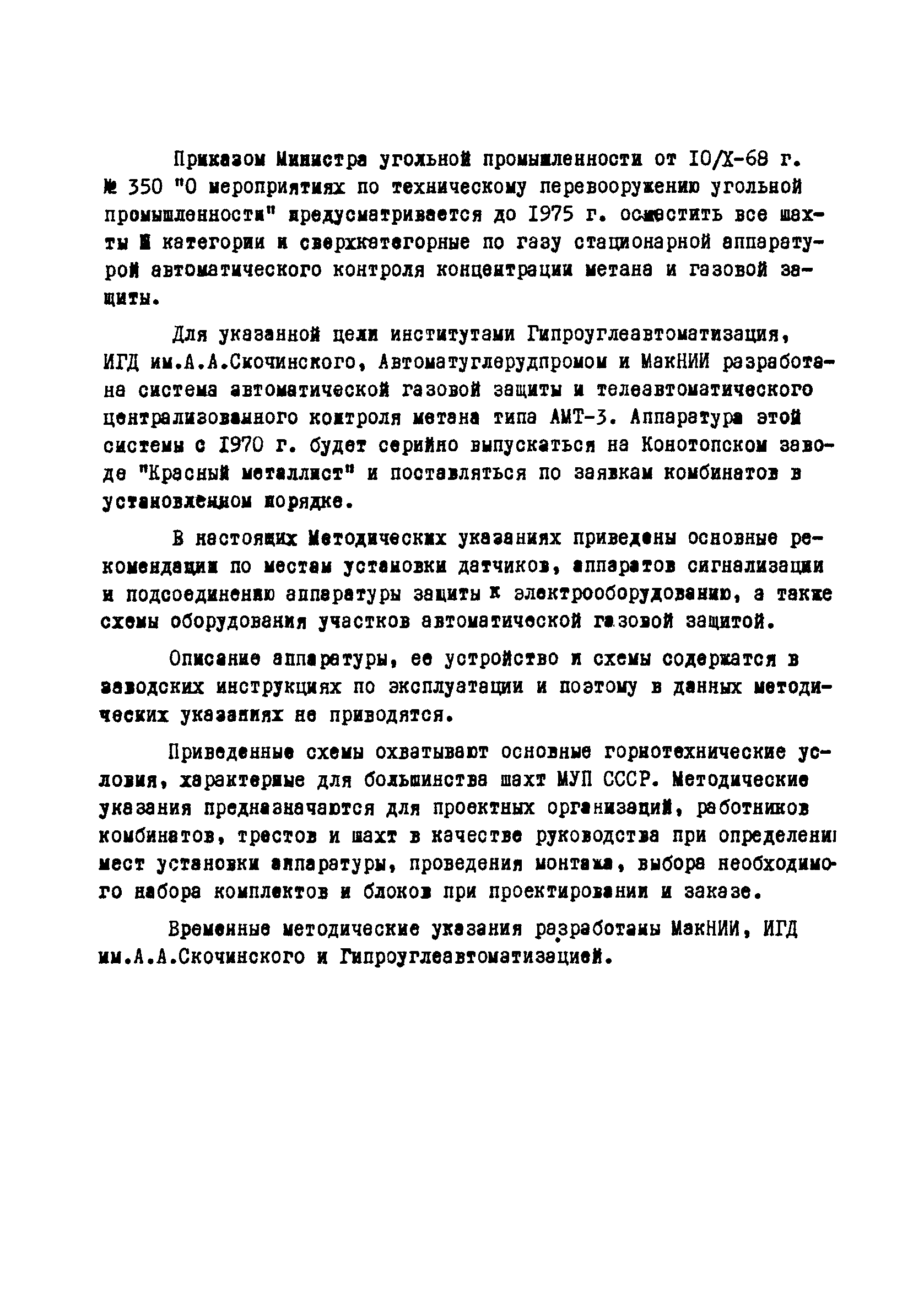 | Название рус.: | Временные методические указания по оборудованию шахт автоматическими системами газовой защиты на базе анализатора АМТ-3 |
