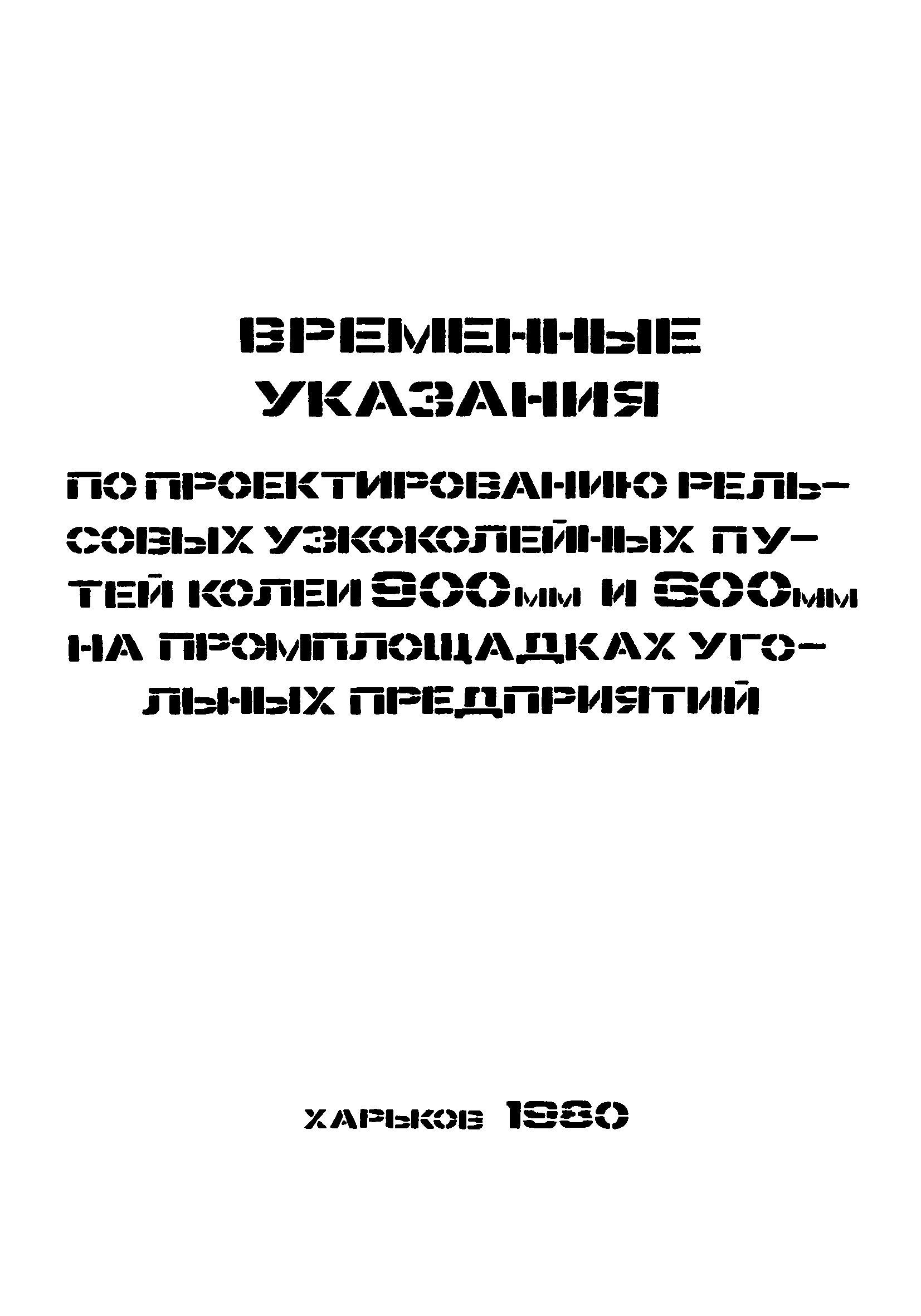 | Название рус.: | Временные указания по проектированию рельсовых узкоколейных путей колеи 900 мм и 600 мм на промплощадках угольных предприятий |