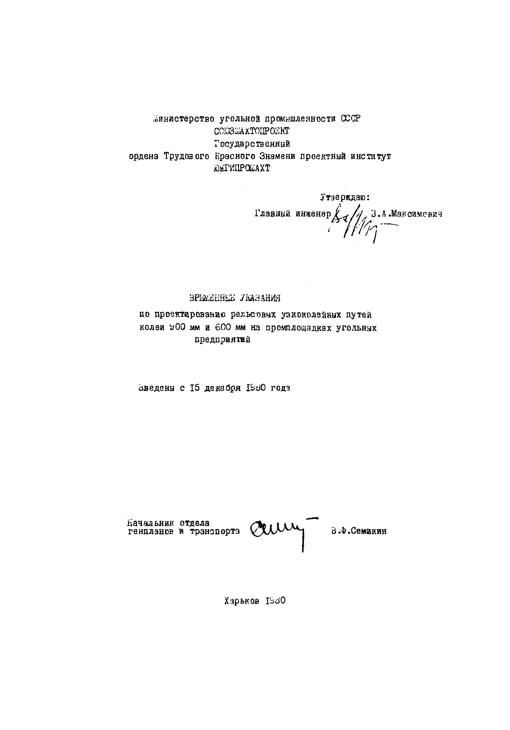 | Утверждён: | Южгипрошахт Минуглепрома СССР