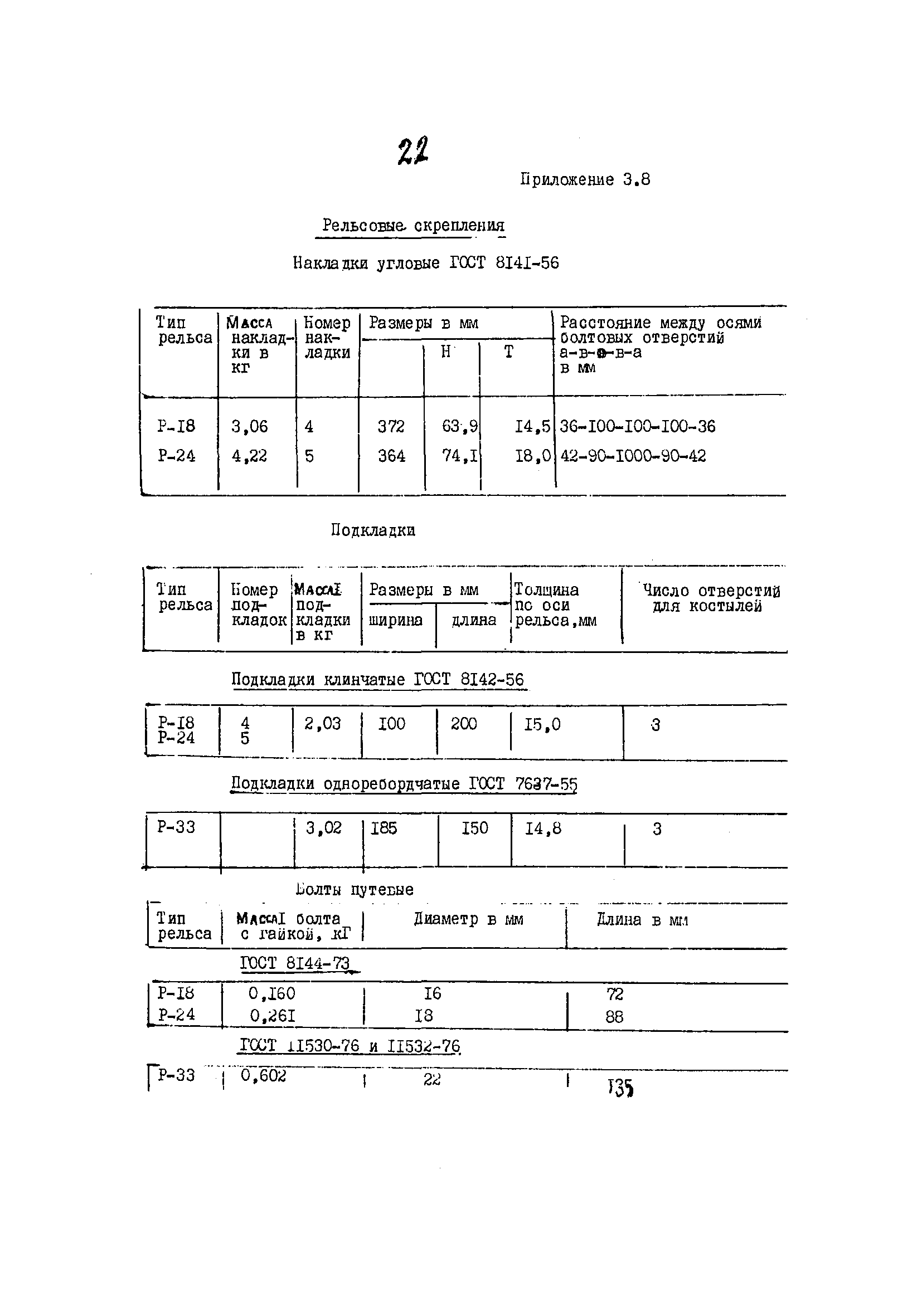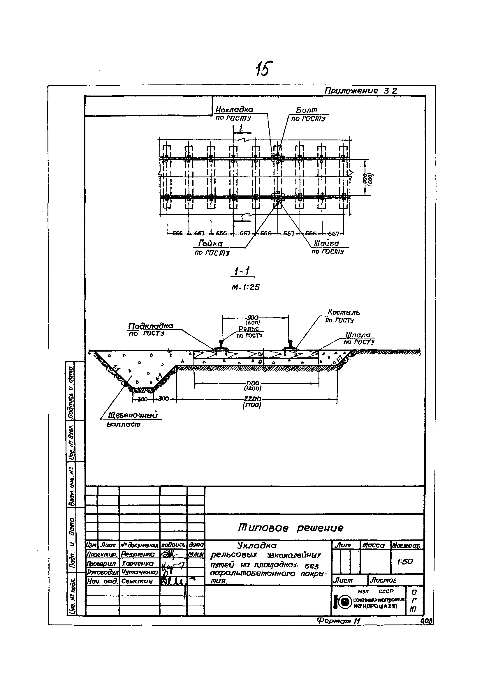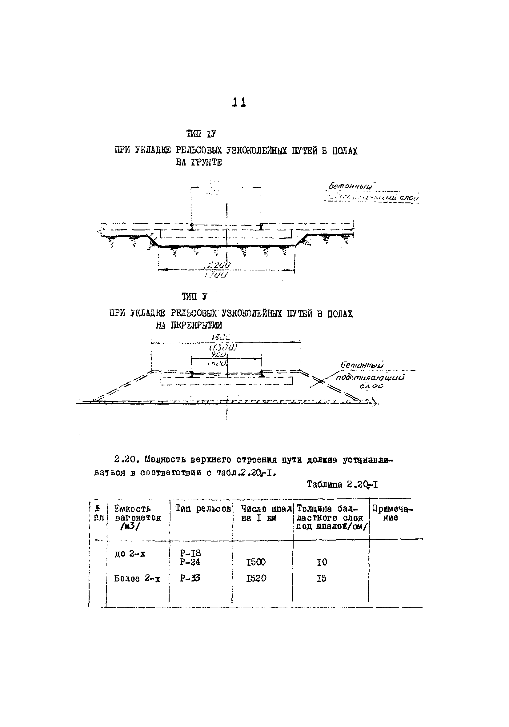 | Оглавление: | 1. Общие положения 2. Нормы проектирования Приложение 1. Типовое решение. Укладка рельсовых узкоколейных путей на площадках с асфальтированным покрытием Приложение 2. Типовое решение. Укладка рельсовых узкоколейных путей на площадках с без асфальтобетонного покрытия Приложение 3. Типовое решение. Укладка рельсовых узкоколейных путей с открытым балластным слоем Приложение 4. Типовое решение. Укладка рельсовых узкоколейных путей в полах зданий на грунте Приложение 5. Типовое решение. Укладка рельсовых узкоколейных путей в полах зданий на перекрытии Приложение 6. Количество укладочных материалов на 1 км пути Приложение 7. Рельсы Приложение 8. Рельсовые скрепления Приложение 9. Шпалы деревянные Приложение 10. Шпалы железобетонные Приложение 11. Характеристика стрелочных переводов и съездов для колей 900 мм и 600 мм Приложение 12. Характеристика подвижного состава рельсовых узкоколейных путей |