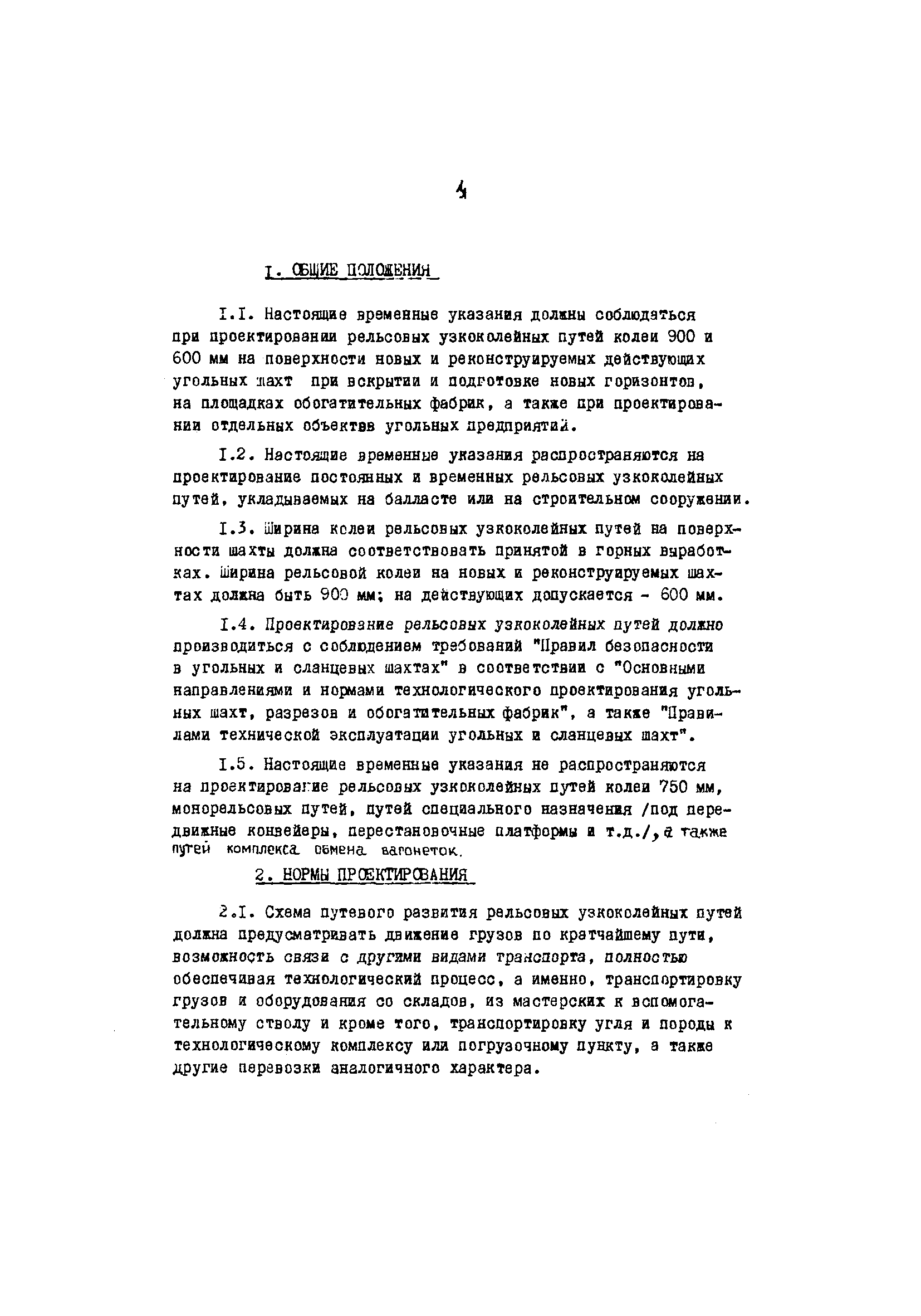 | Область применения: | Временные указания должны соблюдаться при проектировании рельсовых узкоколейных путей колеи 900 и 600 мм на поверхности новых и реконструируемых действующих угольных шахт при вскрытии и подготовке новых горизонтов, на площадках обогатительных фабрик, а также при проектировании отдельных объектов угольных предприятий |