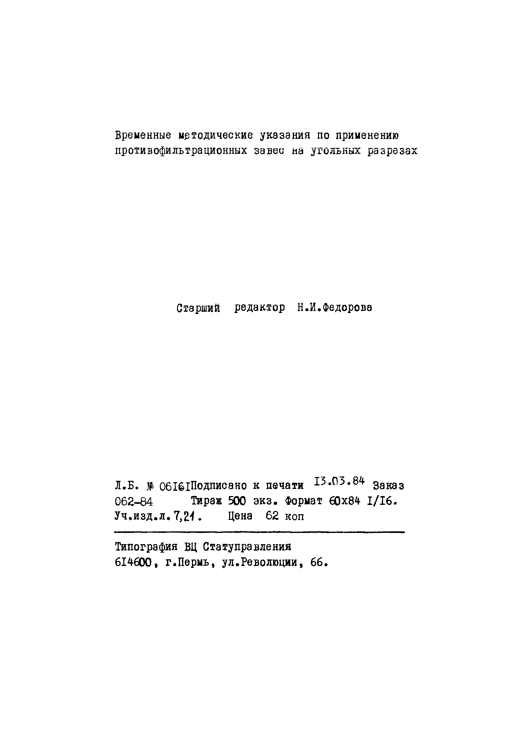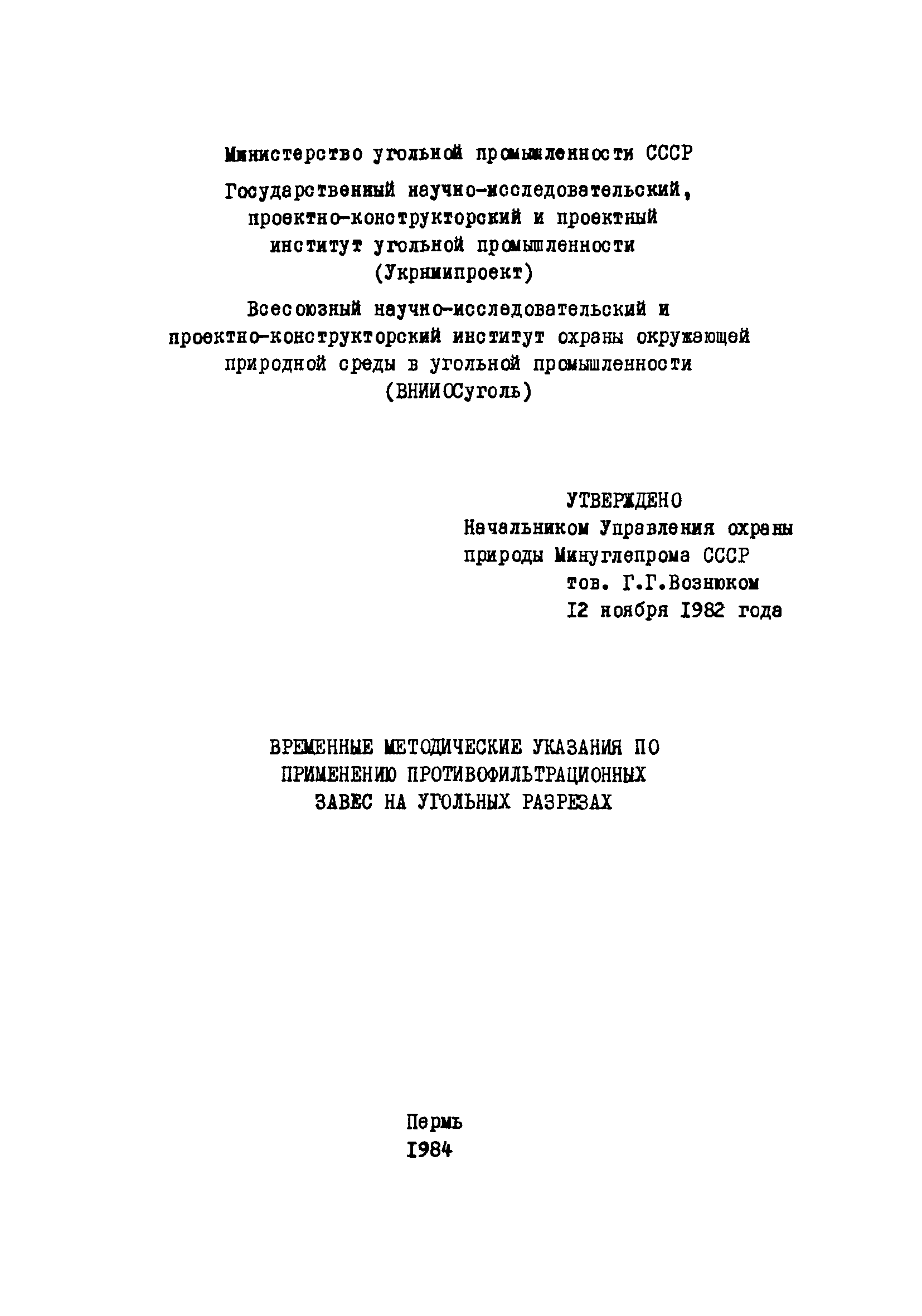 | | Утверждён: | 12.11.1982 Управление охраны природы Минуглепрома СССР