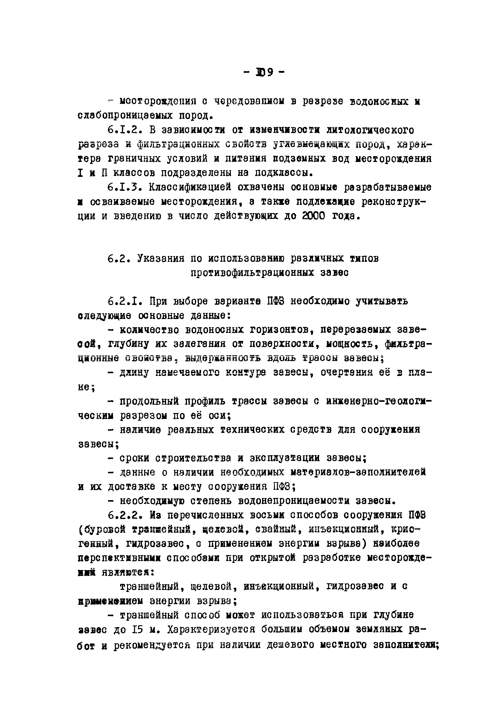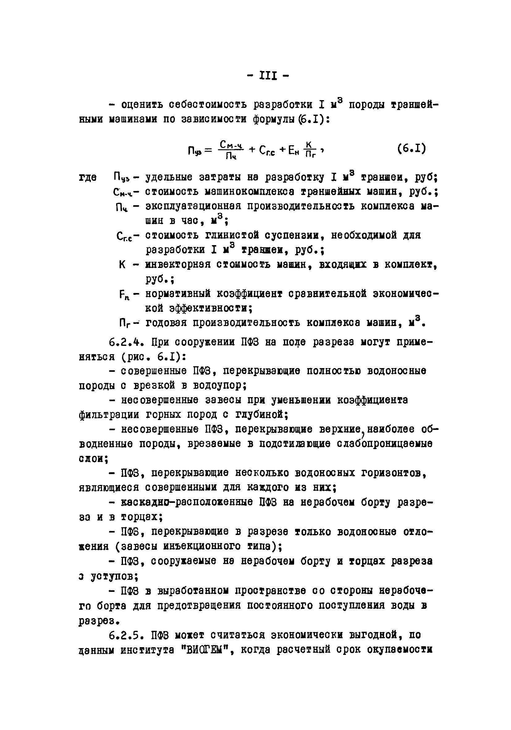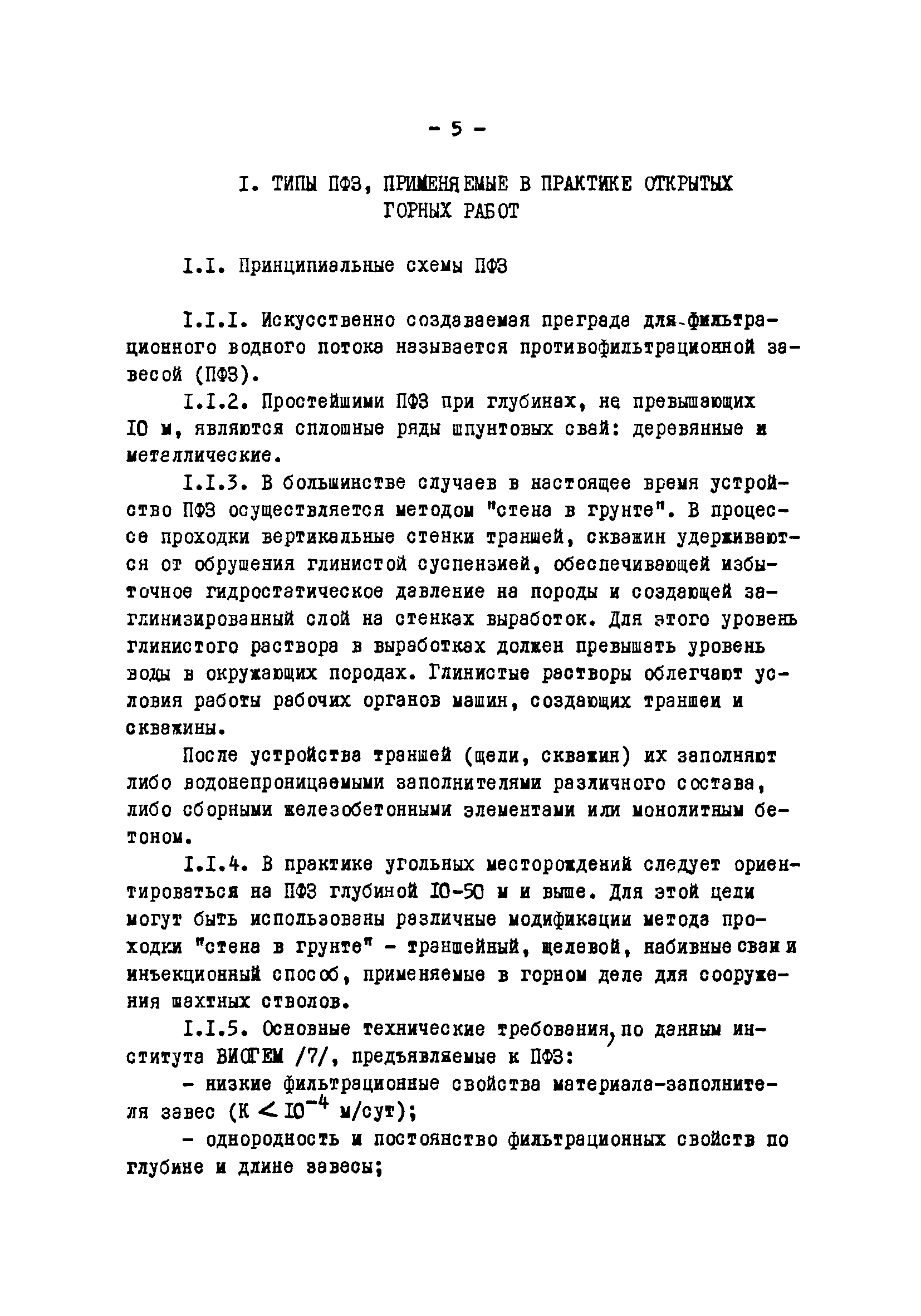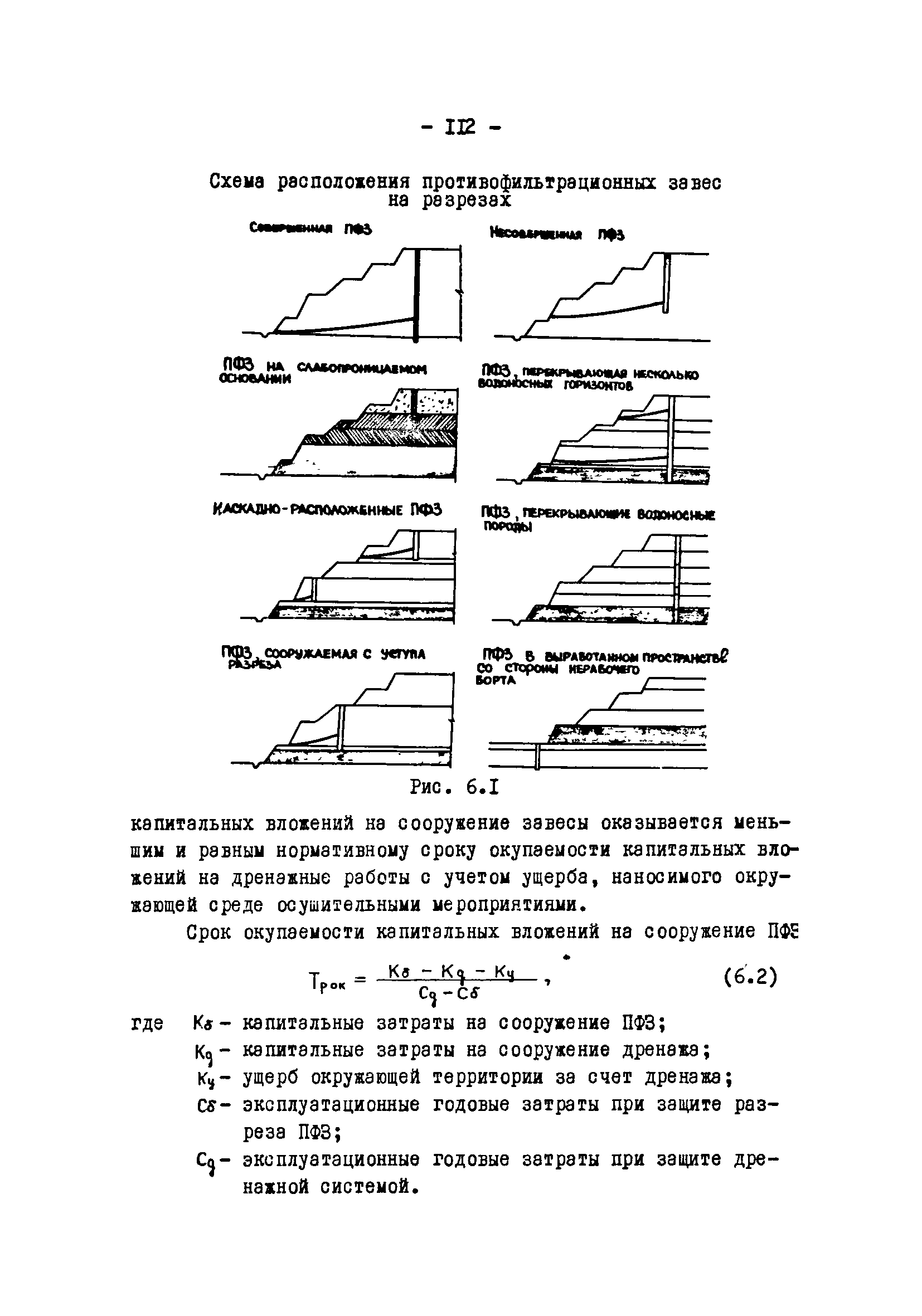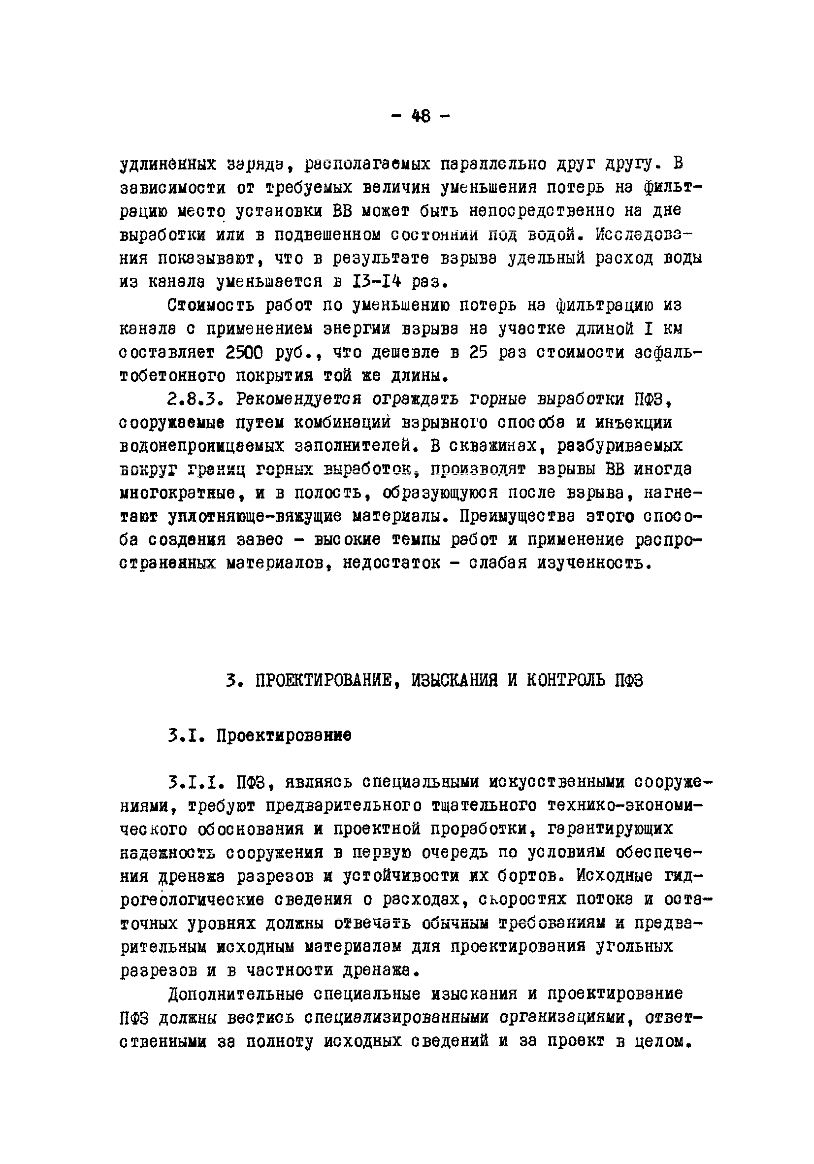 Временные методические указания по применению противофильтрационных завес на угольных разрезах| Статус: | справочные материалы, мп, тпр | | Название рус.: | Временные методические указания по применению противофильтрационных завес на угольных разрезах | | Дата добавления в базу: | 01.01.2018 | | Дата актуализации: | 01.01.2021 | | Область применения: | В документе содержатся сведения по использованию противофильтрационных завес, оцениваются техника и технология их сооружения различными способами, рассматриваются факторы, влияющие на создание завес, приводятся расчеты и рекомендации по использованию противофильтрационных завес на угольных разрезах. | | Оглавление: | 1 Типы ПФЗ, применяемые в практике открытых горных пород 1.1 Принципиальные схемы 1.2 Материалы водоудерживающих заполнителей 2 Технические средства и технологические особенности сооружения 2.1 ПФЗ, сооружаемые буровым способом 2.2 Свайный метод сооружения 2.3 Траншейные 2.4 Щелевые 2.5 Инъекционные 2.6 Криогенные 2.7 Гидрозавесы и пневмозавесы 2.8 ПФЗ, сооружаемые взрывным способом 3 Проектирование, изыскания и контроль 3.1 Проектирование 3.2 Исходные данные, подлежащие учету при сооружении 3.3 Контроль за сооружением и эксплуатацией 4 Гидрогеологические расчеты противофильтрационных завес 4.1 Типовые схемы расчетов 4.2 Расчет линейных и полузамкнутых 4.3 Расчет кольцевых 4.4 Расчет несовершенных 4.5 Расчет в слоистых толщах 4.6 Расчет инъекционных завес 4.7 Моделирование 5 Оценка условий устойчивости при сооружении ПФЗ 5.1 Расчеты напряжённого состояния 5.2 Расчеты устойчивости 5.3 Оценка влияния на устойчивость откосов 6 Рекомендации по применению ПФЗ на угольных разрезах 6.1 Классификация угольных месторождений с открытым способом отработки по условиям применения ПФЗ 6.2 Указания по использованию различных типов противофильтрационных завес Приложение. Примеры расчета ПФЗ Список использованных источников | | Разработан: | УкрНИИпроект ВНИИОСуголь
