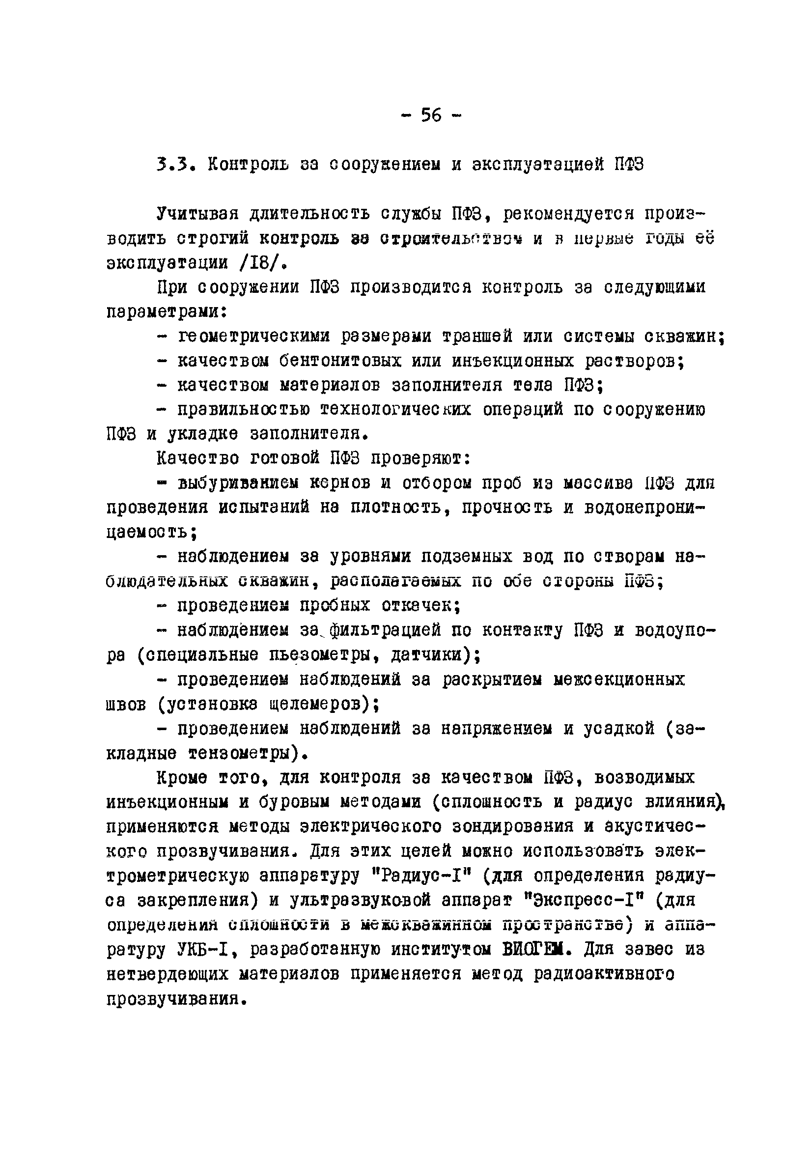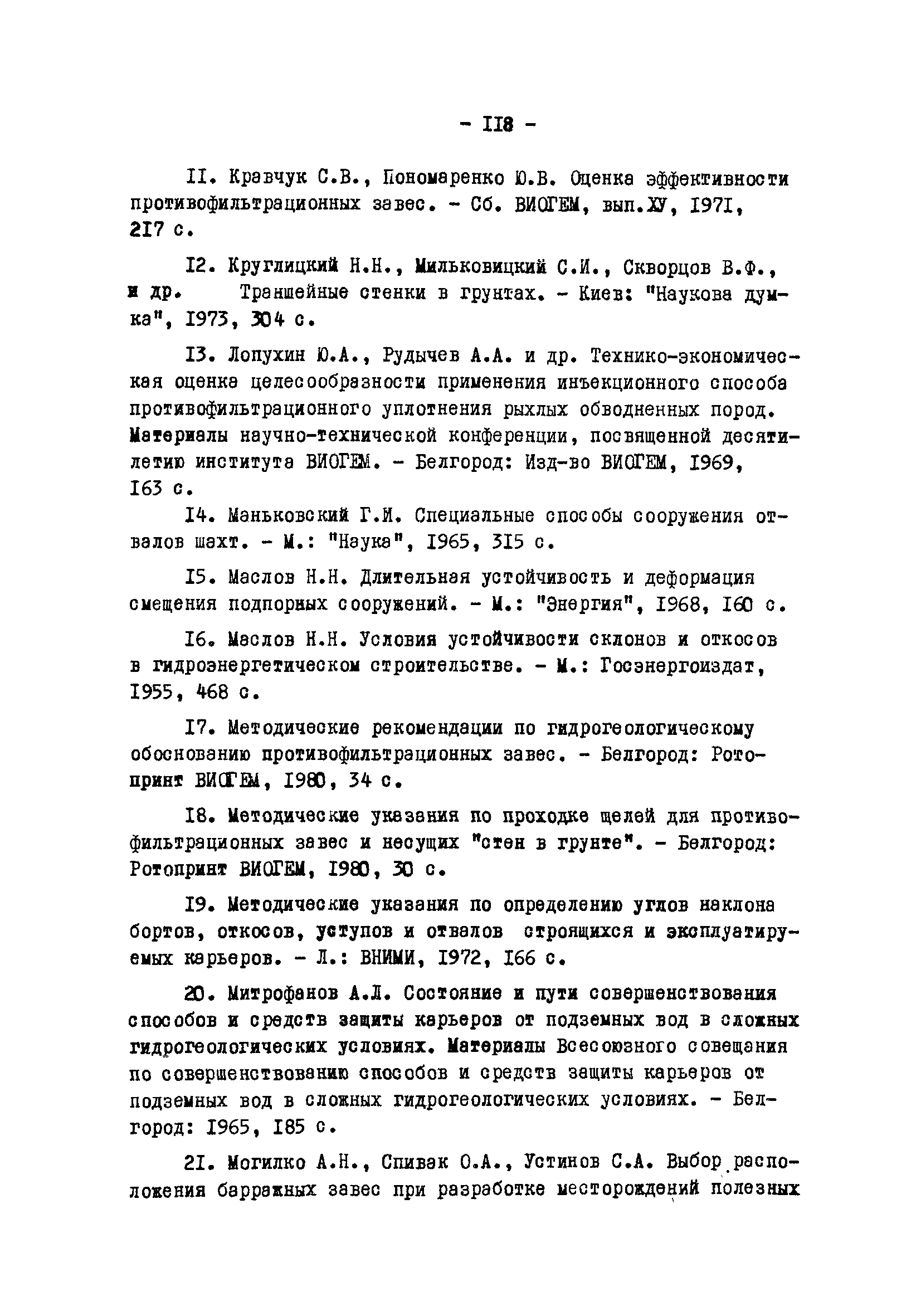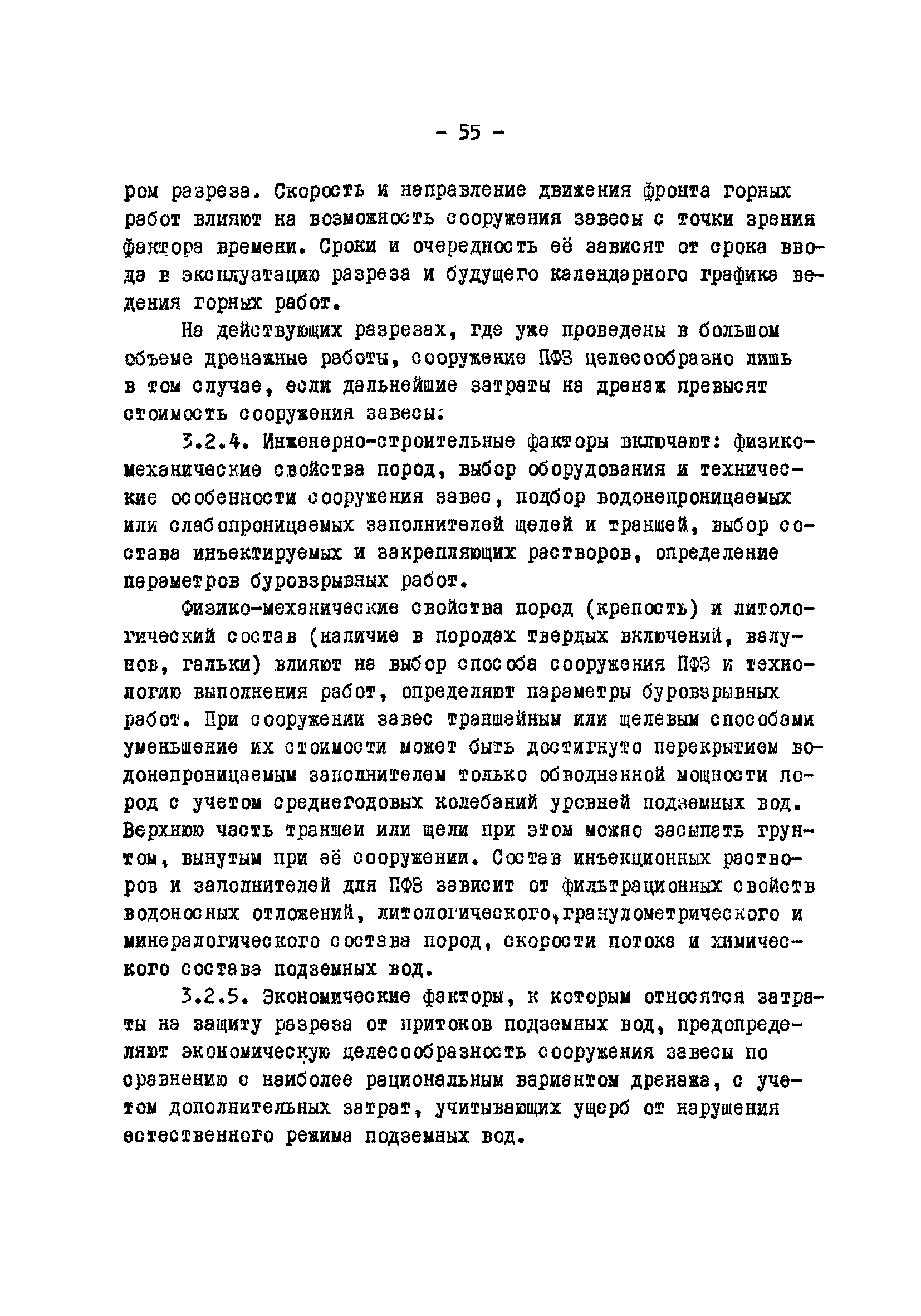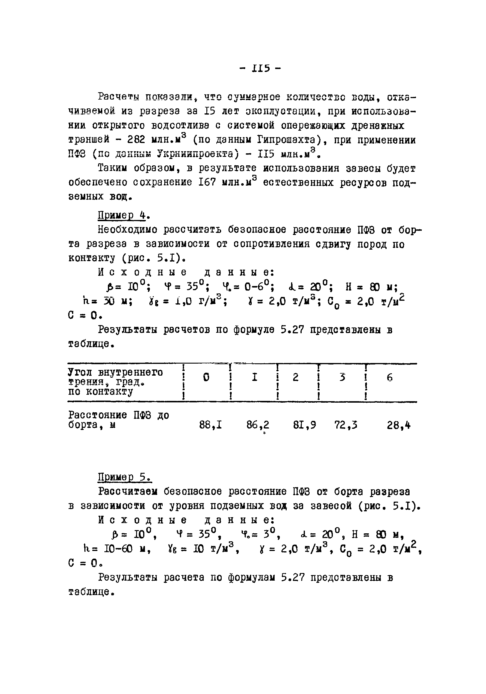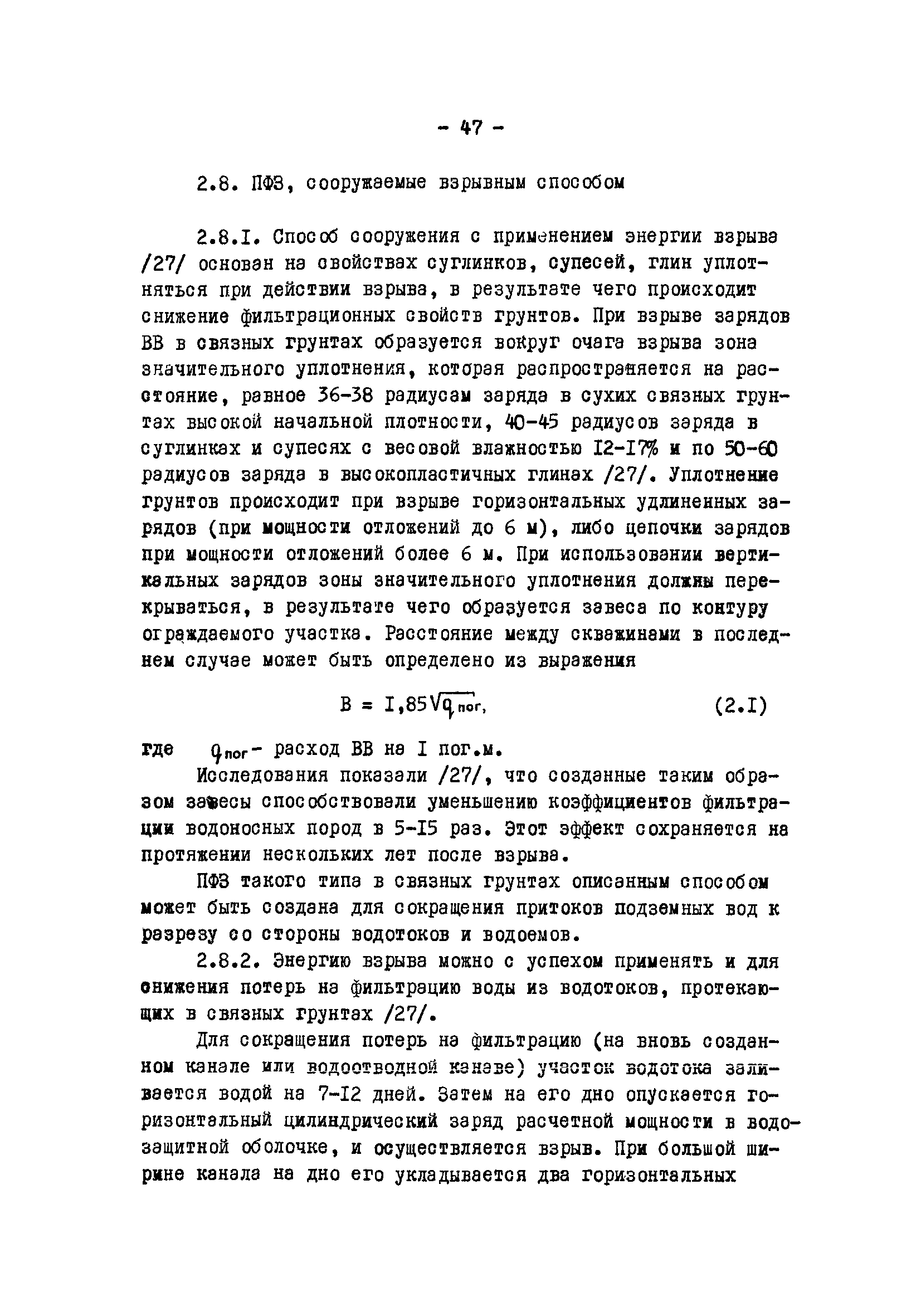 Временные методические указания по применению противофильтрационных завес на угольных разрезах| Статус: | справочные материалы, мп, тпр | | Название рус.: | Временные методические указания по применению противофильтрационных завес на угольных разрезах | | Дата добавления в базу: | 01.01.2018 | | Дата актуализации: | 01.01.2021 | | Область применения: | В документе содержатся сведения по использованию противофильтрационных завес, оцениваются техника и технология их сооружения различными способами, рассматриваются факторы, влияющие на создание завес, приводятся расчеты и рекомендации по использованию противофильтрационных завес на угольных разрезах. | | Оглавление: | 1 Типы ПФЗ, применяемые в практике открытых горных пород 1.1 Принципиальные схемы 1.2 Материалы водоудерживающих заполнителей 2 Технические средства и технологические особенности сооружения 2.1 ПФЗ, сооружаемые буровым способом 2.2 Свайный метод сооружения 2.3 Траншейные 2.4 Щелевые 2.5 Инъекционные 2.6 Криогенные 2.7 Гидрозавесы и пневмозавесы 2.8 ПФЗ, сооружаемые взрывным способом 3 Проектирование, изыскания и контроль 3.1 Проектирование 3.2 Исходные данные, подлежащие учету при сооружении 3.3 Контроль за сооружением и эксплуатацией 4 Гидрогеологические расчеты противофильтрационных завес 4.1 Типовые схемы расчетов 4.2 Расчет линейных и полузамкнутых 4.3 Расчет кольцевых 4.4 Расчет несовершенных 4.5 Расчет в слоистых толщах 4.6 Расчет инъекционных завес 4.7 Моделирование 5 Оценка условий устойчивости при сооружении ПФЗ 5.1 Расчеты напряжённого состояния 5.2 Расчеты устойчивости 5.3 Оценка влияния на устойчивость откосов 6 Рекомендации по применению ПФЗ на угольных разрезах 6.1 Классификация угольных месторождений с открытым способом отработки по условиям применения ПФЗ 6.2 Указания по использованию различных типов противофильтрационных завес Приложение. Примеры расчета ПФЗ Список использованных источников | | Разработан: | УкрНИИпроект ВНИИОСуголь