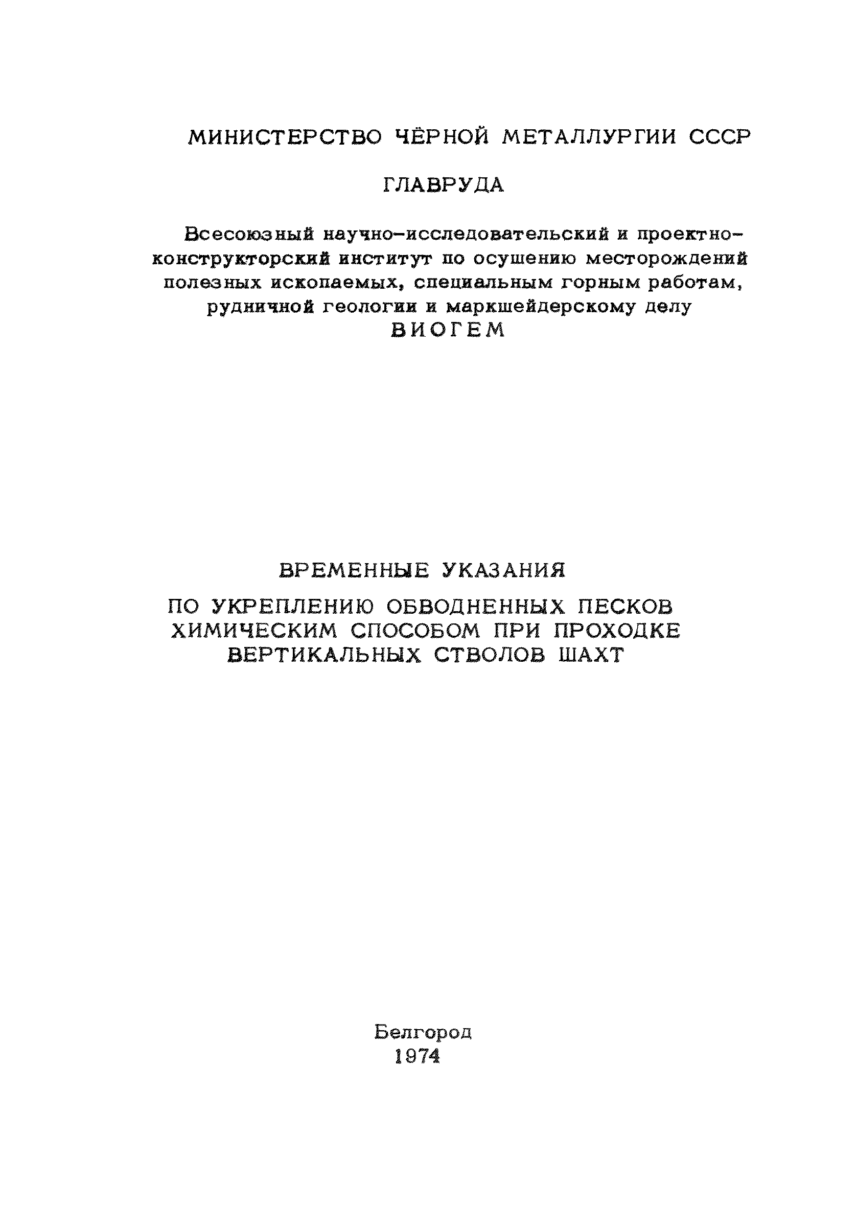 | Название рус.: | Временные указания по укреплению обводненных песков химическим способом при проходке вертикальных стволов шахт |