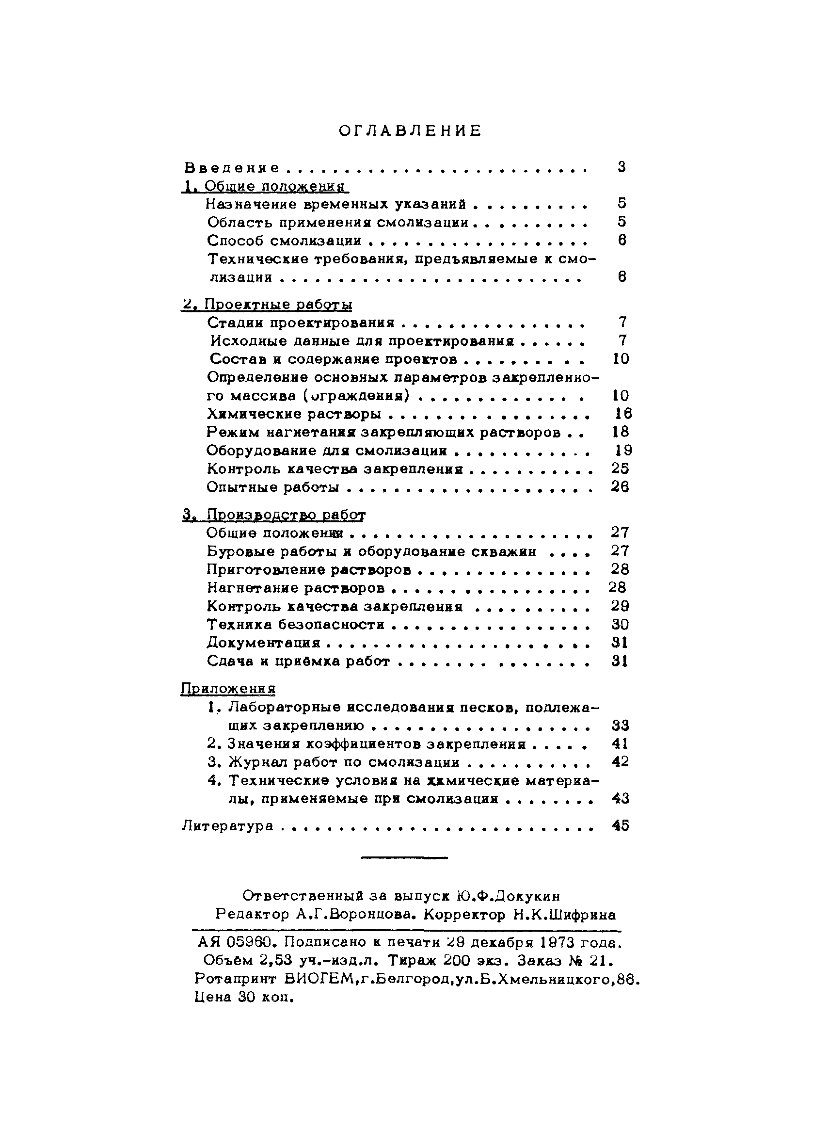| Оглавление: | Введение 1 Общие положения Назначение временных указаний Область применения смолизации Способ смолизации Технические требования, предъявляемые к смолизации 2 Проектные работы Стадии проектирования Исходные данные для проектирования Состав и содержание проектов Определение основных параметров закрепленного массива (ограждения) Химические растворы Режим нагнетания закрепляющих растворов Оборудование для смолизации Контроль качества закрепления Опытные работы 3 Производство работ Общие положения Буровые работы и оборудование скважин Приготовление растворов Нагнетание растворов Контроль качества закрепления Техника безопасности Документация Сдача и приемка работ Приложение 1. Лабораторные исследования песков, подлежащих закреплению Приложение 2. Значения коэффициентов закрепления Приложение 3. Журнал работ по смолизации Приложение 4. Технические условия на химические материалы, применяемые при смолизации Литература |