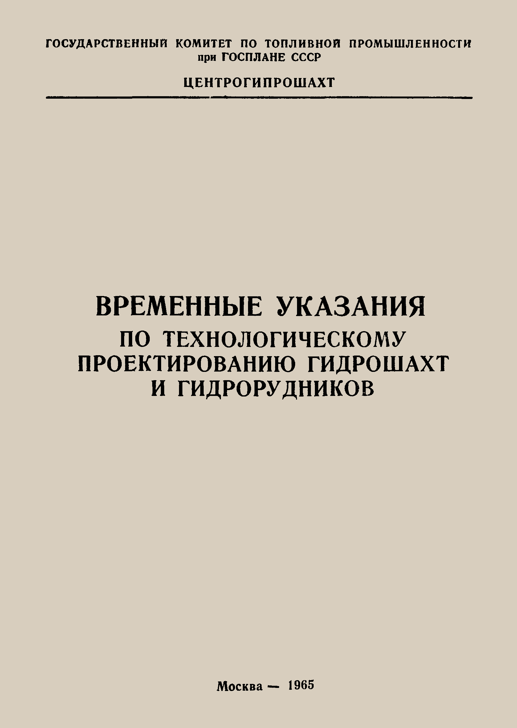 | Название рус.: | Временные указания по технологическому проектированию гидрошахт и гидрорудников |