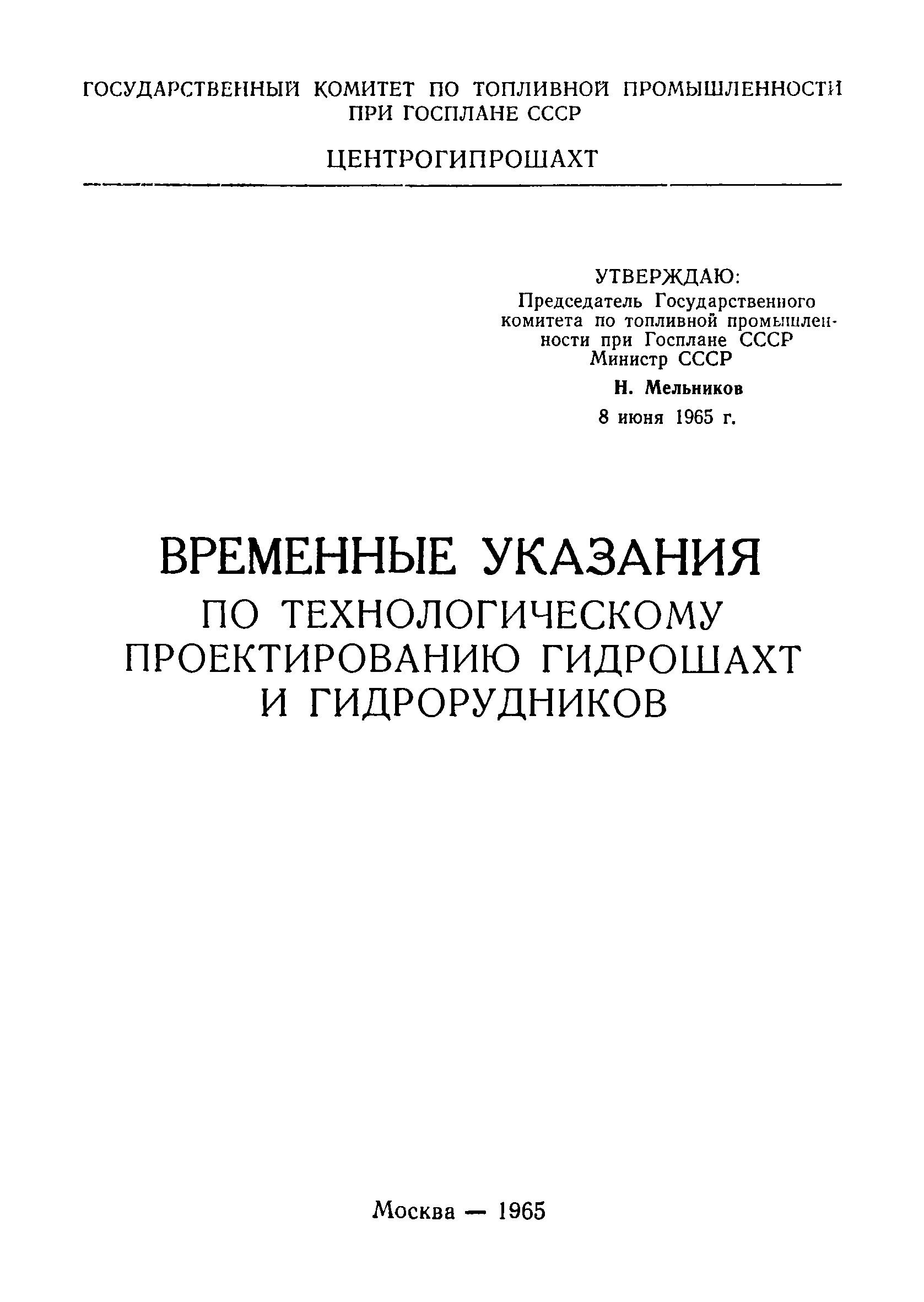 | Утверждён: | 08.06.1965 Государственный комитет по топливной промышленности при Госплане СССР