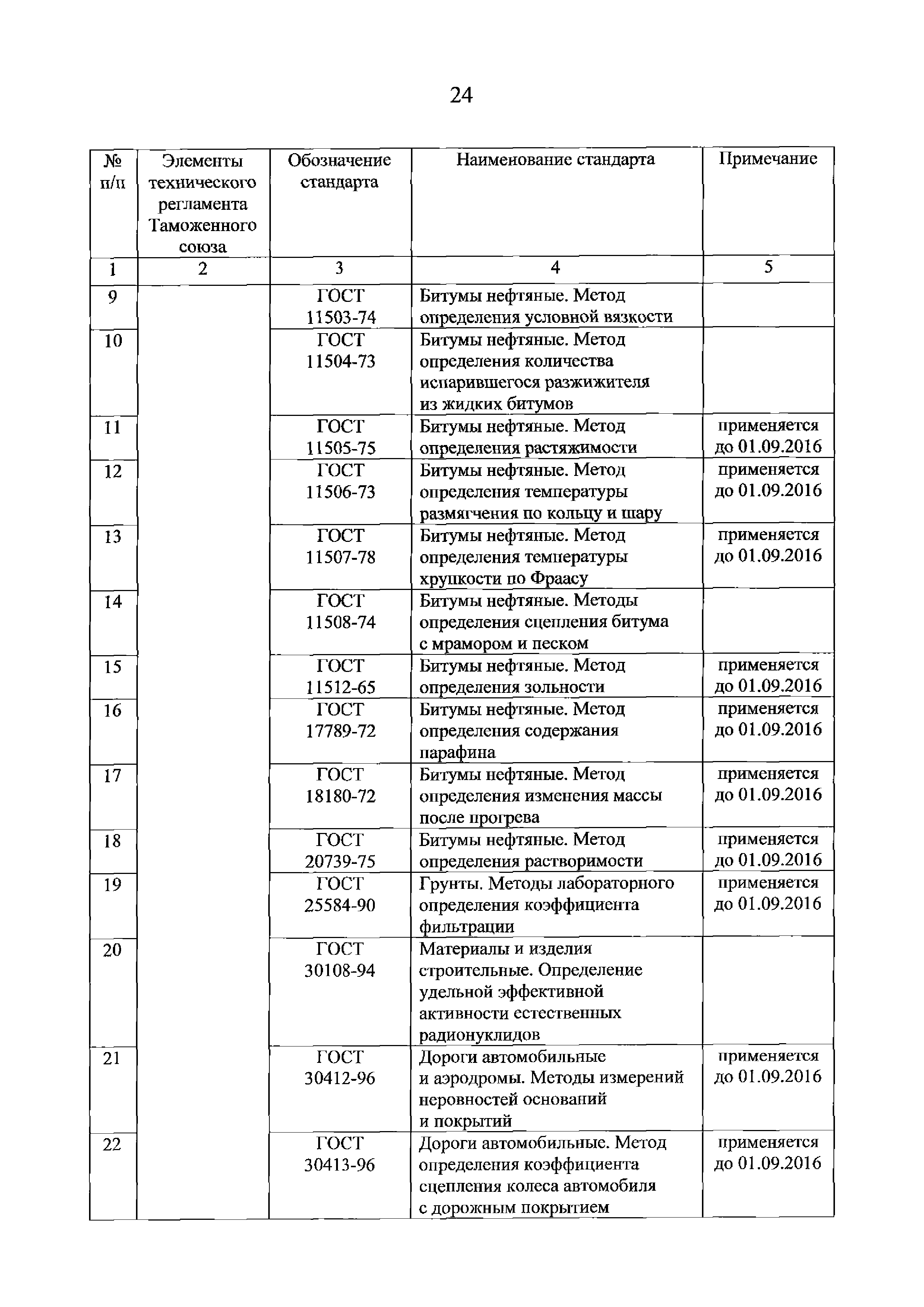 | Название рус.: | Перечень стандартов, содержащих правила и методы исследований (испытаний) и измерений, в том числе правила отбора образцов, необходимые для применения и исполнения требований технического регламента Таможенного союза "Безопасность автомобильных дорог" (ТР ТС 014/2011) и осуществления оценки соответствия объектов технического регулирования. Редакция 3 |
