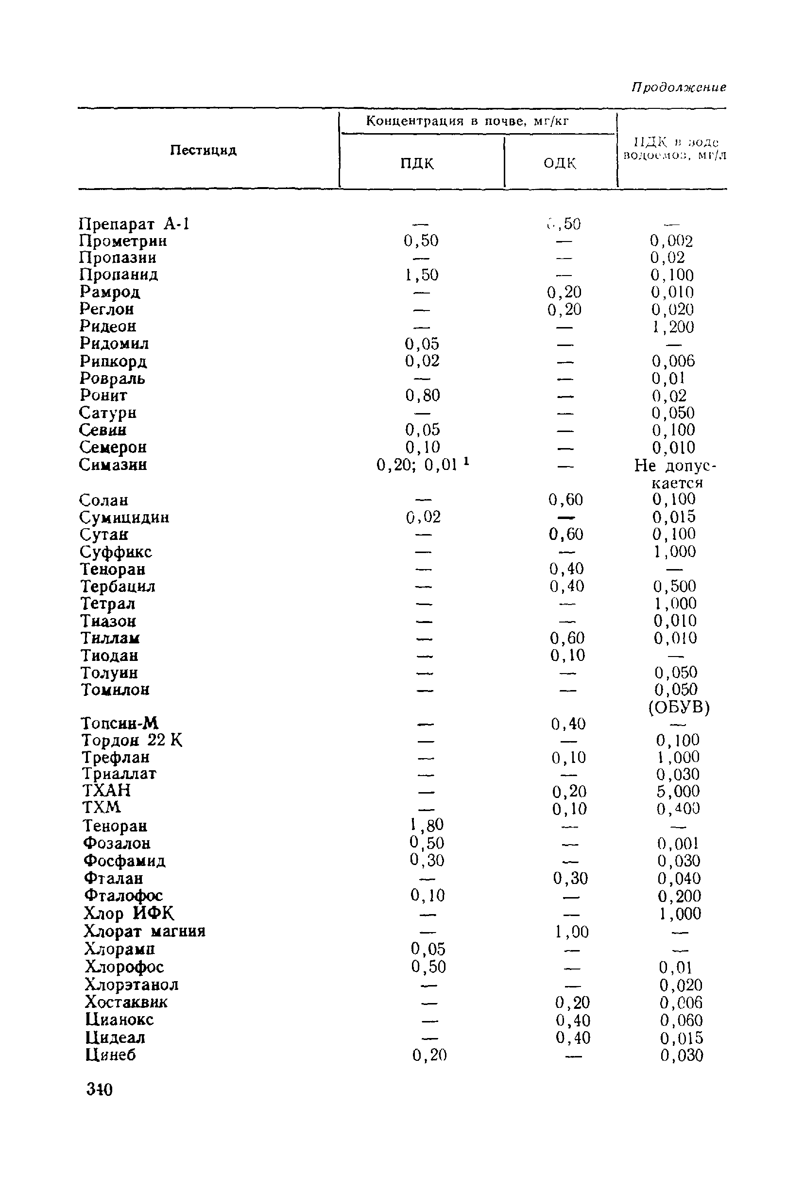 Санитарно-гигиенические нормы содержания пестицидов в продуктах питания, воздухе, воде и