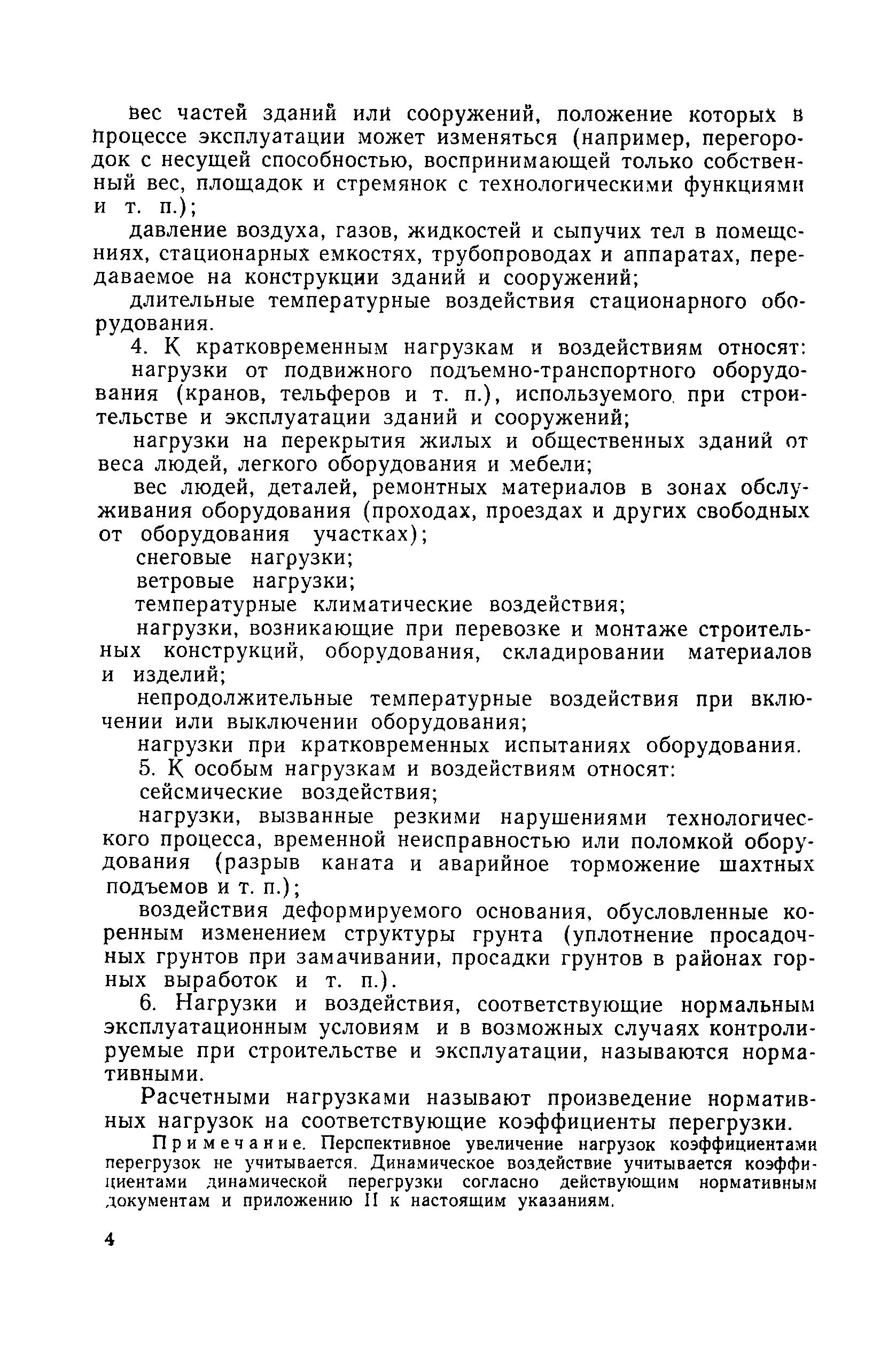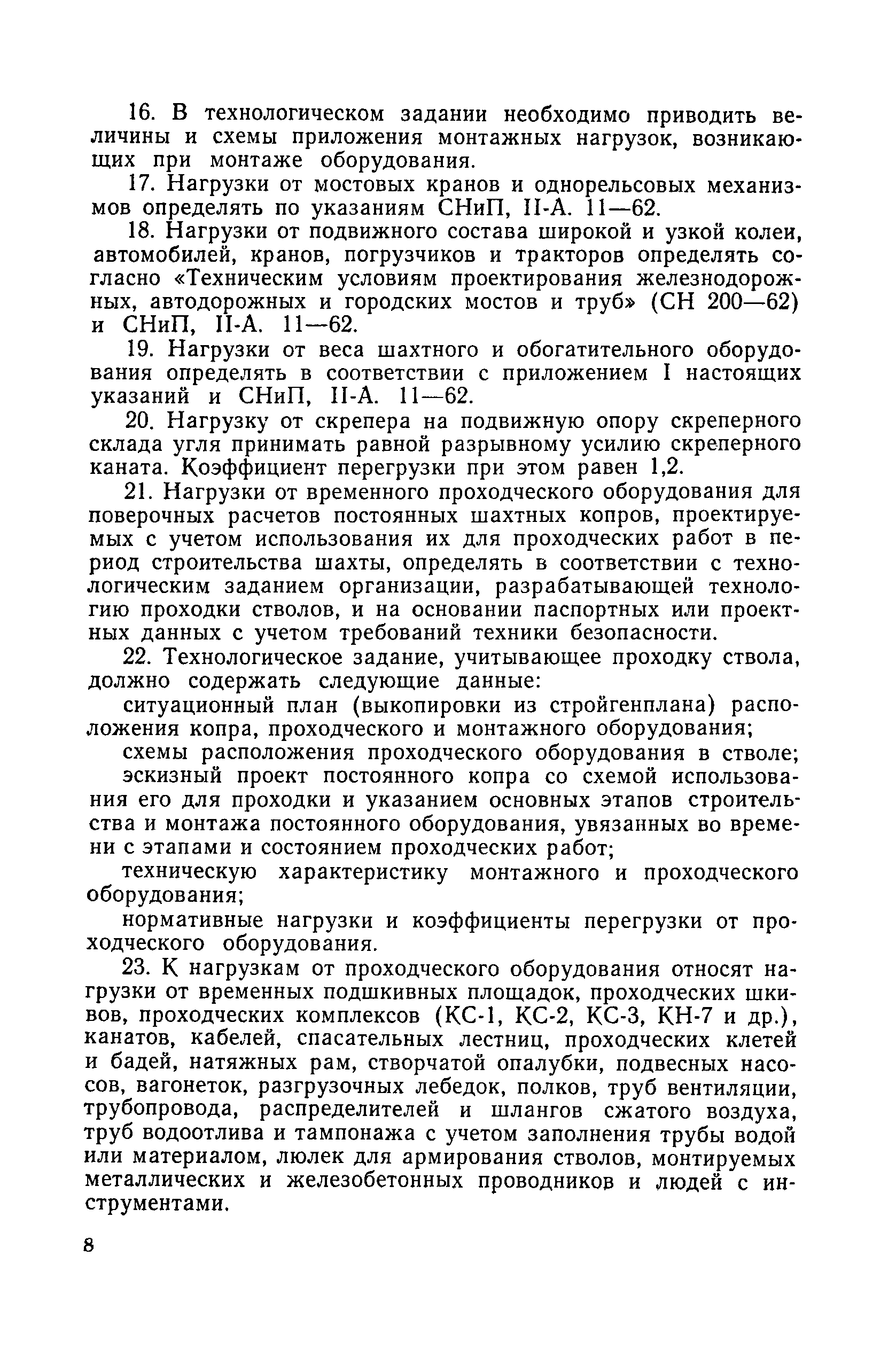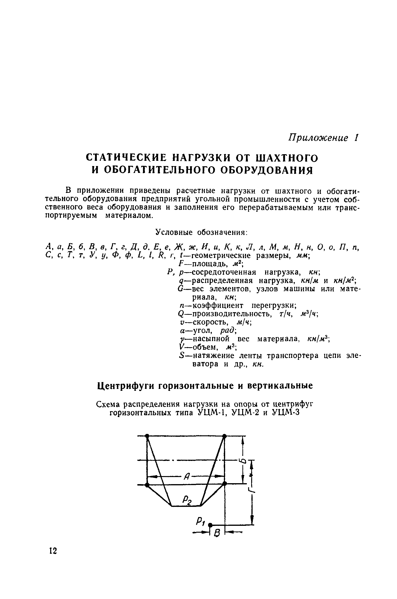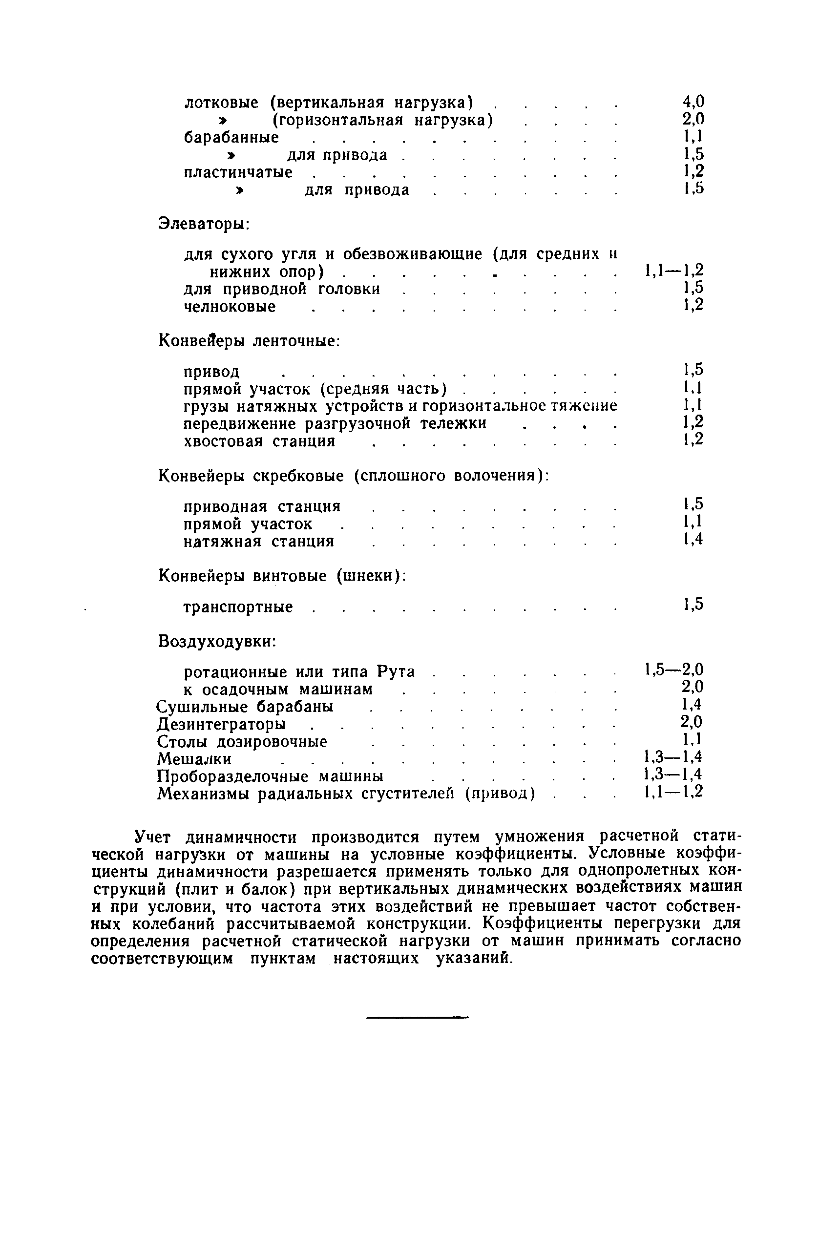 | Оглавление: | 1. Общие положения 2. Временные нагрузки 3. Динамические нагрузки 4. Расчетные сочетания нагрузок Приложение 1. Статические нагрузки от шахтного и обогатительного оборудования Приложение 2. Динамические нагрузки от машин |