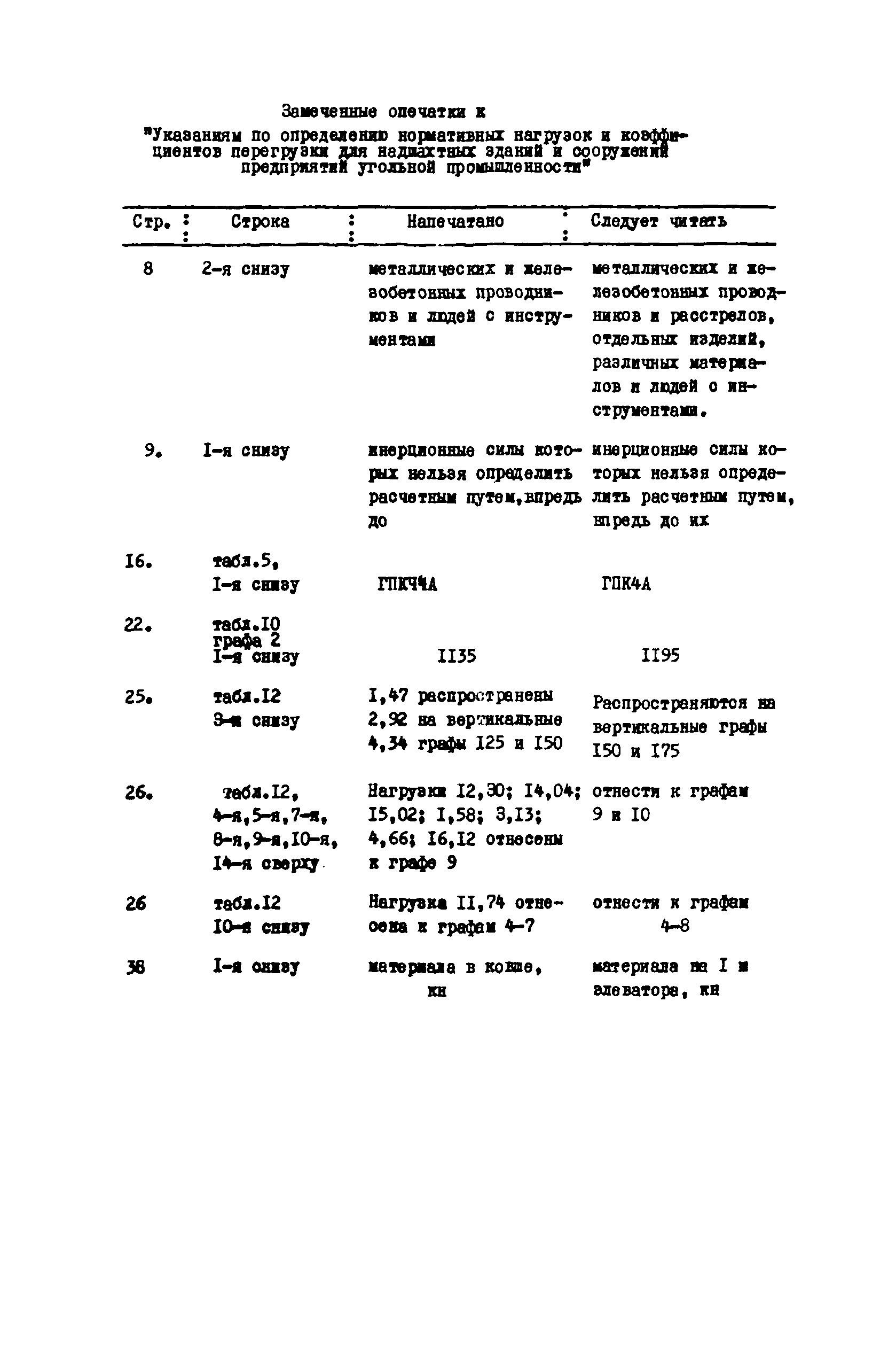 | Название рус.: | Указания по определению нормативных нагрузок и коэффициентов перегрузки для надшахтных зданий и сооружений предприятий угольной промышленности |