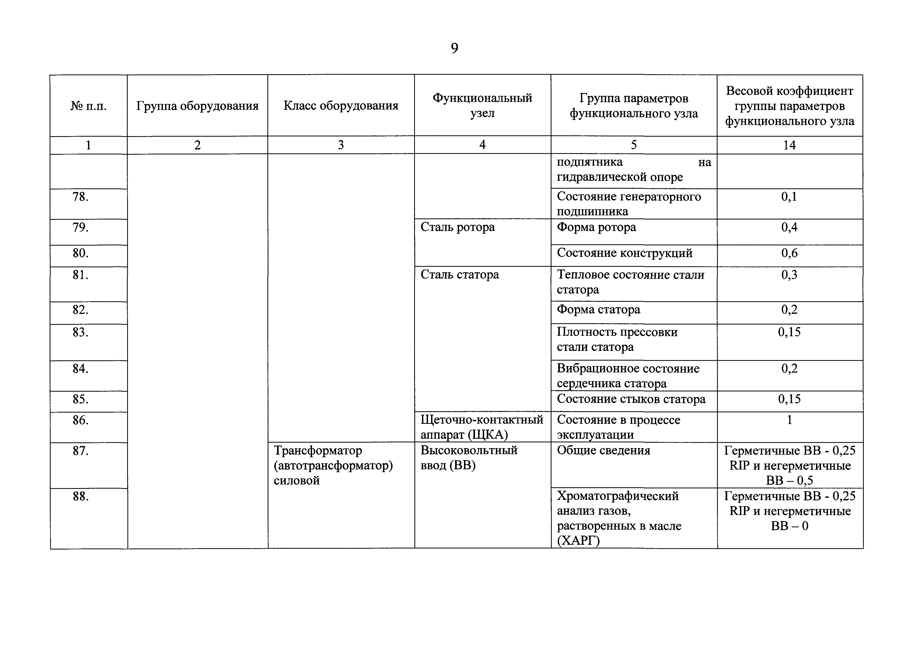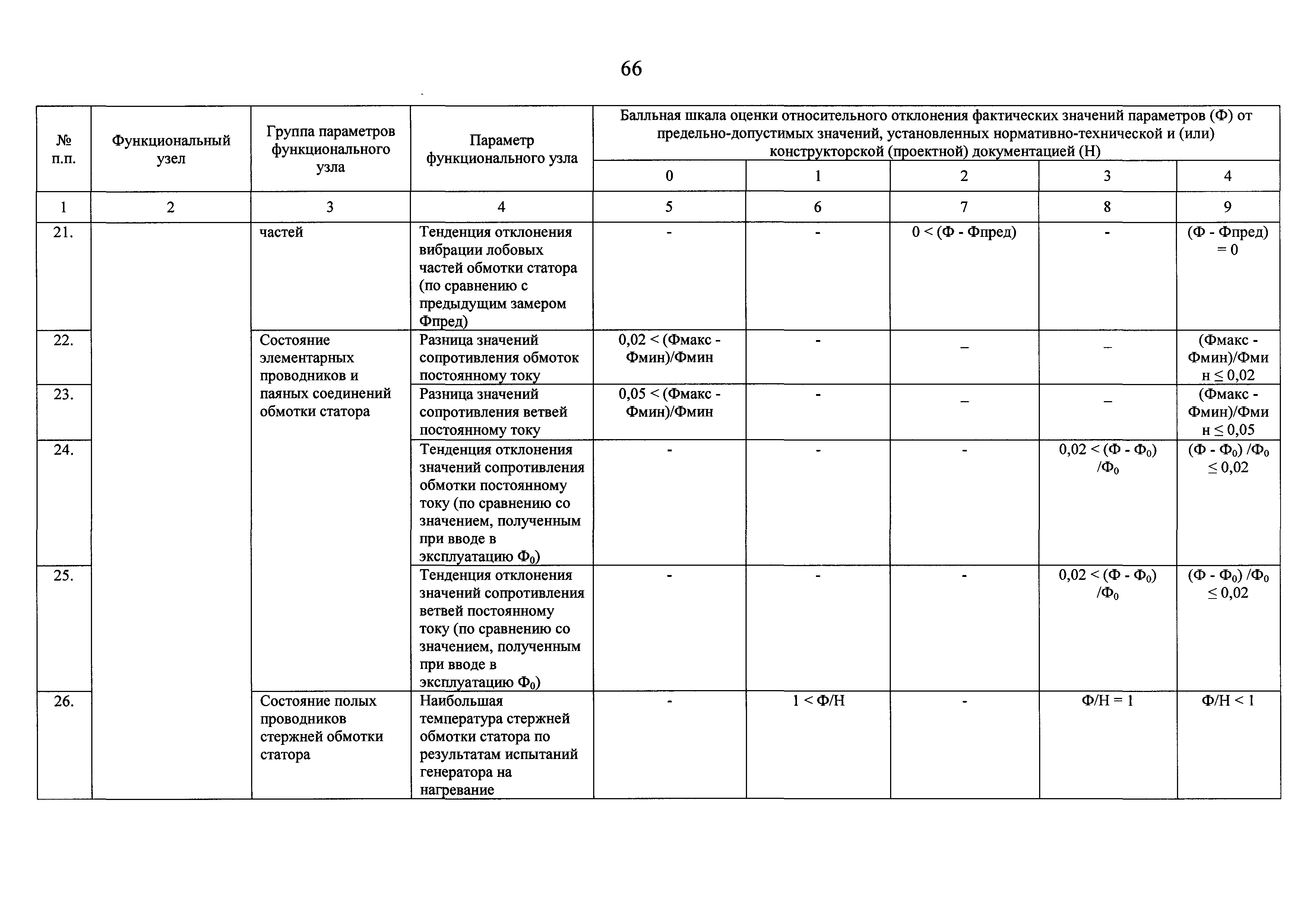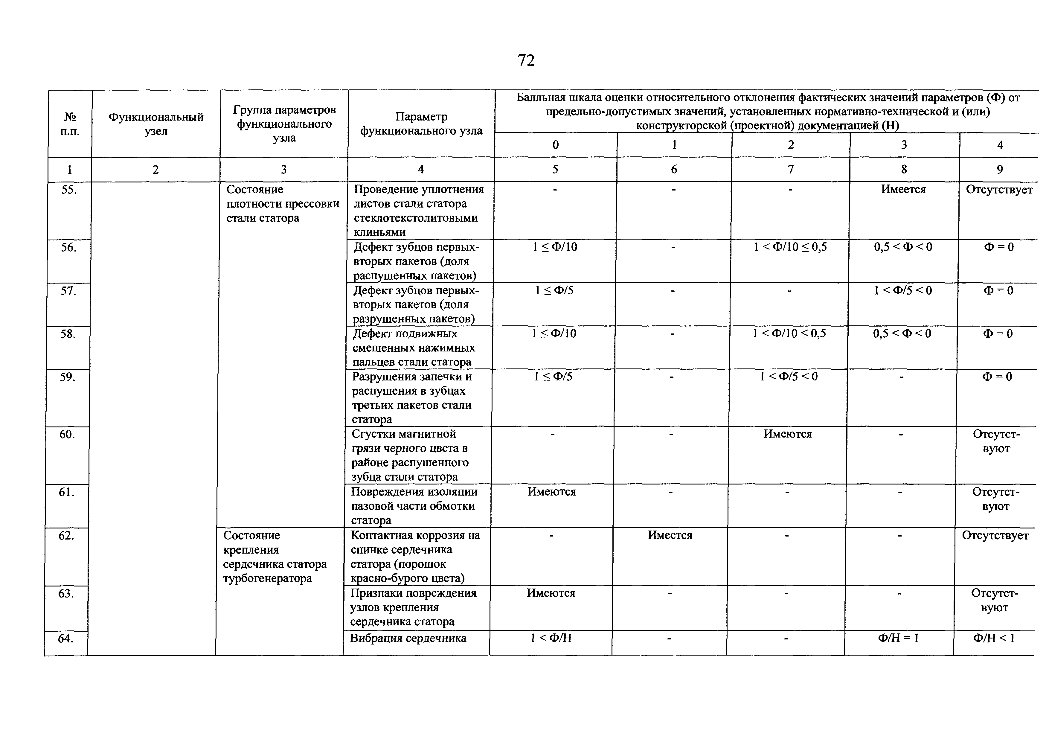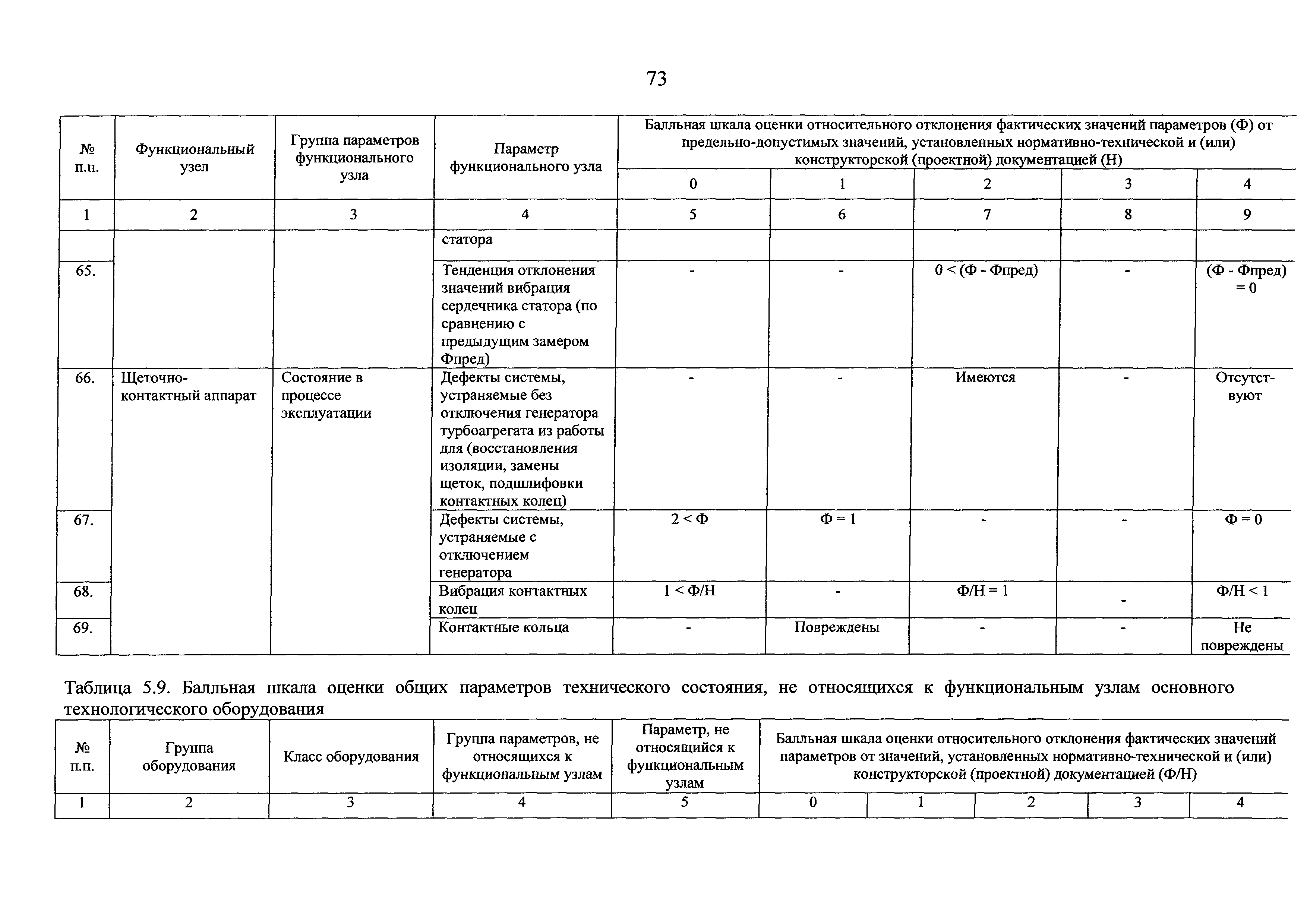 | Оглавление: | I Общие положения II Правила оценки технического состояния основного технологического оборудования III Порядок оценки технического состояния основного технологического оборудования IV Определение оптимального вида, состава и стоимости технического воздействия на оборудование Приложение 1. Термины и определения, употребляемые в методике оценки технического состояния основного технологического оборудования и линий электропередачи электрических станций и электрических сетей Приложение 2. Состав групп оборудования и сооружений объектов электроэнергетики с детализацией функциональных узлов и параметров Приложение 3. Схема порядка оценки технического состояния оборудования Приложение 4. Единицы измерения и возможные фактические значения параметров технического состояния функциональных узлов и общих параметров технического состояния, не относящихся к функциональным узлам основного технологического оборудования Приложение 5. Балльная шкала оценки параметров технического состояния функциональных узлов и общих параметров технического состояния, не относящихся к функциональным узлам основного технологического оборудования Приложение 6. Весовые коэффициенты для групп параметров технического состояния функциональных узлов и групп параметров технического состояния, не относящихся к функциональным узлам основного технологического оборудования Приложение 7. Перечень функциональных узлов основного технологического оборудования и их параметров, влияющих на снижение индекса технического состояния основного технологического оборудования Приложение 8. Весовые коэффициенты для функциональных узлов основного технологического оборудования и обобщенного узла, содержащего общие параметры технического состояния, не относящиеся к функциональным узлам основного технологического оборудования Приложение 9. Определение приведенной мощности объектов электроэнергетики Приложение 10. Схема принятия решения о виде технического воздействия на основное технологическое оборудование |
