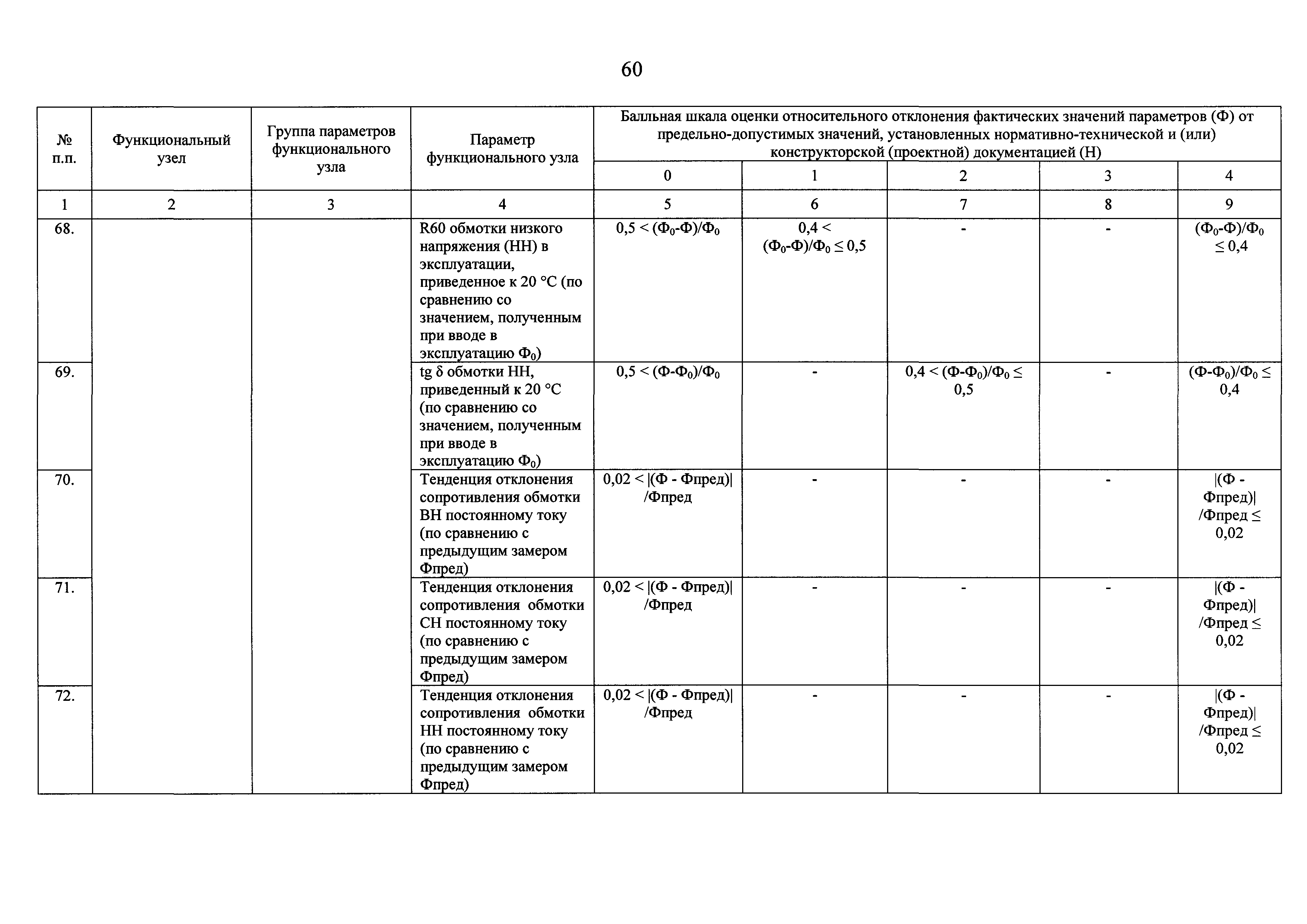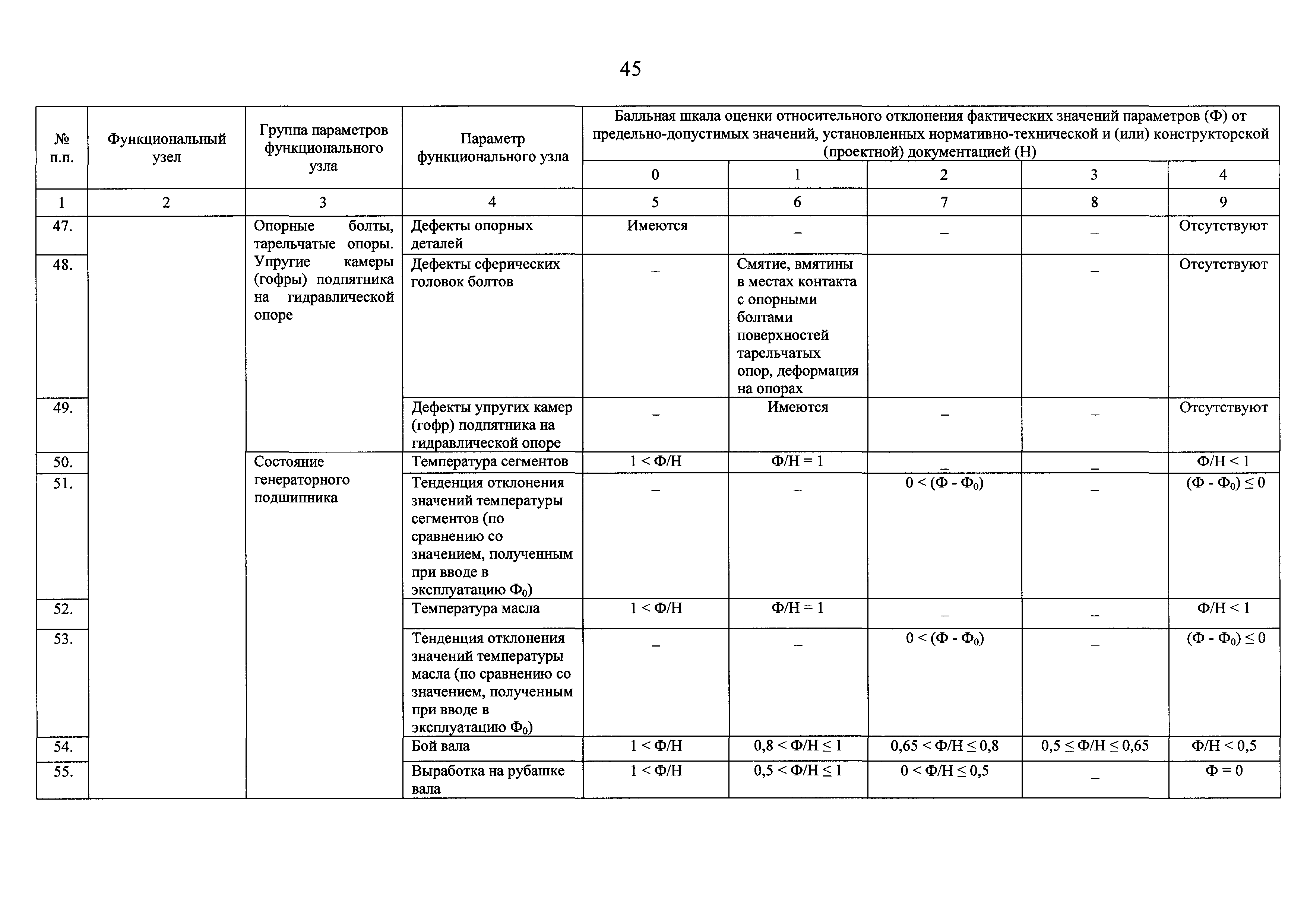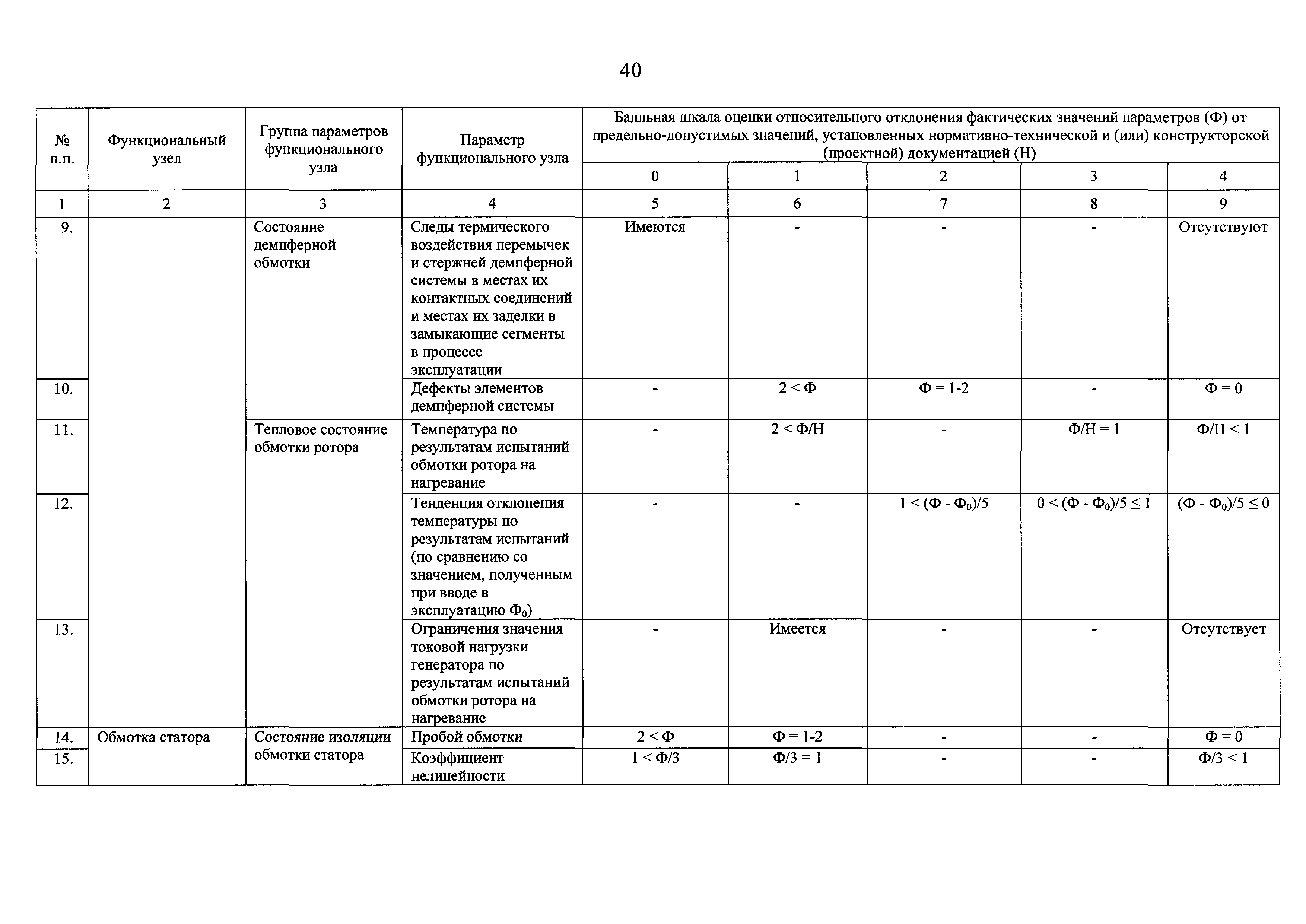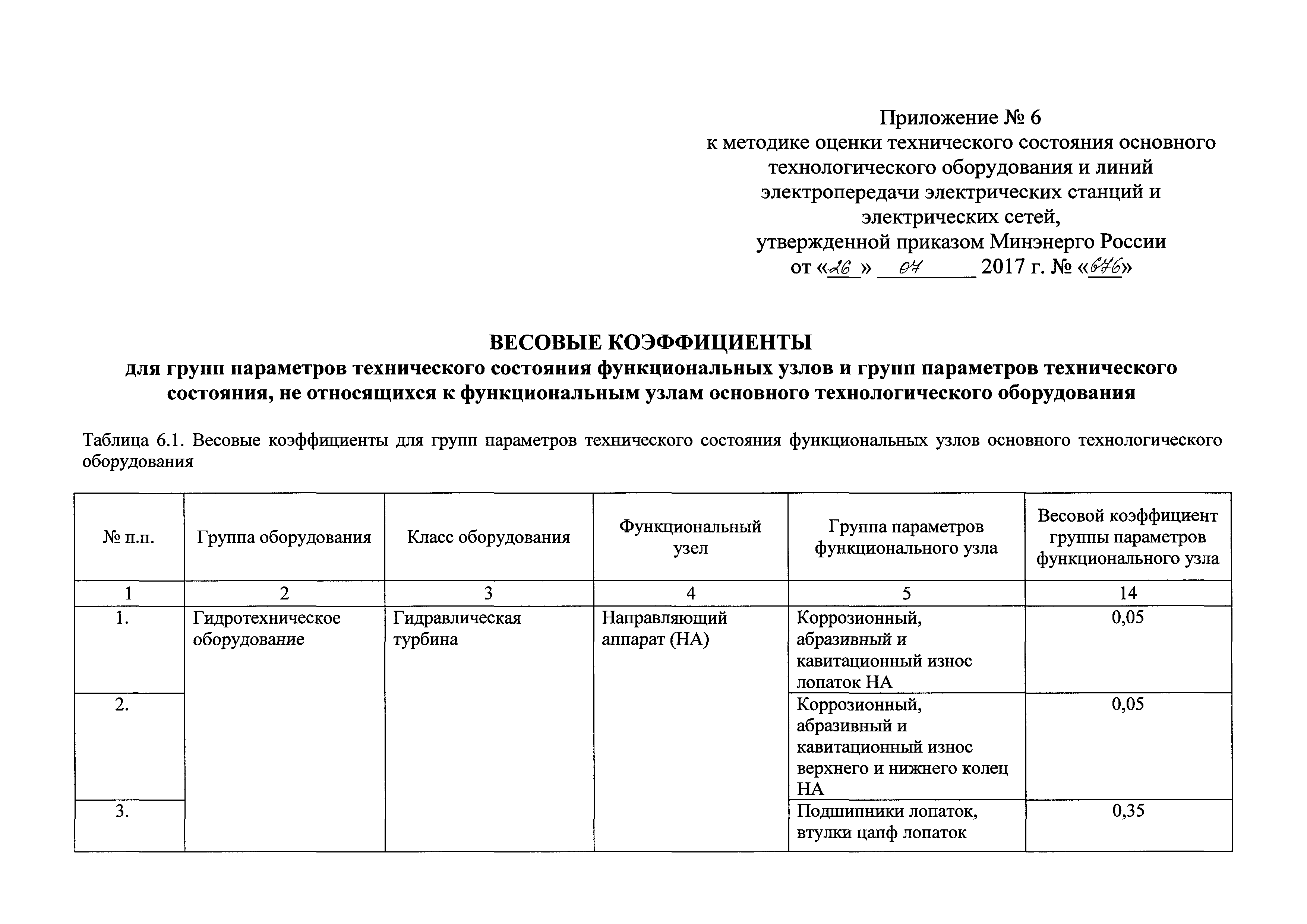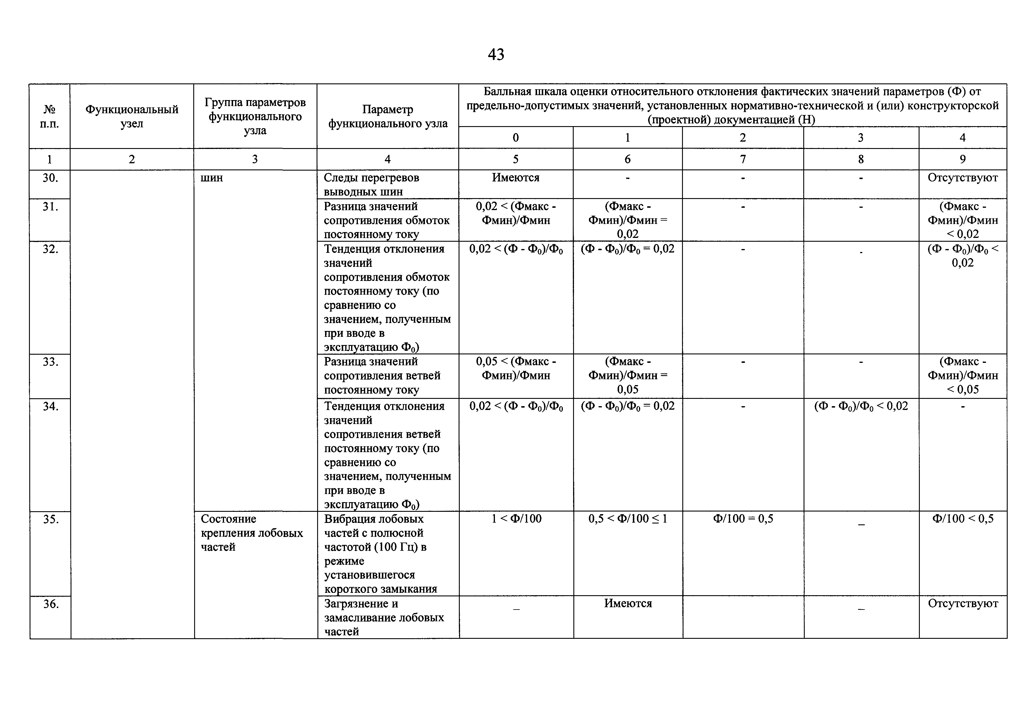 | Оглавление: | I Общие положения II Правила оценки технического состояния основного технологического оборудования III Порядок оценки технического состояния основного технологического оборудования IV Определение оптимального вида, состава и стоимости технического воздействия на оборудование Приложение 1. Термины и определения, употребляемые в методике оценки технического состояния основного технологического оборудования и линий электропередачи электрических станций и электрических сетей Приложение 2. Состав групп оборудования и сооружений объектов электроэнергетики с детализацией функциональных узлов и параметров Приложение 3. Схема порядка оценки технического состояния оборудования Приложение 4. Единицы измерения и возможные фактические значения параметров технического состояния функциональных узлов и общих параметров технического состояния, не относящихся к функциональным узлам основного технологического оборудования Приложение 5. Балльная шкала оценки параметров технического состояния функциональных узлов и общих параметров технического состояния, не относящихся к функциональным узлам основного технологического оборудования Приложение 6. Весовые коэффициенты для групп параметров технического состояния функциональных узлов и групп параметров технического состояния, не относящихся к функциональным узлам основного технологического оборудования Приложение 7. Перечень функциональных узлов основного технологического оборудования и их параметров, влияющих на снижение индекса технического состояния основного технологического оборудования Приложение 8. Весовые коэффициенты для функциональных узлов основного технологического оборудования и обобщенного узла, содержащего общие параметры технического состояния, не относящиеся к функциональным узлам основного технологического оборудования Приложение 9. Определение приведенной мощности объектов электроэнергетики Приложение 10. Схема принятия решения о виде технического воздействия на основное технологическое оборудование |