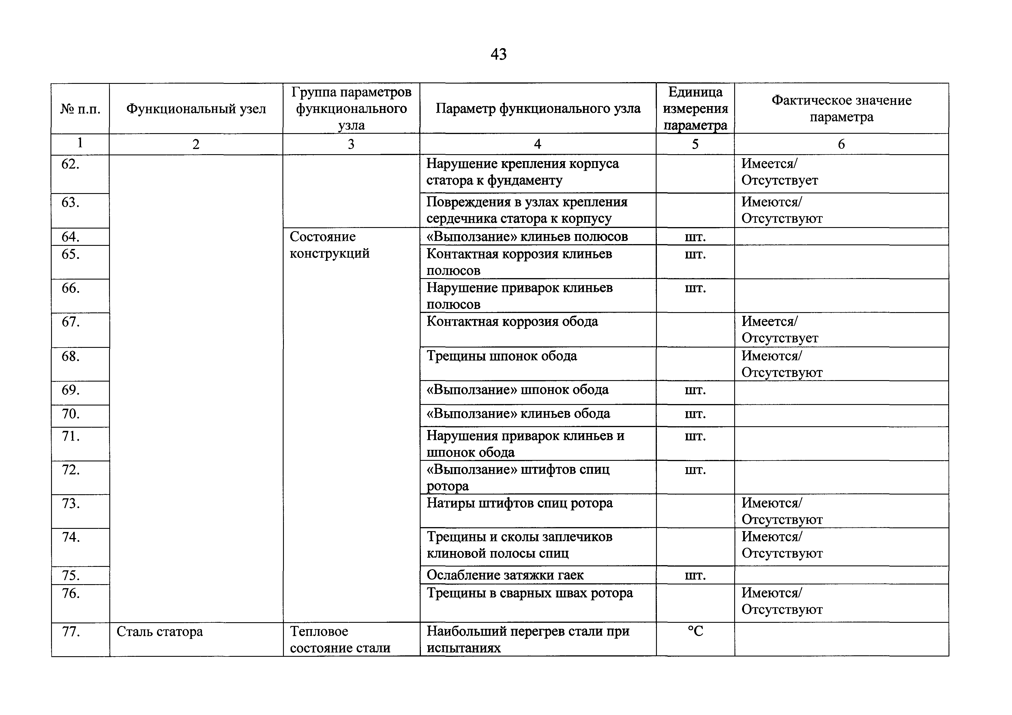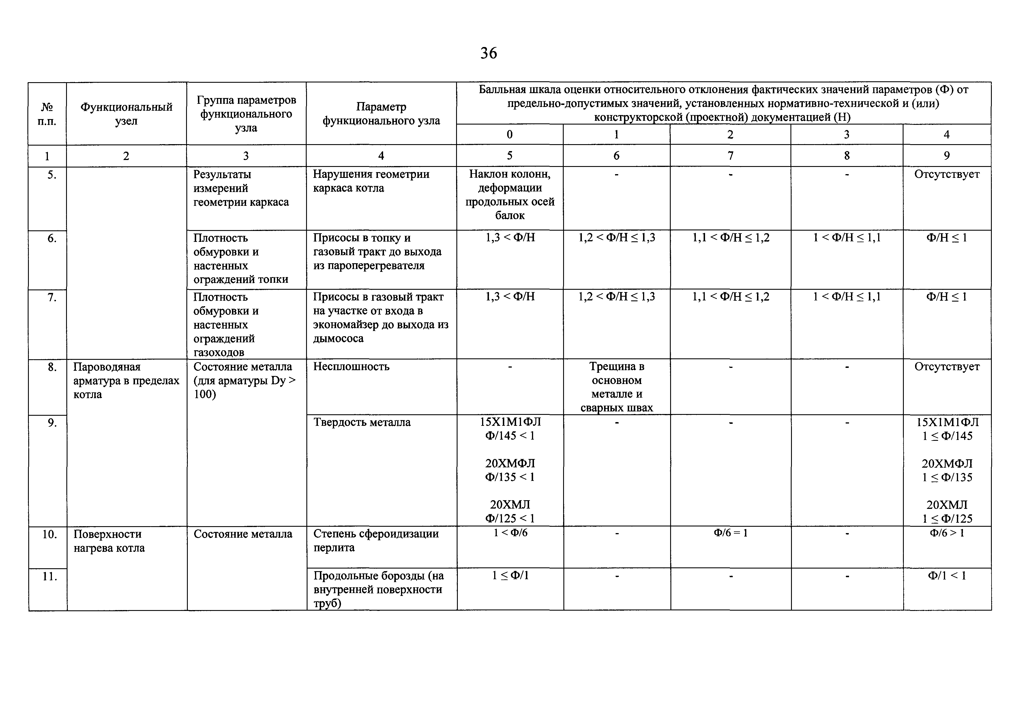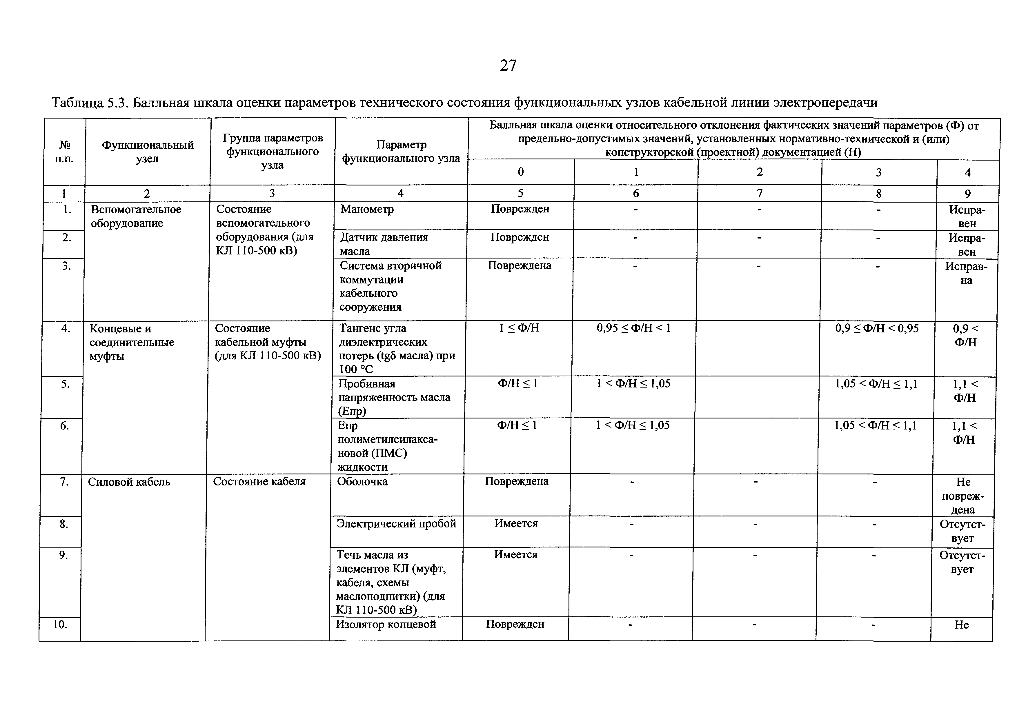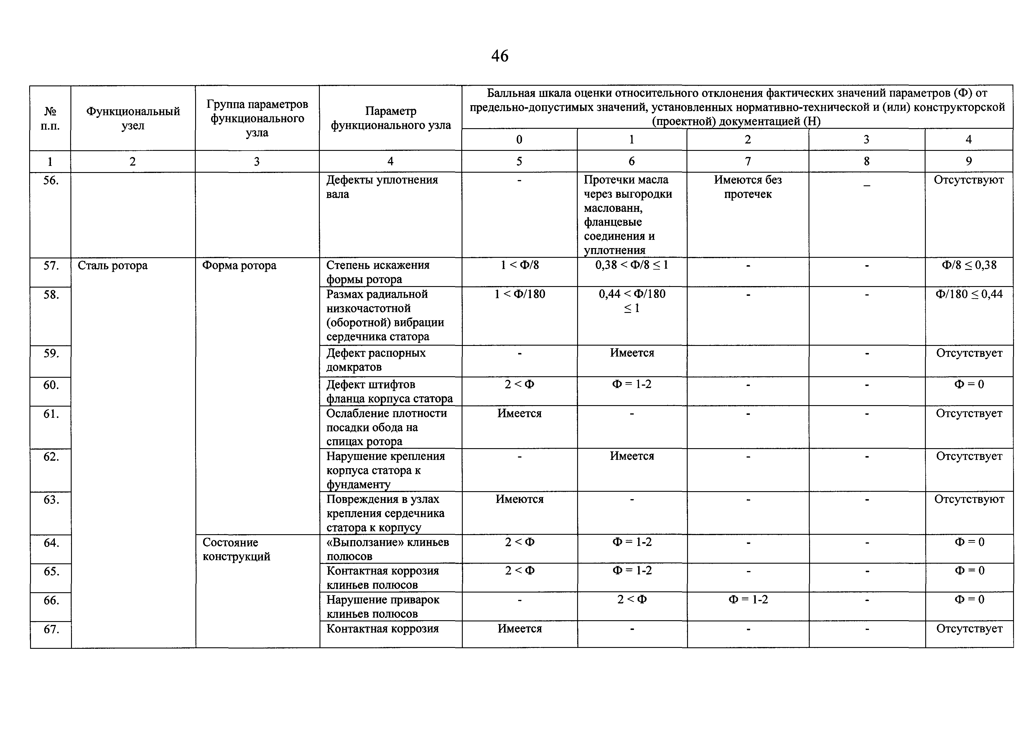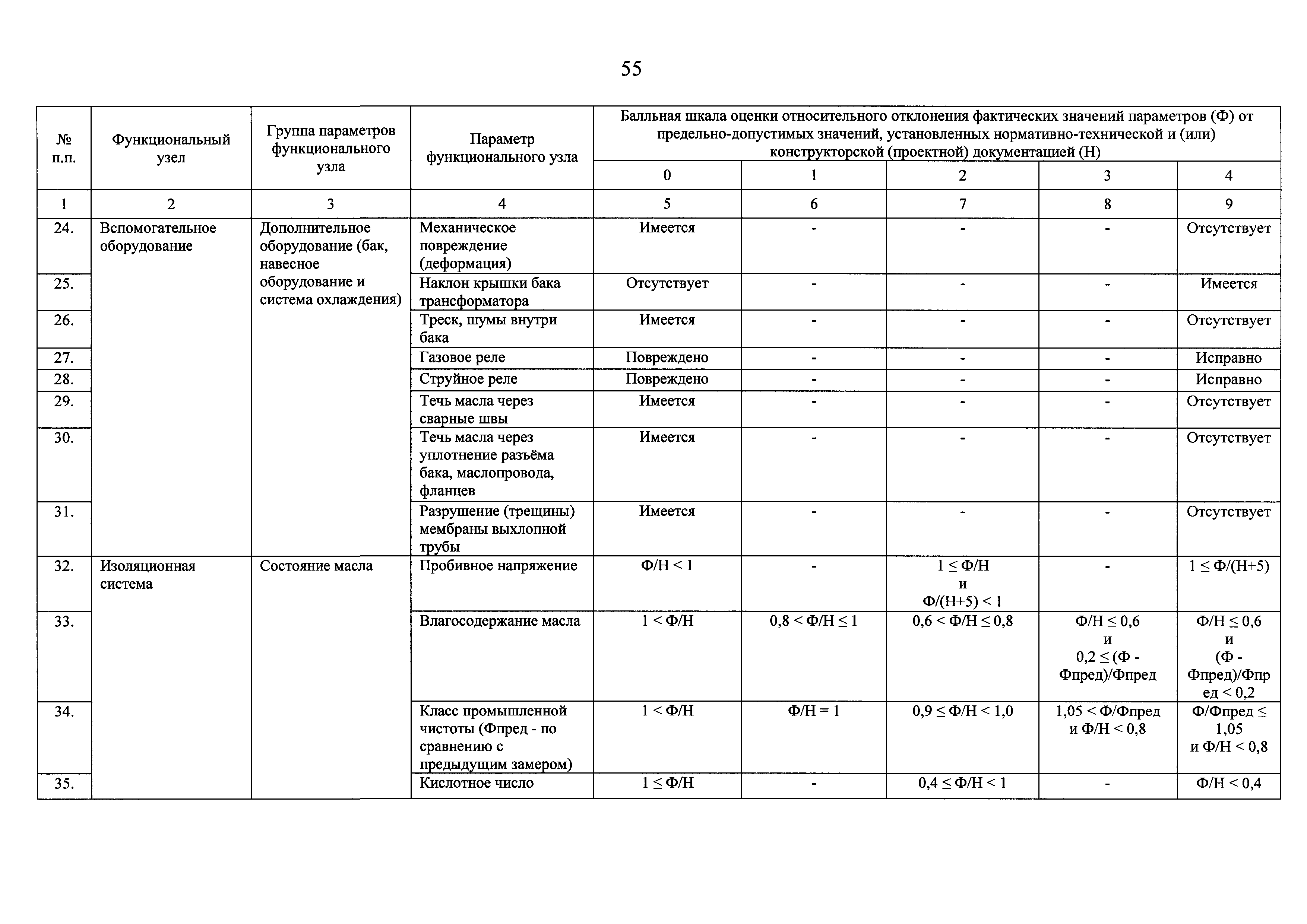 | Оглавление: | I Общие положения II Правила оценки технического состояния основного технологического оборудования III Порядок оценки технического состояния основного технологического оборудования IV Определение оптимального вида, состава и стоимости технического воздействия на оборудование Приложение 1. Термины и определения, употребляемые в методике оценки технического состояния основного технологического оборудования и линий электропередачи электрических станций и электрических сетей Приложение 2. Состав групп оборудования и сооружений объектов электроэнергетики с детализацией функциональных узлов и параметров Приложение 3. Схема порядка оценки технического состояния оборудования Приложение 4. Единицы измерения и возможные фактические значения параметров технического состояния функциональных узлов и общих параметров технического состояния, не относящихся к функциональным узлам основного технологического оборудования Приложение 5. Балльная шкала оценки параметров технического состояния функциональных узлов и общих параметров технического состояния, не относящихся к функциональным узлам основного технологического оборудования Приложение 6. Весовые коэффициенты для групп параметров технического состояния функциональных узлов и групп параметров технического состояния, не относящихся к функциональным узлам основного технологического оборудования Приложение 7. Перечень функциональных узлов основного технологического оборудования и их параметров, влияющих на снижение индекса технического состояния основного технологического оборудования Приложение 8. Весовые коэффициенты для функциональных узлов основного технологического оборудования и обобщенного узла, содержащего общие параметры технического состояния, не относящиеся к функциональным узлам основного технологического оборудования Приложение 9. Определение приведенной мощности объектов электроэнергетики Приложение 10. Схема принятия решения о виде технического воздействия на основное технологическое оборудование |