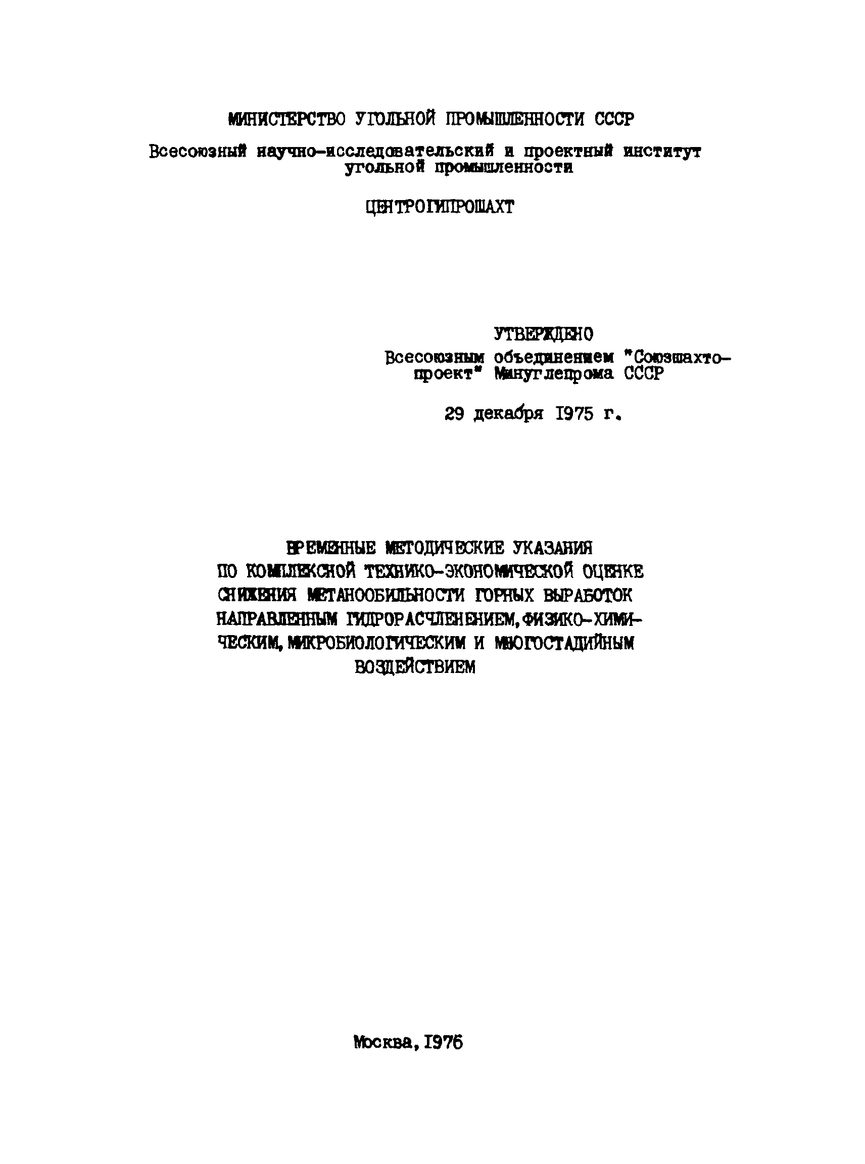 | | Утверждён: | 29.12.1975 В.О. Союзшахтопроект