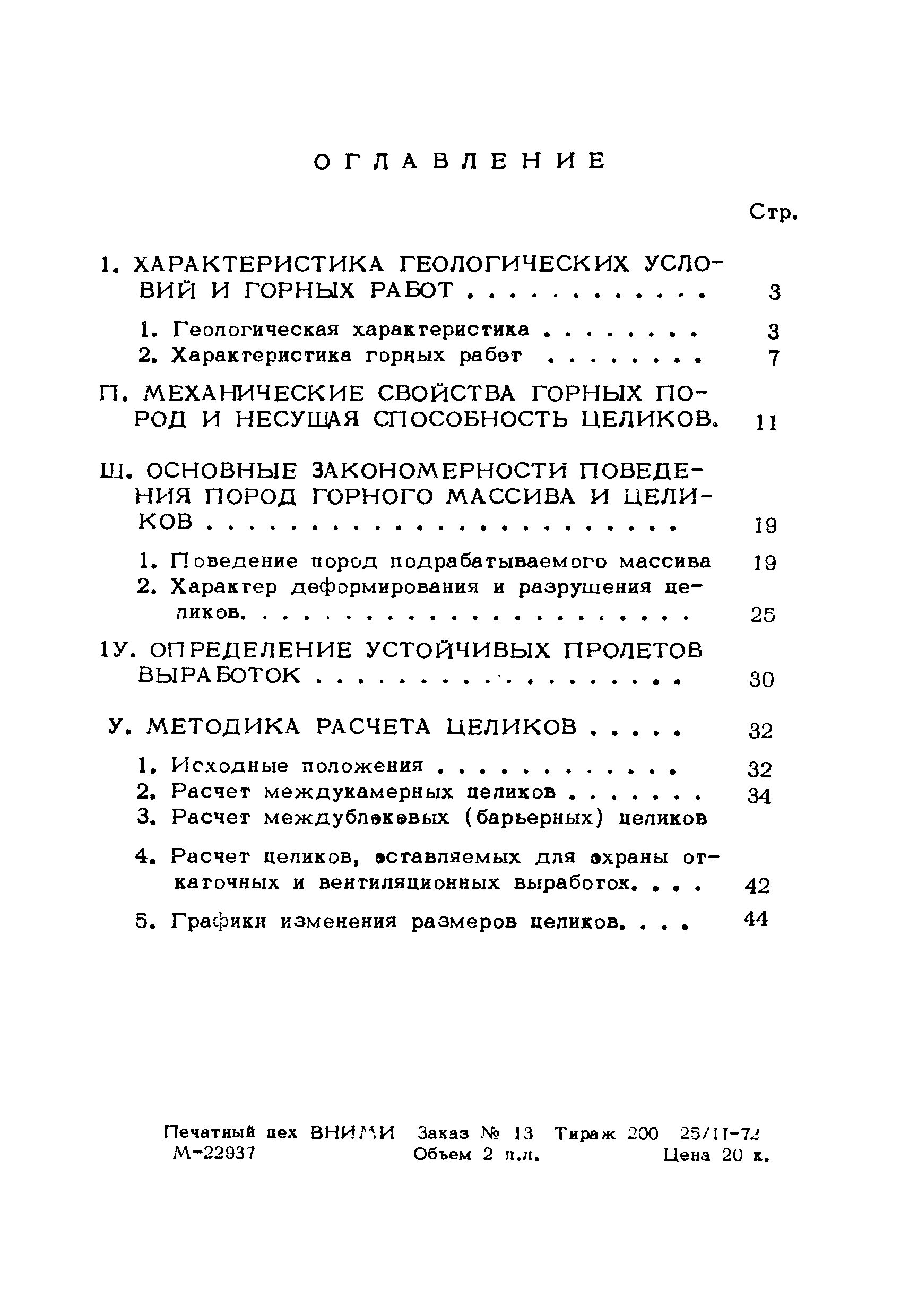 | Оглавление: | I Характеристика геологических условий и горных работ 1 Геологическая характеристика 2 Характеристика горных работ II Механические свойства горных пород и несущая способность целиков III Основные закономерности поведения пород горного массива и целиков 1 Поведение пород подрабатываемого массива 2 Характер деформирования и разрушения целиков IV Определение устойчивых пролетов выработок V Методика расчета целиков 1 Исходные положения 2 Расчет междукамерных целиков 3 Расчет междублоковых (барьерных) целиков 4 Расчет целиков, оставляемых для охраны откаточных и вентиляционных выработок 5 Графики изменения размеров целиков Литература |