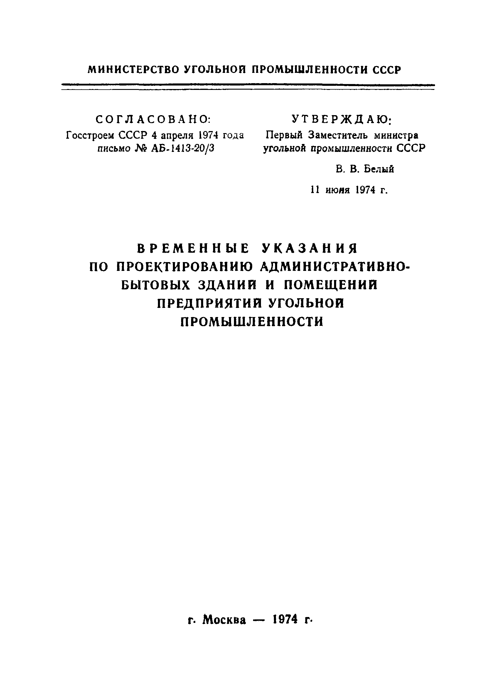 | Утверждён: | 11.06.1974 Министерство угольной промышленности СССР (USSR Ministry of the Coal Industry )