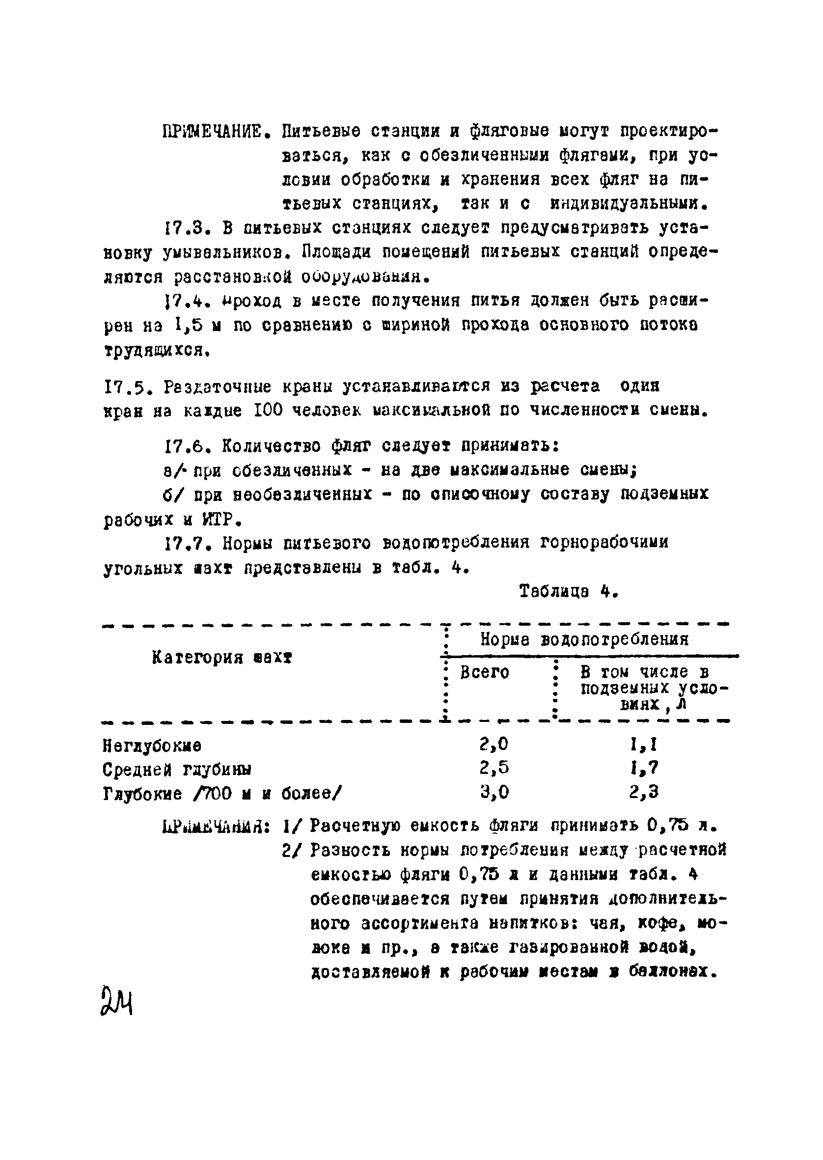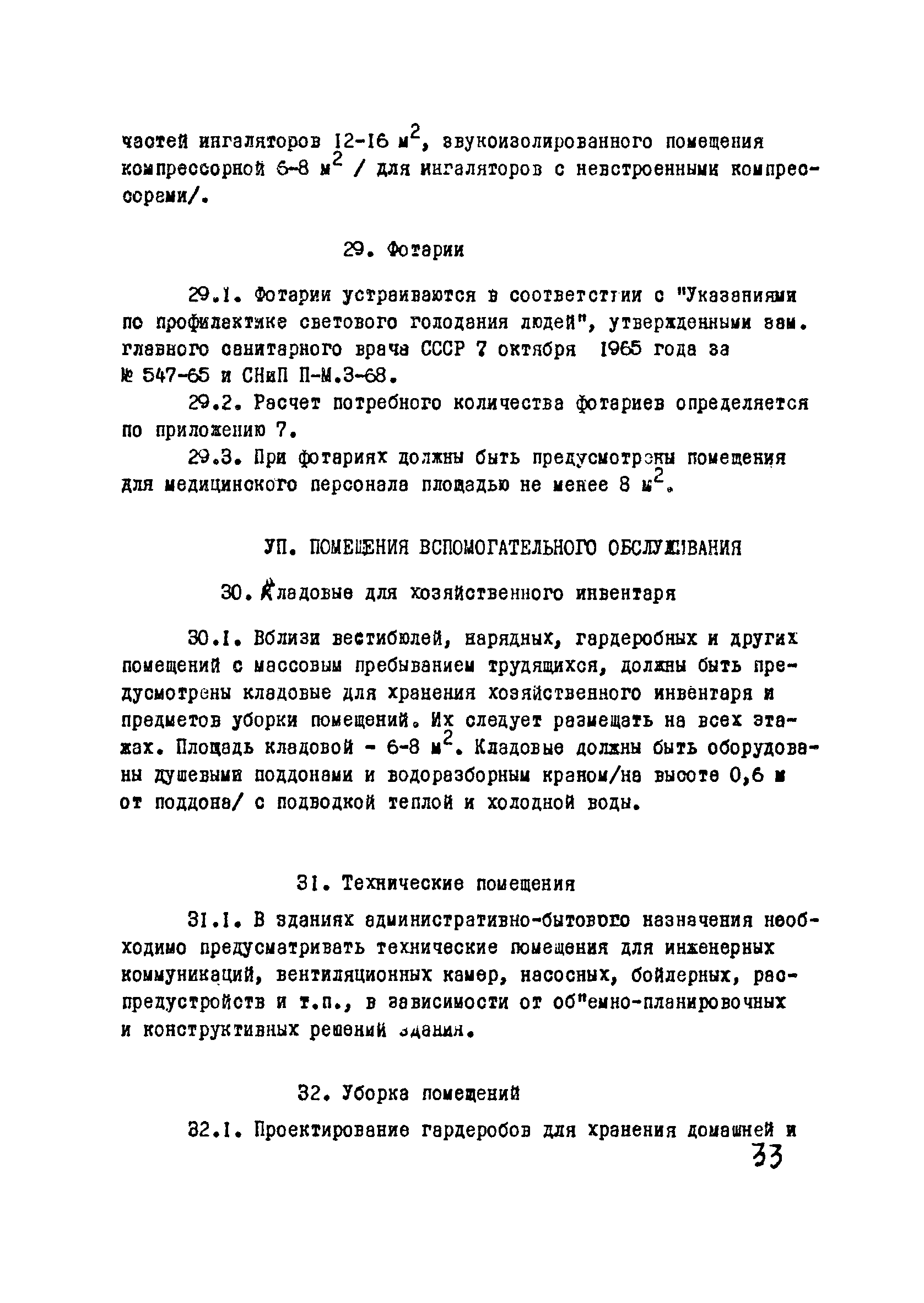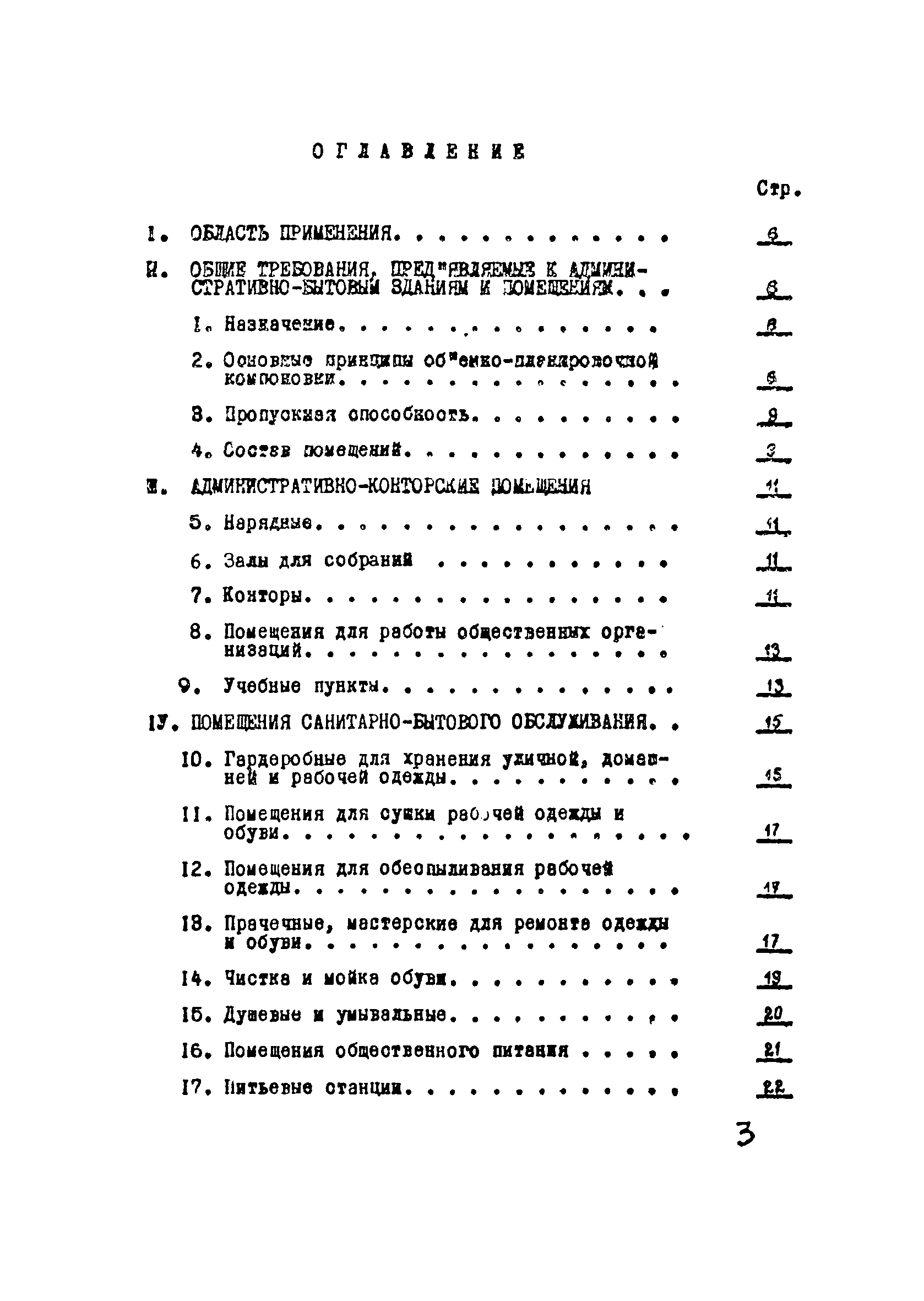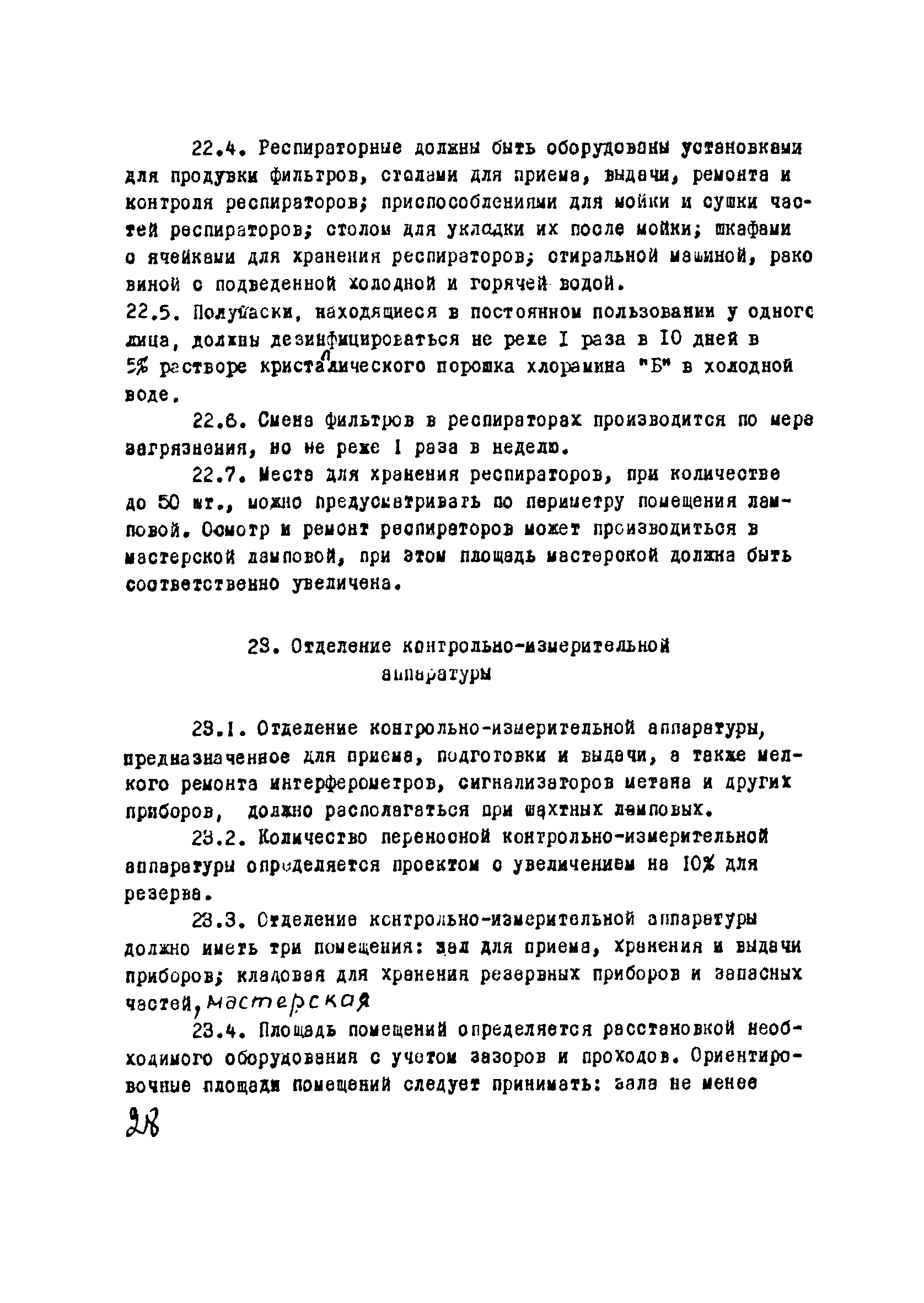 | Оглавление: | I Область применения II Общие требования, предъявляемые к административно-бытовым зданиям и помещениям 1 Назначение 2 Основные принципы объемно-планировочной компоновки 3 Пропускная способность 4 Состав помещений III Административно-конторские помещения 5 Нарядные 6 Залы для собраний 7 Конторы 8 Помещения для работы общественных организаций 9 Учебные пункты IV Помещения санитарно-бытового обслуживания 10 Гардеробные для хранения уличной, домашней и рабочей одежды 11 Помещения для сушки рабочей одежды и обуви 12 Помещения для обеспыливания рабочей одежды 13 Прачечные, мастерские для ремонта одежды и обуви 14 Чистка и мойка обуви 15 Душевые и умывальные 16 Помещения общественного питания 17 Питьевые станции 18 Парикмахерские 19 Курительные 20 Помещения для обогревания работающих V Производственно-вспомогательные помещения 21 Ламповые 22 Респираторные 23 Отделение контрольно—измерительной аппаратуры 24 Службы вспомогательной горноспасательной команды /ВГК/ 25 Телефонные станции 26 Диспетчерские пункты VI Помещения санитарно-медицинского обслуживания 27 Здравпункты 28 Ингалятории 29 Фотарии VII Помещения вспомогательного обслуживания 30 Кладовые для хозяйственного инвентаря 31 Технические помещения 32 Уборка помещений VIII Помещения и устройства для культурного обслуживания 33 Кабинеты политического просвещения 34 Площадки для спортивных игр и гимнастических упражнений IX Санитарно-техническая часть Приложение 1. Вес основных вещей, поступающих в прачечную Приложение 2. Режим ежедневной стирки одежды, загрязненной антрацитовой пылью Приложение 3. Режим ежедневной стирки рабочей одежды, загрязненной каменноугольной пылью Приложение 4. Режим стирки белья Приложение 5. Расчет потребности количества оборудования прачечных Приложение 6. Расчет потребного количества ингаляторных установок Приложение 7. Расчет потребного количества фотариев |