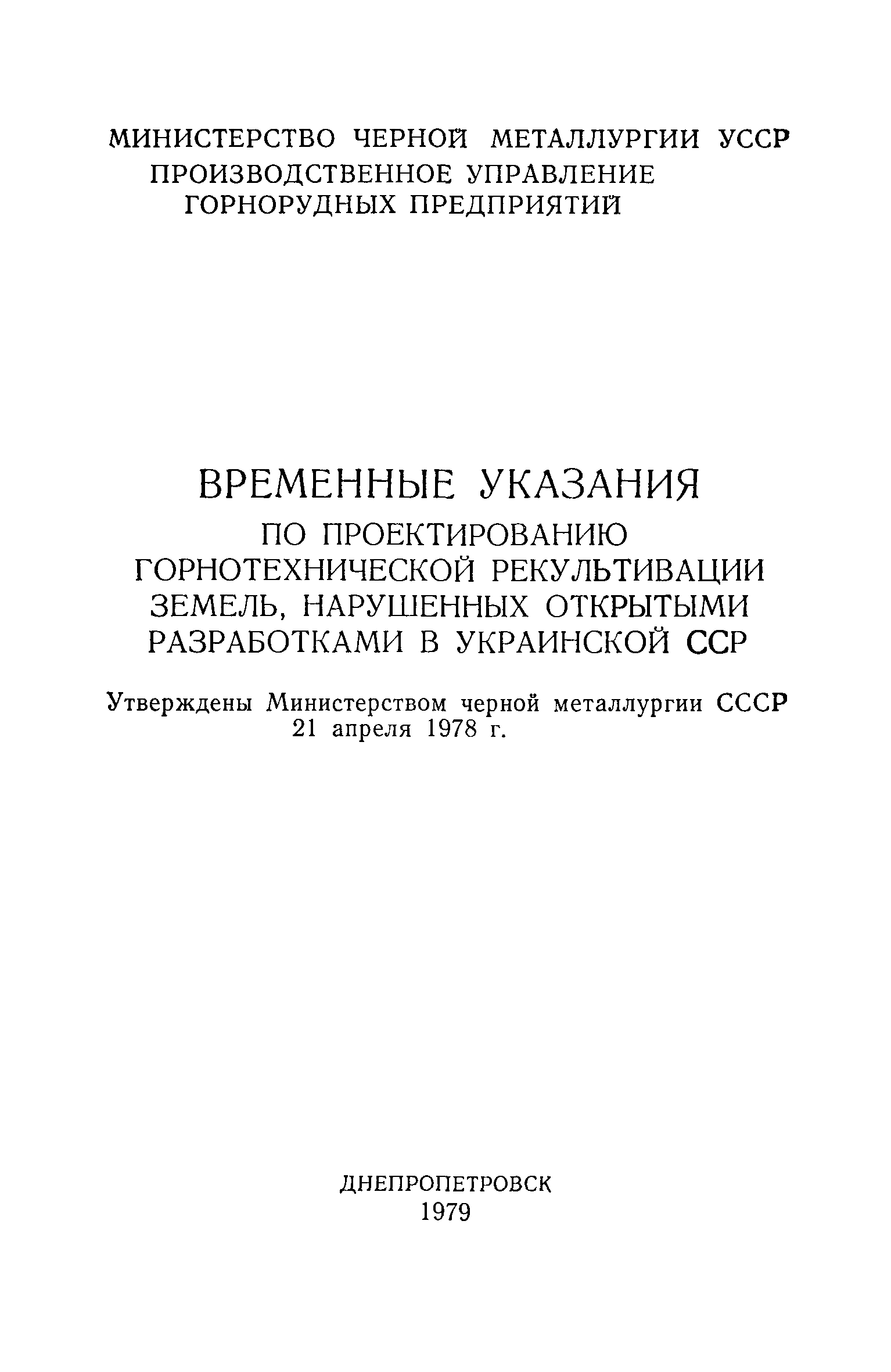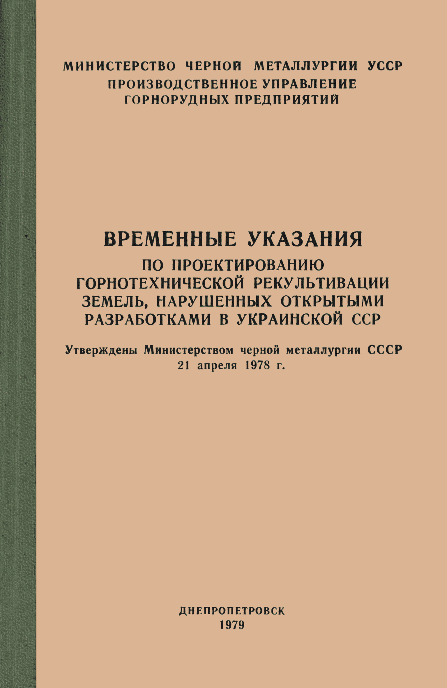 Скачать Временные указания по проектированию горнотехнической рекультивации земель, нарушенных открытыми разработками в Украинской ССРДата актуализации: 01.01.2021