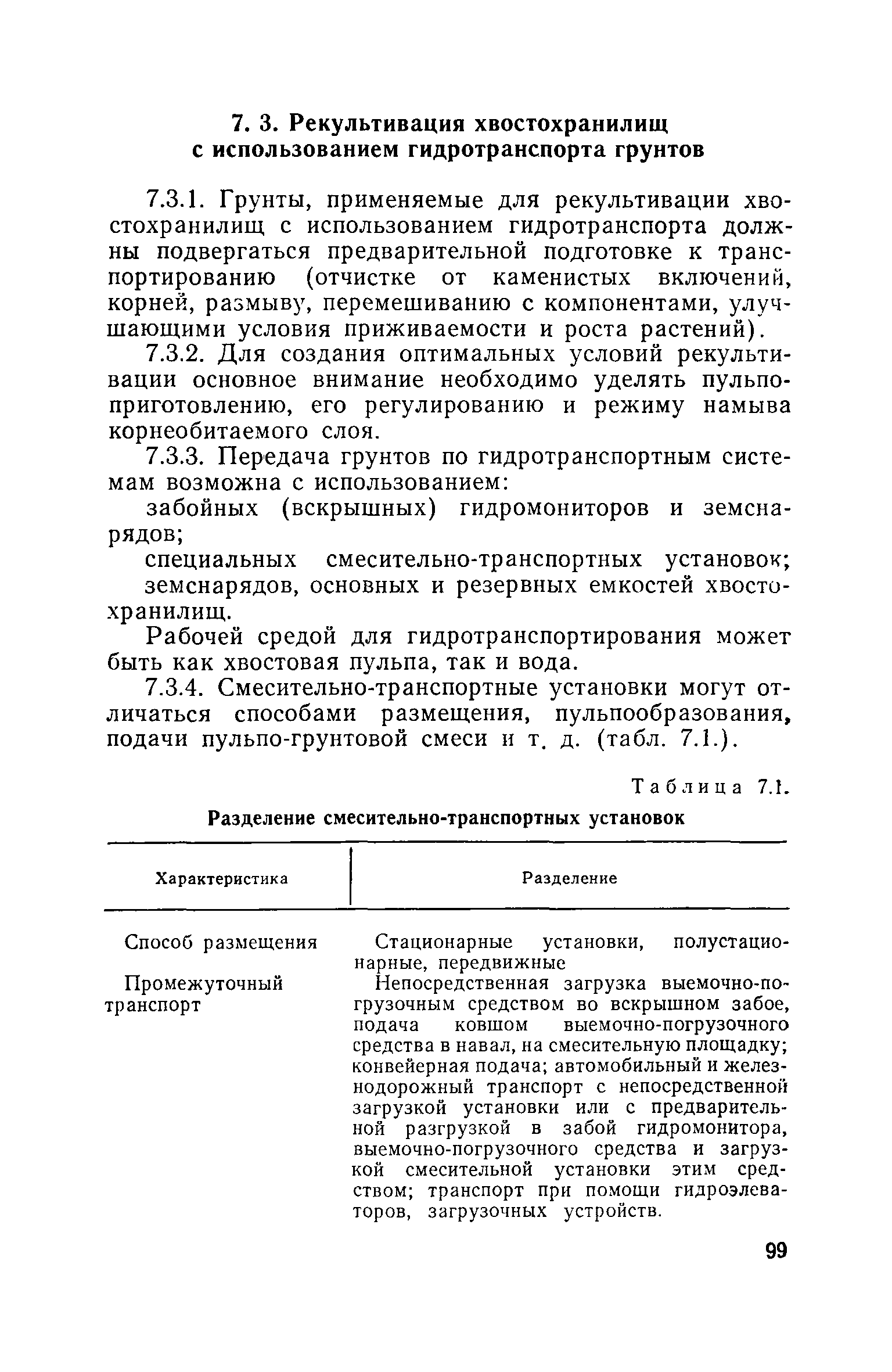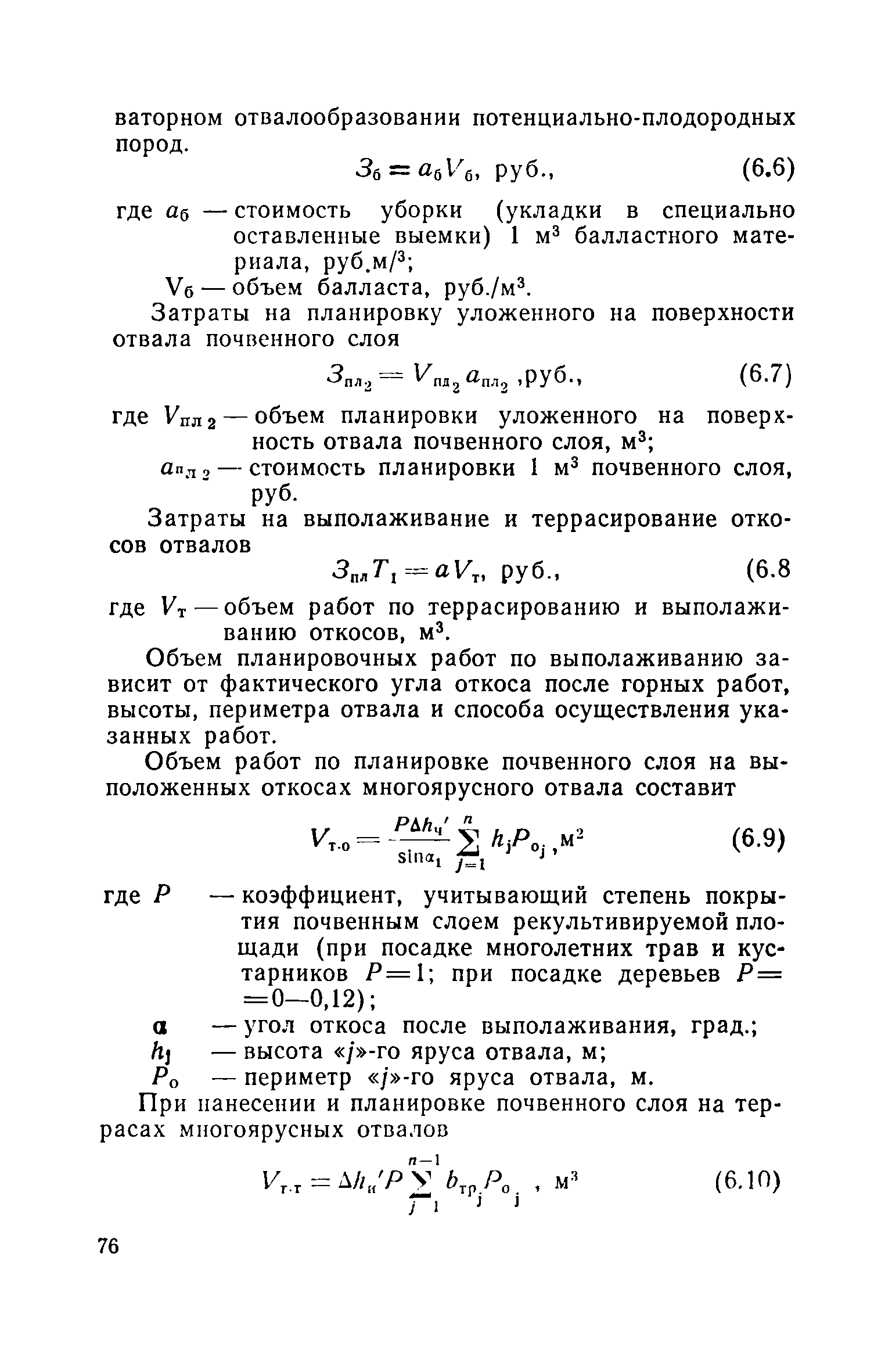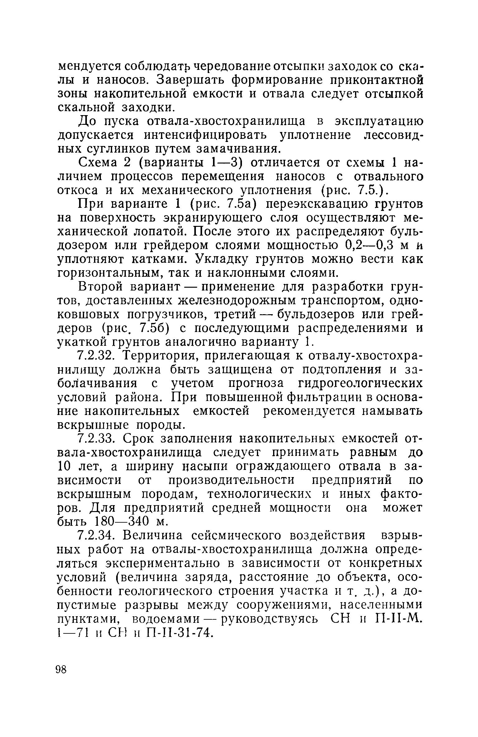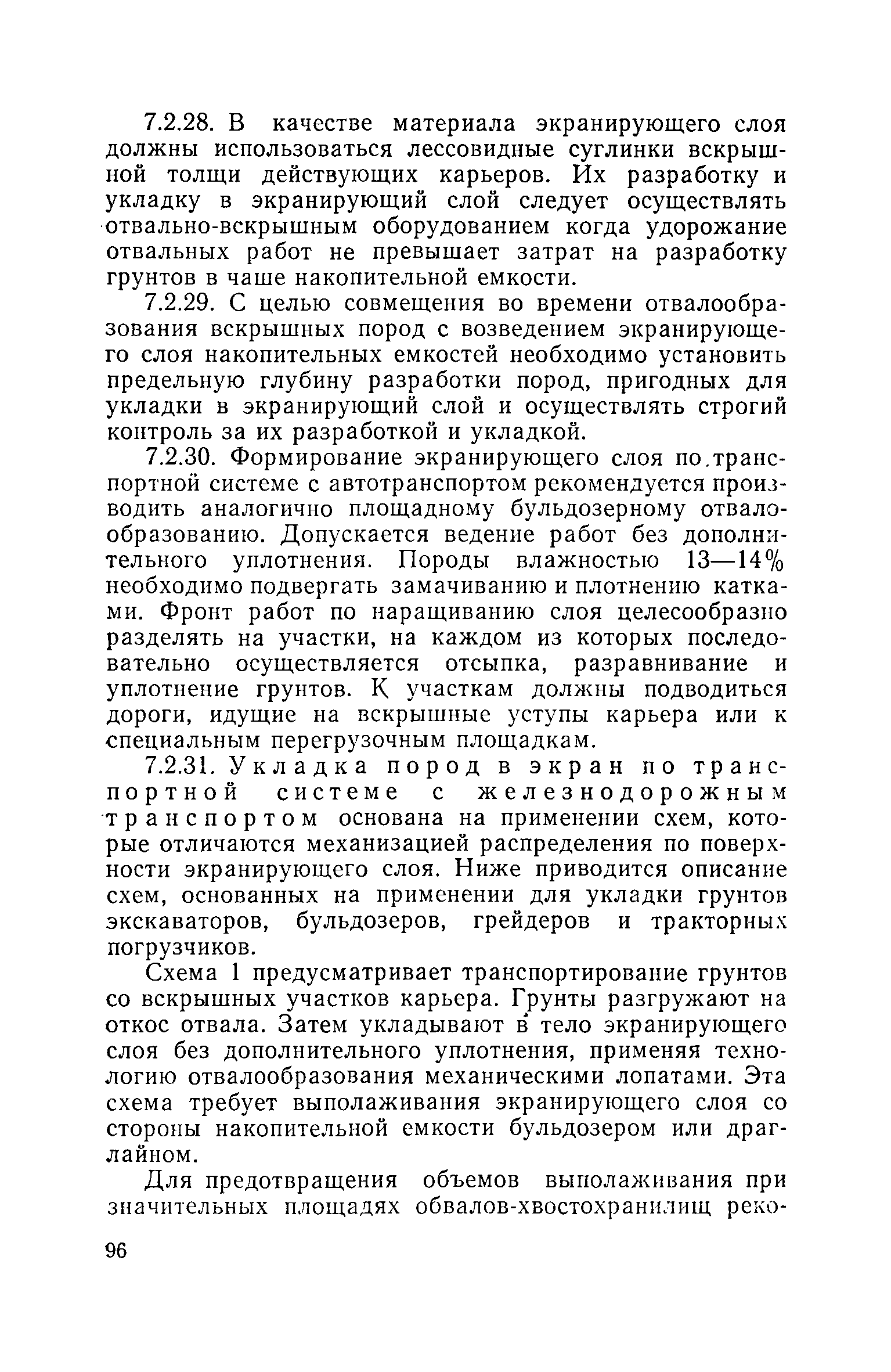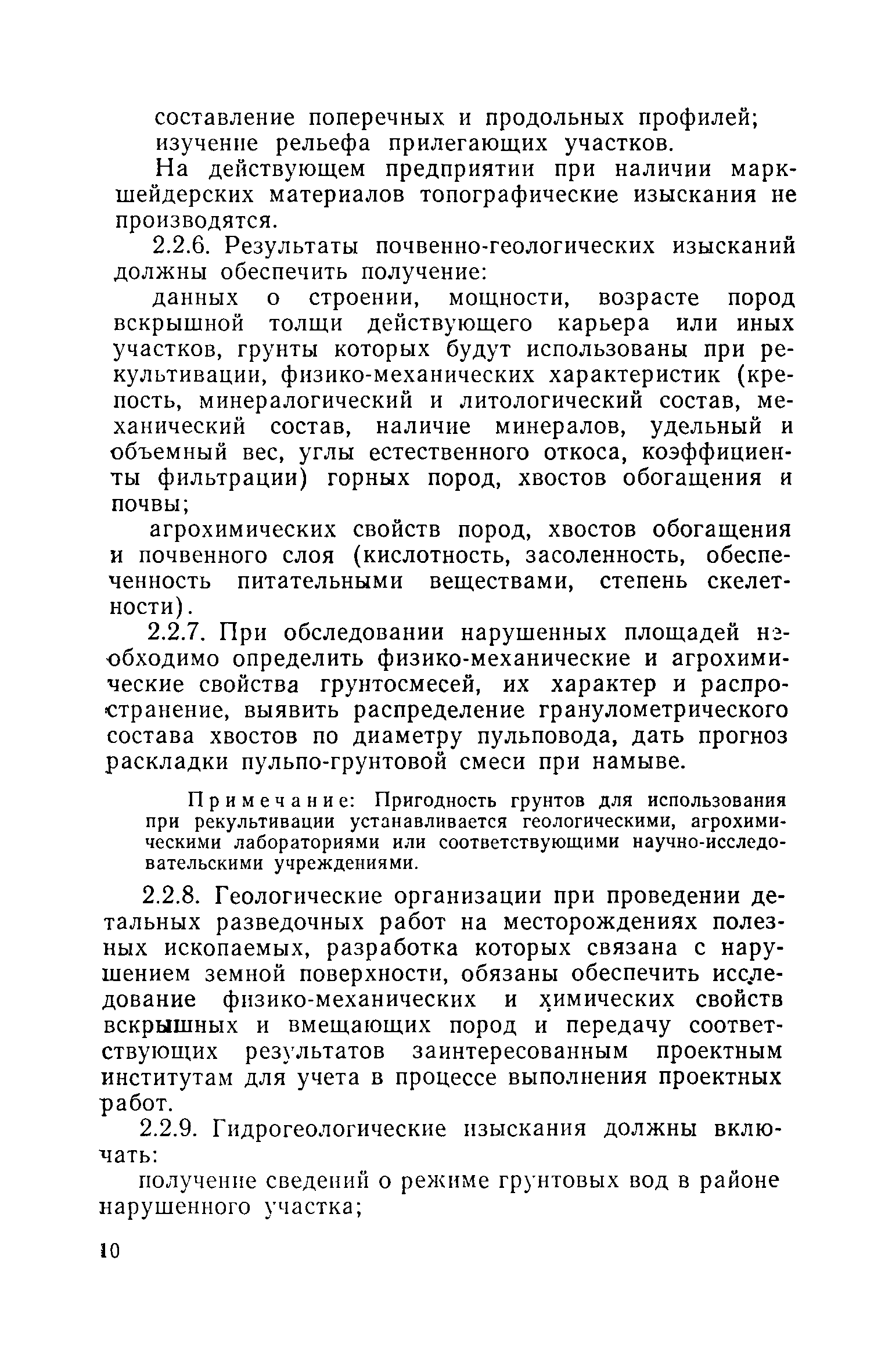 Временные указания по проектированию горнотехнической рекультивации земель, нарушенных открытыми разработками в Украинской ССР| Статус: | не действует | | Название рус.: | Временные указания по проектированию горнотехнической рекультивации земель, нарушенных открытыми разработками в Украинской ССР | | Дата добавления в базу: | 01.01.2018 | | Дата актуализации: | 01.01.2021 | | Область применения: | В документе изложены методические указания, рекомендации и нормативы по проектированию горнотехнической рекультивации нарушенных земель, технические условия на выполнение рекультивационных работ, технологические схемы рекультивации отвалов и хвостохранилищ, методика выбора эффективных вариантов рекультивации, а также направления интенсификации рационального использования земельных ресурсов при разработке месторождений открытым способом. | | Оглавление: | 1. Общие положения 1.1. Область применения методических указаний 1.2. Краткие сведения о рекультивации, ее выполнении и финансировании рекультивационных работ 2. Состав проекта рекультивационных работ 2.1. Исходные данные для проектирования 2.2. Объем изысканий 2.3. Технические условия на приведение земель в состояние, пригодное для использования 2.4. Состав и объем проекта 3. Рекультивация нарушенных земель с использованием почвенного слоя 3.1. Оборудование для подготовки и проведения горнотехнической рекультивации 3.2. Технологические схемы разработки почвенного слоя скреперами 3.3. Разработка и перемещение почвенного слоя железнодорожным транспортом 3.4. Схемы разработки почвенного слоя при конвейерном транспорте 3.5. Разработка почвенного слоя бульдозерами 3.6. Схемы разработки почвенного слоя экскаваторами 3.7. Перспективные схемы разработки почвенного слоя 4. Селективное формирование отвалов при различных системах разработки 4.1. Определение мощности потенциально-плодородных пород 4.2. Формирование отвалов при бестранспортной системе разработки 4.3. Формирование отвалов при транспортно-отвальной системе разработки 4.4. Формирование отвалов при транспортной системе 5. Планировочные работы при горнотехнической рекультивации 5.1. Механизация планировочных работ 5.2. Объемы планировочных работ 5.3. Расчет основных параметров вертикальной планировки 5.4. Определение допустимой величины осадки отвалов 5.5. Влияние осадки отвальной поверхности на организацию планировочных работ 6. Обоснование и технико-экономические показатели рекультивации 6.1. Объемы и технико-экономические показатели рекультивации 6.2. Выбор рациональной технологии рекультивации 6.3. Оценка эффективности рекультивации нарушенных земель 7. Интенсификация процесса рационального использования земельных ресурсов 7.1. Показатели использования земельных отводов 7.2. Рекомендации по использованию земельных отводов при создании отвалов и хвостохранилищ 7.3. Рекультивация хвостохранилищ с использованием гидротранспорта грунтов Нормативно-технологические показатели для сметной документации и характеристики вскрышных пород | | Разработан: | Минчермет УССР НИГРИ