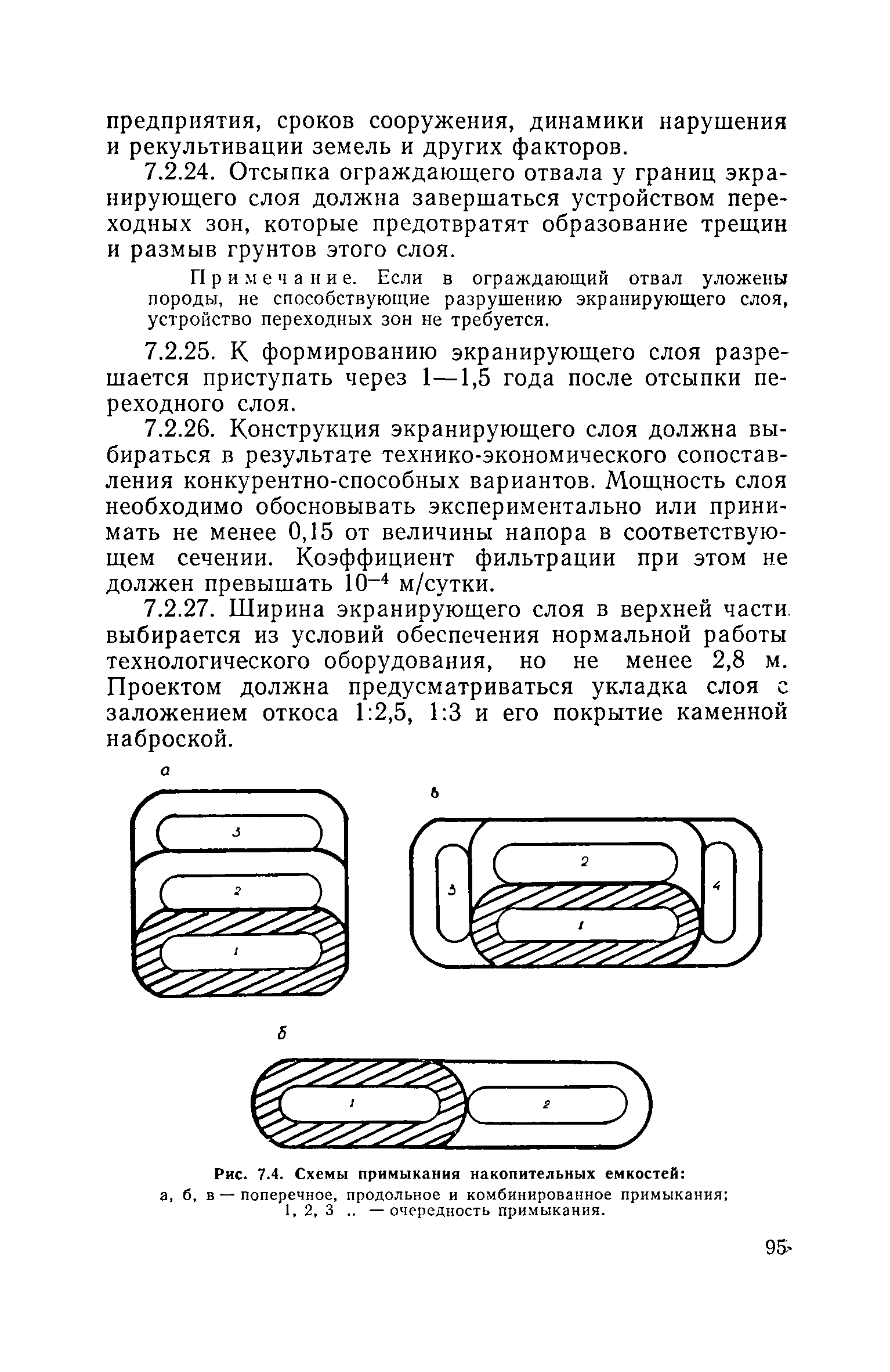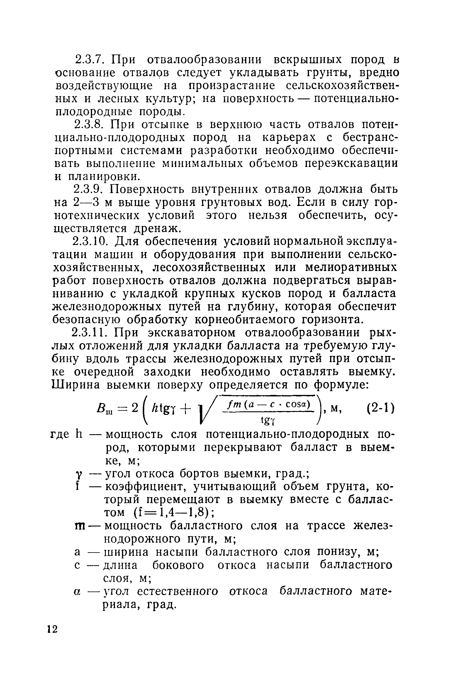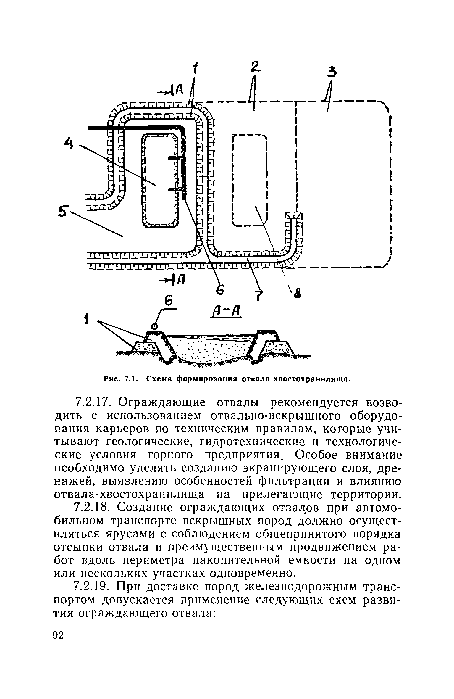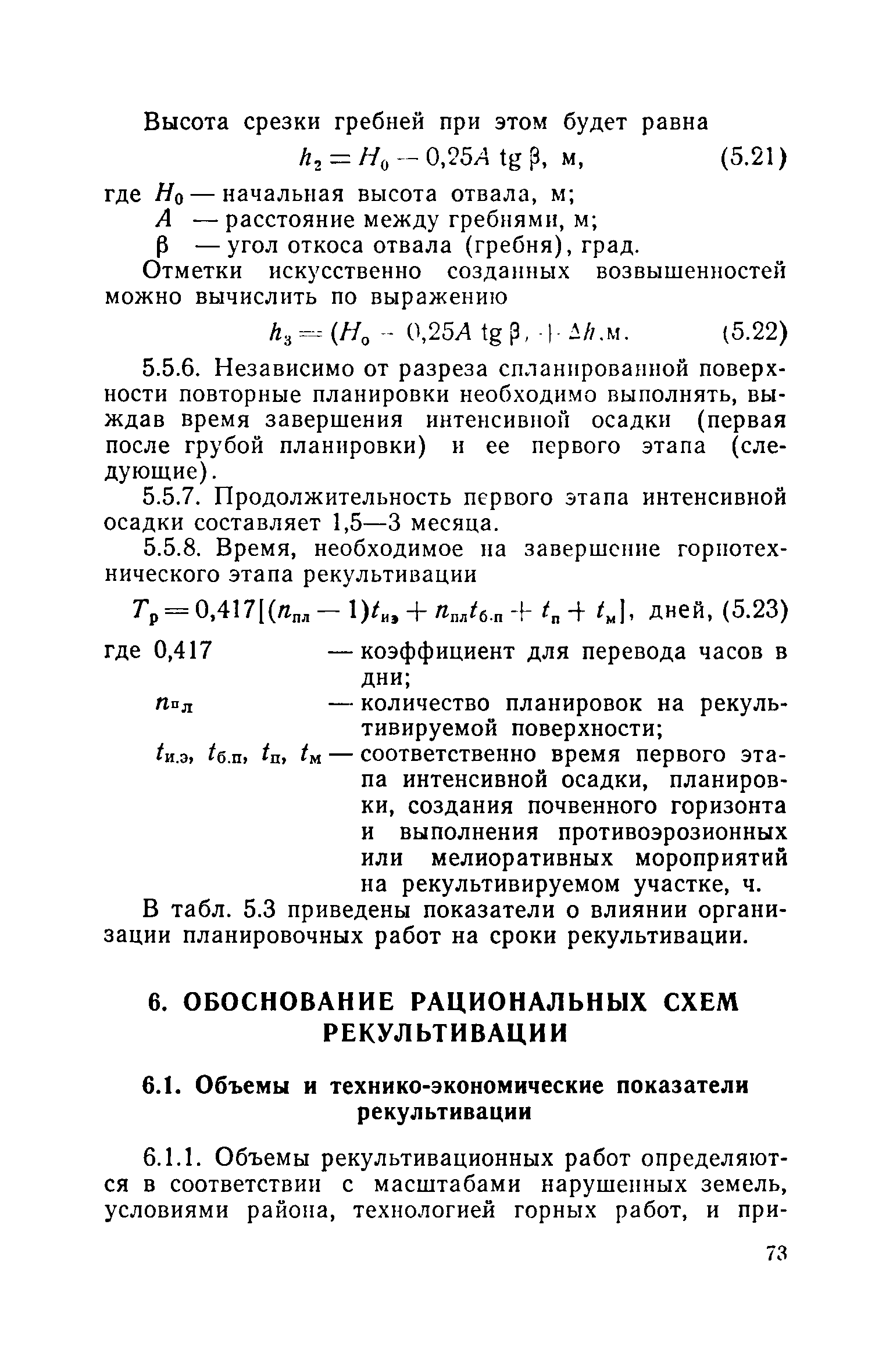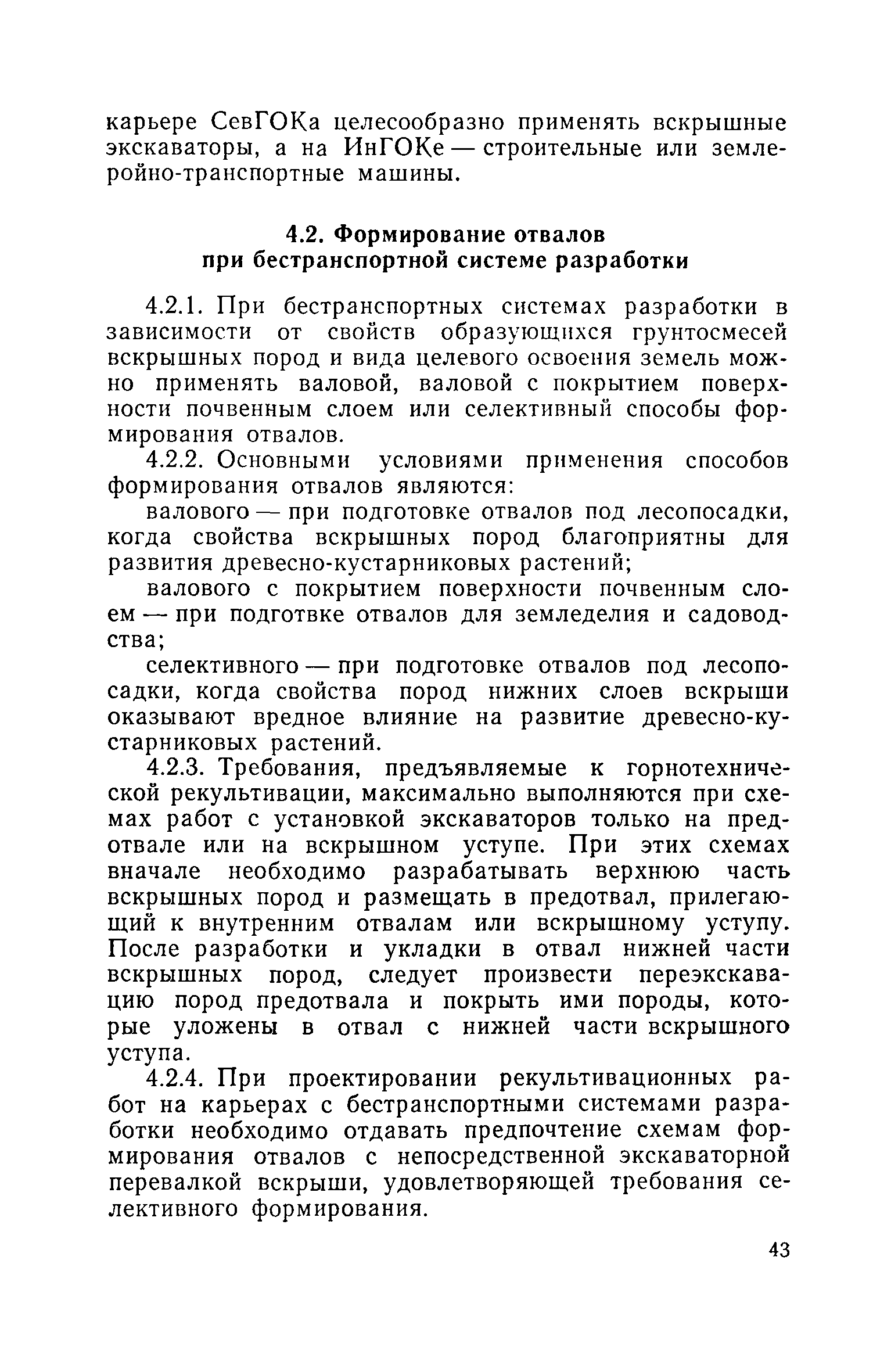 Временные указания по проектированию горнотехнической рекультивации земель, нарушенных открытыми разработками в Украинской ССР| Статус: | не действует | | Название рус.: | Временные указания по проектированию горнотехнической рекультивации земель, нарушенных открытыми разработками в Украинской ССР | | Дата добавления в базу: | 01.01.2018 | | Дата актуализации: | 01.01.2021 | | Область применения: | В документе изложены методические указания, рекомендации и нормативы по проектированию горнотехнической рекультивации нарушенных земель, технические условия на выполнение рекультивационных работ, технологические схемы рекультивации отвалов и хвостохранилищ, методика выбора эффективных вариантов рекультивации, а также направления интенсификации рационального использования земельных ресурсов при разработке месторождений открытым способом. | | Оглавление: | 1. Общие положения 1.1. Область применения методических указаний 1.2. Краткие сведения о рекультивации, ее выполнении и финансировании рекультивационных работ 2. Состав проекта рекультивационных работ 2.1. Исходные данные для проектирования 2.2. Объем изысканий 2.3. Технические условия на приведение земель в состояние, пригодное для использования 2.4. Состав и объем проекта 3. Рекультивация нарушенных земель с использованием почвенного слоя 3.1. Оборудование для подготовки и проведения горнотехнической рекультивации 3.2. Технологические схемы разработки почвенного слоя скреперами 3.3. Разработка и перемещение почвенного слоя железнодорожным транспортом 3.4. Схемы разработки почвенного слоя при конвейерном транспорте 3.5. Разработка почвенного слоя бульдозерами 3.6. Схемы разработки почвенного слоя экскаваторами 3.7. Перспективные схемы разработки почвенного слоя 4. Селективное формирование отвалов при различных системах разработки 4.1. Определение мощности потенциально-плодородных пород 4.2. Формирование отвалов при бестранспортной системе разработки 4.3. Формирование отвалов при транспортно-отвальной системе разработки 4.4. Формирование отвалов при транспортной системе 5. Планировочные работы при горнотехнической рекультивации 5.1. Механизация планировочных работ 5.2. Объемы планировочных работ 5.3. Расчет основных параметров вертикальной планировки 5.4. Определение допустимой величины осадки отвалов 5.5. Влияние осадки отвальной поверхности на организацию планировочных работ 6. Обоснование и технико-экономические показатели рекультивации 6.1. Объемы и технико-экономические показатели рекультивации 6.2. Выбор рациональной технологии рекультивации 6.3. Оценка эффективности рекультивации нарушенных земель 7. Интенсификация процесса рационального использования земельных ресурсов 7.1. Показатели использования земельных отводов 7.2. Рекомендации по использованию земельных отводов при создании отвалов и хвостохранилищ 7.3. Рекультивация хвостохранилищ с использованием гидротранспорта грунтов Нормативно-технологические показатели для сметной документации и характеристики вскрышных пород | | Разработан: | Минчермет УССР НИГРИ