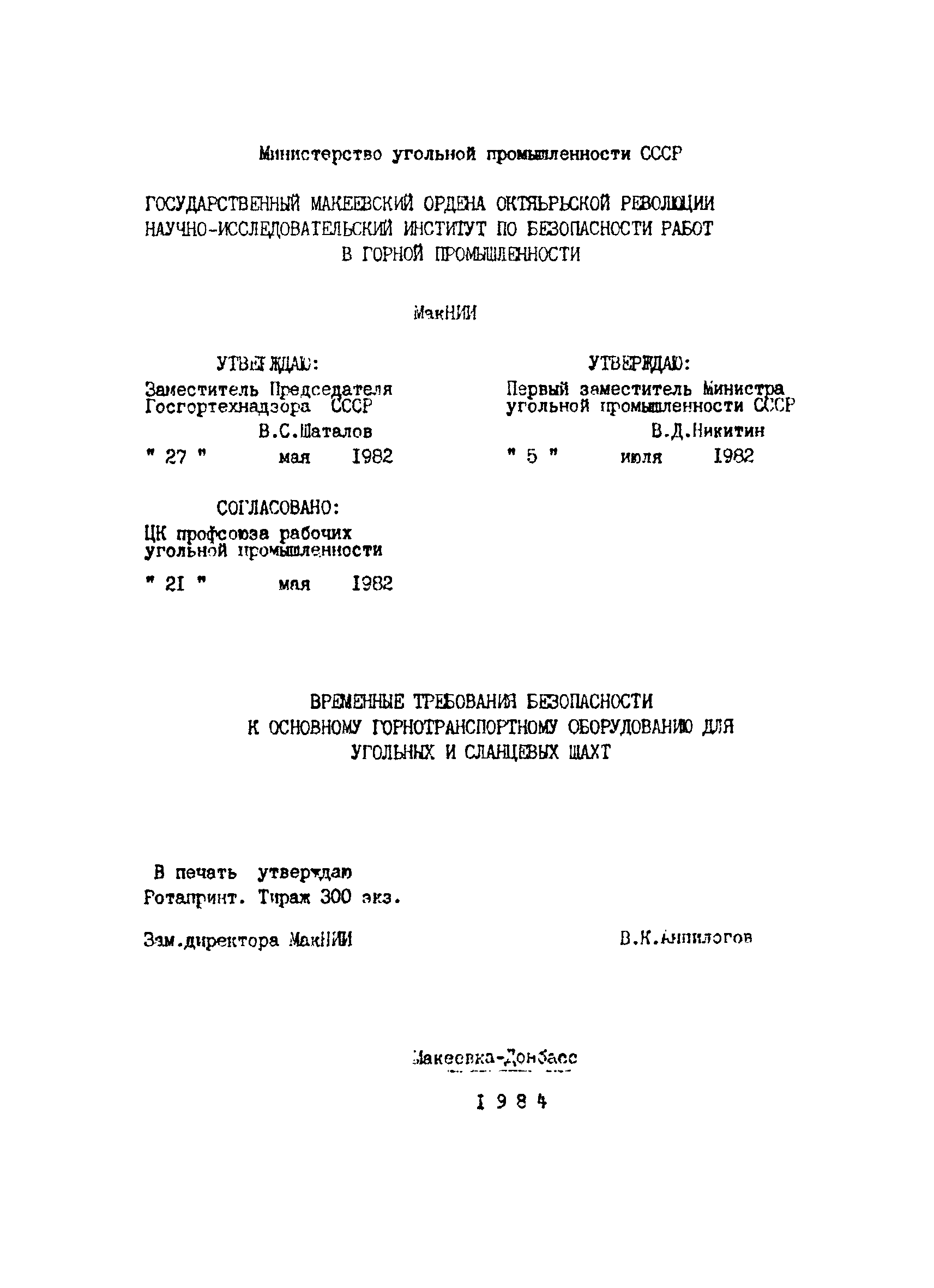 | Принят: | 21.05.1982 ЦК профсоюза рабочих угольной промышленности