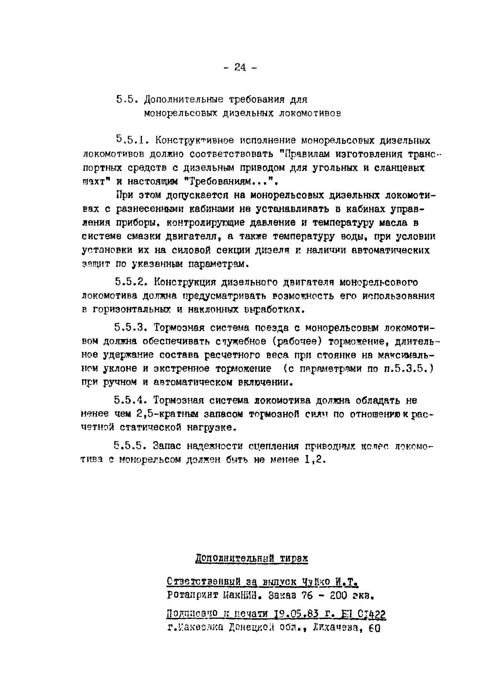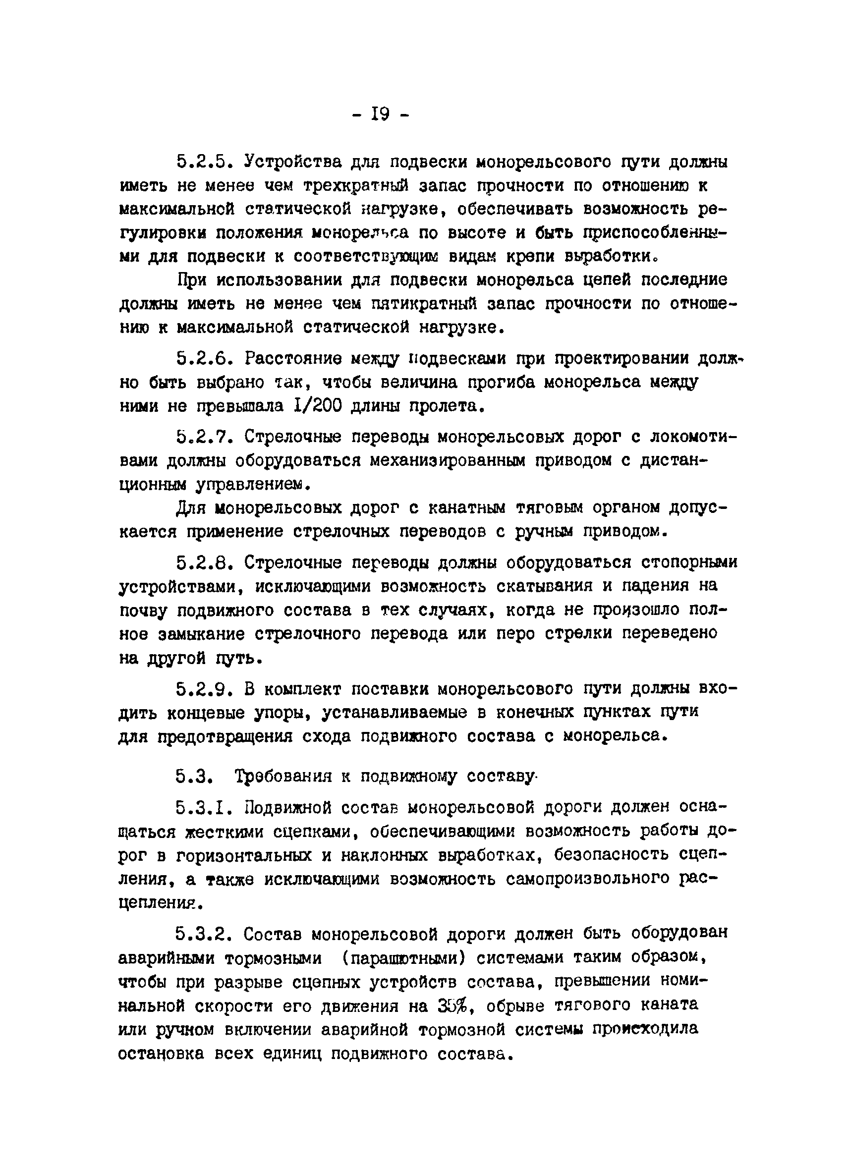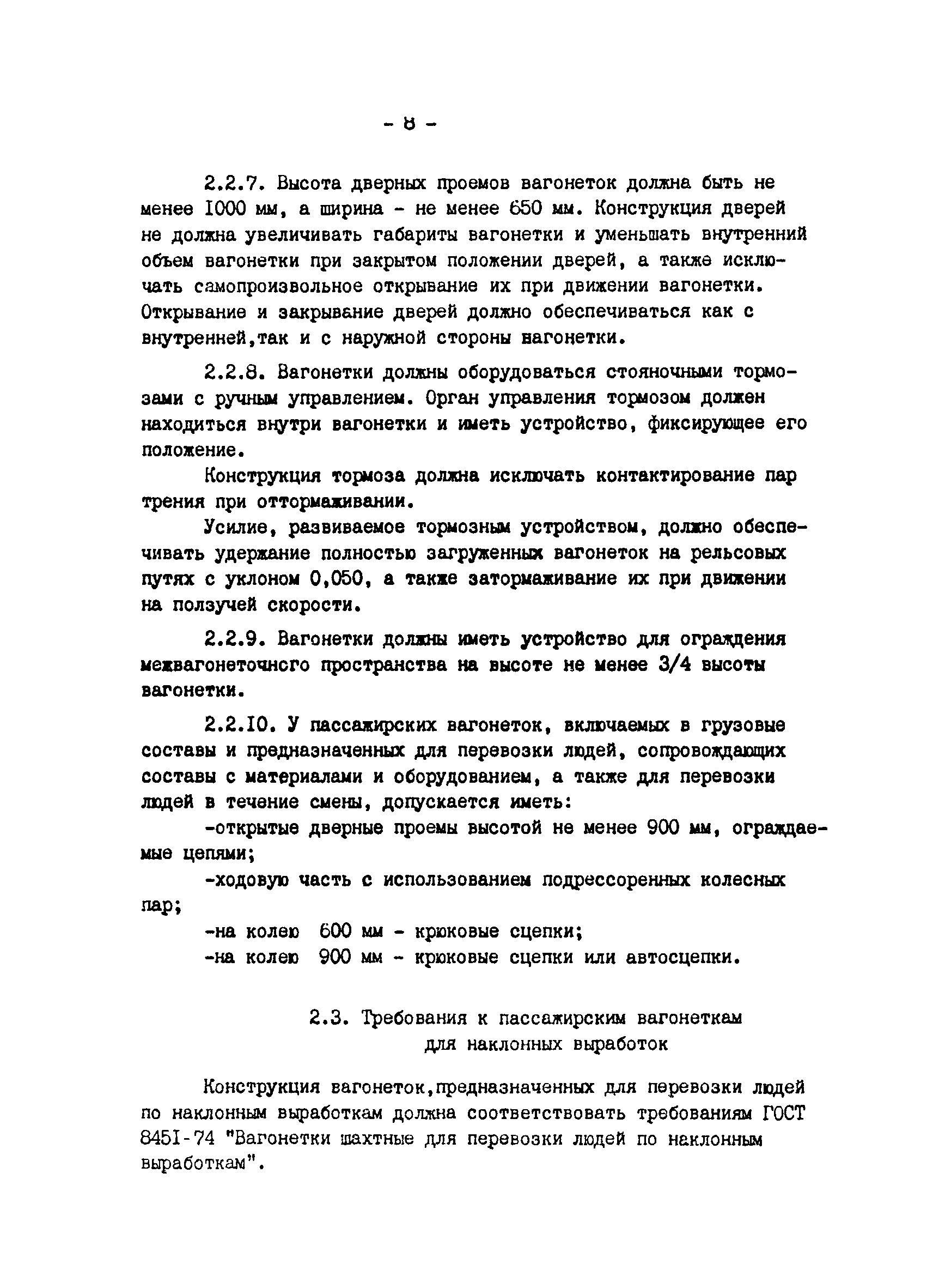 | Оглавление: | Предисловие 1 Общие положения 2 Требования к подвижному составу 2.1 Требования к грузовым вагонеткам 2.2 Требования к пассажирским вагонеткам для горизонтальных выработок 2.3 Требования к пассажирским вагонеткам для наклонных выработок 2.4 Требования к средствам доставки материалов и оборудования 3 Требования к грузовым ленточным конвейерам 4 Требования к шахтным электровозам 4.1 Общие требования 4.2 Требования к кабинам электровозов 4.3 Требования к тормозным системам электровозов 4.4 Требования х электрическому оборудованию электровозов 4.5 Требования к освещению электровозов 5 Требования к грузолюдским подвесным монорельсовым дорогам 5.1 Общие требования 5.2 Требования к монорельсовому пути 5.3 Требования к подвижному составу 5.4 Дополнительные требования для монорельсовых дорог с канатным тяговым органом 5.5 Дополнительные требования для монорельсовых дизельных локомотивов |