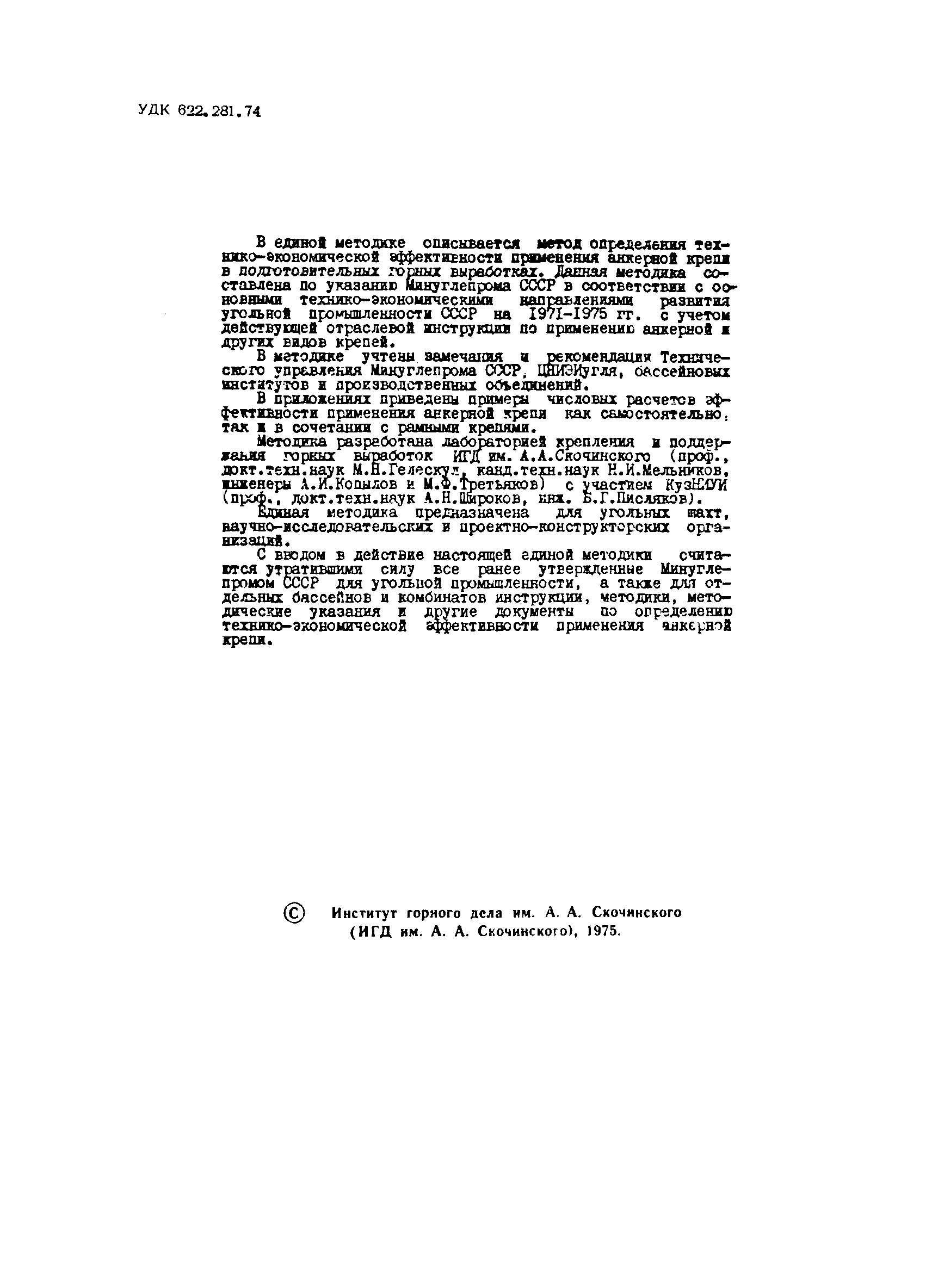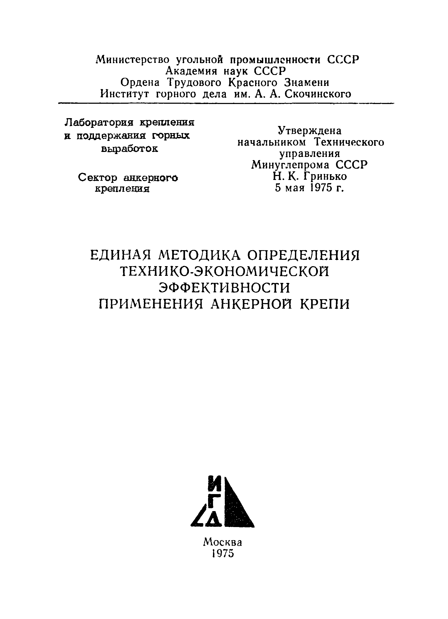 | Название рус.: | Единая методика определения технико-экономической эффективности применения анкерной крепи |