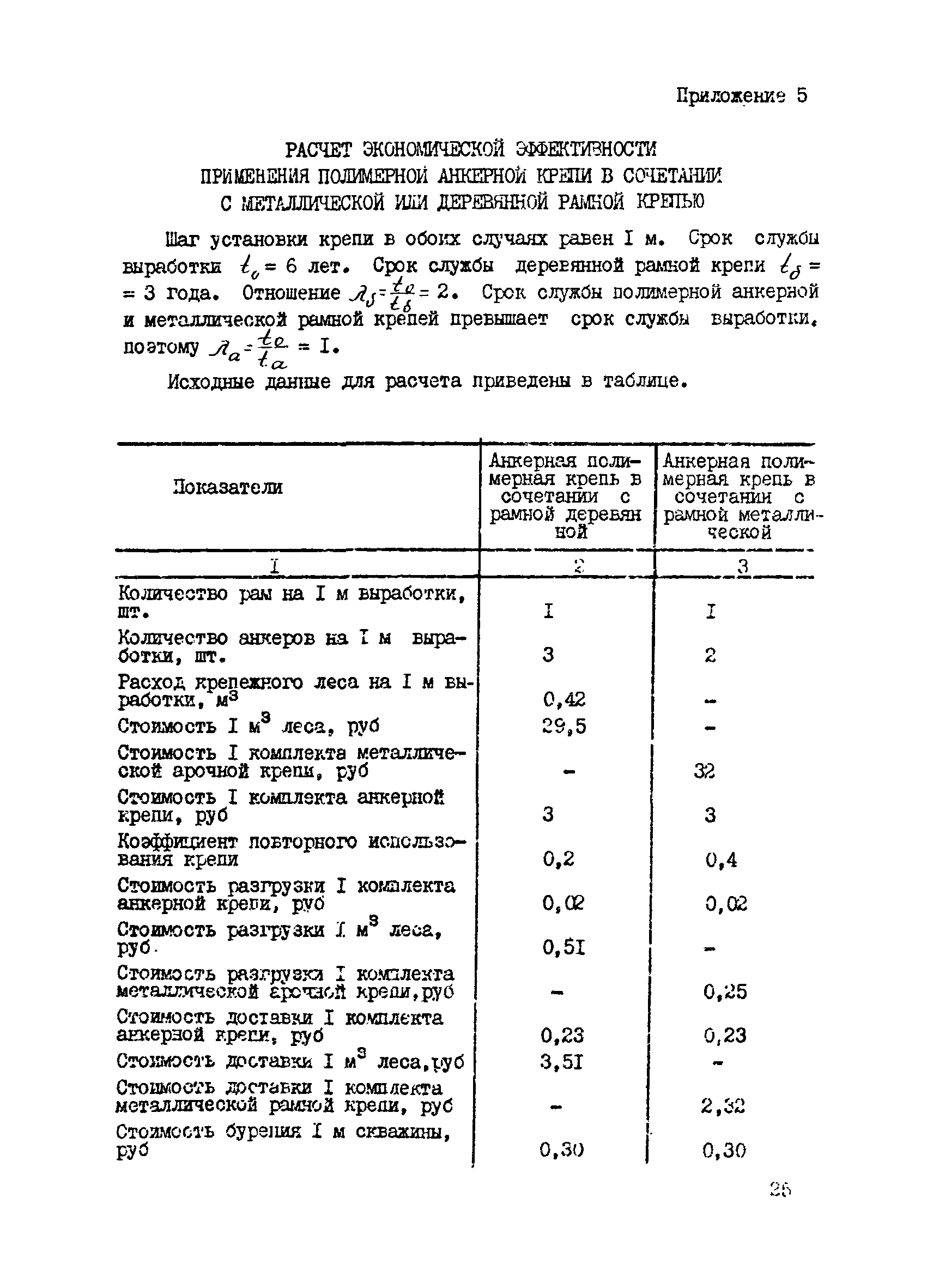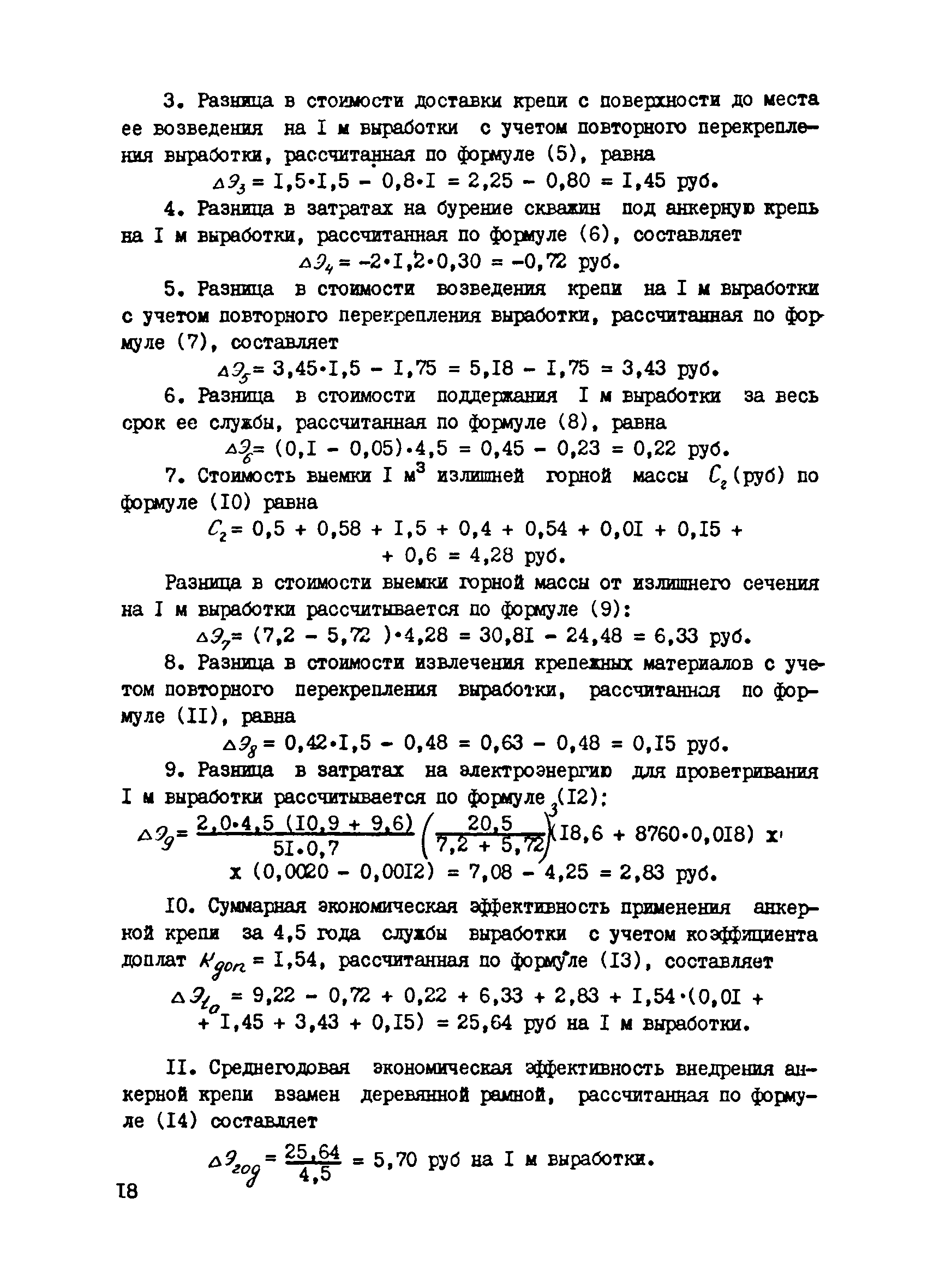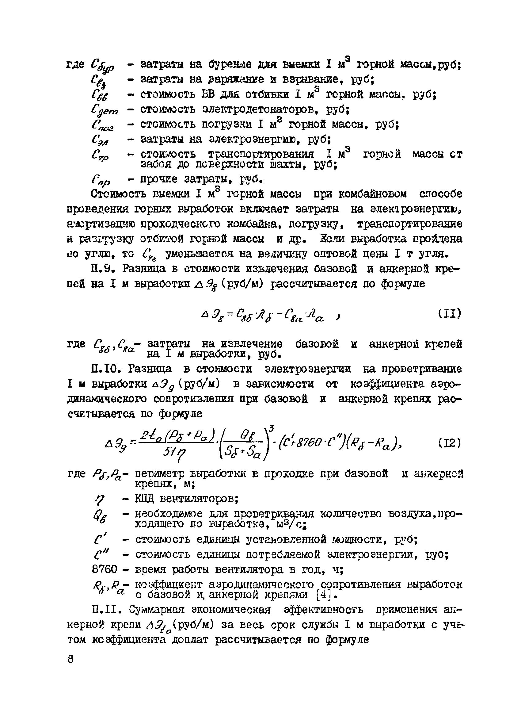 | Оглавление: | I Общие положения II Определение технико—экономической эффективности применения анкерной крепи III Определение трудоемкости применения анкерной крепи Приложение 1. Расчет экономической эффективности применения деревянной анкерной крепи с металлической сеткой в ходовой печи по сравнению с бенцовой крепью Приложение 2. Расчет экономической эффективности применения металлической анкерной крепи в конвейерном штреке по сравнению с деревянной крепью Приложение 3. Расчет экономической эффективности применения анкерной крепи по сравнению с металлической рамной из СВП—27 Приложение 4. Расчет экономической эффективности применения металлической анкерной крепи в сочетании металлической рамкой по сравнению с деревянной рамной крепью Приложение 5. Расчет экономической эффективности применения полимерной анкерной крепи в сочетании с металлической или деревянной рамной крепью Литература |