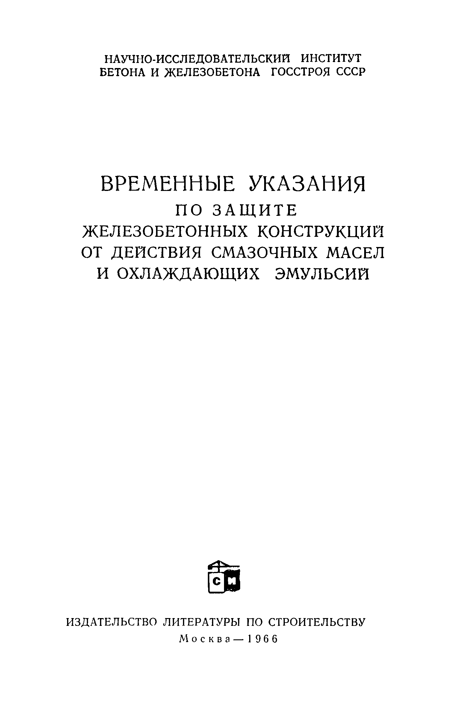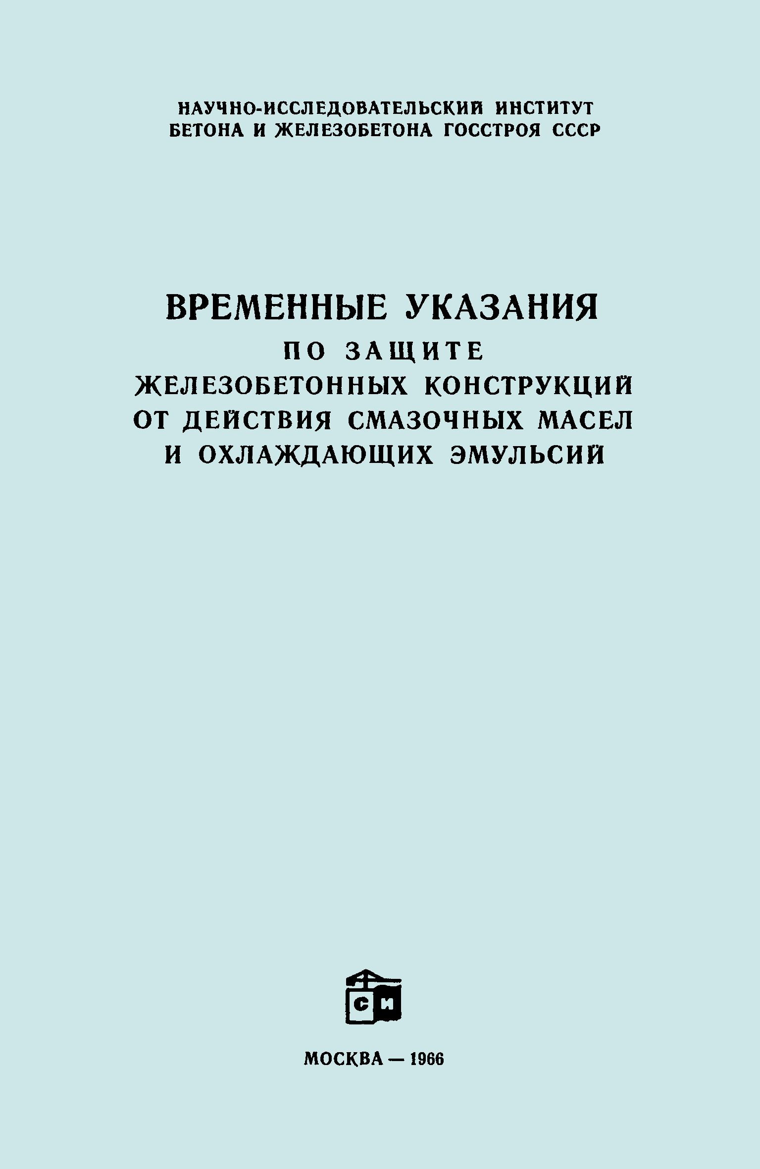 | Название рус.: | Временные указания по защите железобетонных конструкций от действия смазочных масел и охлаждающих эмульсий |