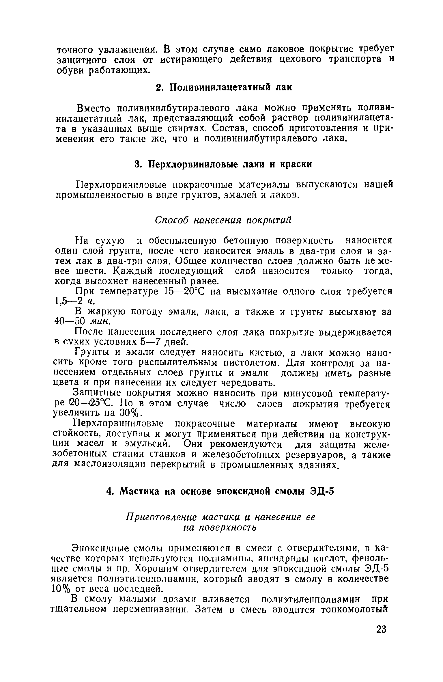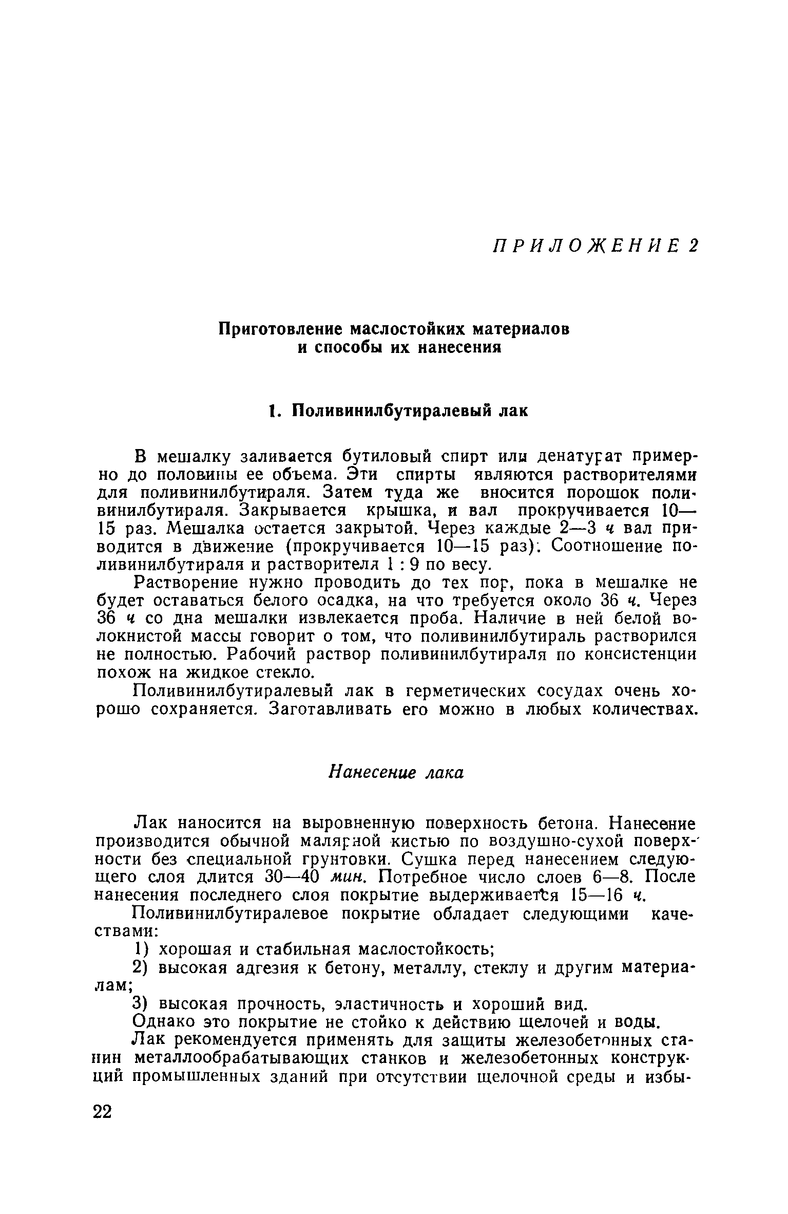 | Оглавление: | 1 Общие положения 2 Механизм действия минеральных масел и эмульсий на цементные растворы и бетоны 3 Выбор материалов для изготовления бетонов и рекомендуемые составы 4 Мероприятия и материалы для защиты бетона от действия масел и эмульсии 5 Конструкции полов, защитных и сливных устройств в цехах металлообрабатывающих, текстильных и других производств Приложение 1. Подбор состава бетона Приложение 2. Подготовка поверхности бетона и железобетояа для нанесения лаков и красок Приложение 3. Приготовление маслостойких материалов и способы их нанесения |