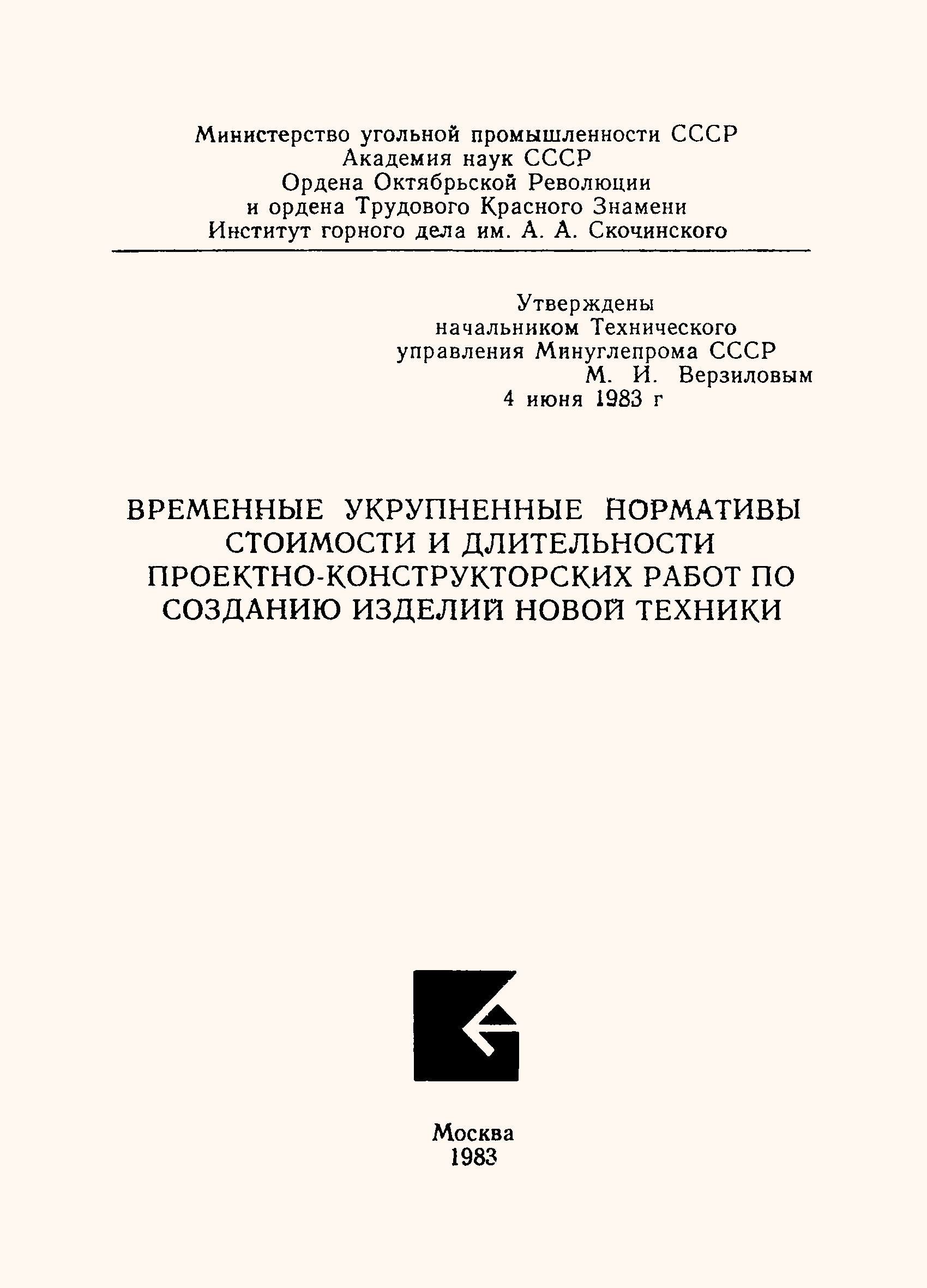 | Утверждён: | 04.06.1983 Министерство угольной промышленности СССР (USSR Ministry of the Coal Industry )
