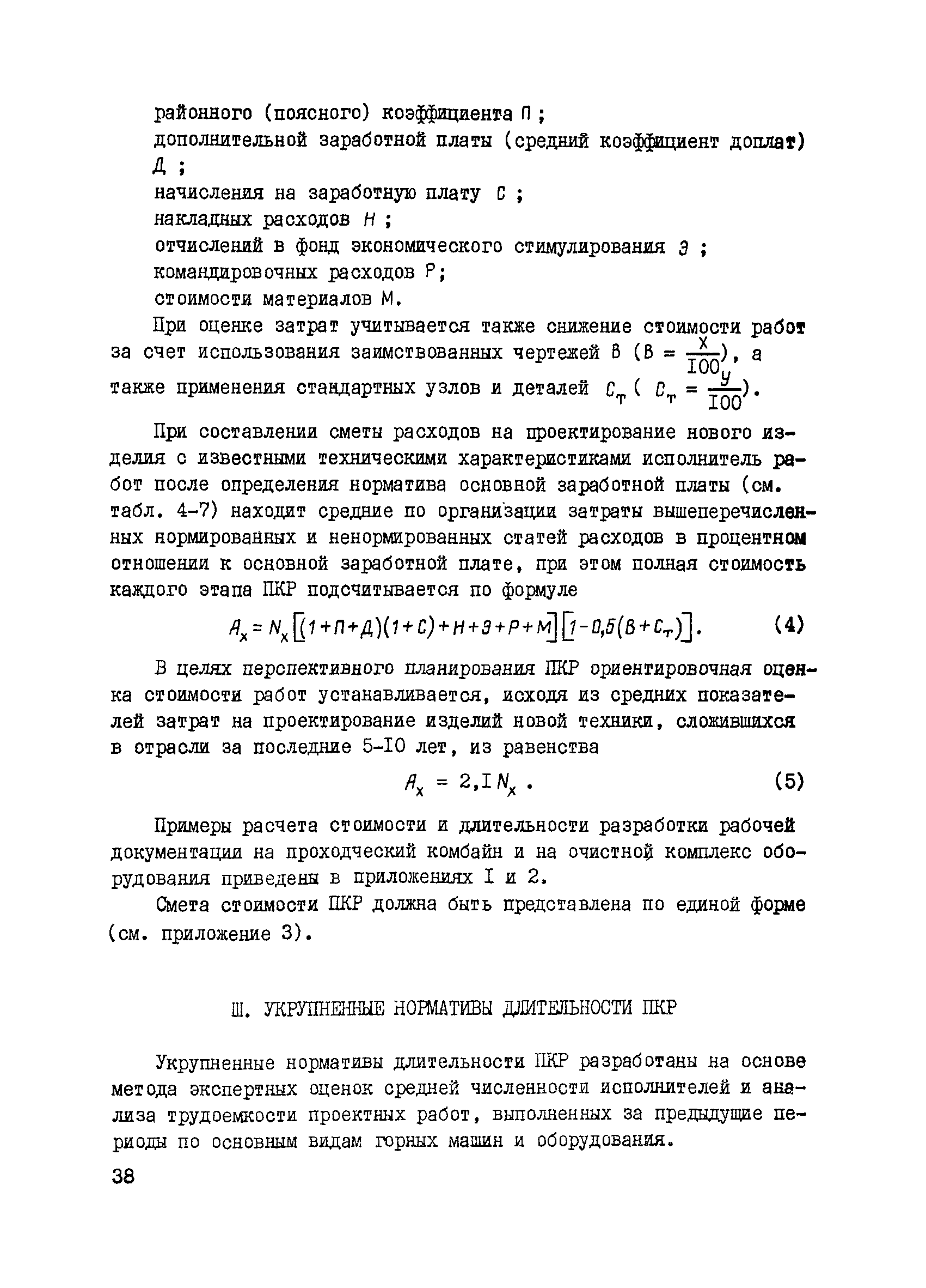 | Оглавление: | Общие сведения I Методологические принципы разработки укрупненных нормативов стоимости проектно—конструкторских работ II Укрупненные нормативы основной заработной платы при проведении ПКР III Укрупненные нормативы длительности Приложение 1. Пример расчета стоимости и длительности разработки технического проекта проходческого комбайна Приложение 2. Пример расчета стоимости и длительности разработки рабочей документации очистного комплекса оборудования Приложение 3. Смета стоимости |