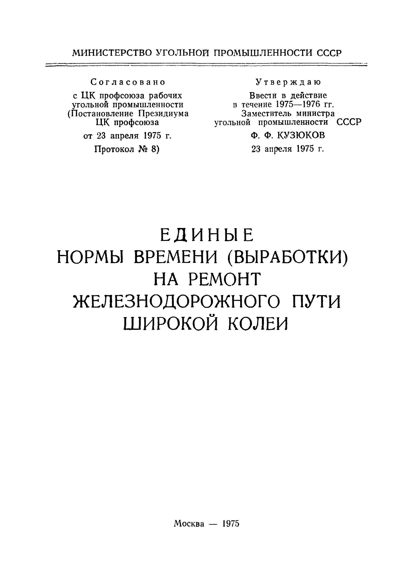 | | Утверждён: | 23.04.1975 Министерство угольной промышленности СССР (USSR Ministry of the Coal Industry )