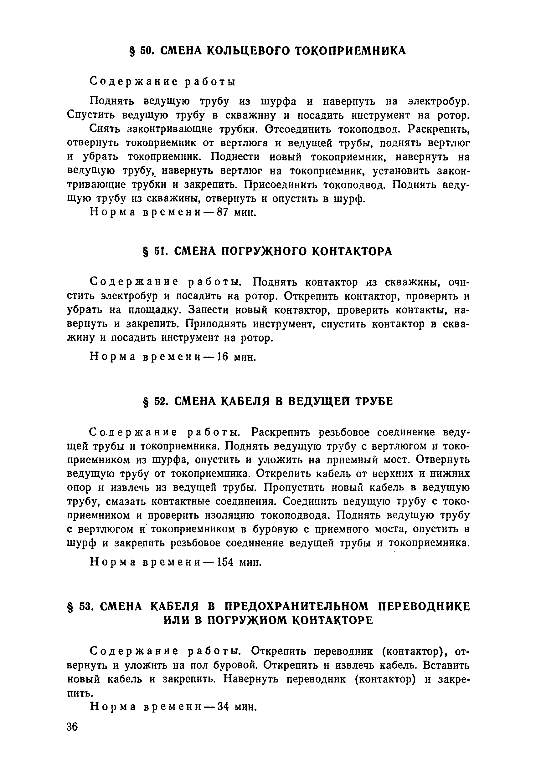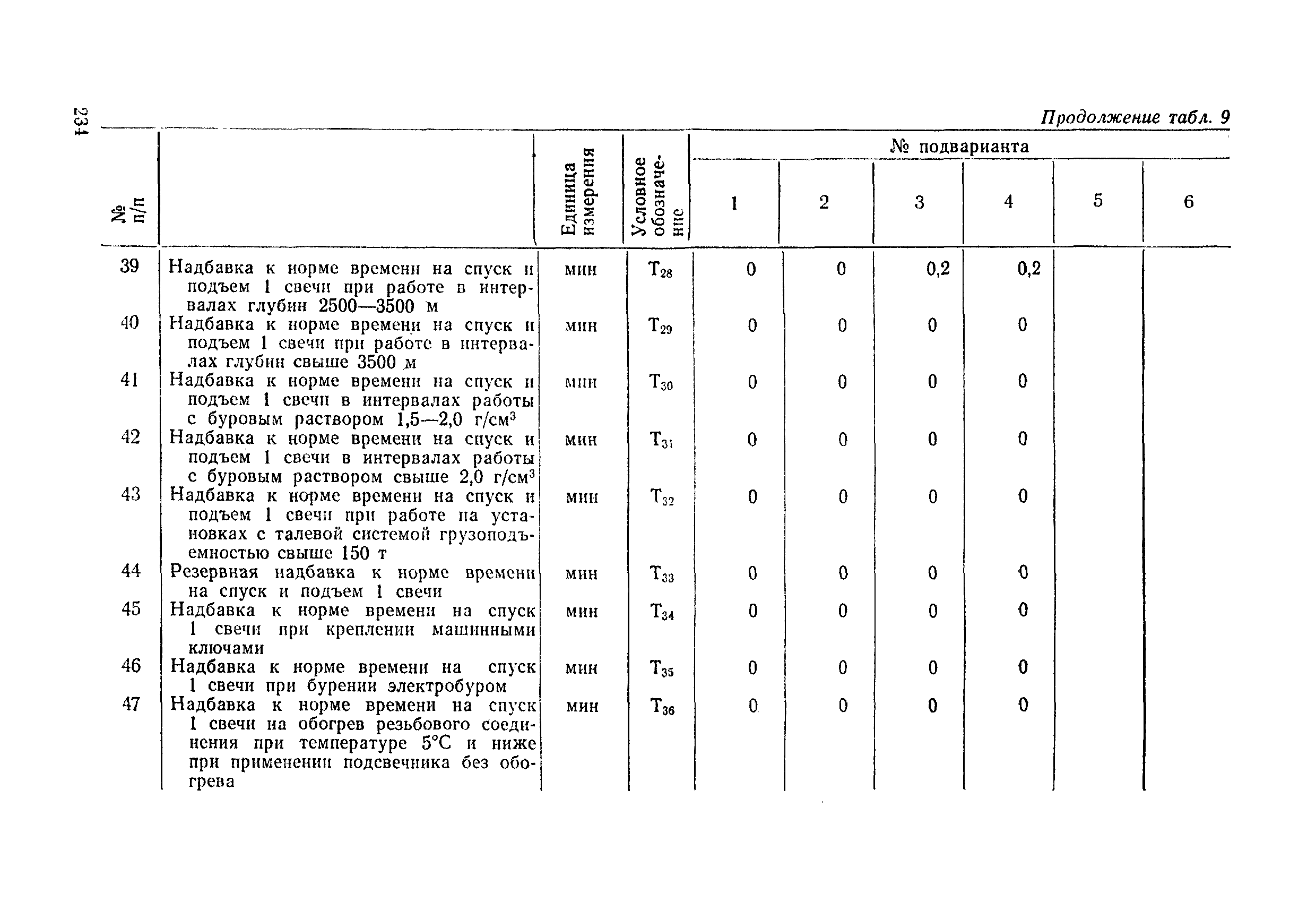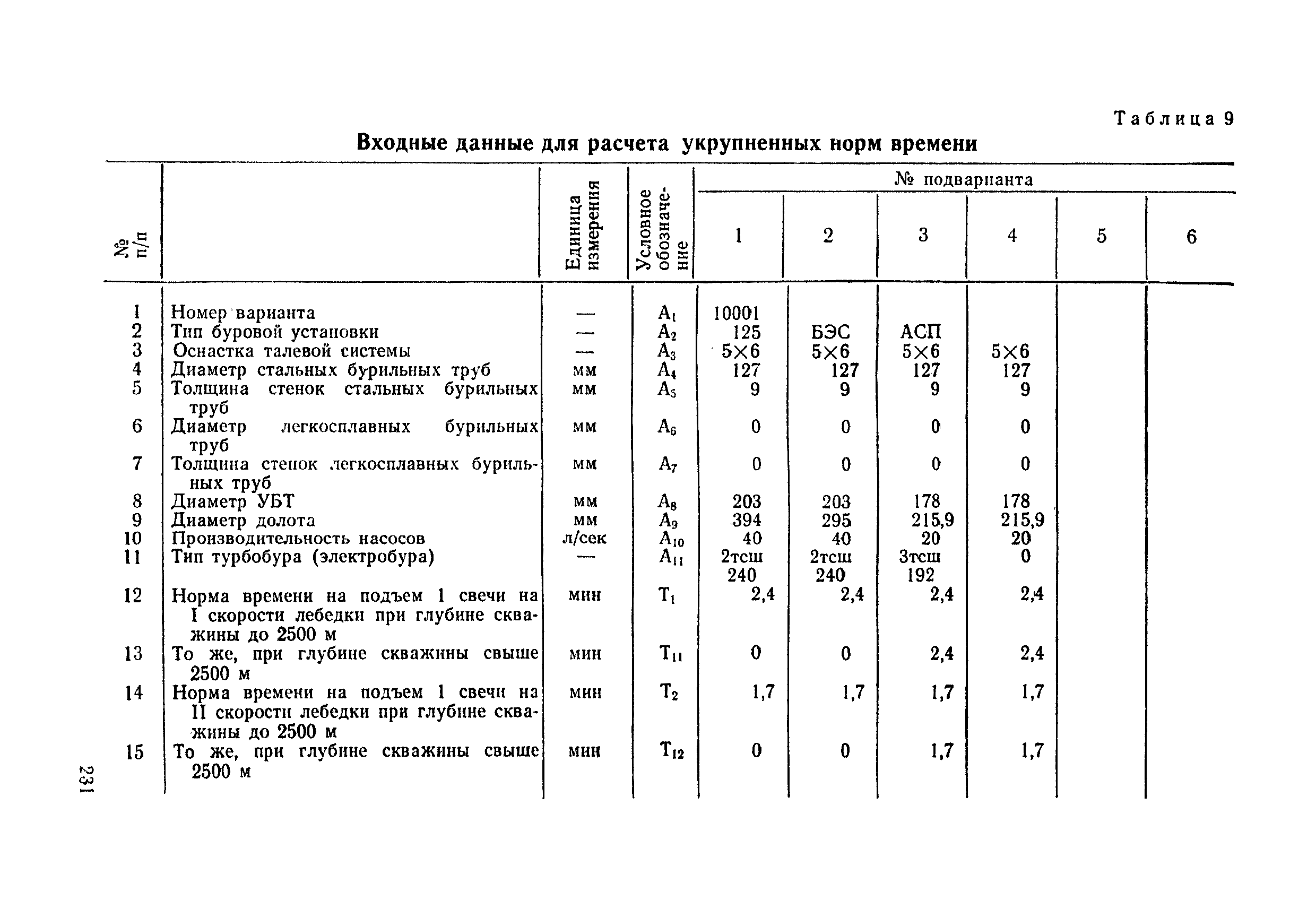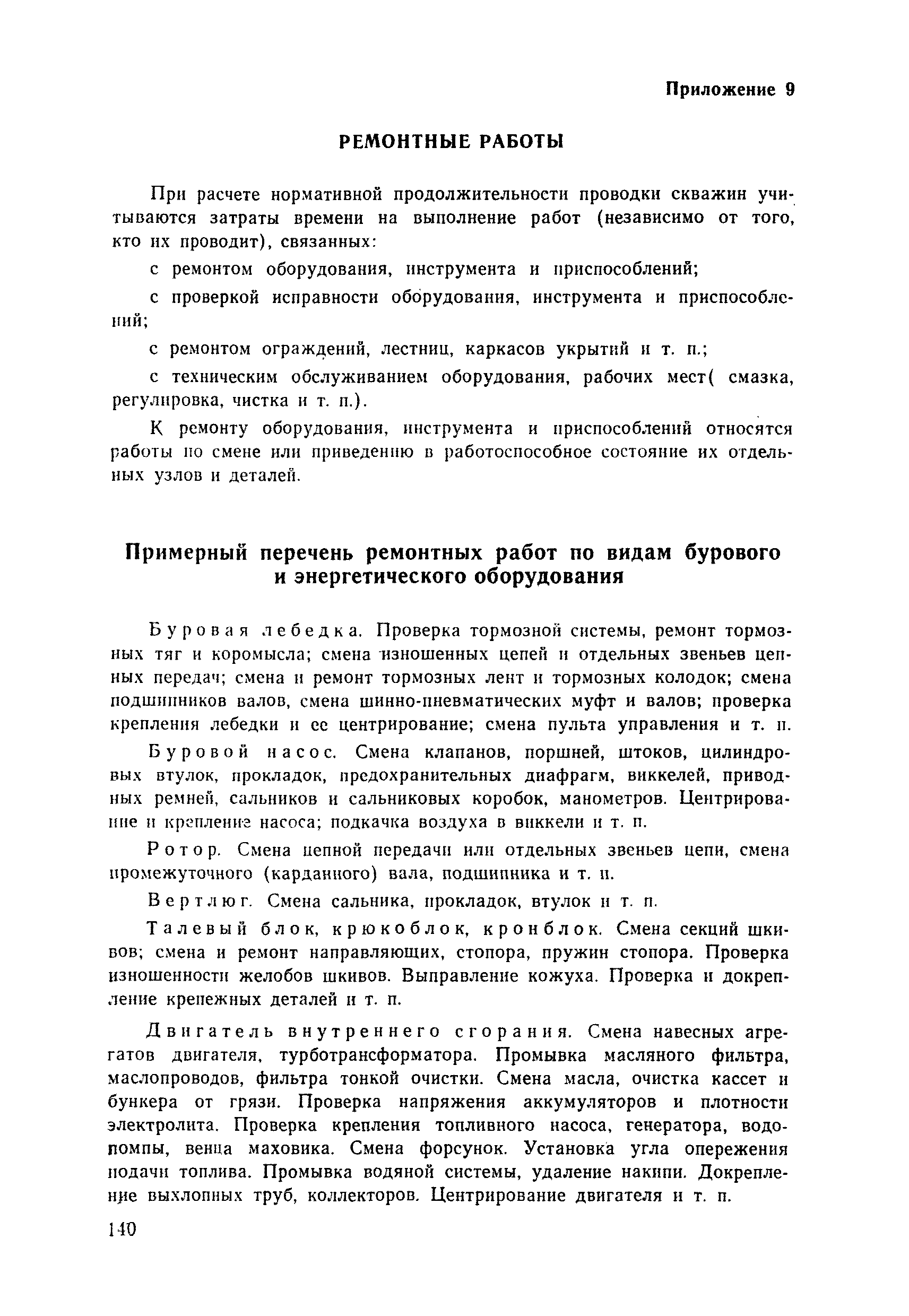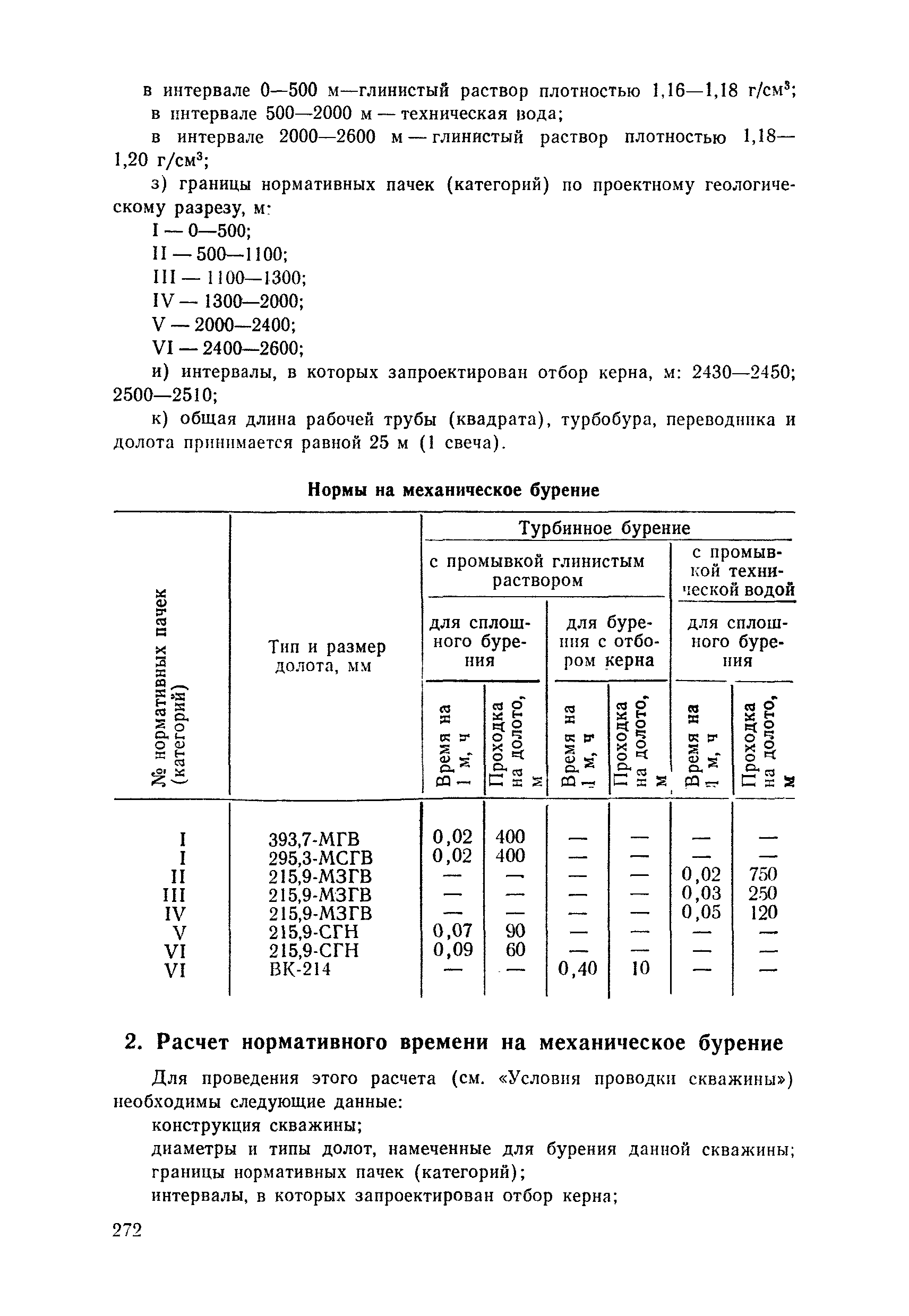 Единые нормы времени на бурение скважин на нефть, газ и другие полезные ископаемые| Статус: | не действует | | Название рус.: | Единые нормы времени на бурение скважин на нефть, газ и другие полезные ископаемые | | Дата добавления в базу: | 01.01.2018 | | Дата актуализации: | 01.01.2021 | | Область применения: | Единые нормы времени на основные виды работ, выполняемые при бурении разведочных, эксплуатационных, опорных, параметрических скважин с применением как роторного способа бурения, так и забойных двигателей, являются обязательными для применения на предприятиях и в организациях, выполняющих указанные работы, независимо от их ведомственной подчиненности и служат для нормирования труда рабочих, находящихся на сдельной оплате труда, а также для разработки нормированных заданий при по- временной оплате труда. Нормы настоящего сборника могут быть использованы для расчета комплексных норм времени. | | Оглавление: | 1. Общая часть 2. Организация труда 3. Нормативная часть 3.1. Нормы времени на подготовительно-заключительные и вспомогательные работы § 1. Подготовительные работы к бурению скважин § 2. Подготовительные работы перед спуском инструмента § 3. Заключительные работы после спуска инструмента § 4. Подготовительные работы перед подъемом инструмента § 5. Наращивание инструмента § 6. Отвертывание долота. Проверка забойного двигателя и укладка на приемный мост § 7. Подъем забойного двигателя в буровую с приемного моста, навертывание долота § 8. Сборка секционного турбобура § 9. Разборка секционного турбобура § 10. Сборка электробура для наклонно-направленного бурения § 11. Разборка электробура для наклонно-направленного бурения § 12. Проверка забойных двигателей § 13. Смена шпинделя турбобура § 14. Сборка колонкового снаряда при роторном бурении и бурении турбобуром с колонковой трубой § 15. Разборка колонкового снаряда при бурении ротором или турбобуром с колонковой трубой (надставкой) § 16. Сборка колонкового турбодолота § 17. Разборка колонкового турбодолота § 18. Подъем и спуск съемной грунтоноски § 19. Сборка колонковых снарядов типа «Недра» и «СКУ» § 20. Разборка колонковых снарядов типа «Недра» и «СКУ» § 21. Сборка утяжеленных бурильных труб § 22. Разборка утяжеленных бурильных труб § 23. Установка утяжеленных бурильных труб за палец § 24. Вывод утяжеленных бурильных труб из-за пальца и спуск в скважину § 25. Спуск утяжеленных бурильных труб в дополнительный шурф (длина свечи 25 м) § 26. Подъем утяжеленных бурильных труб из дополнительного шурфа (длина свечи 25 м) § 27. Подготовительно-заключительные работы при сборке и разборке колонны бурильных труб в скважине или в шурфе при смене диаметра бурильных труб § 28. Сборка колонны бурильных труб § 29. Разборка колонны бурильных труб § 30. Проверка резьбовых соединений бурильных труб ультразвуковой дефектоскопией при спуско-подъемных операциях на скважине § 31. Проверка легкосплавных бурильных труб ультразвуковой дефектоскопией при спуско-подъемных операциях на скважине § 32. Опрессовка свечей бурильных труб на буровой § 33. Сборка элементов компоновки бурильной колонны (расширителей, стабилизаторов, калибраторов, удлинителей, центраторов) § 34. Разборка элементов компоновки бурильной колонны (расширителей, стабилизаторов, калибраторов, удлинителей, центраторов) § 35. Навертывание, отвертывание переводников или вс