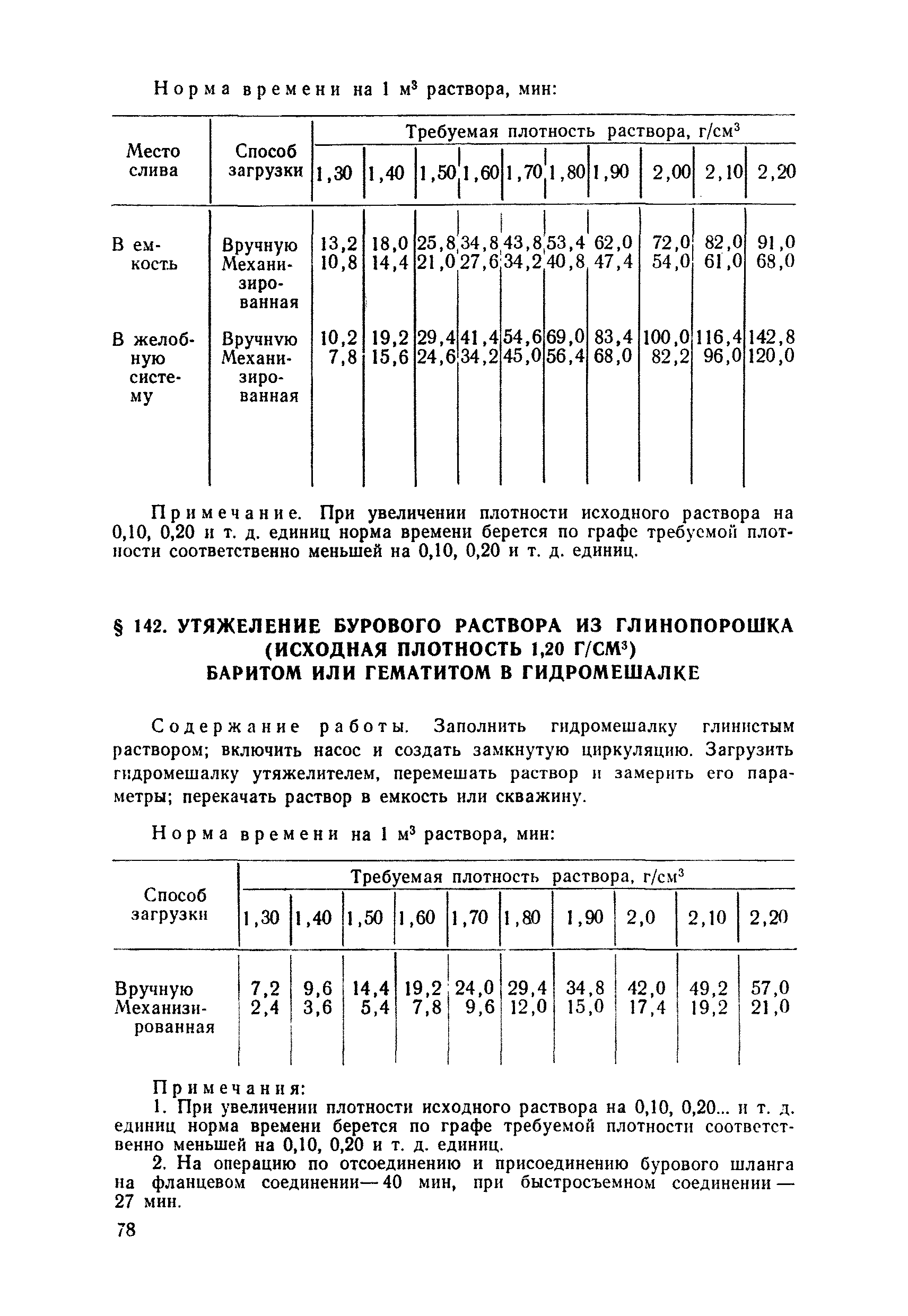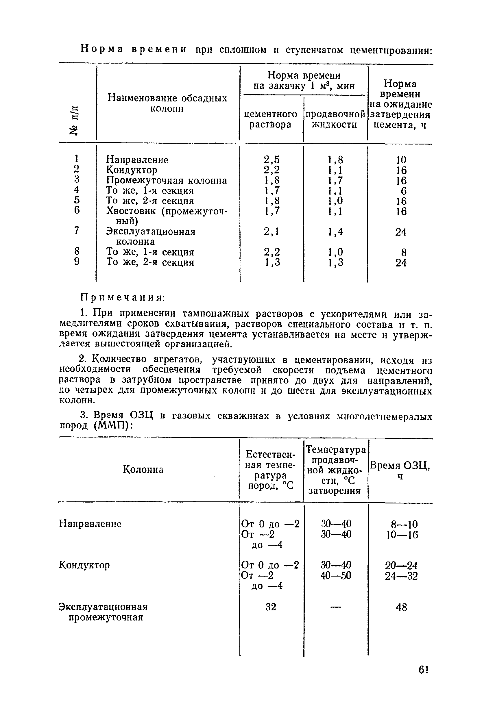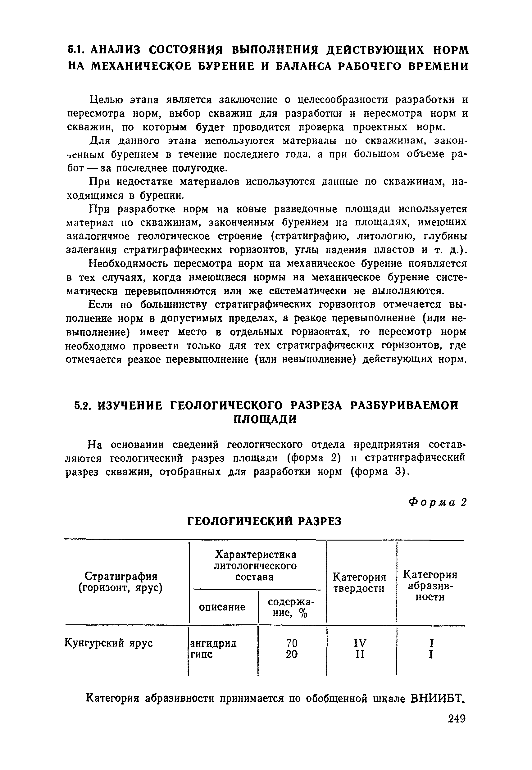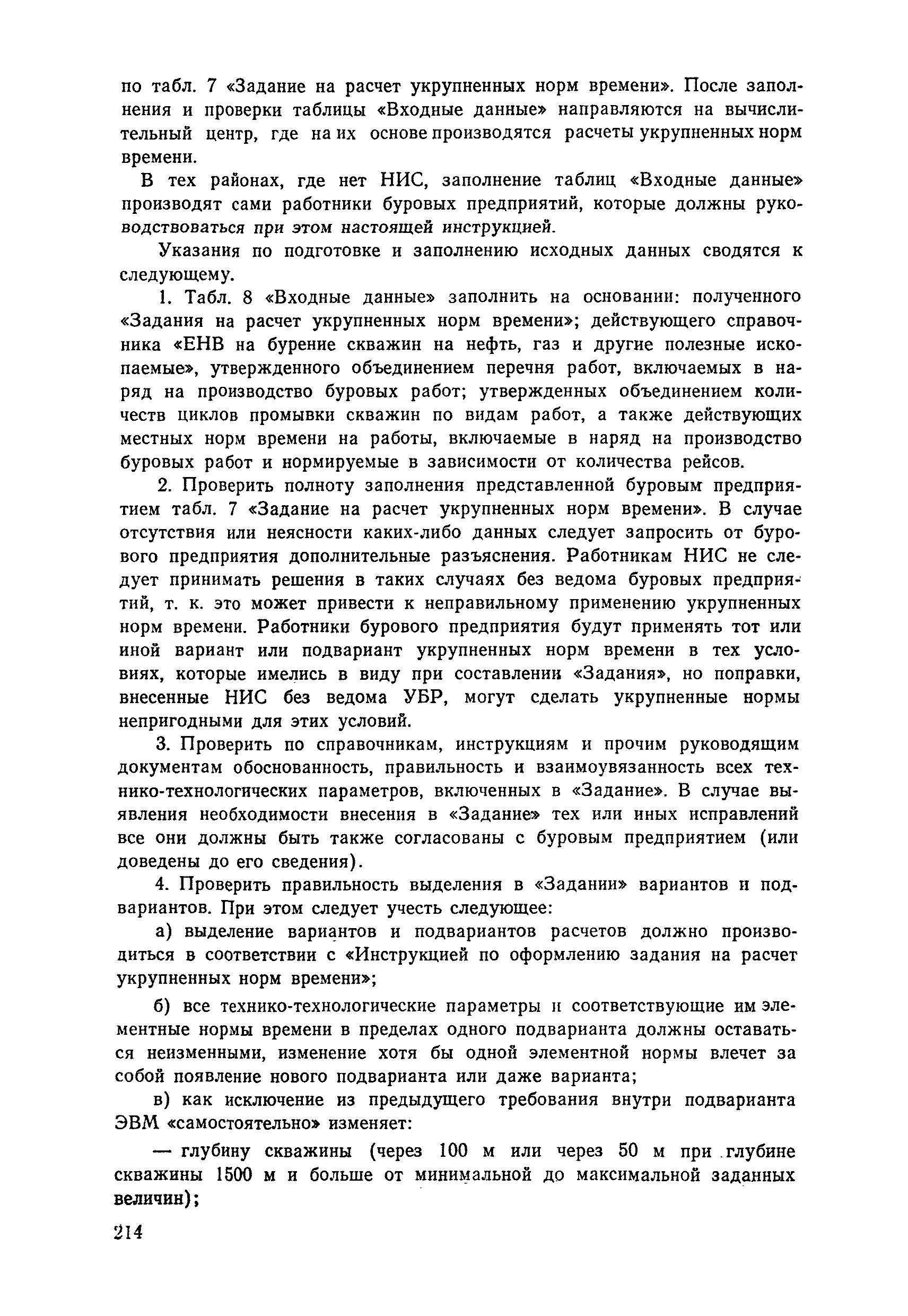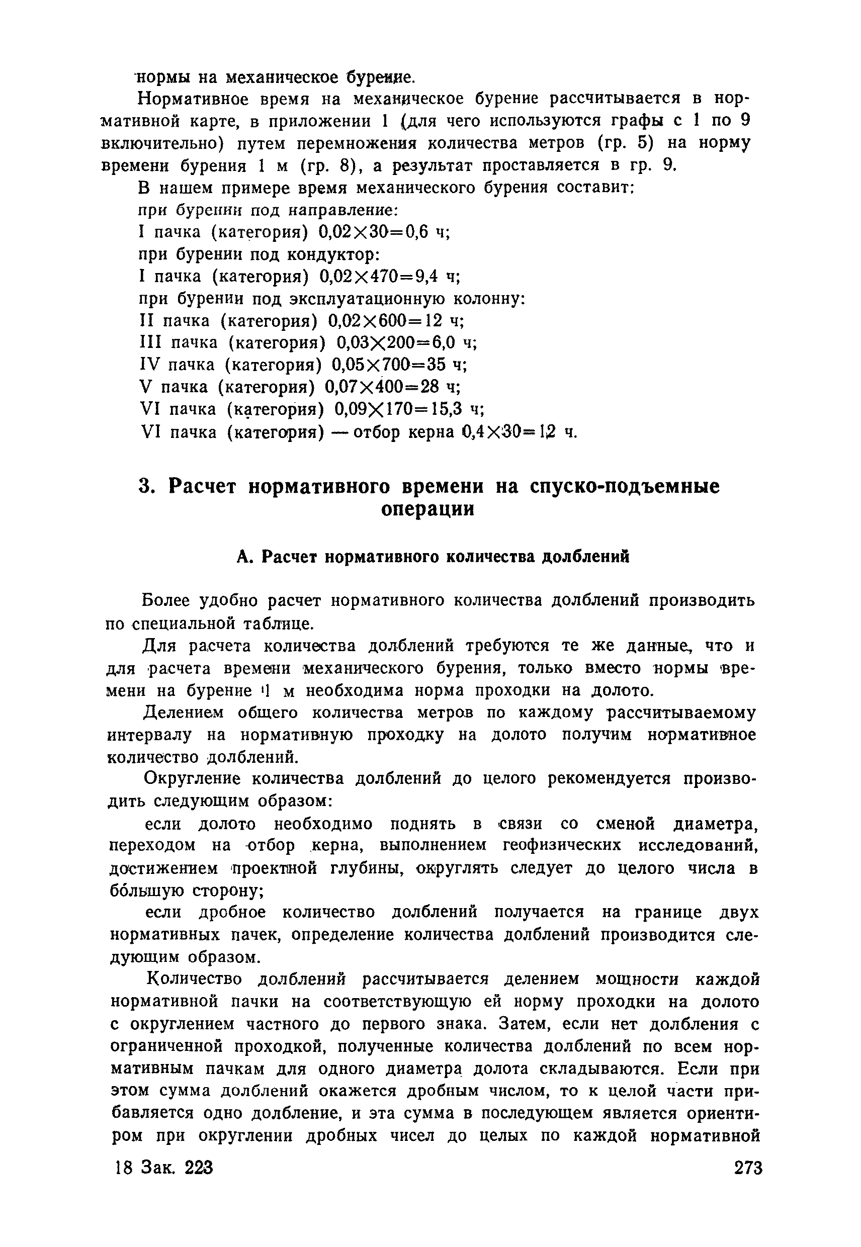 Единые нормы времени на бурение скважин на нефть, газ и другие полезные ископаемые| Статус: | не действует | | Название рус.: | Единые нормы времени на бурение скважин на нефть, газ и другие полезные ископаемые | | Дата добавления в базу: | 01.01.2018 | | Дата актуализации: | 01.01.2021 | | Область применения: | Единые нормы времени на основные виды работ, выполняемые при бурении разведочных, эксплуатационных, опорных, параметрических скважин с применением как роторного способа бурения, так и забойных двигателей, являются обязательными для применения на предприятиях и в организациях, выполняющих указанные работы, независимо от их ведомственной подчиненности и служат для нормирования труда рабочих, находящихся на сдельной оплате труда, а также для разработки нормированных заданий при по- временной оплате труда. Нормы настоящего сборника могут быть использованы для расчета комплексных норм времени. | | Оглавление: | 1. Общая часть 2. Организация труда 3. Нормативная часть 3.1. Нормы времени на подготовительно-заключительные и вспомогательные работы § 1. Подготовительные работы к бурению скважин § 2. Подготовительные работы перед спуском инструмента § 3. Заключительные работы после спуска инструмента § 4. Подготовительные работы перед подъемом инструмента § 5. Наращивание инструмента § 6. Отвертывание долота. Проверка забойного двигателя и укладка на приемный мост § 7. Подъем забойного двигателя в буровую с приемного моста, навертывание долота § 8. Сборка секционного турбобура § 9. Разборка секционного турбобура § 10. Сборка электробура для наклонно-направленного бурения § 11. Разборка электробура для наклонно-направленного бурения § 12. Проверка забойных двигателей § 13. Смена шпинделя турбобура § 14. Сборка колонкового снаряда при роторном бурении и бурении турбобуром с колонковой трубой § 15. Разборка колонкового снаряда при бурении ротором или турбобуром с колонковой трубой (надставкой) § 16. Сборка колонкового турбодолота § 17. Разборка колонкового турбодолота § 18. Подъем и спуск съемной грунтоноски § 19. Сборка колонковых снарядов типа «Недра» и «СКУ» § 20. Разборка колонковых снарядов типа «Недра» и «СКУ» § 21. Сборка утяжеленных бурильных труб § 22. Разборка утяжеленных бурильных труб § 23. Установка утяжеленных бурильных труб за палец § 24. Вывод утяжеленных бурильных труб из-за пальца и спуск в скважину § 25. Спуск утяжеленных бурильных труб в дополнительный шурф (длина свечи 25 м) § 26. Подъем утяжеленных бурильных труб из дополнительного шурфа (длина свечи 25 м) § 27. Подготовительно-заключительные работы при сборке и разборке колонны бурильных труб в скважине или в шурфе при смене диаметра бурильных труб § 28. Сборка колонны бурильных труб § 29. Разборка колонны бурильных труб § 30. Проверка резьбовых соединений бурильных труб ультразвуковой дефектоскопией при спуско-подъемных операциях на скважине § 31. Проверка легкосплавных бурильных труб ультразвуковой дефектоскопией при спуско-подъемных операциях на скважине § 32. Опрессовка свечей бурильных труб на буровой § 33. Сборка элементов компоновки бурильной колонны (расширителей, стабилизаторов, калибраторов, удлинителей, центраторов) § 34. Разборка элементов компоновки бурильной колонны (расширителей, стабилизаторов, калибраторов, удлинителей, центраторов) § 35. Навертывание, отвертывание переводников или вс