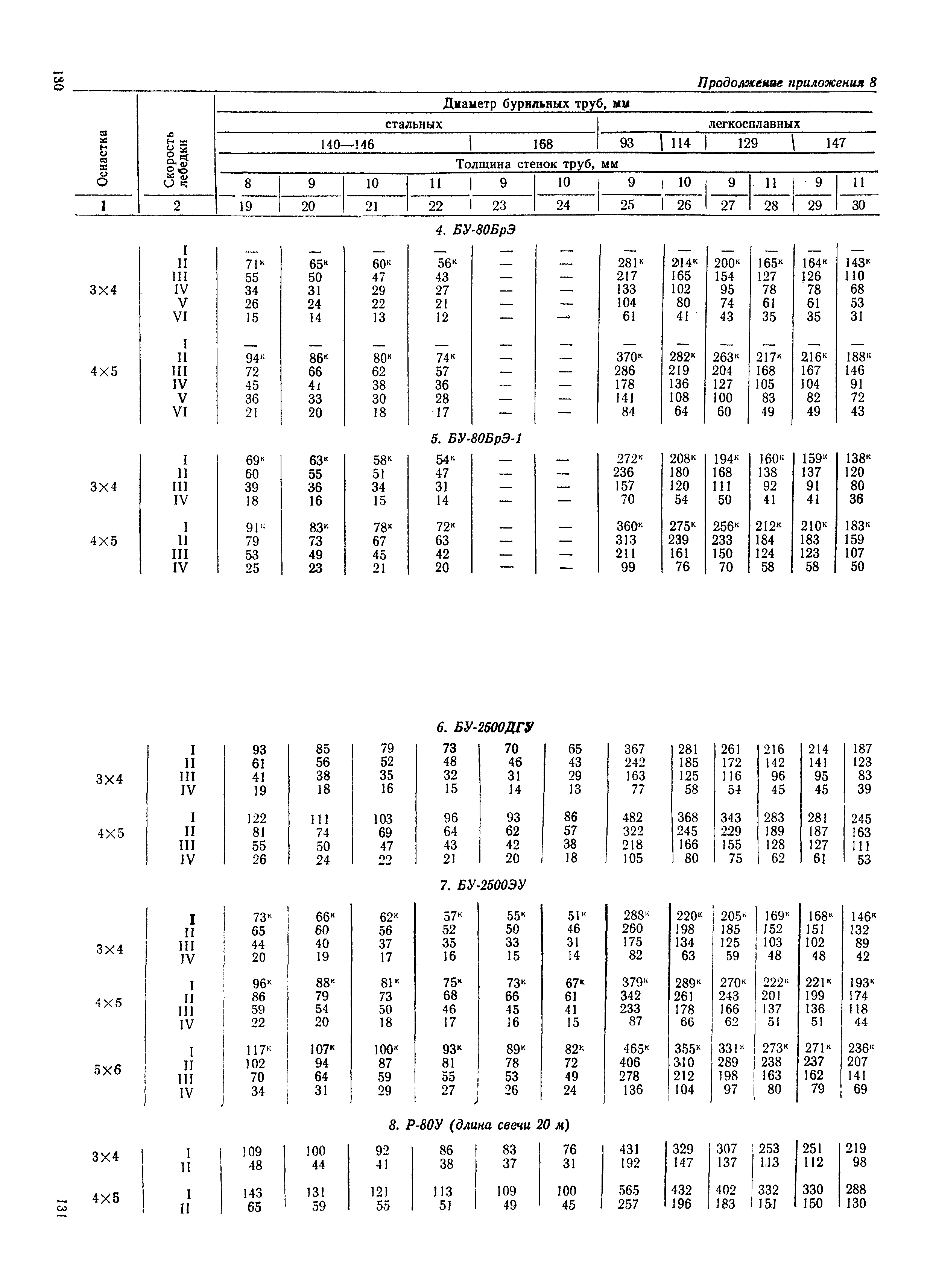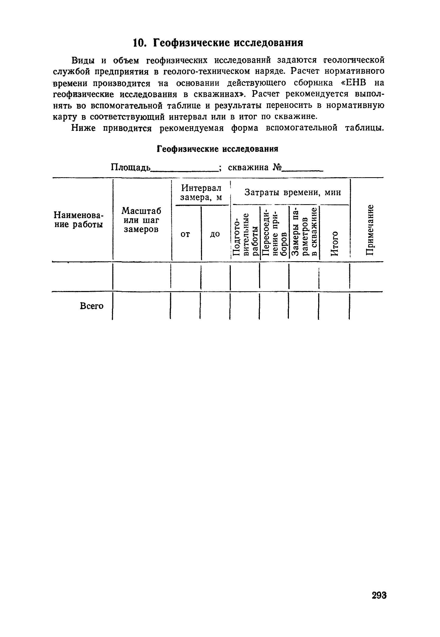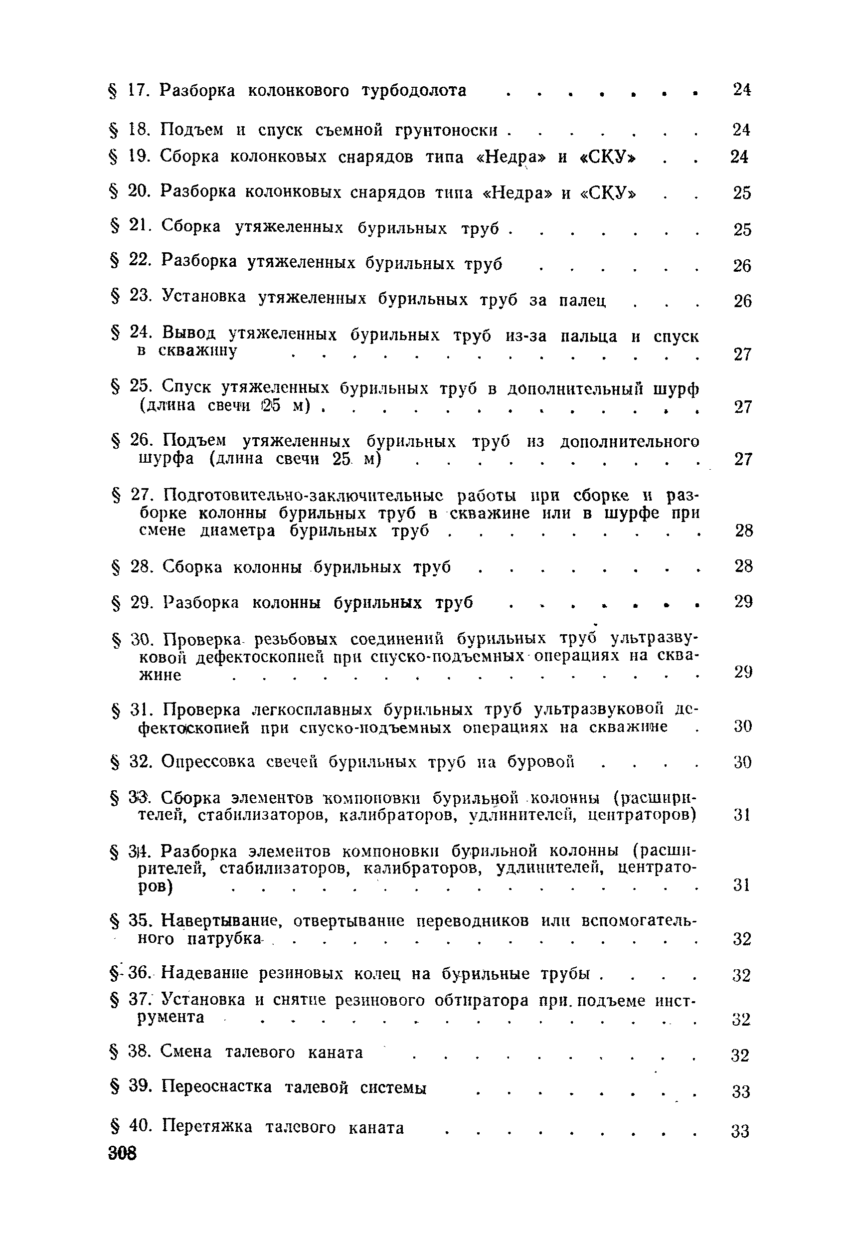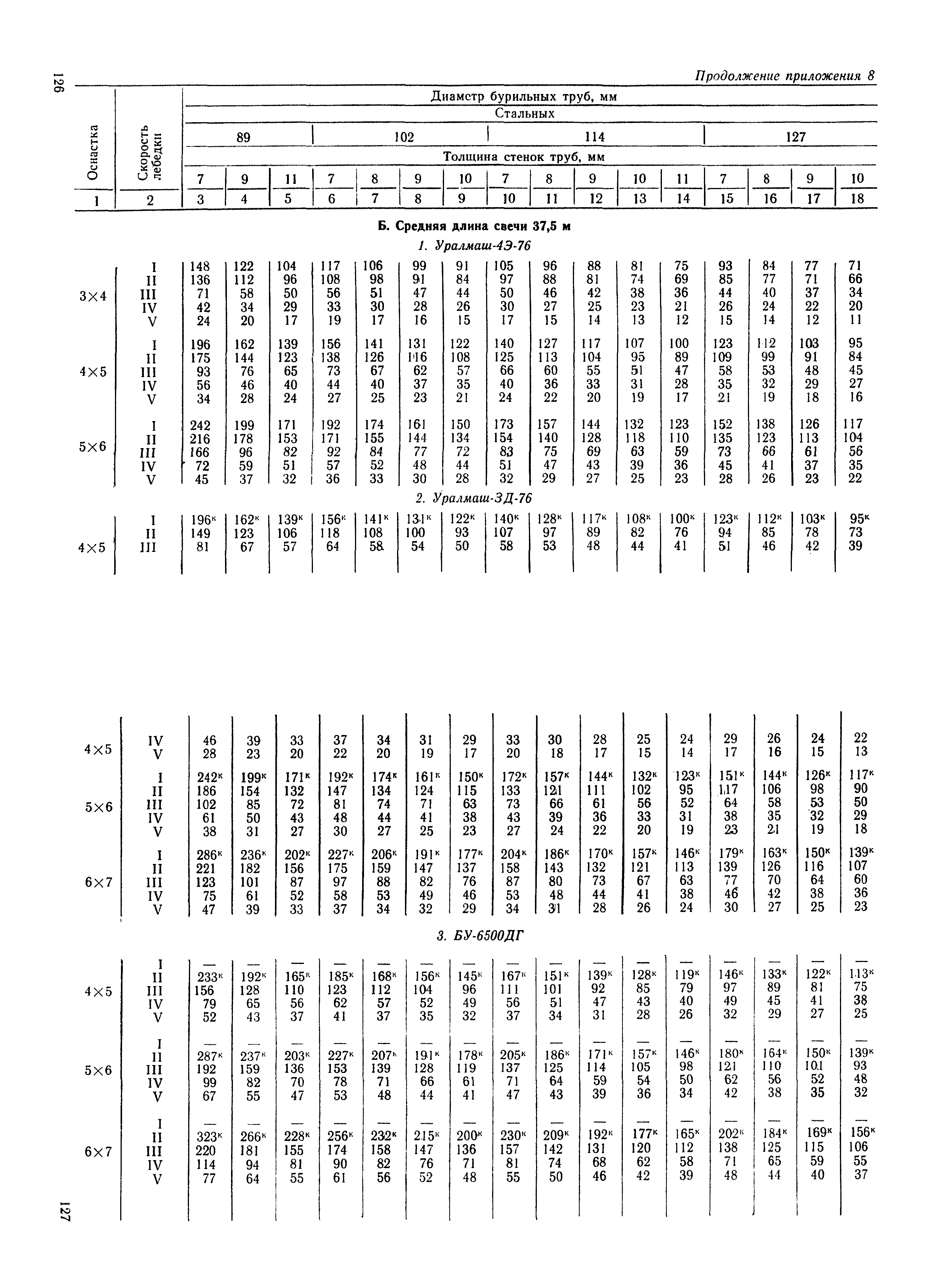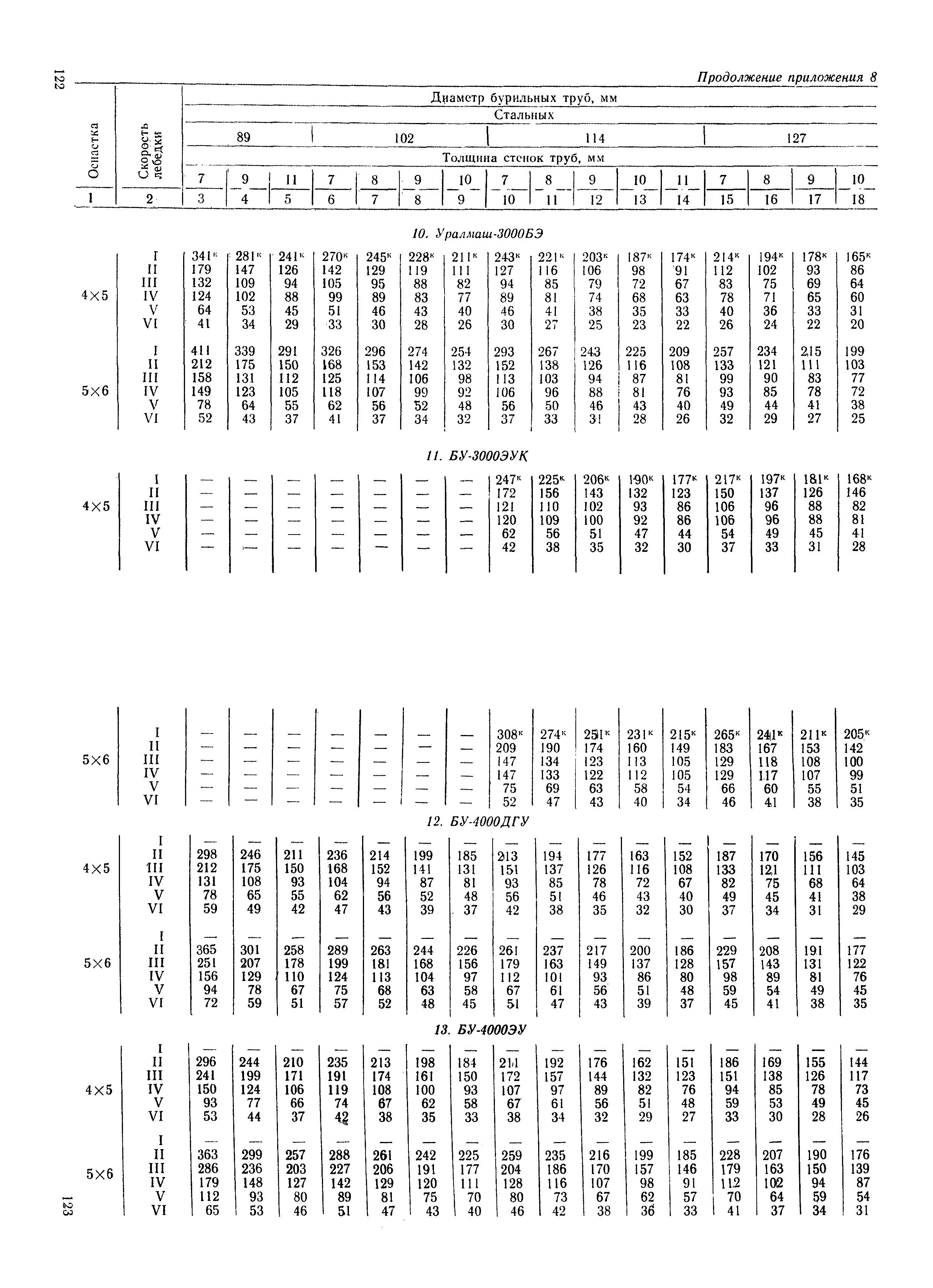 Единые нормы времени на бурение скважин на нефть, газ и другие полезные ископаемые| Статус: | не действует | | Название рус.: | Единые нормы времени на бурение скважин на нефть, газ и другие полезные ископаемые | | Дата добавления в базу: | 01.01.2018 | | Дата актуализации: | 01.01.2021 | | Область применения: | Единые нормы времени на основные виды работ, выполняемые при бурении разведочных, эксплуатационных, опорных, параметрических скважин с применением как роторного способа бурения, так и забойных двигателей, являются обязательными для применения на предприятиях и в организациях, выполняющих указанные работы, независимо от их ведомственной подчиненности и служат для нормирования труда рабочих, находящихся на сдельной оплате труда, а также для разработки нормированных заданий при по- временной оплате труда. Нормы настоящего сборника могут быть использованы для расчета комплексных норм времени. | | Оглавление: | 1. Общая часть 2. Организация труда 3. Нормативная часть 3.1. Нормы времени на подготовительно-заключительные и вспомогательные работы § 1. Подготовительные работы к бурению скважин § 2. Подготовительные работы перед спуском инструмента § 3. Заключительные работы после спуска инструмента § 4. Подготовительные работы перед подъемом инструмента § 5. Наращивание инструмента § 6. Отвертывание долота. Проверка забойного двигателя и укладка на приемный мост § 7. Подъем забойного двигателя в буровую с приемного моста, навертывание долота § 8. Сборка секционного турбобура § 9. Разборка секционного турбобура § 10. Сборка электробура для наклонно-направленного бурения § 11. Разборка электробура для наклонно-направленного бурения § 12. Проверка забойных двигателей § 13. Смена шпинделя турбобура § 14. Сборка колонкового снаряда при роторном бурении и бурении турбобуром с колонковой трубой § 15. Разборка колонкового снаряда при бурении ротором или турбобуром с колонковой трубой (надставкой) § 16. Сборка колонкового турбодолота § 17. Разборка колонкового турбодолота § 18. Подъем и спуск съемной грунтоноски § 19. Сборка колонковых снарядов типа «Недра» и «СКУ» § 20. Разборка колонковых снарядов типа «Недра» и «СКУ» § 21. Сборка утяжеленных бурильных труб § 22. Разборка утяжеленных бурильных труб § 23. Установка утяжеленных бурильных труб за палец § 24. Вывод утяжеленных бурильных труб из-за пальца и спуск в скважину § 25. Спуск утяжеленных бурильных труб в дополнительный шурф (длина свечи 25 м) § 26. Подъем утяжеленных бурильных труб из дополнительного шурфа (длина свечи 25 м) § 27. Подготовительно-заключительные работы при сборке и разборке колонны бурильных труб в скважине или в шурфе при смене диаметра бурильных труб § 28. Сборка колонны бурильных труб § 29. Разборка колонны бурильных труб § 30. Проверка резьбовых соединений бурильных труб ультразвуковой дефектоскопией при спуско-подъемных операциях на скважине § 31. Проверка легкосплавных бурильных труб ультразвуковой дефектоскопией при спуско-подъемных операциях на скважине § 32. Опрессовка свечей бурильных труб на буровой § 33. Сборка элементов компоновки бурильной колонны (расширителей, стабилизаторов, калибраторов, удлинителей, центраторов) § 34. Разборка элементов компоновки бурильной колонны (расширителей, стабилизаторов, калибраторов, удлинителей, центраторов) § 35. Навертывание, отвертывание переводников или вс