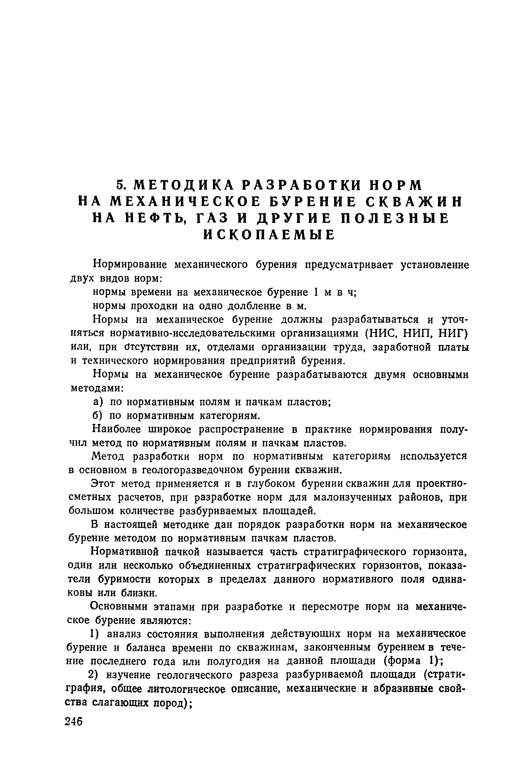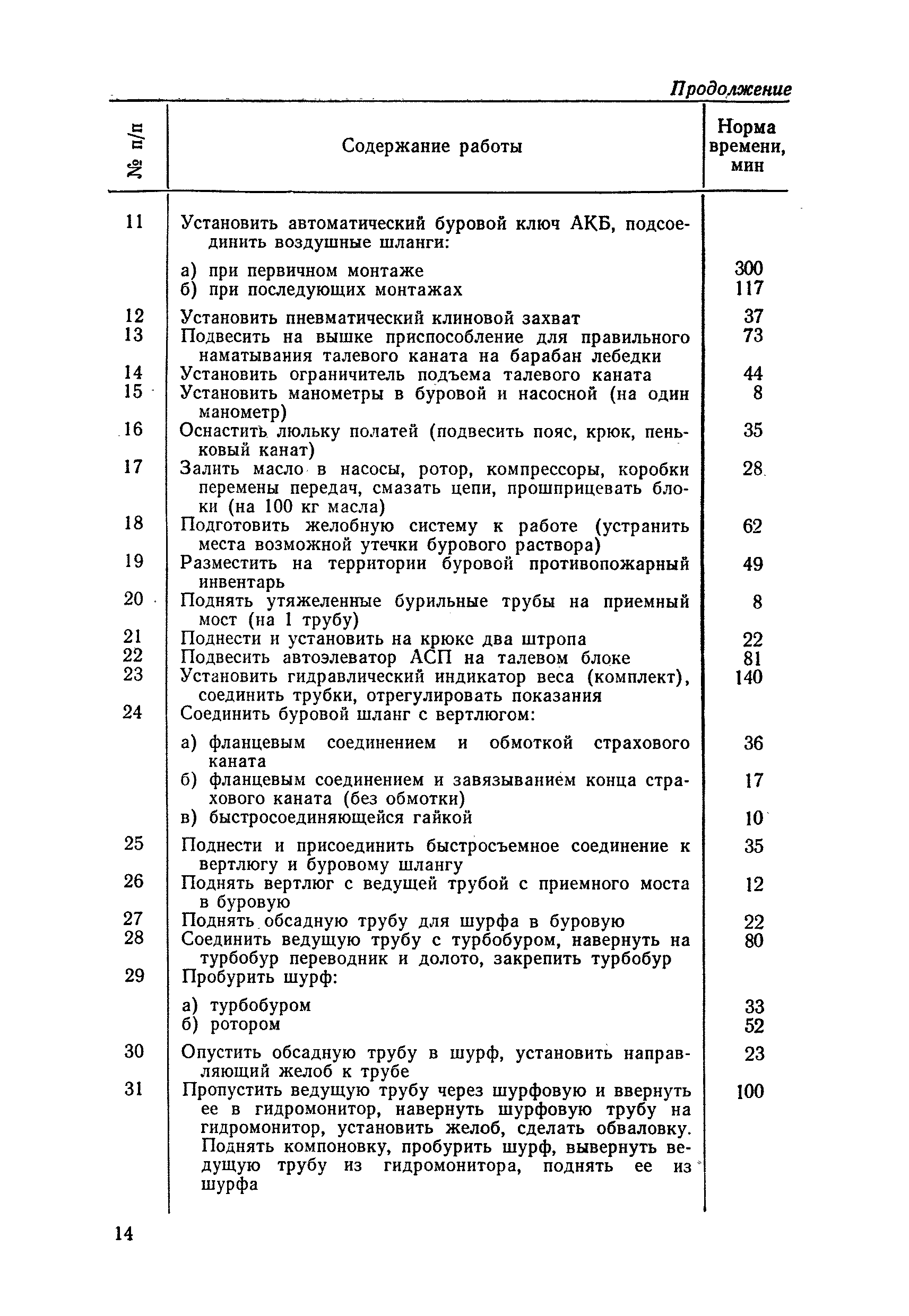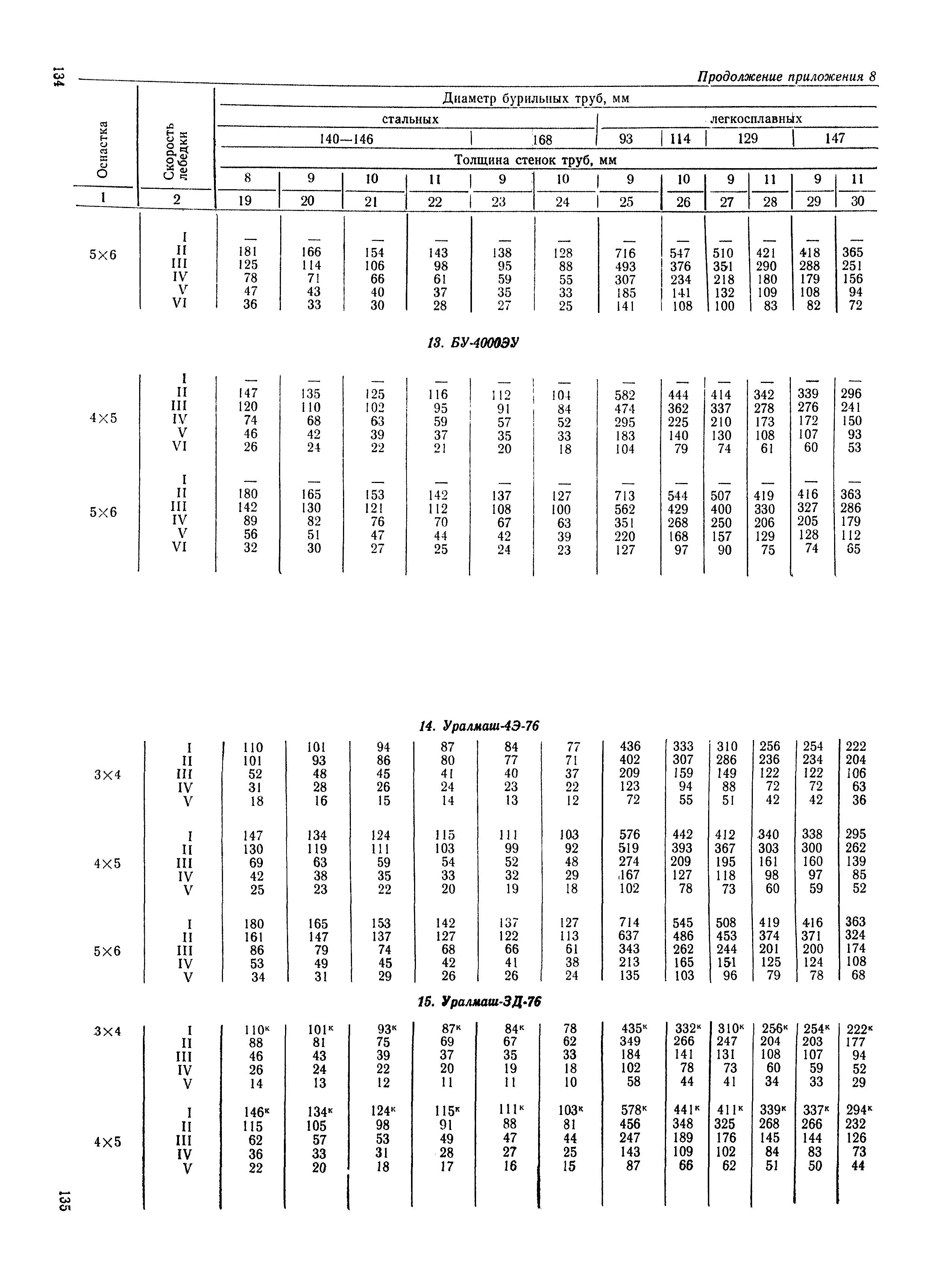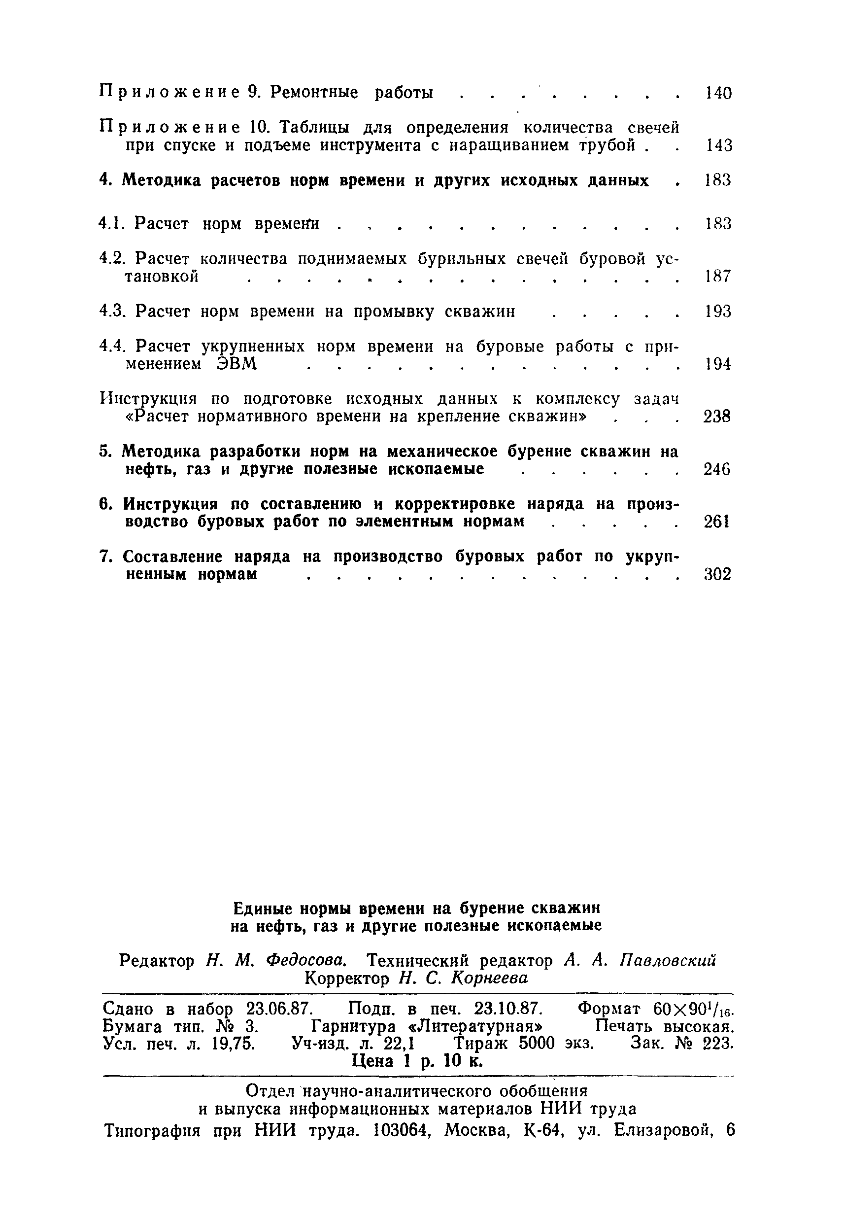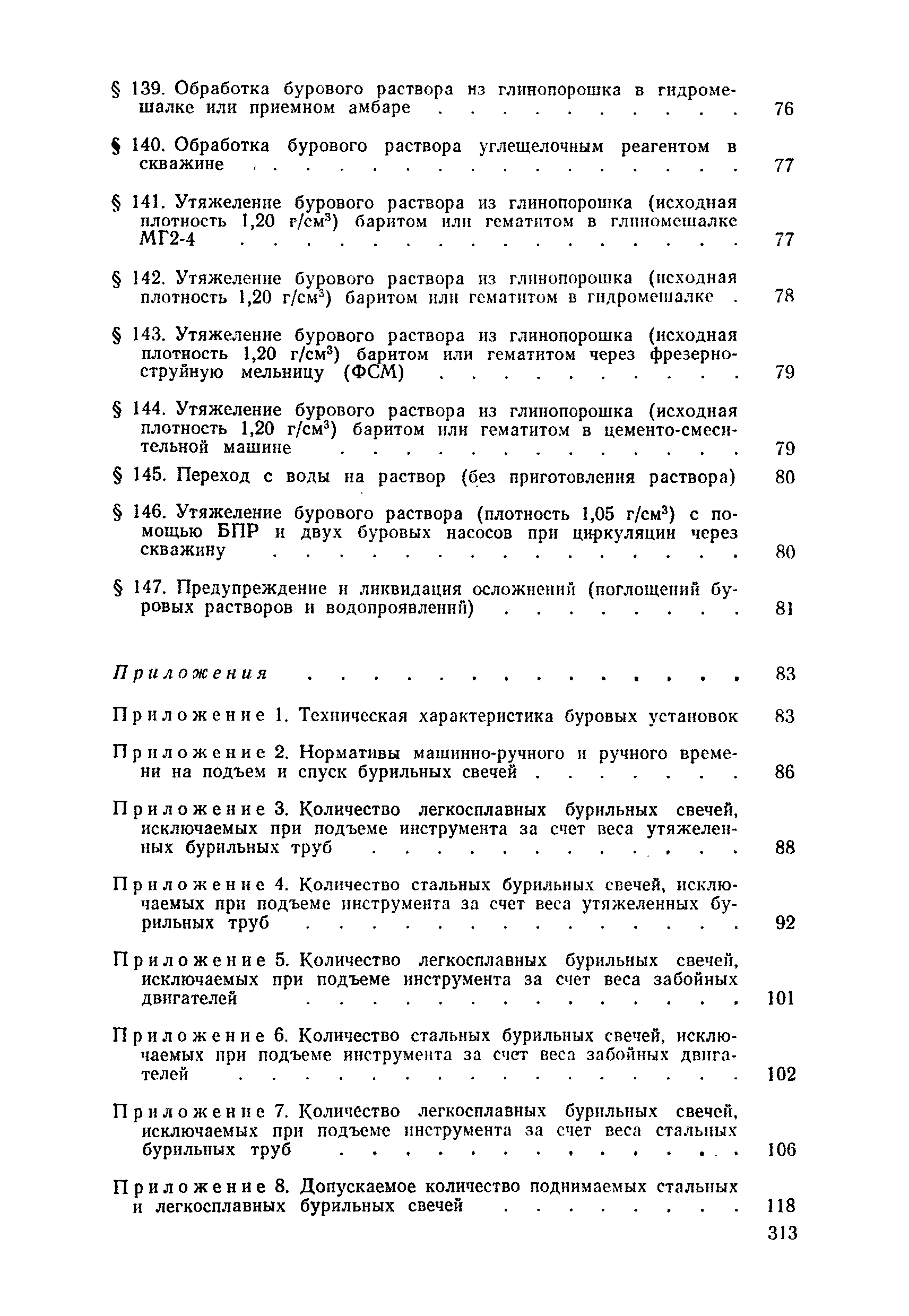 Единые нормы времени на бурение скважин на нефть, газ и другие полезные ископаемые| Статус: | не действует | | Название рус.: | Единые нормы времени на бурение скважин на нефть, газ и другие полезные ископаемые | | Дата добавления в базу: | 01.01.2018 | | Дата актуализации: | 01.01.2021 | | Область применения: | Единые нормы времени на основные виды работ, выполняемые при бурении разведочных, эксплуатационных, опорных, параметрических скважин с применением как роторного способа бурения, так и забойных двигателей, являются обязательными для применения на предприятиях и в организациях, выполняющих указанные работы, независимо от их ведомственной подчиненности и служат для нормирования труда рабочих, находящихся на сдельной оплате труда, а также для разработки нормированных заданий при по- временной оплате труда. Нормы настоящего сборника могут быть использованы для расчета комплексных норм времени. | | Оглавление: | 1. Общая часть 2. Организация труда 3. Нормативная часть 3.1. Нормы времени на подготовительно-заключительные и вспомогательные работы § 1. Подготовительные работы к бурению скважин § 2. Подготовительные работы перед спуском инструмента § 3. Заключительные работы после спуска инструмента § 4. Подготовительные работы перед подъемом инструмента § 5. Наращивание инструмента § 6. Отвертывание долота. Проверка забойного двигателя и укладка на приемный мост § 7. Подъем забойного двигателя в буровую с приемного моста, навертывание долота § 8. Сборка секционного турбобура § 9. Разборка секционного турбобура § 10. Сборка электробура для наклонно-направленного бурения § 11. Разборка электробура для наклонно-направленного бурения § 12. Проверка забойных двигателей § 13. Смена шпинделя турбобура § 14. Сборка колонкового снаряда при роторном бурении и бурении турбобуром с колонковой трубой § 15. Разборка колонкового снаряда при бурении ротором или турбобуром с колонковой трубой (надставкой) § 16. Сборка колонкового турбодолота § 17. Разборка колонкового турбодолота § 18. Подъем и спуск съемной грунтоноски § 19. Сборка колонковых снарядов типа «Недра» и «СКУ» § 20. Разборка колонковых снарядов типа «Недра» и «СКУ» § 21. Сборка утяжеленных бурильных труб § 22. Разборка утяжеленных бурильных труб § 23. Установка утяжеленных бурильных труб за палец § 24. Вывод утяжеленных бурильных труб из-за пальца и спуск в скважину § 25. Спуск утяжеленных бурильных труб в дополнительный шурф (длина свечи 25 м) § 26. Подъем утяжеленных бурильных труб из дополнительного шурфа (длина свечи 25 м) § 27. Подготовительно-заключительные работы при сборке и разборке колонны бурильных труб в скважине или в шурфе при смене диаметра бурильных труб § 28. Сборка колонны бурильных труб § 29. Разборка колонны бурильных труб § 30. Проверка резьбовых соединений бурильных труб ультразвуковой дефектоскопией при спуско-подъемных операциях на скважине § 31. Проверка легкосплавных бурильных труб ультразвуковой дефектоскопией при спуско-подъемных операциях на скважине § 32. Опрессовка свечей бурильных труб на буровой § 33. Сборка элементов компоновки бурильной колонны (расширителей, стабилизаторов, калибраторов, удлинителей, центраторов) § 34. Разборка элементов компоновки бурильной колонны (расширителей, стабилизаторов, калибраторов, удлинителей, центраторов) § 35. Навертывание, отвертывание переводников или вс