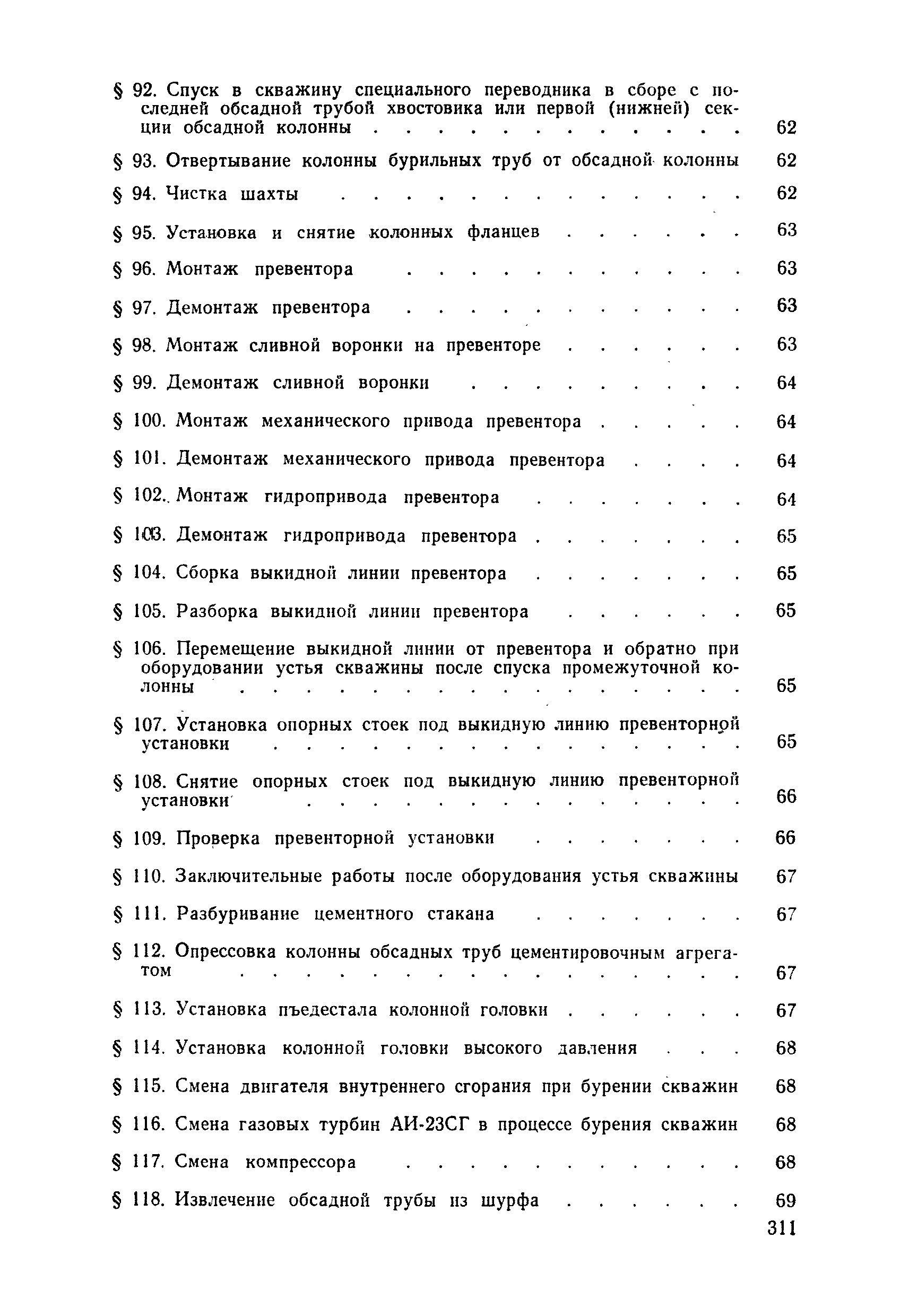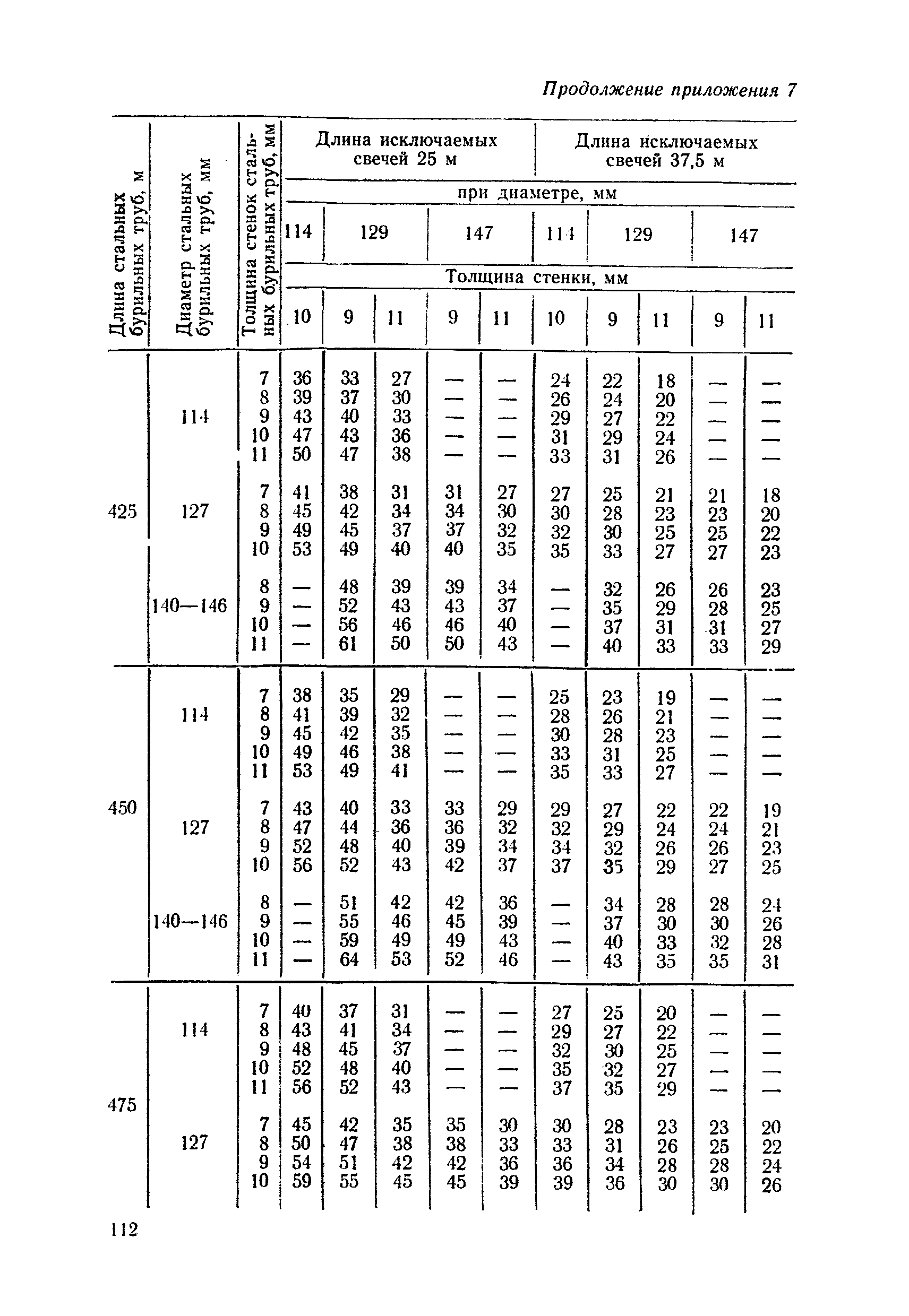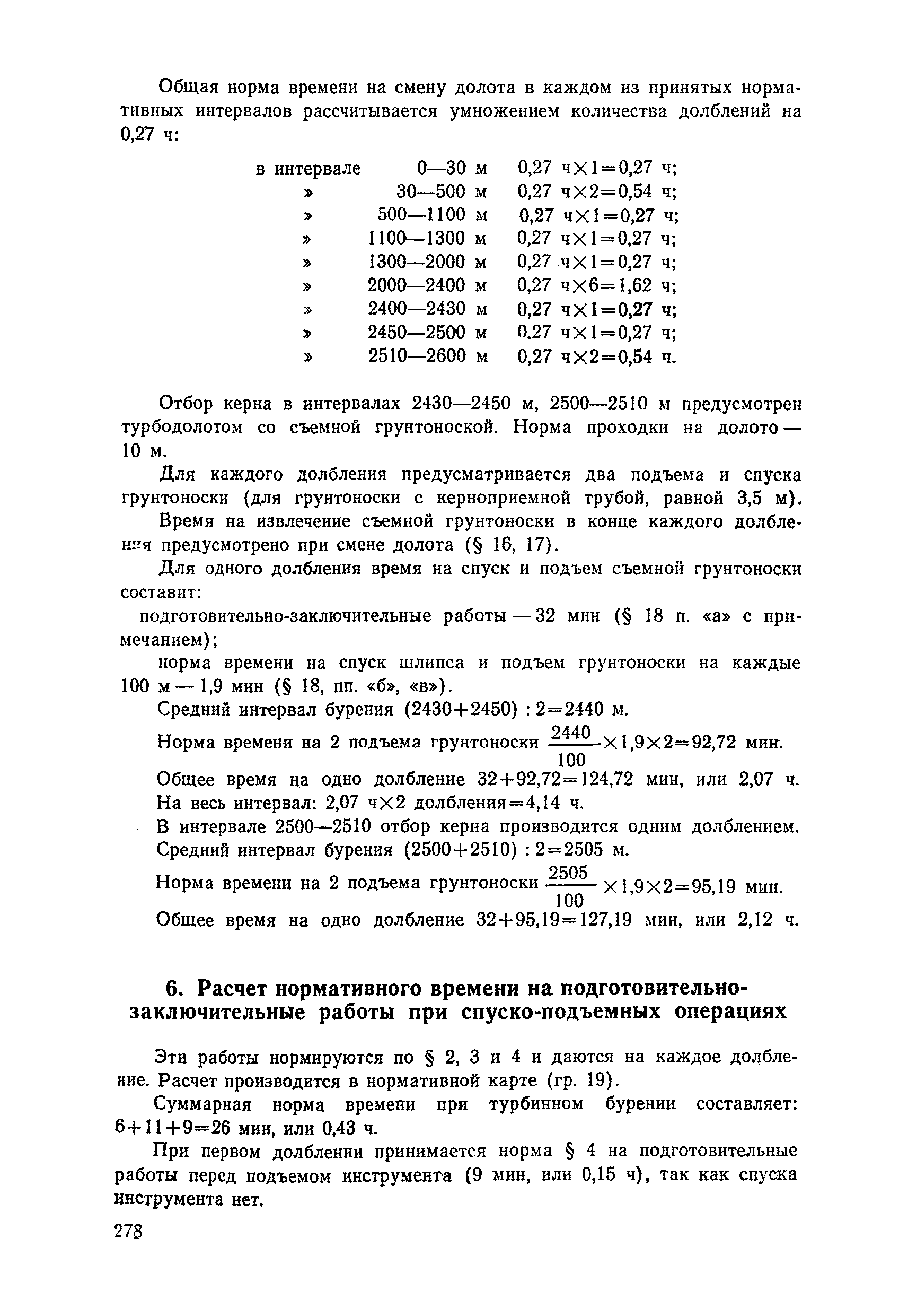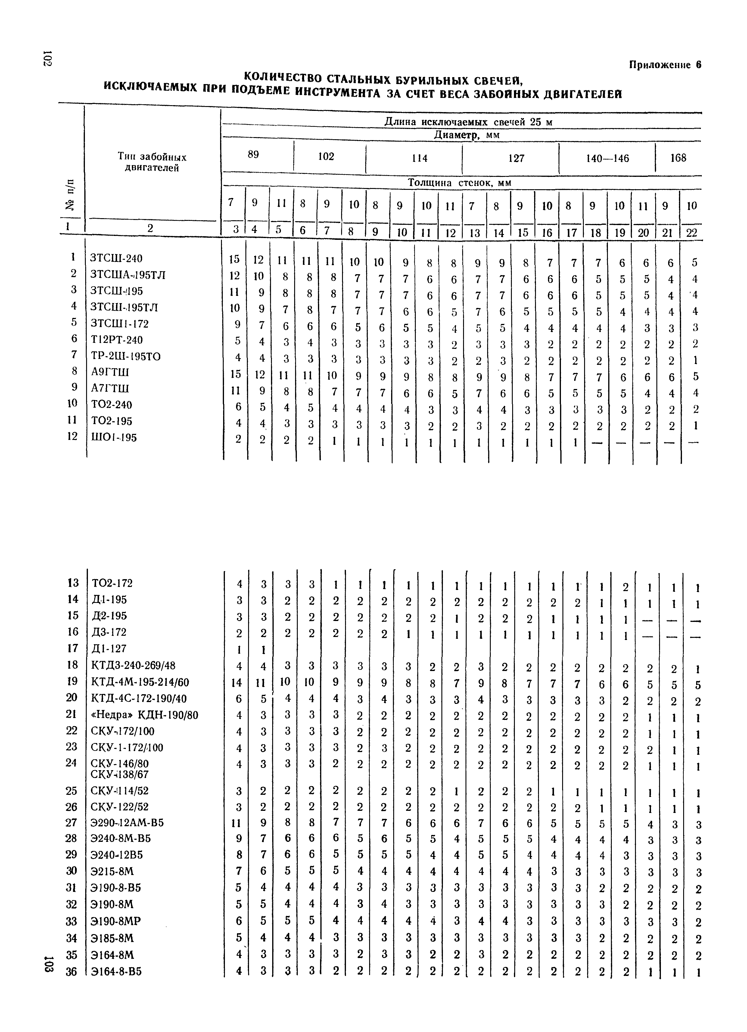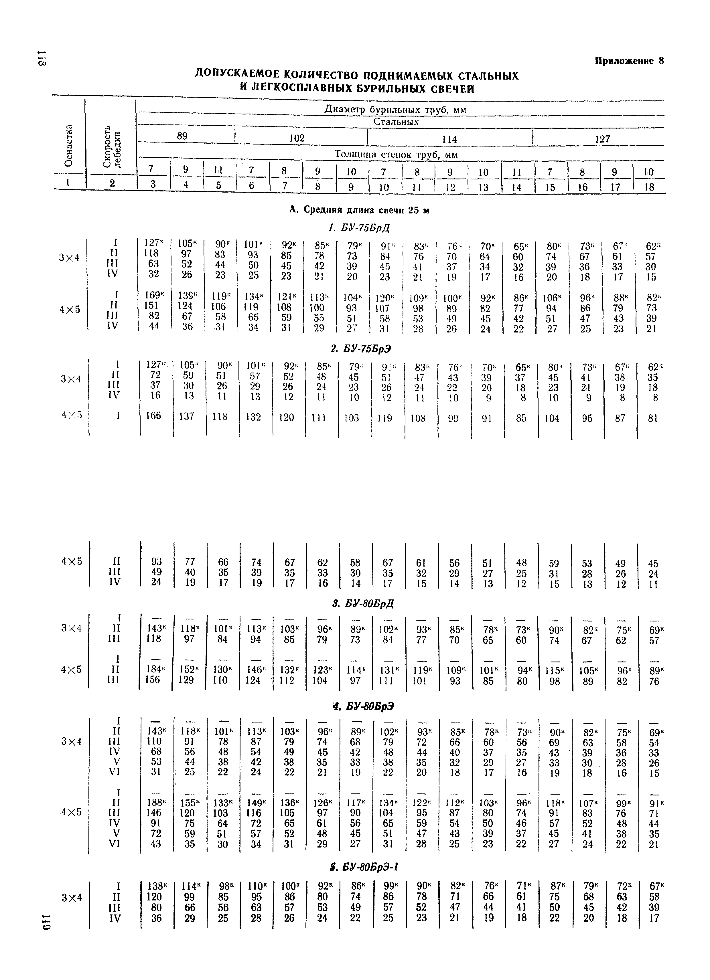 Единые нормы времени на бурение скважин на нефть, газ и другие полезные ископаемые| Статус: | не действует | | Название рус.: | Единые нормы времени на бурение скважин на нефть, газ и другие полезные ископаемые | | Дата добавления в базу: | 01.01.2018 | | Дата актуализации: | 01.01.2021 | | Область применения: | Единые нормы времени на основные виды работ, выполняемые при бурении разведочных, эксплуатационных, опорных, параметрических скважин с применением как роторного способа бурения, так и забойных двигателей, являются обязательными для применения на предприятиях и в организациях, выполняющих указанные работы, независимо от их ведомственной подчиненности и служат для нормирования труда рабочих, находящихся на сдельной оплате труда, а также для разработки нормированных заданий при по- временной оплате труда. Нормы настоящего сборника могут быть использованы для расчета комплексных норм времени. | | Оглавление: | 1. Общая часть 2. Организация труда 3. Нормативная часть 3.1. Нормы времени на подготовительно-заключительные и вспомогательные работы § 1. Подготовительные работы к бурению скважин § 2. Подготовительные работы перед спуском инструмента § 3. Заключительные работы после спуска инструмента § 4. Подготовительные работы перед подъемом инструмента § 5. Наращивание инструмента § 6. Отвертывание долота. Проверка забойного двигателя и укладка на приемный мост § 7. Подъем забойного двигателя в буровую с приемного моста, навертывание долота § 8. Сборка секционного турбобура § 9. Разборка секционного турбобура § 10. Сборка электробура для наклонно-направленного бурения § 11. Разборка электробура для наклонно-направленного бурения § 12. Проверка забойных двигателей § 13. Смена шпинделя турбобура § 14. Сборка колонкового снаряда при роторном бурении и бурении турбобуром с колонковой трубой § 15. Разборка колонкового снаряда при бурении ротором или турбобуром с колонковой трубой (надставкой) § 16. Сборка колонкового турбодолота § 17. Разборка колонкового турбодолота § 18. Подъем и спуск съемной грунтоноски § 19. Сборка колонковых снарядов типа «Недра» и «СКУ» § 20. Разборка колонковых снарядов типа «Недра» и «СКУ» § 21. Сборка утяжеленных бурильных труб § 22. Разборка утяжеленных бурильных труб § 23. Установка утяжеленных бурильных труб за палец § 24. Вывод утяжеленных бурильных труб из-за пальца и спуск в скважину § 25. Спуск утяжеленных бурильных труб в дополнительный шурф (длина свечи 25 м) § 26. Подъем утяжеленных бурильных труб из дополнительного шурфа (длина свечи 25 м) § 27. Подготовительно-заключительные работы при сборке и разборке колонны бурильных труб в скважине или в шурфе при смене диаметра бурильных труб § 28. Сборка колонны бурильных труб § 29. Разборка колонны бурильных труб § 30. Проверка резьбовых соединений бурильных труб ультразвуковой дефектоскопией при спуско-подъемных операциях на скважине § 31. Проверка легкосплавных бурильных труб ультразвуковой дефектоскопией при спуско-подъемных операциях на скважине § 32. Опрессовка свечей бурильных труб на буровой § 33. Сборка элементов компоновки бурильной колонны (расширителей, стабилизаторов, калибраторов, удлинителей, центраторов) § 34. Разборка элементов компоновки бурильной колонны (расширителей, стабилизаторов, калибраторов, удлинителей, центраторов) § 35. Навертывание, отвертывание переводников или вс