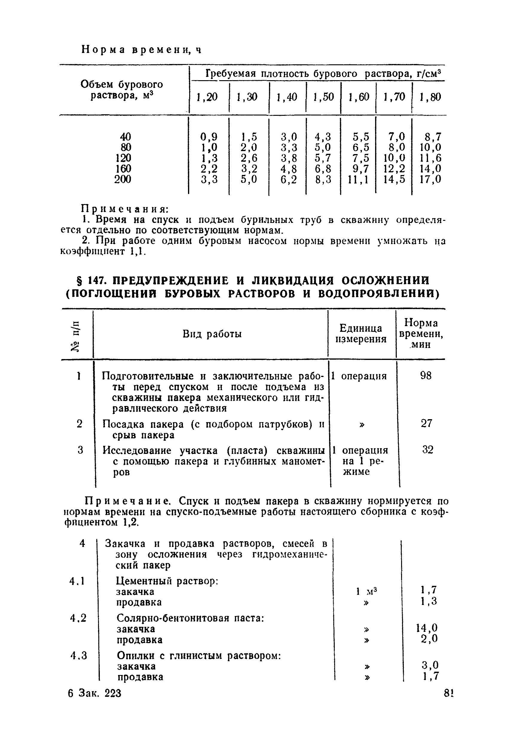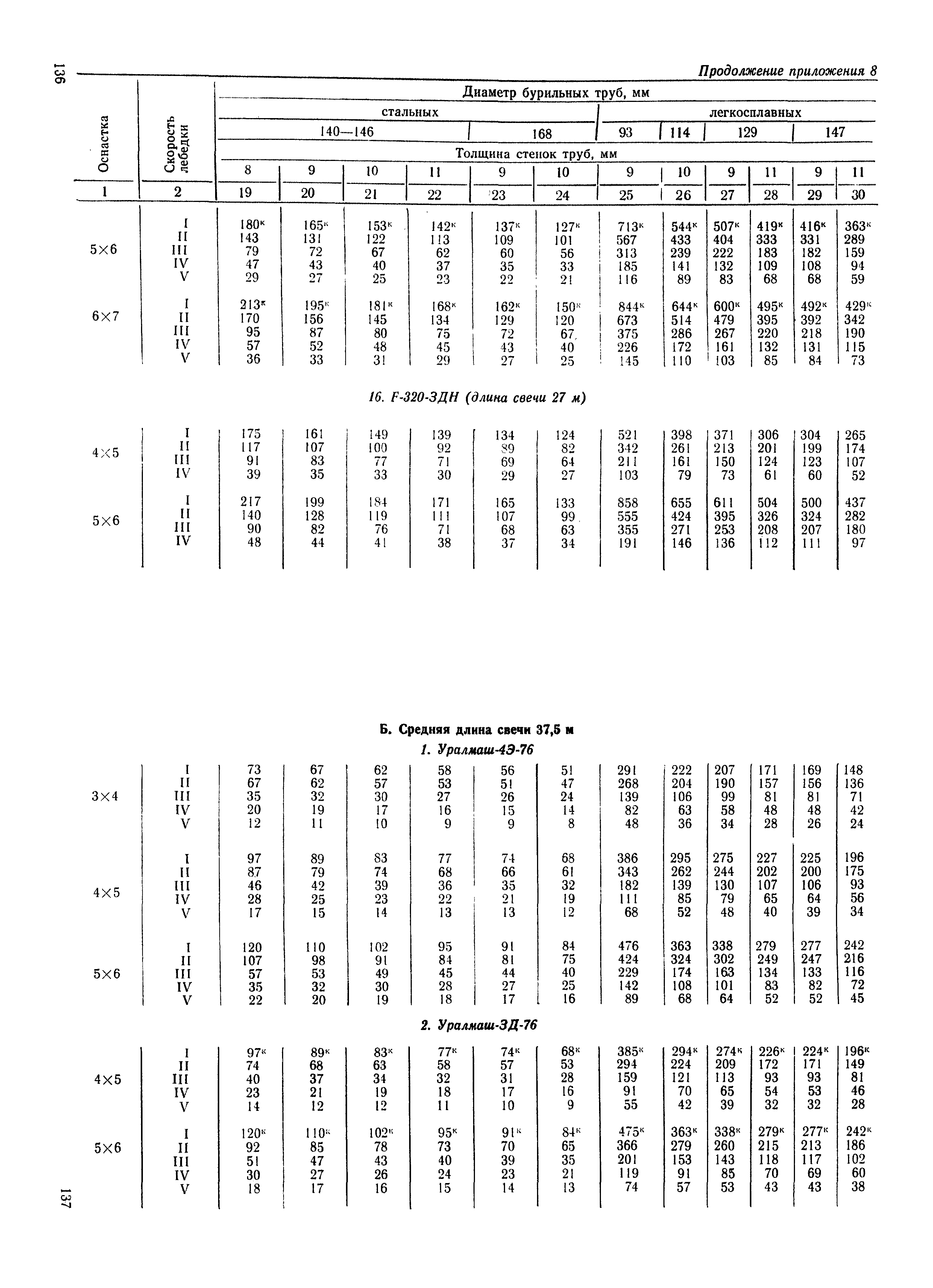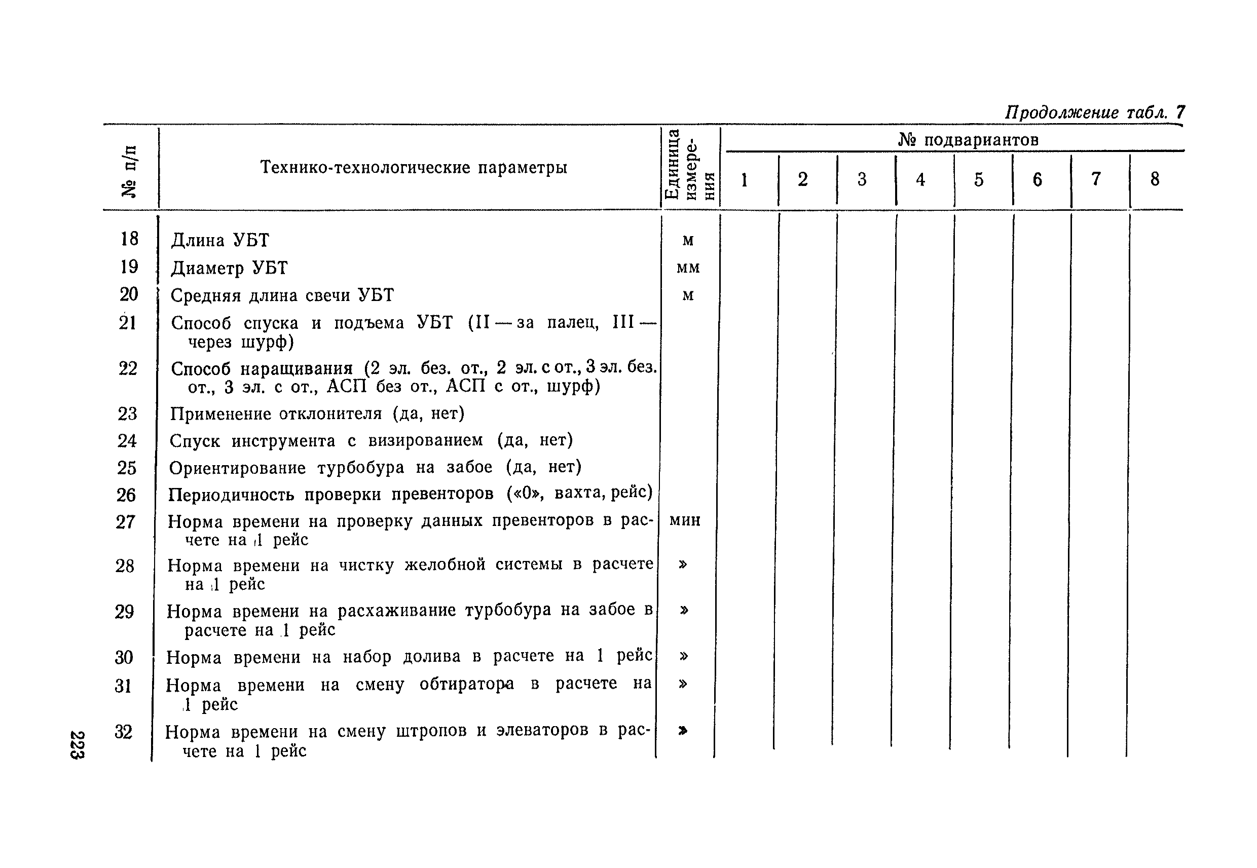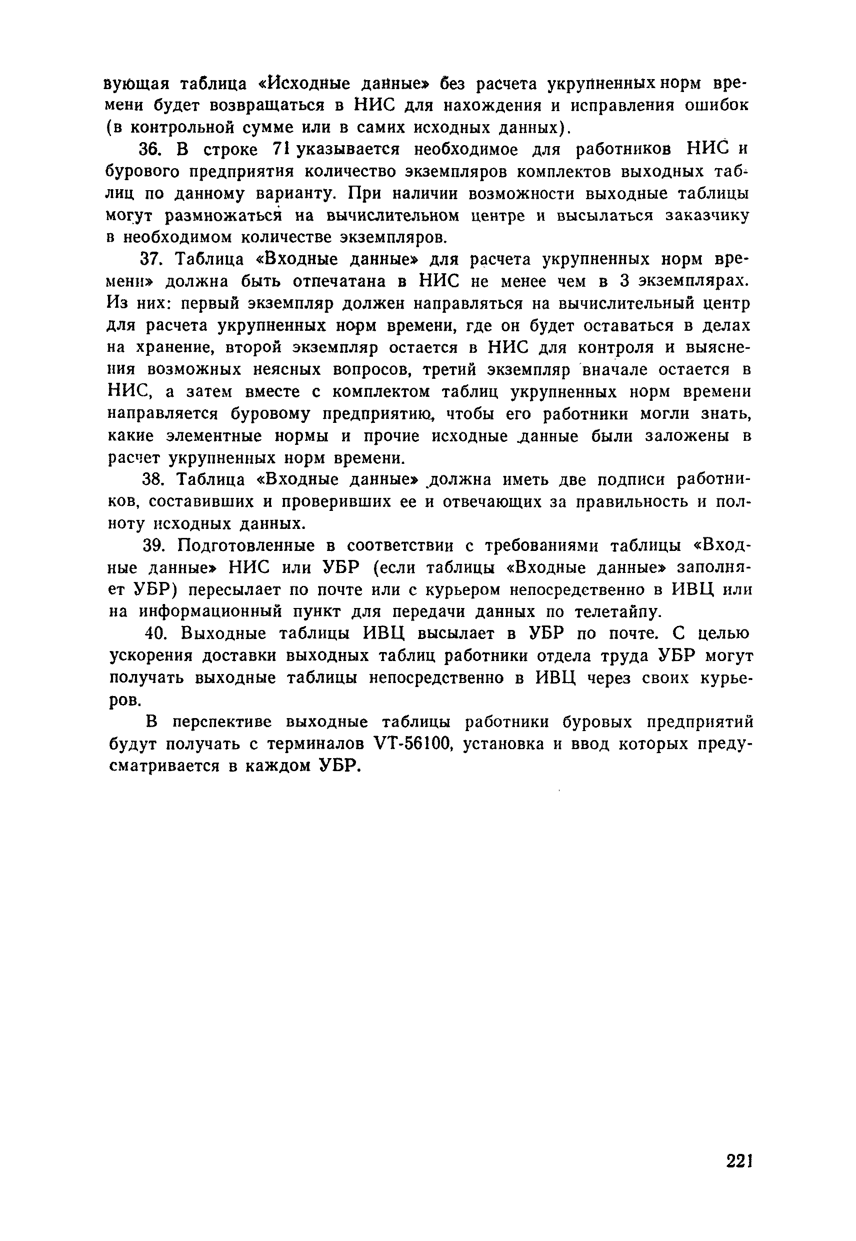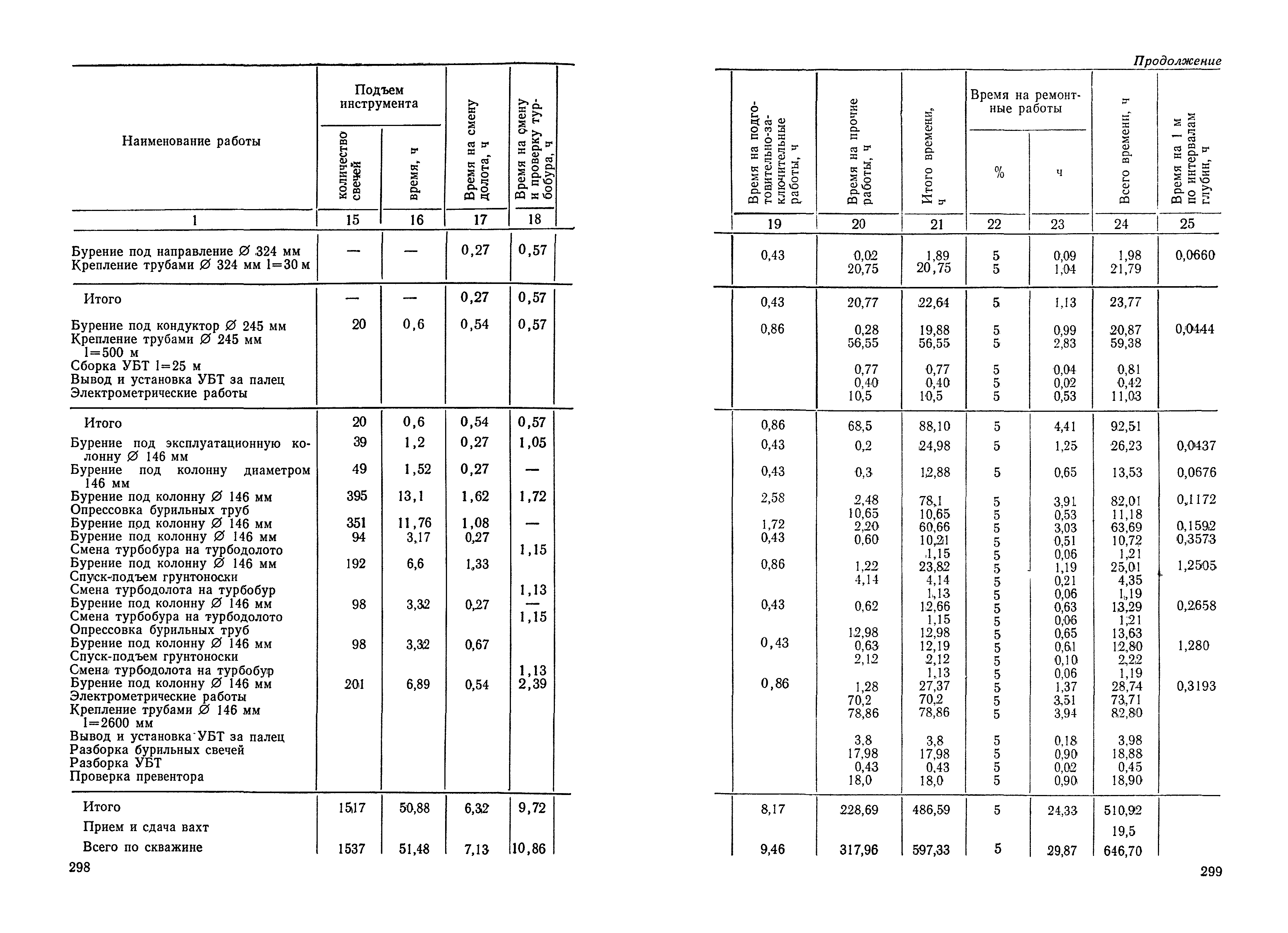 Единые нормы времени на бурение скважин на нефть, газ и другие полезные ископаемые| Статус: | не действует | | Название рус.: | Единые нормы времени на бурение скважин на нефть, газ и другие полезные ископаемые | | Дата добавления в базу: | 01.01.2018 | | Дата актуализации: | 01.01.2021 | | Область применения: | Единые нормы времени на основные виды работ, выполняемые при бурении разведочных, эксплуатационных, опорных, параметрических скважин с применением как роторного способа бурения, так и забойных двигателей, являются обязательными для применения на предприятиях и в организациях, выполняющих указанные работы, независимо от их ведомственной подчиненности и служат для нормирования труда рабочих, находящихся на сдельной оплате труда, а также для разработки нормированных заданий при по- временной оплате труда. Нормы настоящего сборника могут быть использованы для расчета комплексных норм времени. | | Оглавление: | 1. Общая часть 2. Организация труда 3. Нормативная часть 3.1. Нормы времени на подготовительно-заключительные и вспомогательные работы § 1. Подготовительные работы к бурению скважин § 2. Подготовительные работы перед спуском инструмента § 3. Заключительные работы после спуска инструмента § 4. Подготовительные работы перед подъемом инструмента § 5. Наращивание инструмента § 6. Отвертывание долота. Проверка забойного двигателя и укладка на приемный мост § 7. Подъем забойного двигателя в буровую с приемного моста, навертывание долота § 8. Сборка секционного турбобура § 9. Разборка секционного турбобура § 10. Сборка электробура для наклонно-направленного бурения § 11. Разборка электробура для наклонно-направленного бурения § 12. Проверка забойных двигателей § 13. Смена шпинделя турбобура § 14. Сборка колонкового снаряда при роторном бурении и бурении турбобуром с колонковой трубой § 15. Разборка колонкового снаряда при бурении ротором или турбобуром с колонковой трубой (надставкой) § 16. Сборка колонкового турбодолота § 17. Разборка колонкового турбодолота § 18. Подъем и спуск съемной грунтоноски § 19. Сборка колонковых снарядов типа «Недра» и «СКУ» § 20. Разборка колонковых снарядов типа «Недра» и «СКУ» § 21. Сборка утяжеленных бурильных труб § 22. Разборка утяжеленных бурильных труб § 23. Установка утяжеленных бурильных труб за палец § 24. Вывод утяжеленных бурильных труб из-за пальца и спуск в скважину § 25. Спуск утяжеленных бурильных труб в дополнительный шурф (длина свечи 25 м) § 26. Подъем утяжеленных бурильных труб из дополнительного шурфа (длина свечи 25 м) § 27. Подготовительно-заключительные работы при сборке и разборке колонны бурильных труб в скважине или в шурфе при смене диаметра бурильных труб § 28. Сборка колонны бурильных труб § 29. Разборка колонны бурильных труб § 30. Проверка резьбовых соединений бурильных труб ультразвуковой дефектоскопией при спуско-подъемных операциях на скважине § 31. Проверка легкосплавных бурильных труб ультразвуковой дефектоскопией при спуско-подъемных операциях на скважине § 32. Опрессовка свечей бурильных труб на буровой § 33. Сборка элементов компоновки бурильной колонны (расширителей, стабилизаторов, калибраторов, удлинителей, центраторов) § 34. Разборка элементов компоновки бурильной колонны (расширителей, стабилизаторов, калибраторов, удлинителей, центраторов) § 35. Навертывание, отвертывание переводников или вс