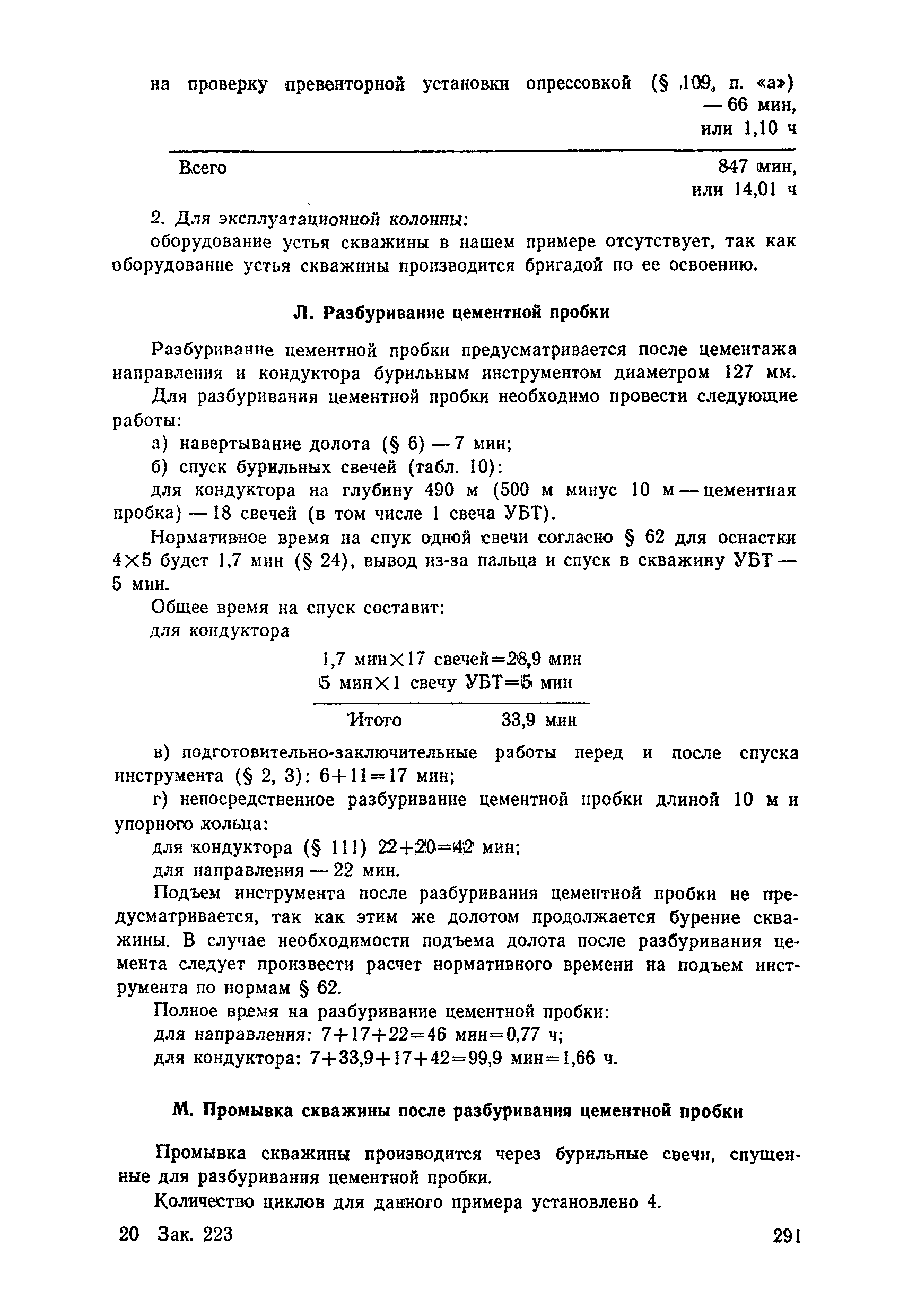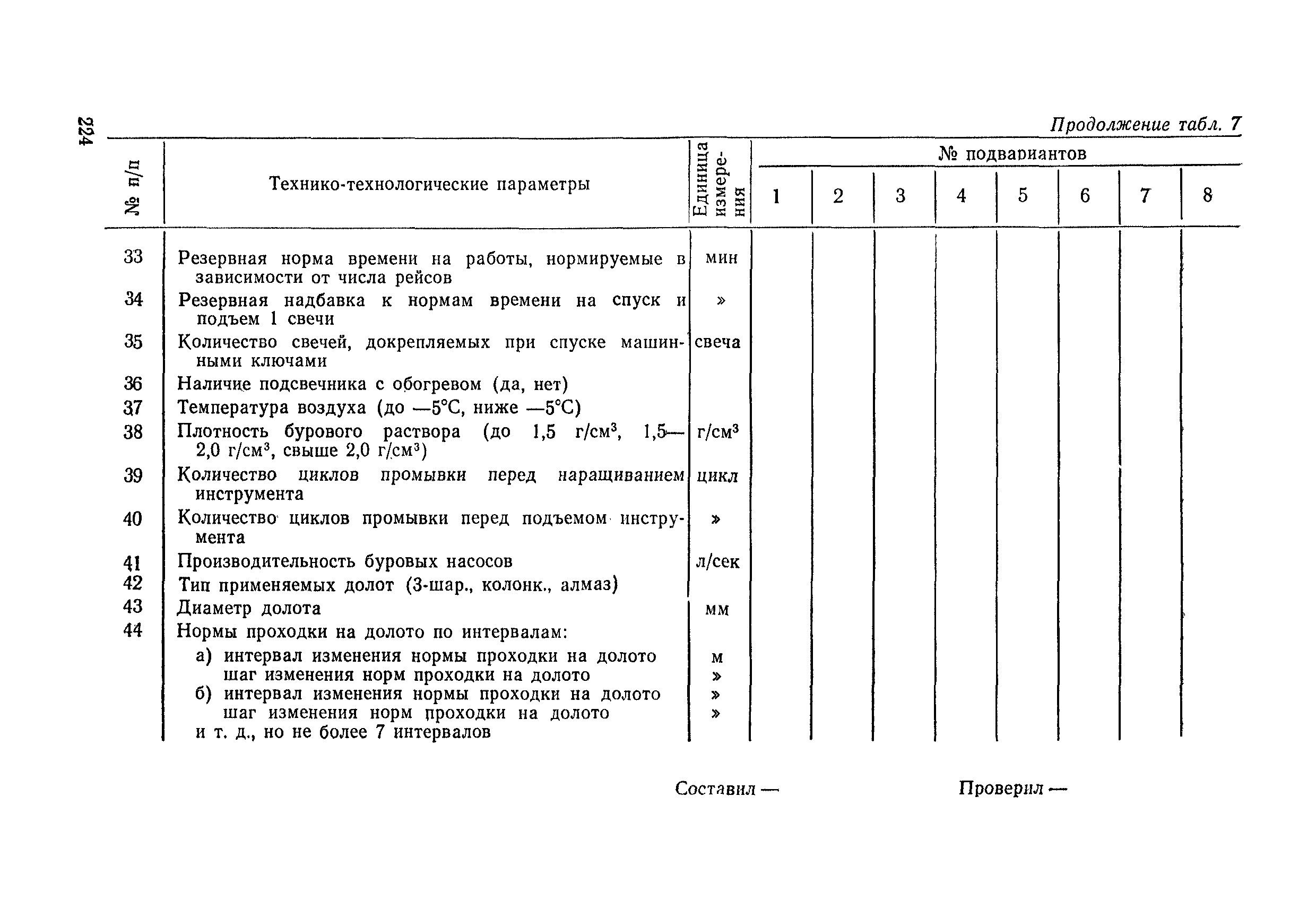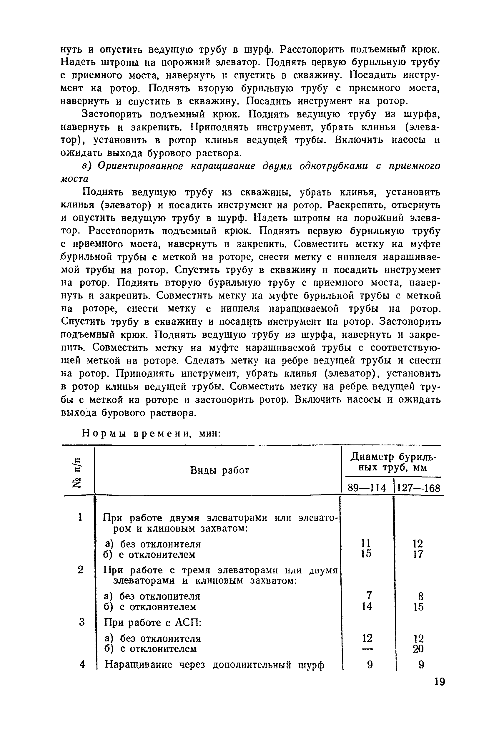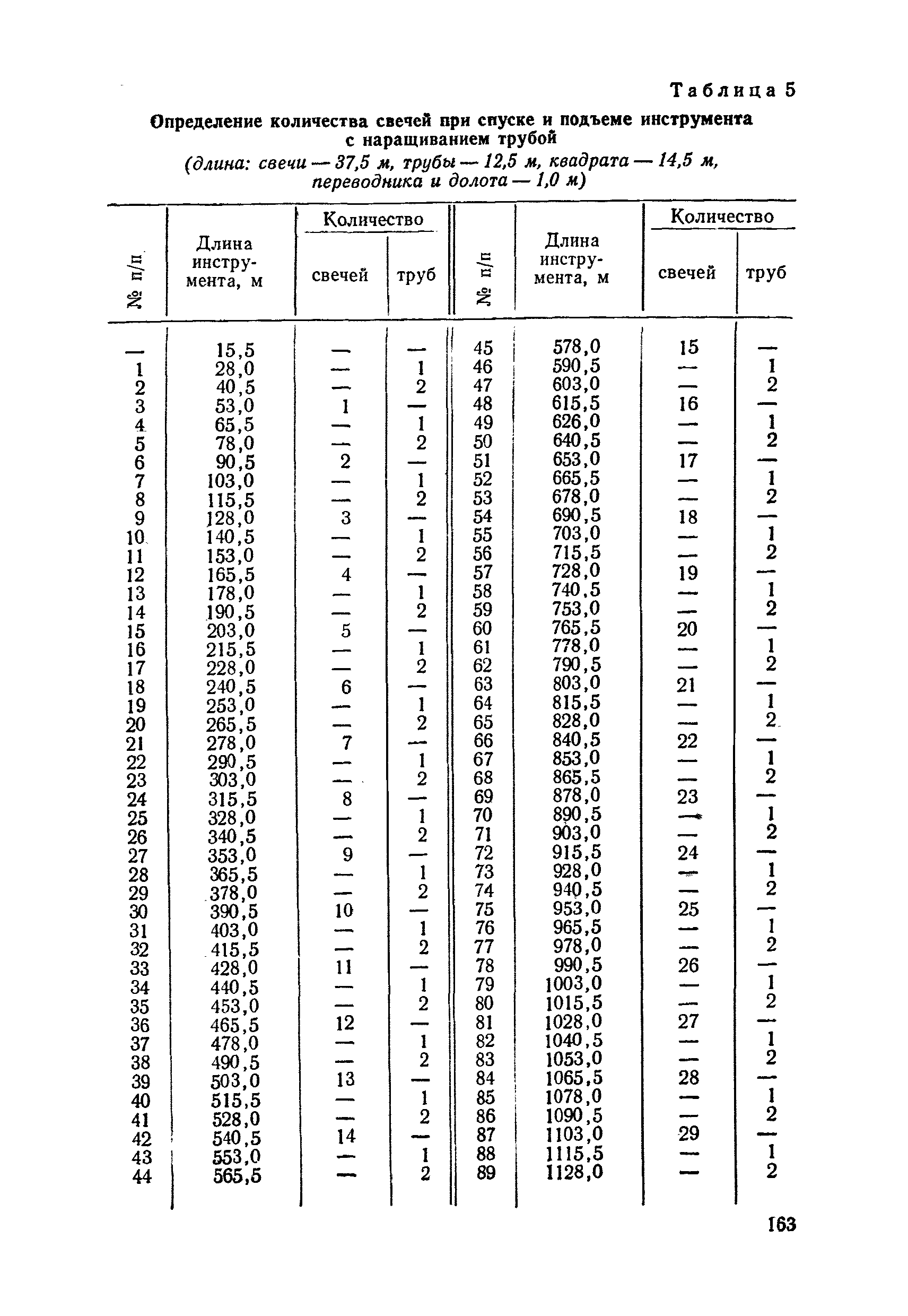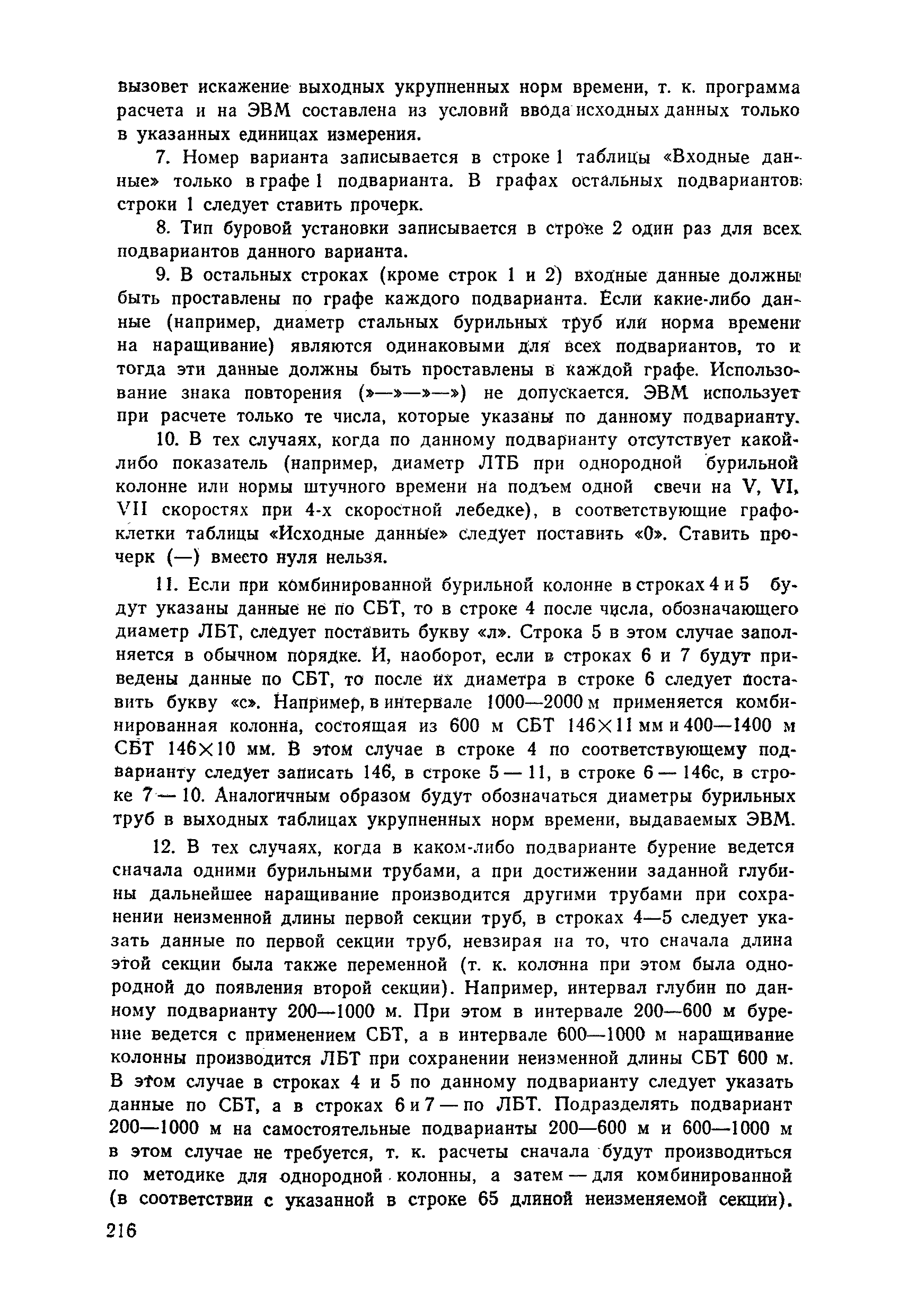Единые нормы времени на бурение скважин на нефть, газ и другие полезные ископаемые| Статус: | не действует | | Название рус.: | Единые нормы времени на бурение скважин на нефть, газ и другие полезные ископаемые | | Дата добавления в базу: | 01.01.2018 | | Дата актуализации: | 01.01.2021 | | Область применения: | Единые нормы времени на основные виды работ, выполняемые при бурении разведочных, эксплуатационных, опорных, параметрических скважин с применением как роторного способа бурения, так и забойных двигателей, являются обязательными для применения на предприятиях и в организациях, выполняющих указанные работы, независимо от их ведомственной подчиненности и служат для нормирования труда рабочих, находящихся на сдельной оплате труда, а также для разработки нормированных заданий при по- временной оплате труда. Нормы настоящего сборника могут быть использованы для расчета комплексных норм времени. | | Оглавление: | 1. Общая часть 2. Организация труда 3. Нормативная часть 3.1. Нормы времени на подготовительно-заключительные и вспомогательные работы § 1. Подготовительные работы к бурению скважин § 2. Подготовительные работы перед спуском инструмента § 3. Заключительные работы после спуска инструмента § 4. Подготовительные работы перед подъемом инструмента § 5. Наращивание инструмента § 6. Отвертывание долота. Проверка забойного двигателя и укладка на приемный мост § 7. Подъем забойного двигателя в буровую с приемного моста, навертывание долота § 8. Сборка секционного турбобура § 9. Разборка секционного турбобура § 10. Сборка электробура для наклонно-направленного бурения § 11. Разборка электробура для наклонно-направленного бурения § 12. Проверка забойных двигателей § 13. Смена шпинделя турбобура § 14. Сборка колонкового снаряда при роторном бурении и бурении турбобуром с колонковой трубой § 15. Разборка колонкового снаряда при бурении ротором или турбобуром с колонковой трубой (надставкой) § 16. Сборка колонкового турбодолота § 17. Разборка колонкового турбодолота § 18. Подъем и спуск съемной грунтоноски § 19. Сборка колонковых снарядов типа «Недра» и «СКУ» § 20. Разборка колонковых снарядов типа «Недра» и «СКУ» § 21. Сборка утяжеленных бурильных труб § 22. Разборка утяжеленных бурильных труб § 23. Установка утяжеленных бурильных труб за палец § 24. Вывод утяжеленных бурильных труб из-за пальца и спуск в скважину § 25. Спуск утяжеленных бурильных труб в дополнительный шурф (длина свечи 25 м) § 26. Подъем утяжеленных бурильных труб из дополнительного шурфа (длина свечи 25 м) § 27. Подготовительно-заключительные работы при сборке и разборке колонны бурильных труб в скважине или в шурфе при смене диаметра бурильных труб § 28. Сборка колонны бурильных труб § 29. Разборка колонны бурильных труб § 30. Проверка резьбовых соединений бурильных труб ультразвуковой дефектоскопией при спуско-подъемных операциях на скважине § 31. Проверка легкосплавных бурильных труб ультразвуковой дефектоскопией при спуско-подъемных операциях на скважине § 32. Опрессовка свечей бурильных труб на буровой § 33. Сборка элементов компоновки бурильной колонны (расширителей, стабилизаторов, калибраторов, удлинителей, центраторов) § 34. Разборка элементов компоновки бурильной колонны (расширителей, стабилизаторов, калибраторов, удлинителей, центраторов) § 35. Навертывание, отвертывание переводников или вс