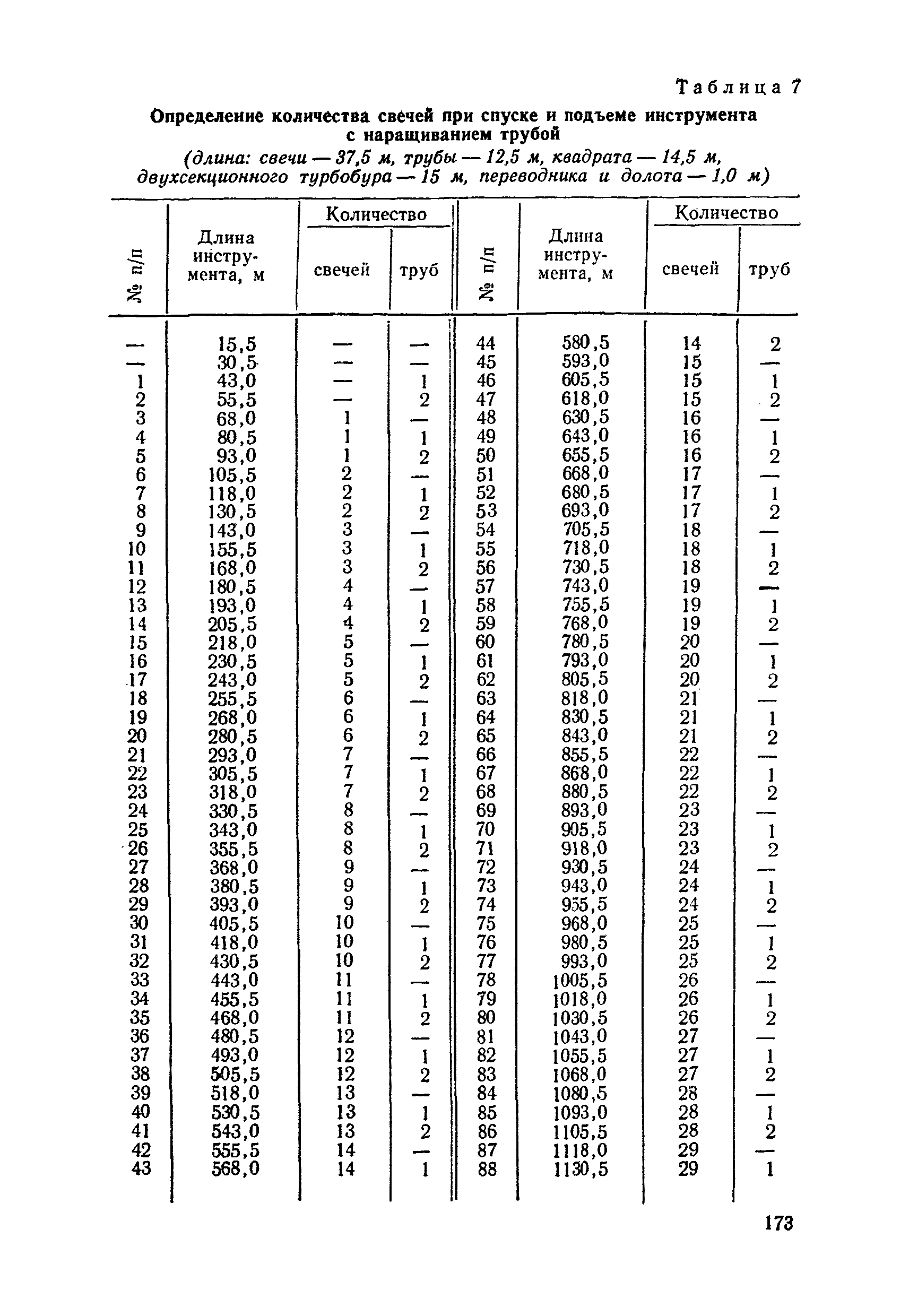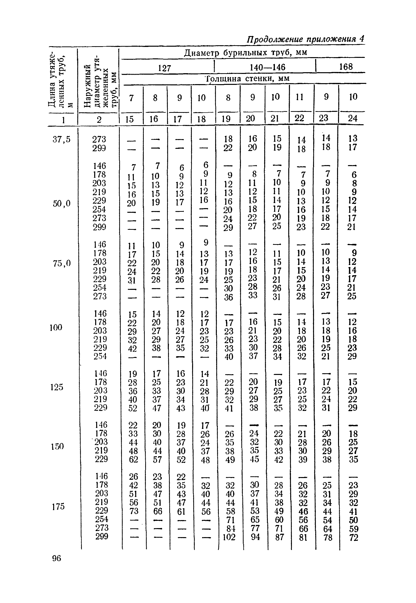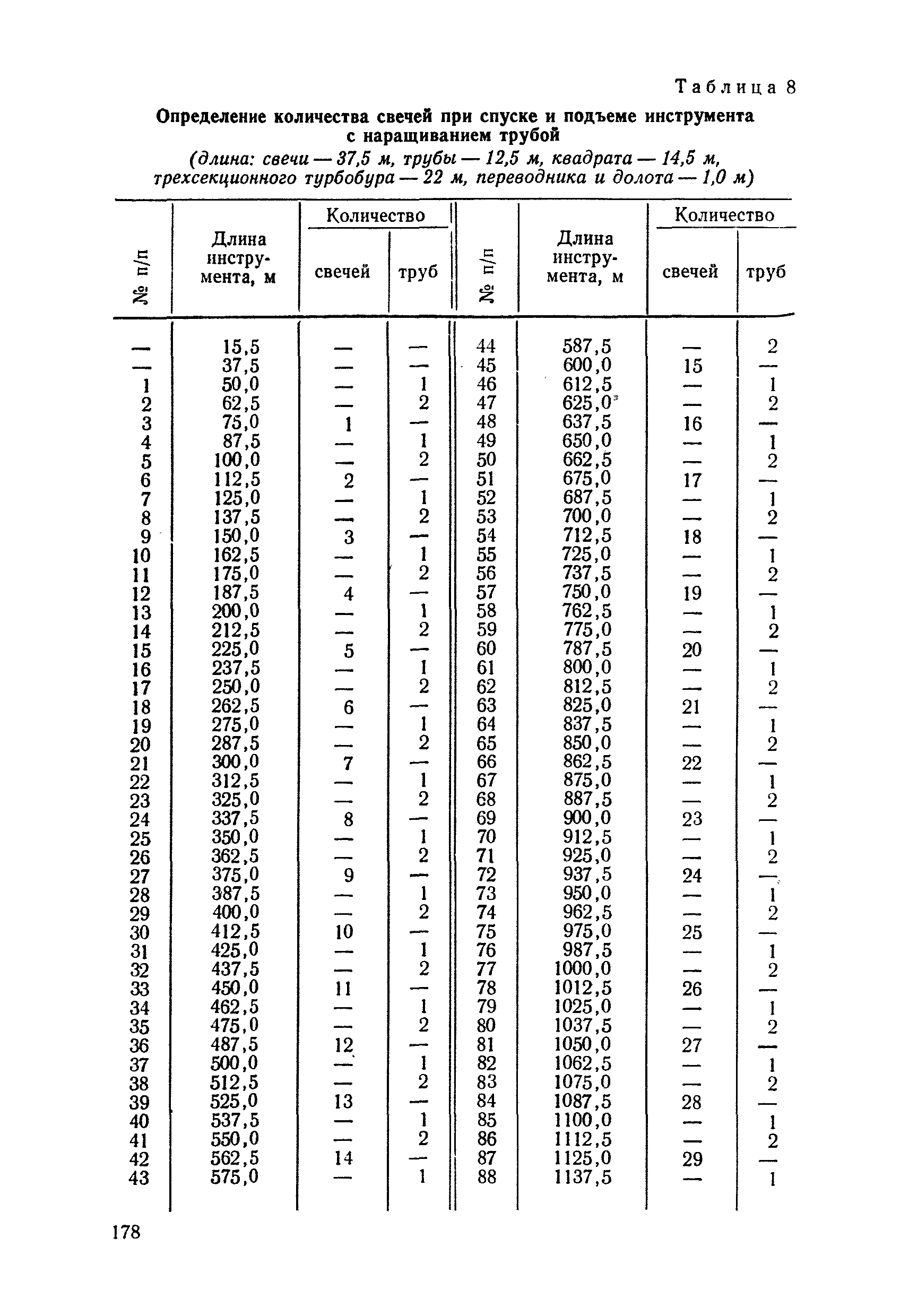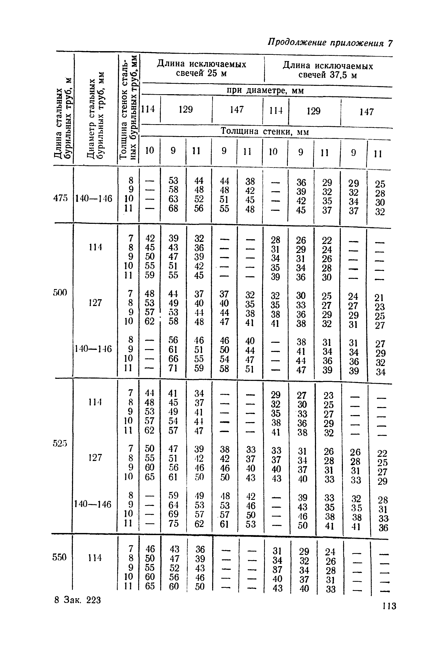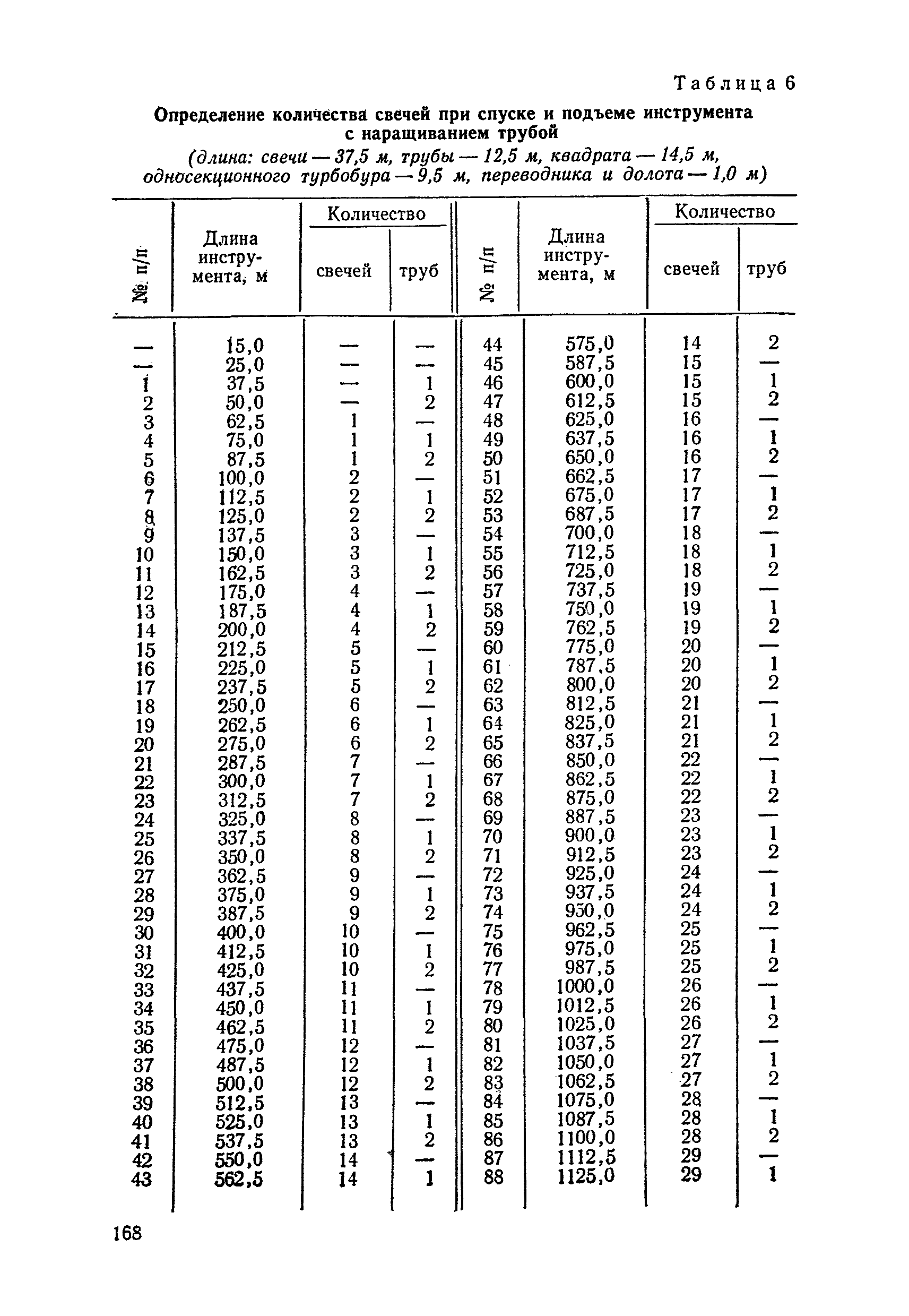 Единые нормы времени на бурение скважин на нефть, газ и другие полезные ископаемые| Статус: | не действует | | Название рус.: | Единые нормы времени на бурение скважин на нефть, газ и другие полезные ископаемые | | Дата добавления в базу: | 01.01.2018 | | Дата актуализации: | 01.01.2021 | | Область применения: | Единые нормы времени на основные виды работ, выполняемые при бурении разведочных, эксплуатационных, опорных, параметрических скважин с применением как роторного способа бурения, так и забойных двигателей, являются обязательными для применения на предприятиях и в организациях, выполняющих указанные работы, независимо от их ведомственной подчиненности и служат для нормирования труда рабочих, находящихся на сдельной оплате труда, а также для разработки нормированных заданий при по- временной оплате труда. Нормы настоящего сборника могут быть использованы для расчета комплексных норм времени. | | Оглавление: | 1. Общая часть 2. Организация труда 3. Нормативная часть 3.1. Нормы времени на подготовительно-заключительные и вспомогательные работы § 1. Подготовительные работы к бурению скважин § 2. Подготовительные работы перед спуском инструмента § 3. Заключительные работы после спуска инструмента § 4. Подготовительные работы перед подъемом инструмента § 5. Наращивание инструмента § 6. Отвертывание долота. Проверка забойного двигателя и укладка на приемный мост § 7. Подъем забойного двигателя в буровую с приемного моста, навертывание долота § 8. Сборка секционного турбобура § 9. Разборка секционного турбобура § 10. Сборка электробура для наклонно-направленного бурения § 11. Разборка электробура для наклонно-направленного бурения § 12. Проверка забойных двигателей § 13. Смена шпинделя турбобура § 14. Сборка колонкового снаряда при роторном бурении и бурении турбобуром с колонковой трубой § 15. Разборка колонкового снаряда при бурении ротором или турбобуром с колонковой трубой (надставкой) § 16. Сборка колонкового турбодолота § 17. Разборка колонкового турбодолота § 18. Подъем и спуск съемной грунтоноски § 19. Сборка колонковых снарядов типа «Недра» и «СКУ» § 20. Разборка колонковых снарядов типа «Недра» и «СКУ» § 21. Сборка утяжеленных бурильных труб § 22. Разборка утяжеленных бурильных труб § 23. Установка утяжеленных бурильных труб за палец § 24. Вывод утяжеленных бурильных труб из-за пальца и спуск в скважину § 25. Спуск утяжеленных бурильных труб в дополнительный шурф (длина свечи 25 м) § 26. Подъем утяжеленных бурильных труб из дополнительного шурфа (длина свечи 25 м) § 27. Подготовительно-заключительные работы при сборке и разборке колонны бурильных труб в скважине или в шурфе при смене диаметра бурильных труб § 28. Сборка колонны бурильных труб § 29. Разборка колонны бурильных труб § 30. Проверка резьбовых соединений бурильных труб ультразвуковой дефектоскопией при спуско-подъемных операциях на скважине § 31. Проверка легкосплавных бурильных труб ультразвуковой дефектоскопией при спуско-подъемных операциях на скважине § 32. Опрессовка свечей бурильных труб на буровой § 33. Сборка элементов компоновки бурильной колонны (расширителей, стабилизаторов, калибраторов, удлинителей, центраторов) § 34. Разборка элементов компоновки бурильной колонны (расширителей, стабилизаторов, калибраторов, удлинителей, центраторов) § 35. Навертывание, отвертывание переводников или вс