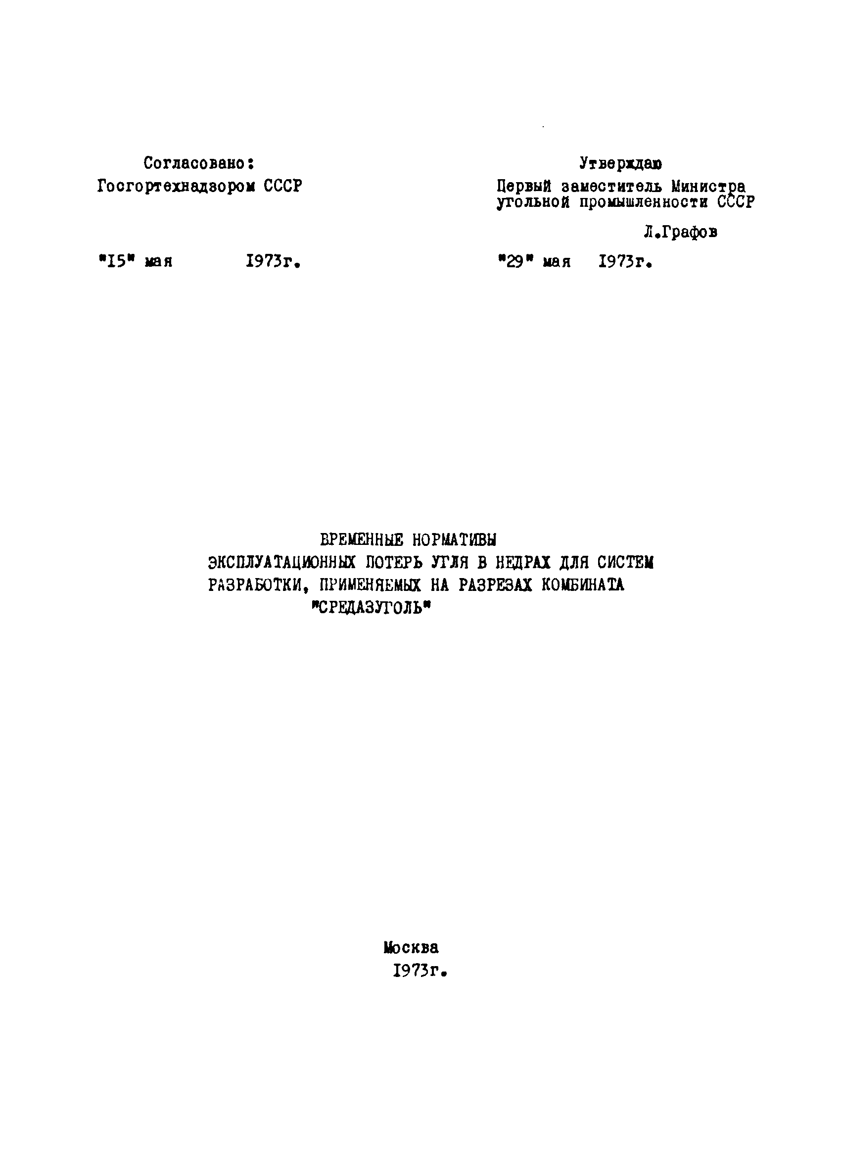 | Утверждён: | 29.05.1973 Министерство угольной промышленности СССР (USSR Ministry of the Coal Industry )