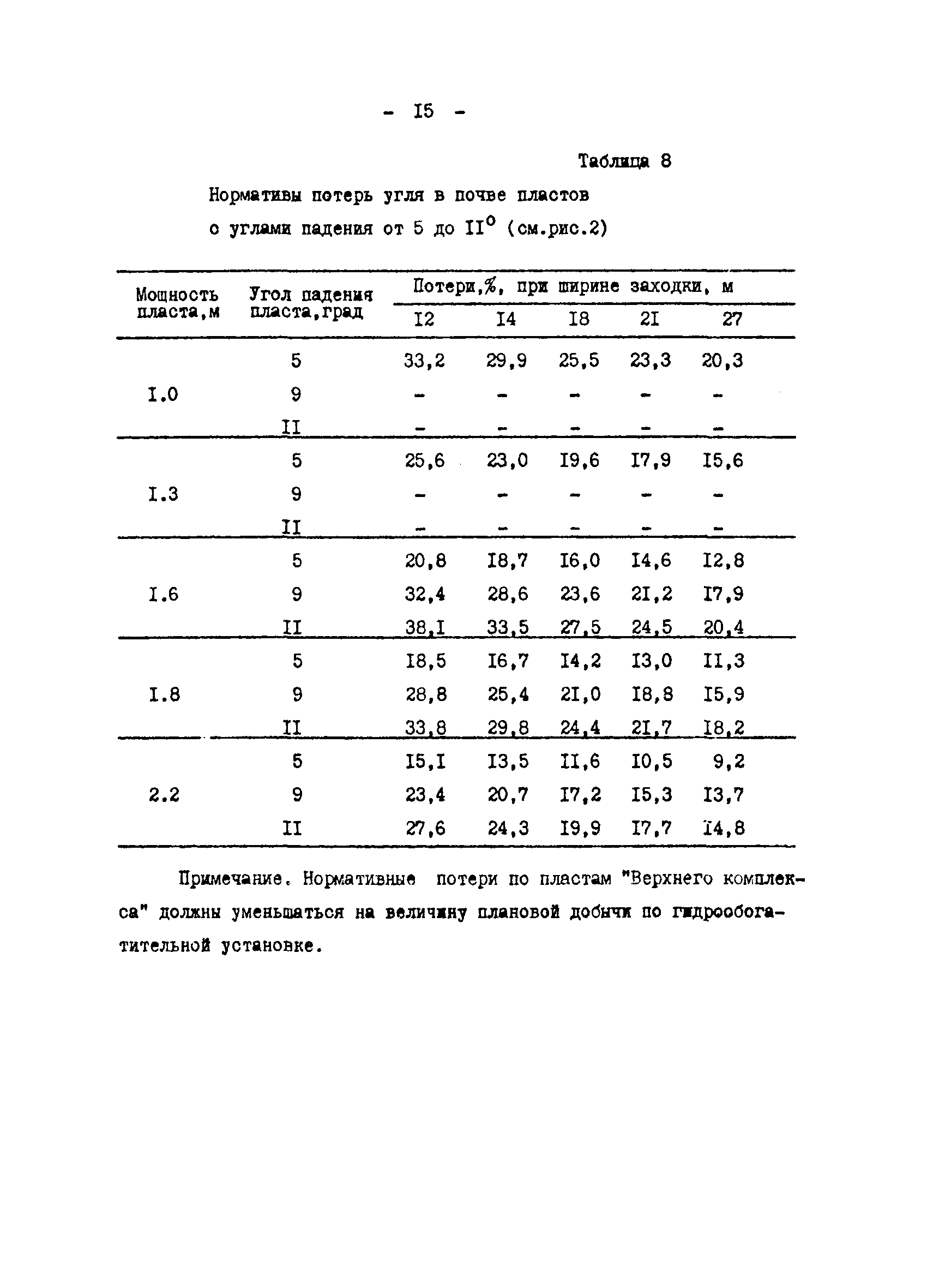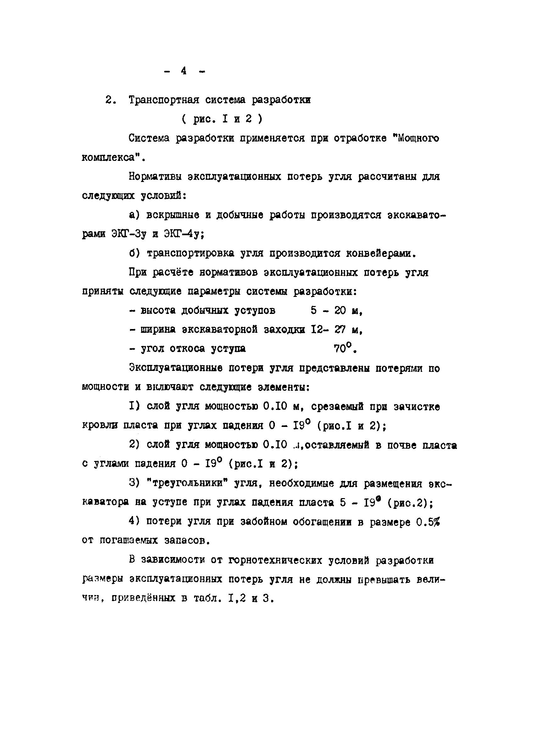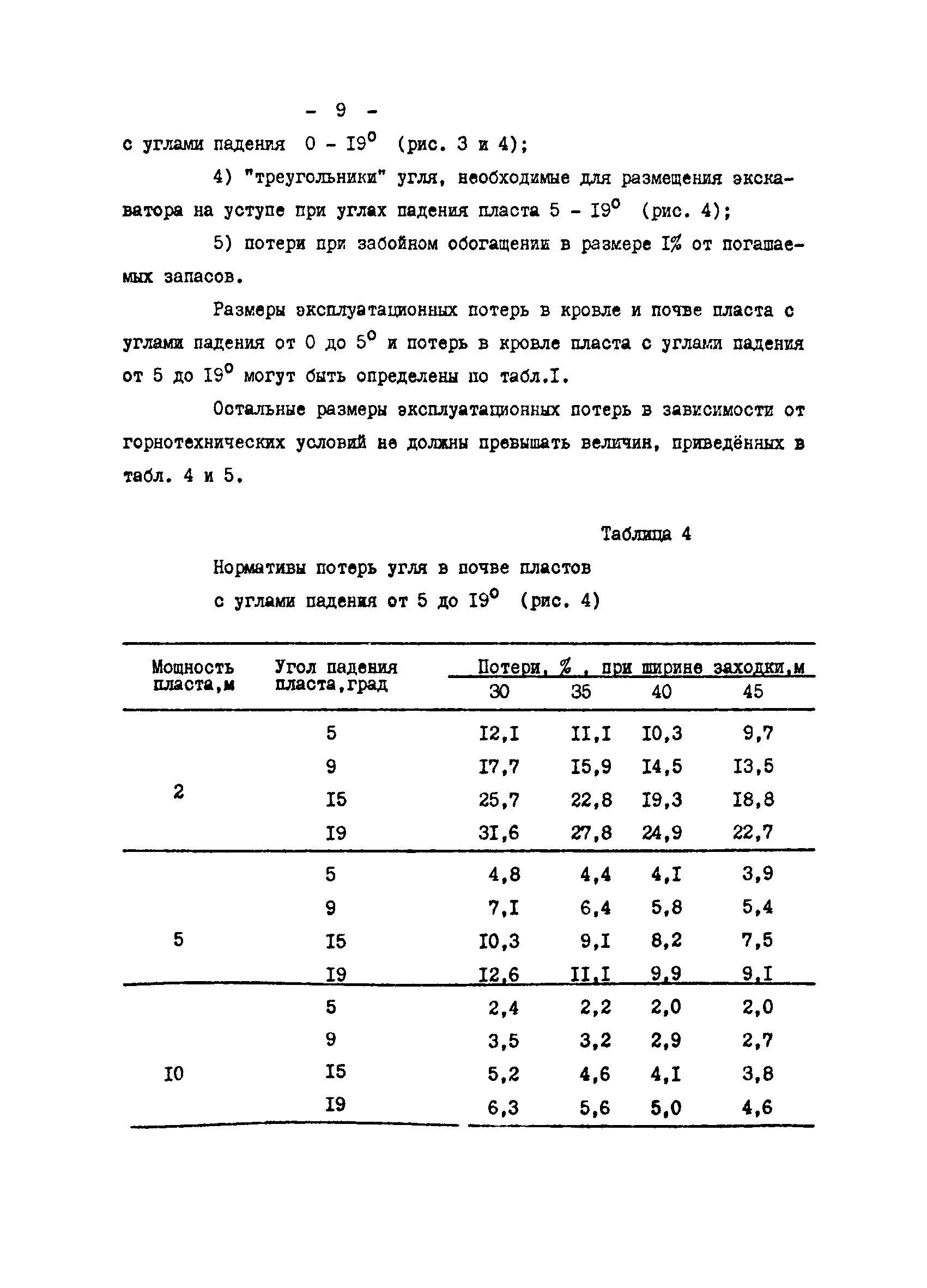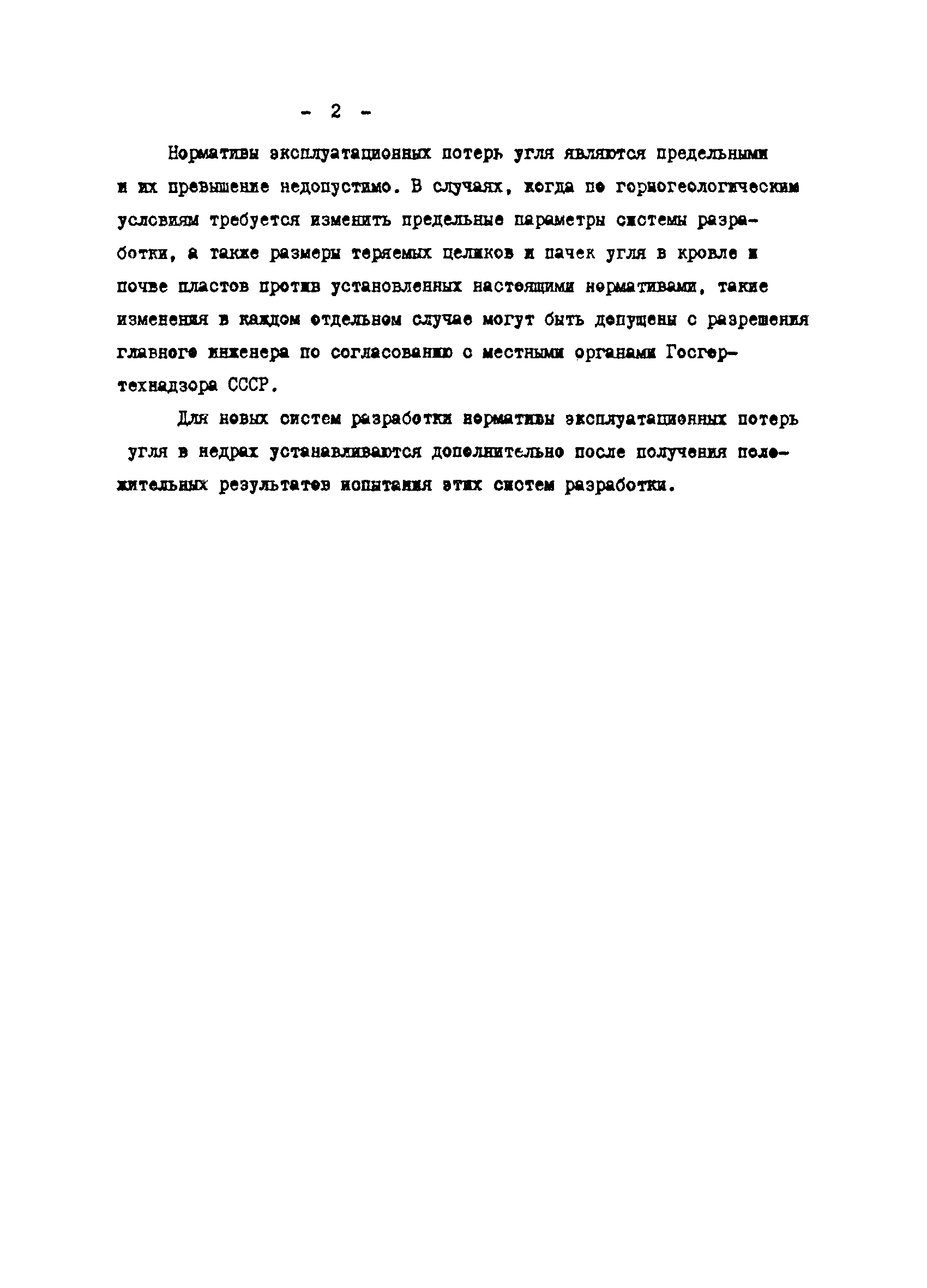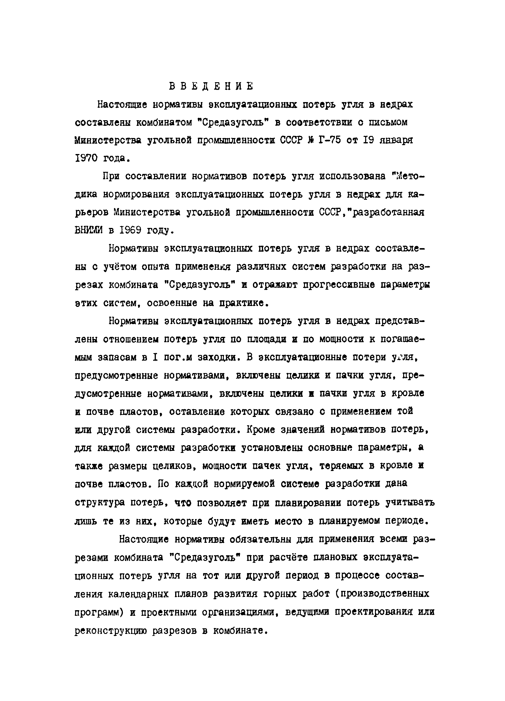 | Область применения: | Нормативы обязательны для применения всеми разрезами комбината "Средазуголь" при расчете плановых эксплуатационных потерь угля на тот или другой период в процессе составления календарных планов развития горных работ (производственных программ) и проектными организациями, ведущими проектирования или реконструкцию разрезов в комбинате. |