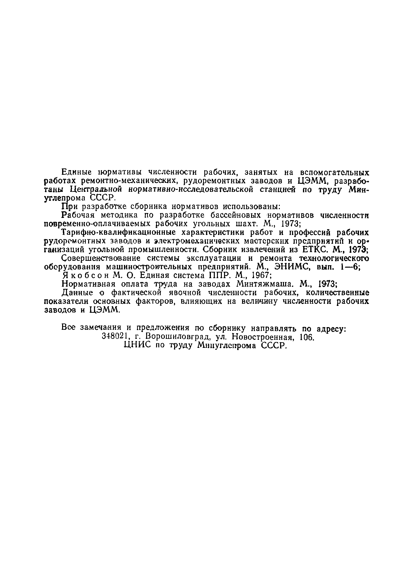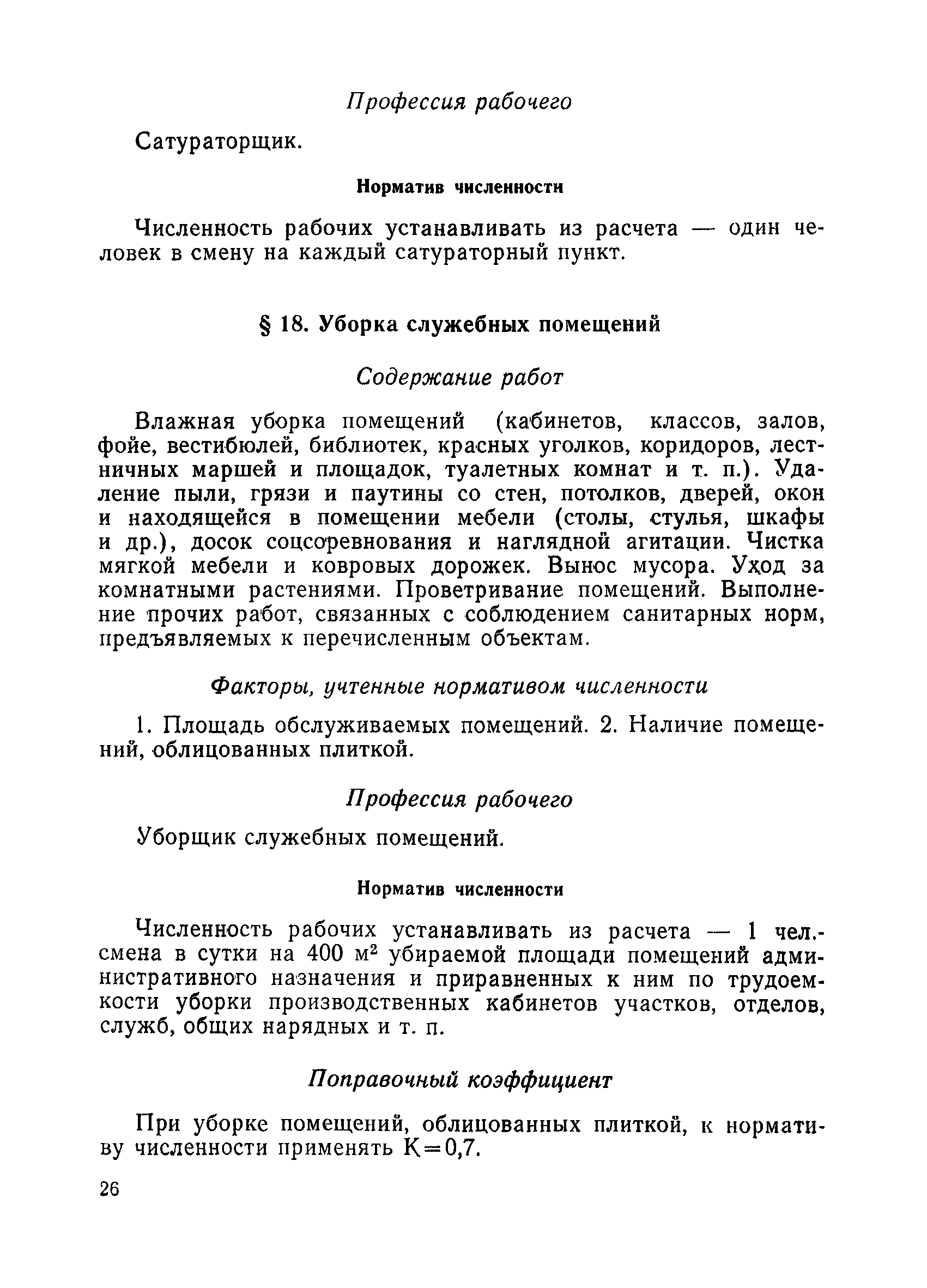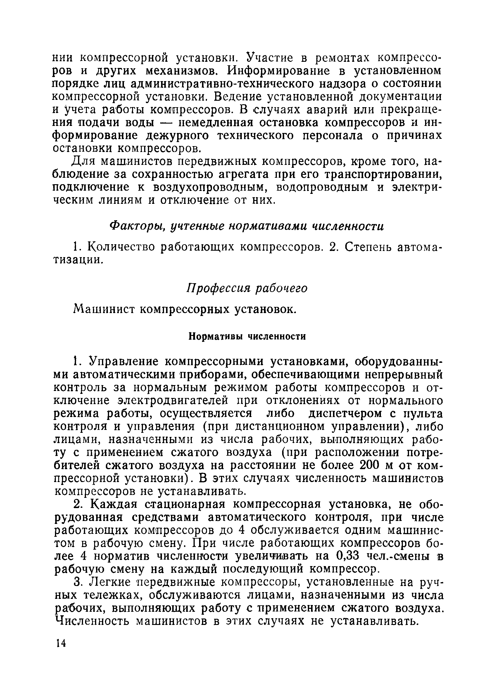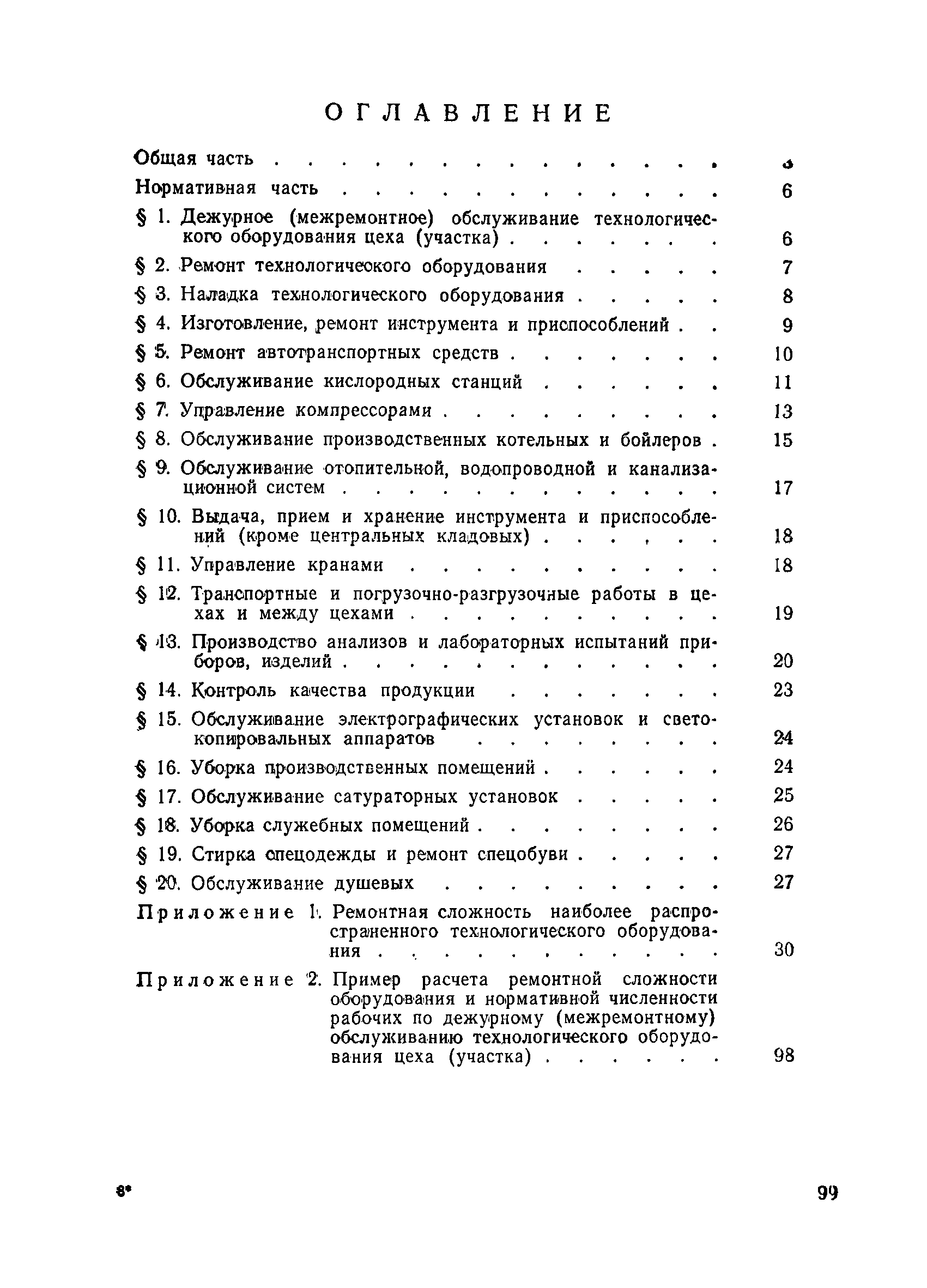 Единые нормативы численности рабочих, занятых на вспомогательных работах ремонтно-механических, рудоремонтных заводов и ЦЭММ| Статус: | не действует | | Название рус.: | Единые нормативы численности рабочих, занятых на вспомогательных работах ремонтно-механических, рудоремонтных заводов и ЦЭММ | | Дата добавления в базу: | 01.01.2018 | | Дата актуализации: | 01.01.2021 | | Область применения: | Нормативы численности сборника обязательны для применения на предприятиях по ремонту горно-шахтного оборудования (РМЗ, РРЗ, ЦЭММ) Минуглепрома СССР и предназначены для планирования численности вспомогательных рабочих и установления рабочим доплат за совмещение профессий и расширение зон обслуживания. Нормативы определяют явочную численность рабочих на смену или сутки при продолжительности смены 8 часов при пятидневной рабочей неделе. | | Оглавление: | Общая часть Нормативная часть 1 Дежурное (межремонтное) обслуживание технологического оборудования цеха (участка) 2 Ремонт технологического оборудования 3 Наладка технологического оборудования 4 Изготовление, ремонт инструмента и приспособлений 5 Ремонт автотранспортных средств 6 Обслуживание кислородных станций 7 Управление компрессорами 8 Обслуживание производственных котельных и бойлеров 9 Обслуживание отопительной, водопроводной и канализационной систем 10 Выдача, прием и хранение инструмента и приспособлений (кроме центральных кладовых) 11 Управление кранами 12 Транспортные и погрузочно-разгрузочные работы в цехах и между цехами 13 Производство анализов и лабораторных испытаний приборов, изделий 14 Контроль качества продукции 15 Обслуживание электрографических установок и светокопировальных аппаратов 16 Уборка производственных помещений 17 Обслуживание сатураторных установок 18 Уборка служебных помещений 19 Стирка спецодежды и ремонт спецобуви 20 Обслуживание душевых Приложение 1. Ремонтная сложность наиболее распространенного технологического оборудования Приложение 2. Пример расчета ремонтной сложности оборудования и нормативной численности рабочих по дежурному (межремонтному) обслуживанию технологического оборудования цеха (участка) | | Утверждён: | 14.02.1979 Министерство угольной промышленности СССР (USSR Ministry of the Coal Industry )