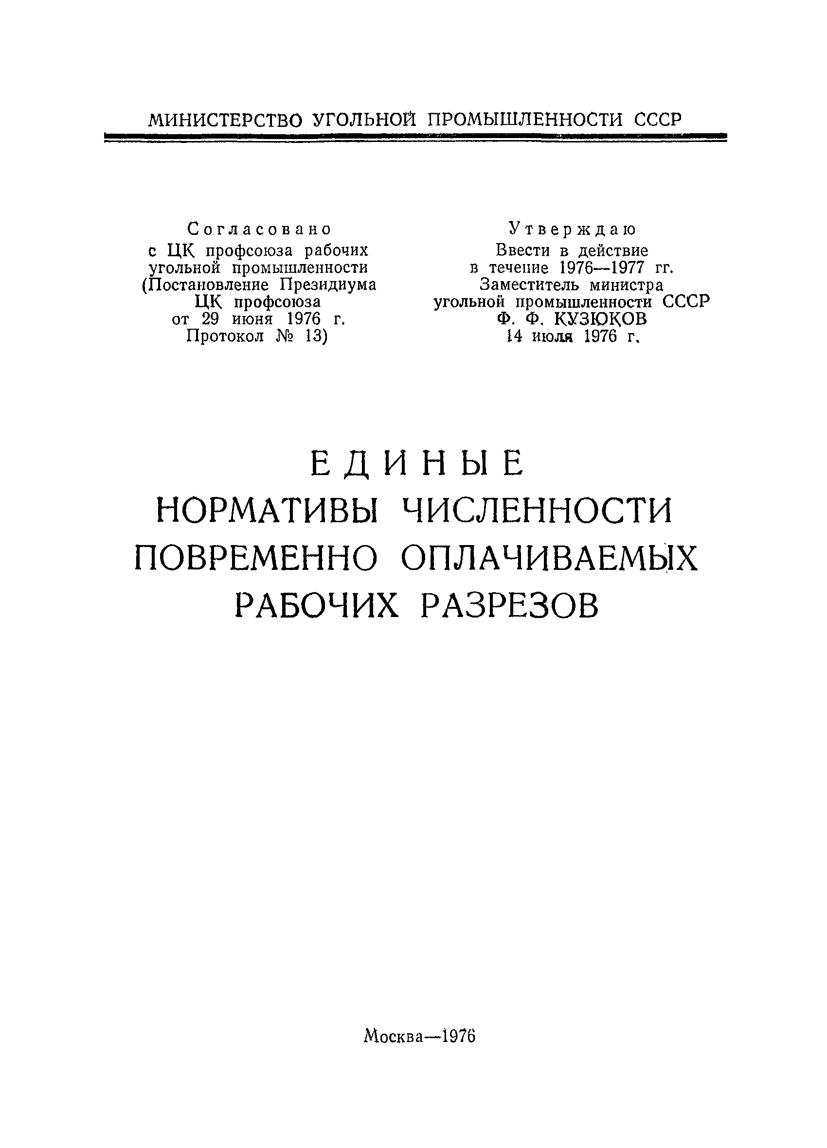 | | Принят: | 29.06.1976 ЦК профсоюза рабочих угольной промышленности (13)