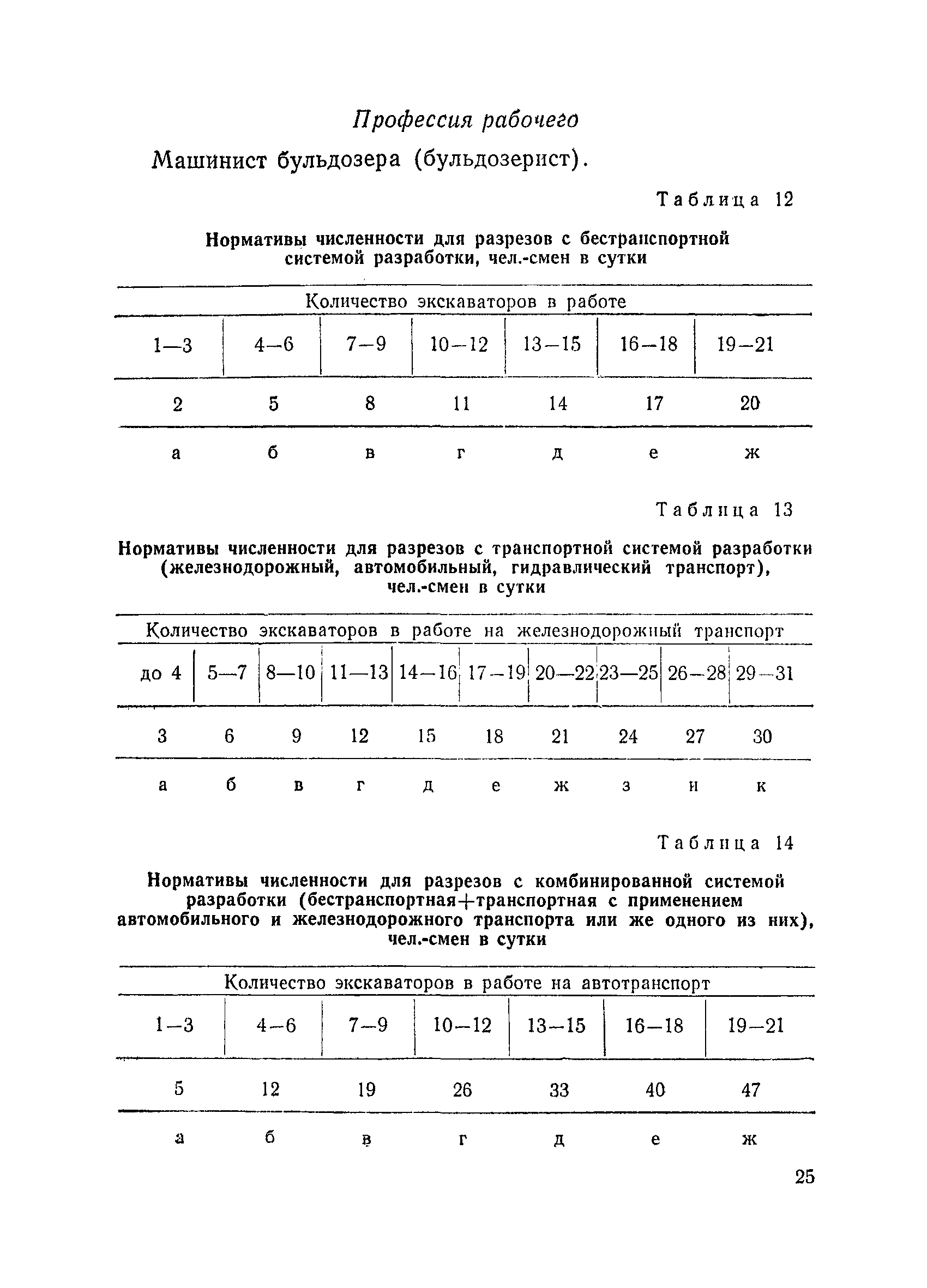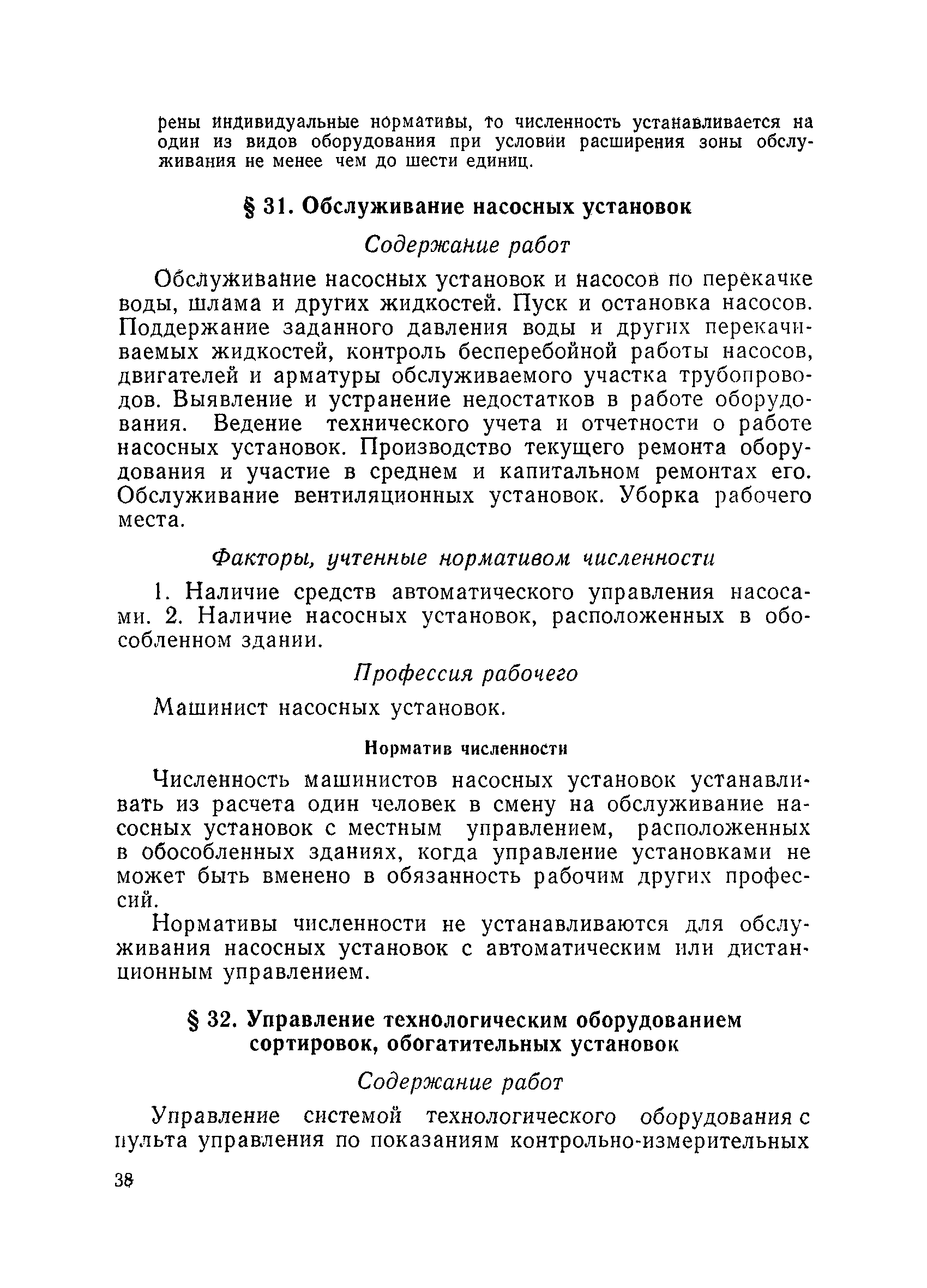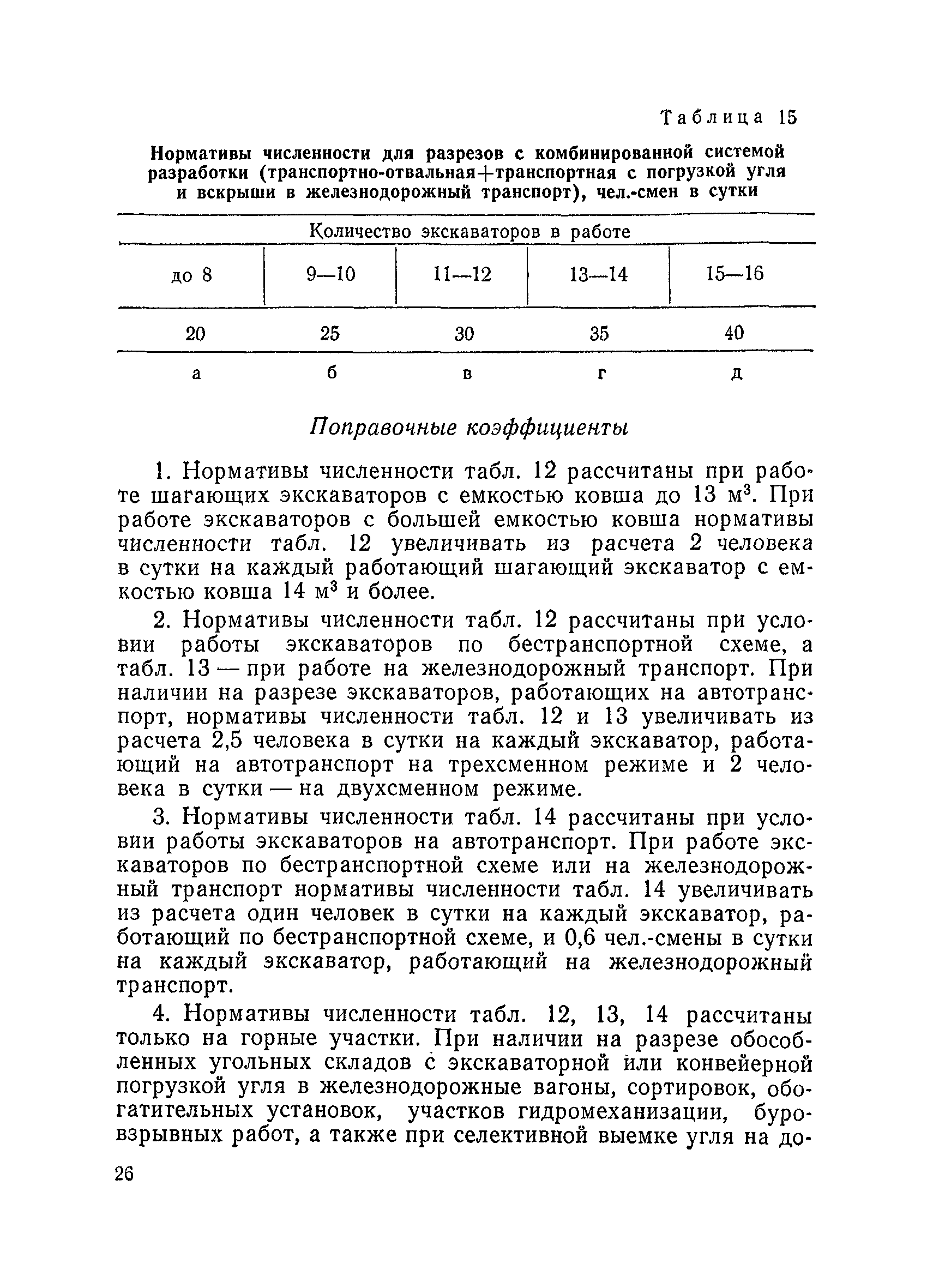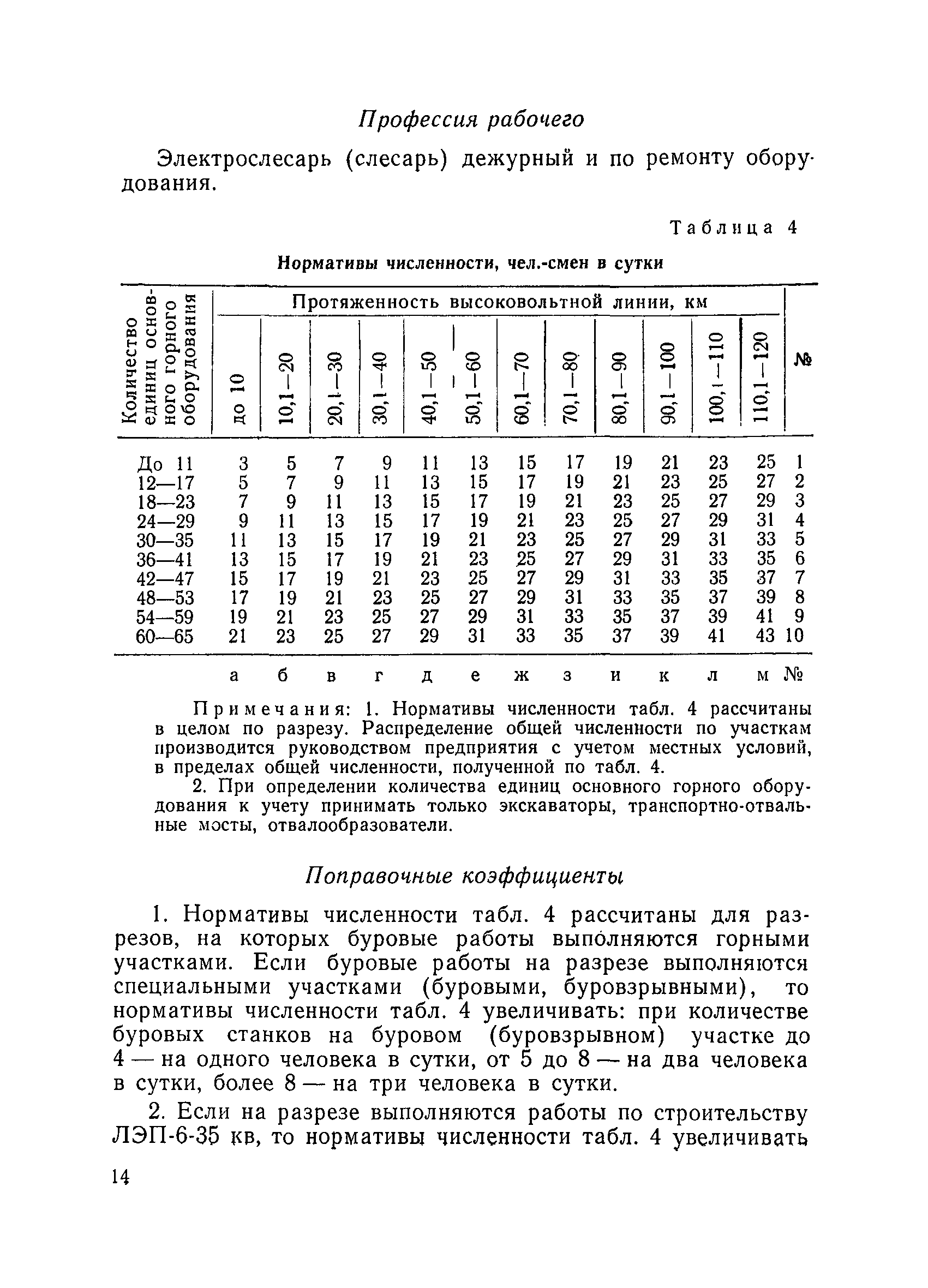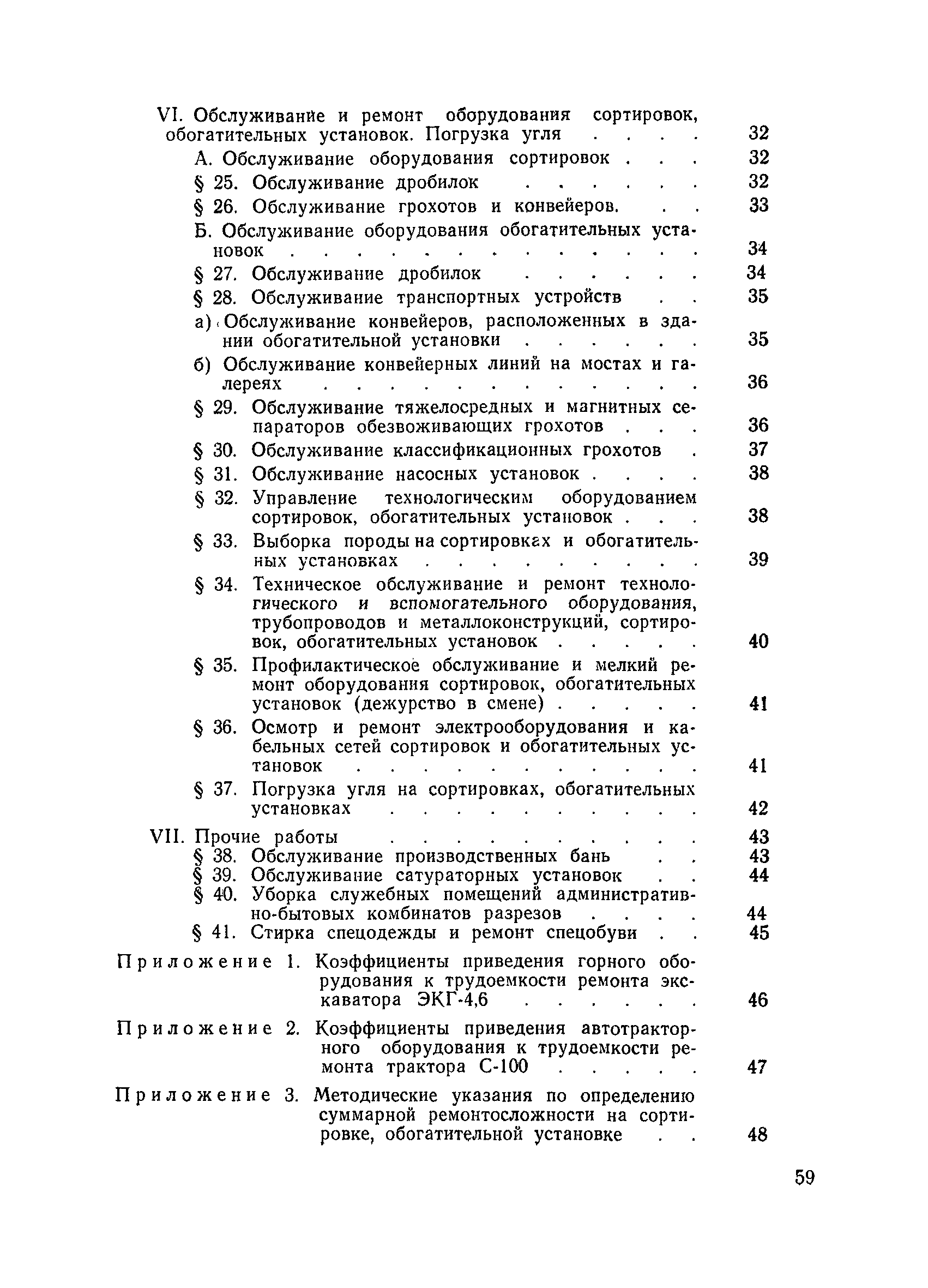Единые нормативы численности повременно оплачиваемых рабочих разрезов| Статус: | не действует | | Название рус.: | Единые нормативы численности повременно оплачиваемых рабочих разрезов | | Дата добавления в базу: | 01.01.2018 | | Дата актуализации: | 01.01.2021 | | Область применения: | Единые нормативы численности сборника являются обязательными для применения на разрезах Министерства угольной промышленности СССР и предназначены для планирования численности повременно оплачиваемых рабочих и установления доплат рабочим за совмещение профессий, расширение зон обслуживания или увеличение объема выполняемых работ. | | Оглавление: | Общая часть Нормативная часть I Производство и обслуживание взрывных работ § 1. Взрывные работы § 2. Работы по доставке (подноске) взрывчатых материалов § 3. Работы в складах взрывчатых материалов II Работы на горных и отвальных участках . . . § 4. Передвижка конвейеров § 5. Выгрузка породы на отвалах § 6. Обработка транспортных сосудов веществами от намерзания и налипания § 7. Вспомогательные работы на участках § 8. Электросварочные работы III Энергомеханическая служба в разрезе и на поверхности, такелажные работы § 9. Осмотр и ремонт электрооборудования, монтаж, демонтаж линий электропередач горного участка § 10. Ремонт и монтаж бурового, экскаваторного и конвейерного оборудования § 11. Ремонт, монтаж, демонтаж оборудования водоотлива § 12. Работы в электромеханических мастерских § 13. Ремонт автотракторного оборудования § 14. Обслуживание производственных котельных § 15. Обслуживание бойлерной § 16. Доставка оборудования и материалов IV Управление машинами и механизмами § 17. Управление автогрейдером § 18. Управление бульдозером § 19. Управление трактором § 20. Обслуживание насосных установок V Учет и контроль качества продукции § 21. Учет добычи, вскрыши и браковка угля § 22. Набор и разделка проб угля § 23. Взвешивание грузов § 24. Замер горных работ VI Обслуживание и ремонт оборудования сортировок, обогатительных установок. Погрузка угля А. Обслуживание оборудования сортировок § 25. Обслуживание дробилок § 26. Обслуживание грохотов и конвейеров Б. Обслуживание оборудования обогатительных установок § 27. Обслуживание дробилок § 28. Обслуживание транспортных устройств а) Обслуживание конвейеров, расположенных в здании обогатительной установки б) Обслуживание конвейерных линий на мостах и галереях § 29. Обслуживание тяжелосредных и магнитных сепараторов обезвоживающих грохотов § 30. Обслуживание классификационных грохотов § 31. Обслуживание насосных установок § 32. Управление технологическим оборудованием сортировок, обогатительных установок § 33. Выборка породы на сортировках и обогатительных установках § 34. Техническое обслуживание и ремонт технологического и вспомогательного оборудования, трубопроводов и металлоконструкций, сортировок, обогатительных установок § 35. Профилактическое обслуживание и мелкий ремонт оборудования сортировок, обогатительных установок (дежурство в смене) § 36. Осмотр и ремонт электрооборудования и кабельных сетей сортировок и обогатительных установок § 37. Погрузка угля на сортировках, обогатительных установках VII Прочие работы § 38. Обслуживание производственных бань § 39. Обслуживание сатураторных установок § 40. Уборка служебных помещений административно-бытовых комбинатов разрезов § 41. Стирка сп
