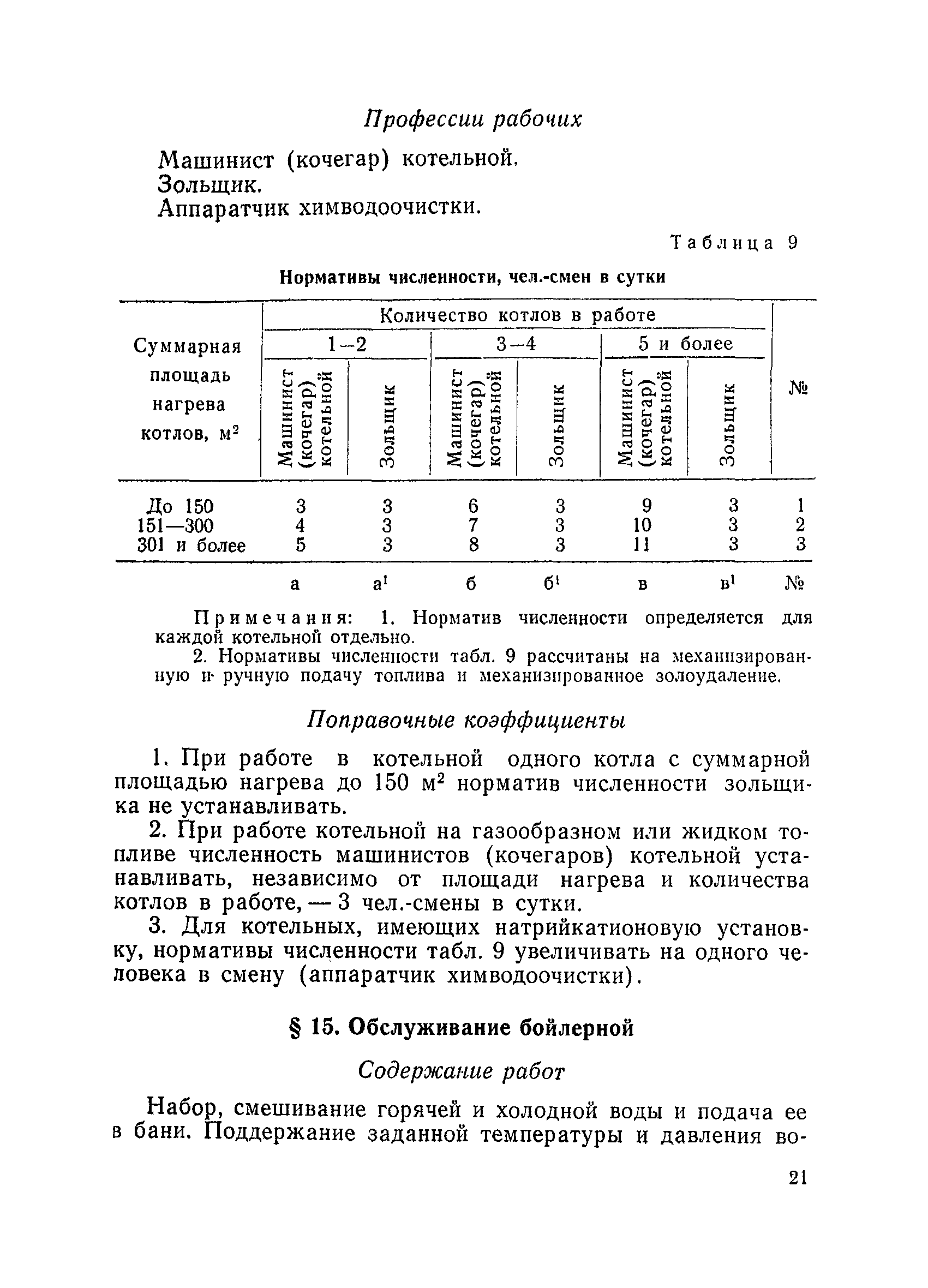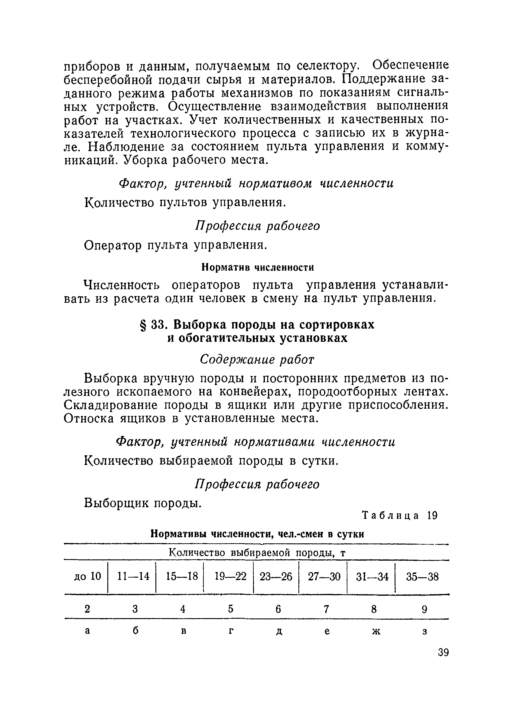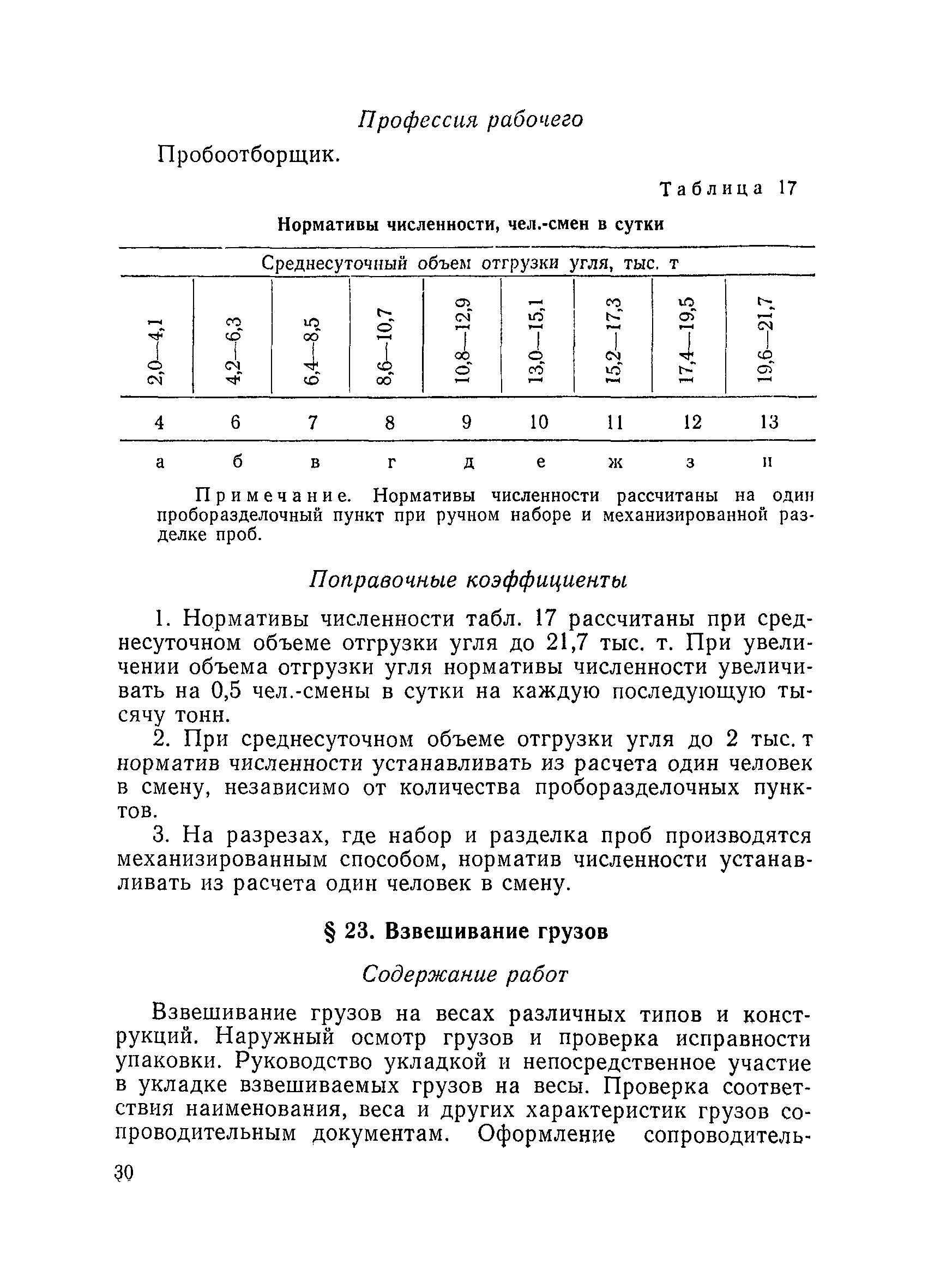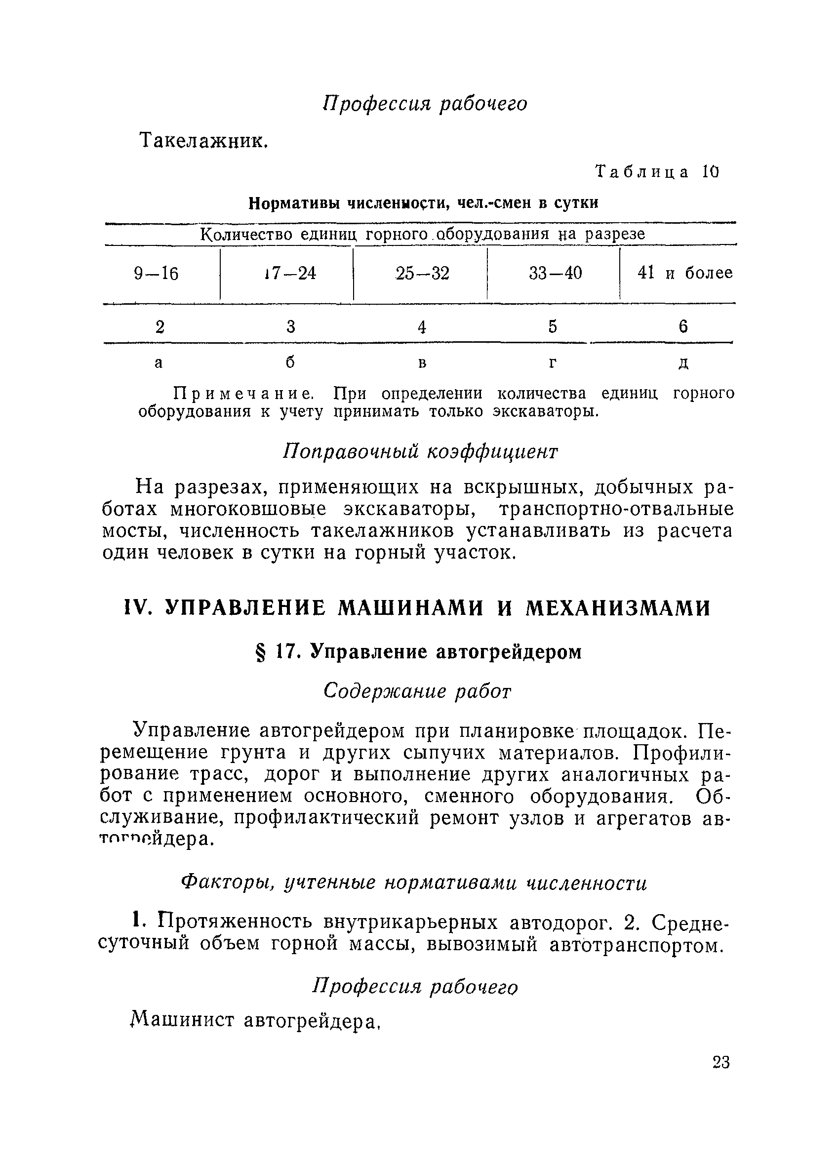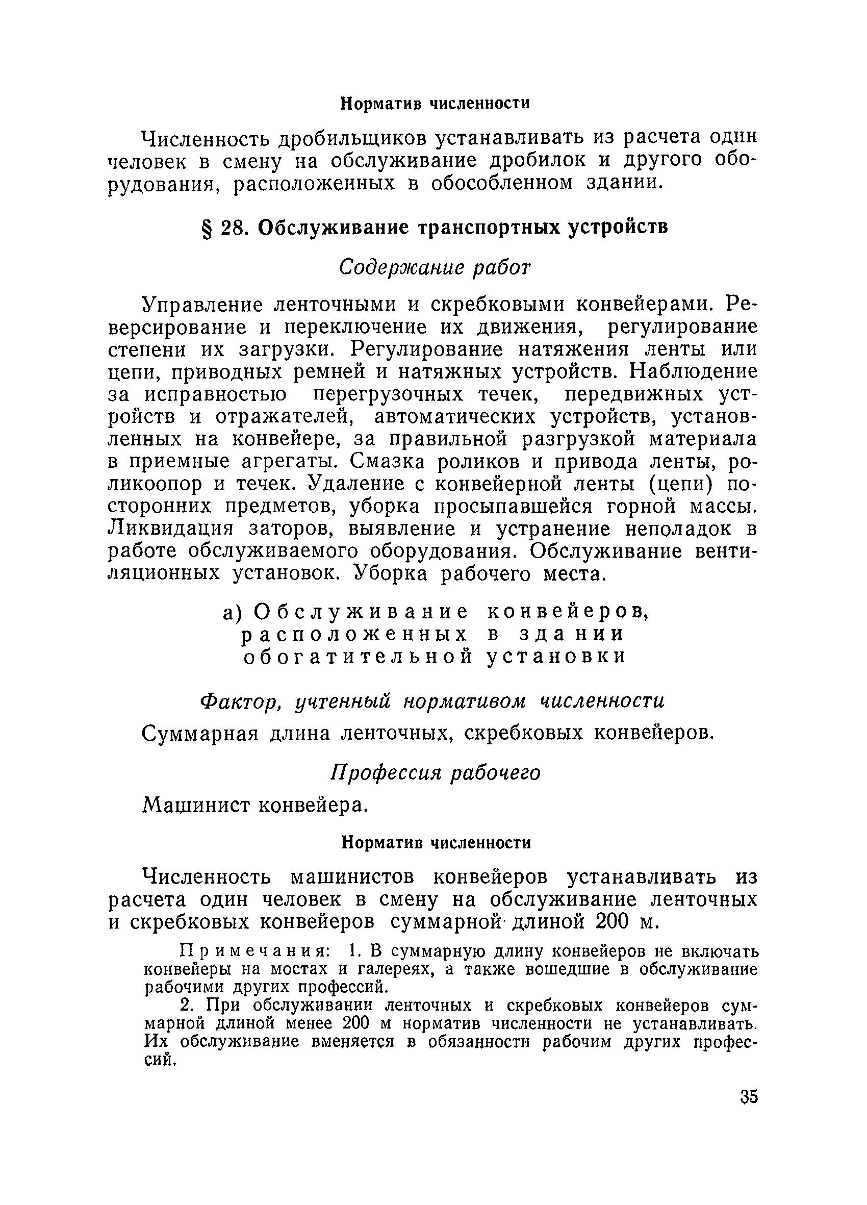 Единые нормативы численности повременно оплачиваемых рабочих разрезов| Статус: | не действует | | Название рус.: | Единые нормативы численности повременно оплачиваемых рабочих разрезов | | Дата добавления в базу: | 01.01.2018 | | Дата актуализации: | 01.01.2021 | | Область применения: | Единые нормативы численности сборника являются обязательными для применения на разрезах Министерства угольной промышленности СССР и предназначены для планирования численности повременно оплачиваемых рабочих и установления доплат рабочим за совмещение профессий, расширение зон обслуживания или увеличение объема выполняемых работ. | | Оглавление: | Общая часть Нормативная часть I Производство и обслуживание взрывных работ § 1. Взрывные работы § 2. Работы по доставке (подноске) взрывчатых материалов § 3. Работы в складах взрывчатых материалов II Работы на горных и отвальных участках . . . § 4. Передвижка конвейеров § 5. Выгрузка породы на отвалах § 6. Обработка транспортных сосудов веществами от намерзания и налипания § 7. Вспомогательные работы на участках § 8. Электросварочные работы III Энергомеханическая служба в разрезе и на поверхности, такелажные работы § 9. Осмотр и ремонт электрооборудования, монтаж, демонтаж линий электропередач горного участка § 10. Ремонт и монтаж бурового, экскаваторного и конвейерного оборудования § 11. Ремонт, монтаж, демонтаж оборудования водоотлива § 12. Работы в электромеханических мастерских § 13. Ремонт автотракторного оборудования § 14. Обслуживание производственных котельных § 15. Обслуживание бойлерной § 16. Доставка оборудования и материалов IV Управление машинами и механизмами § 17. Управление автогрейдером § 18. Управление бульдозером § 19. Управление трактором § 20. Обслуживание насосных установок V Учет и контроль качества продукции § 21. Учет добычи, вскрыши и браковка угля § 22. Набор и разделка проб угля § 23. Взвешивание грузов § 24. Замер горных работ VI Обслуживание и ремонт оборудования сортировок, обогатительных установок. Погрузка угля А. Обслуживание оборудования сортировок § 25. Обслуживание дробилок § 26. Обслуживание грохотов и конвейеров Б. Обслуживание оборудования обогатительных установок § 27. Обслуживание дробилок § 28. Обслуживание транспортных устройств а) Обслуживание конвейеров, расположенных в здании обогатительной установки б) Обслуживание конвейерных линий на мостах и галереях § 29. Обслуживание тяжелосредных и магнитных сепараторов обезвоживающих грохотов § 30. Обслуживание классификационных грохотов § 31. Обслуживание насосных установок § 32. Управление технологическим оборудованием сортировок, обогатительных установок § 33. Выборка породы на сортировках и обогатительных установках § 34. Техническое обслуживание и ремонт технологического и вспомогательного оборудования, трубопроводов и металлоконструкций, сортировок, обогатительных установок § 35. Профилактическое обслуживание и мелкий ремонт оборудования сортировок, обогатительных установок (дежурство в смене) § 36. Осмотр и ремонт электрооборудования и кабельных сетей сортировок и обогатительных установок § 37. Погрузка угля на сортировках, обогатительных установках VII Прочие работы § 38. Обслуживание производственных бань § 39. Обслуживание сатураторных установок § 40. Уборка служебных помещений административно-бытовых комбинатов разрезов § 41. Стирка сп