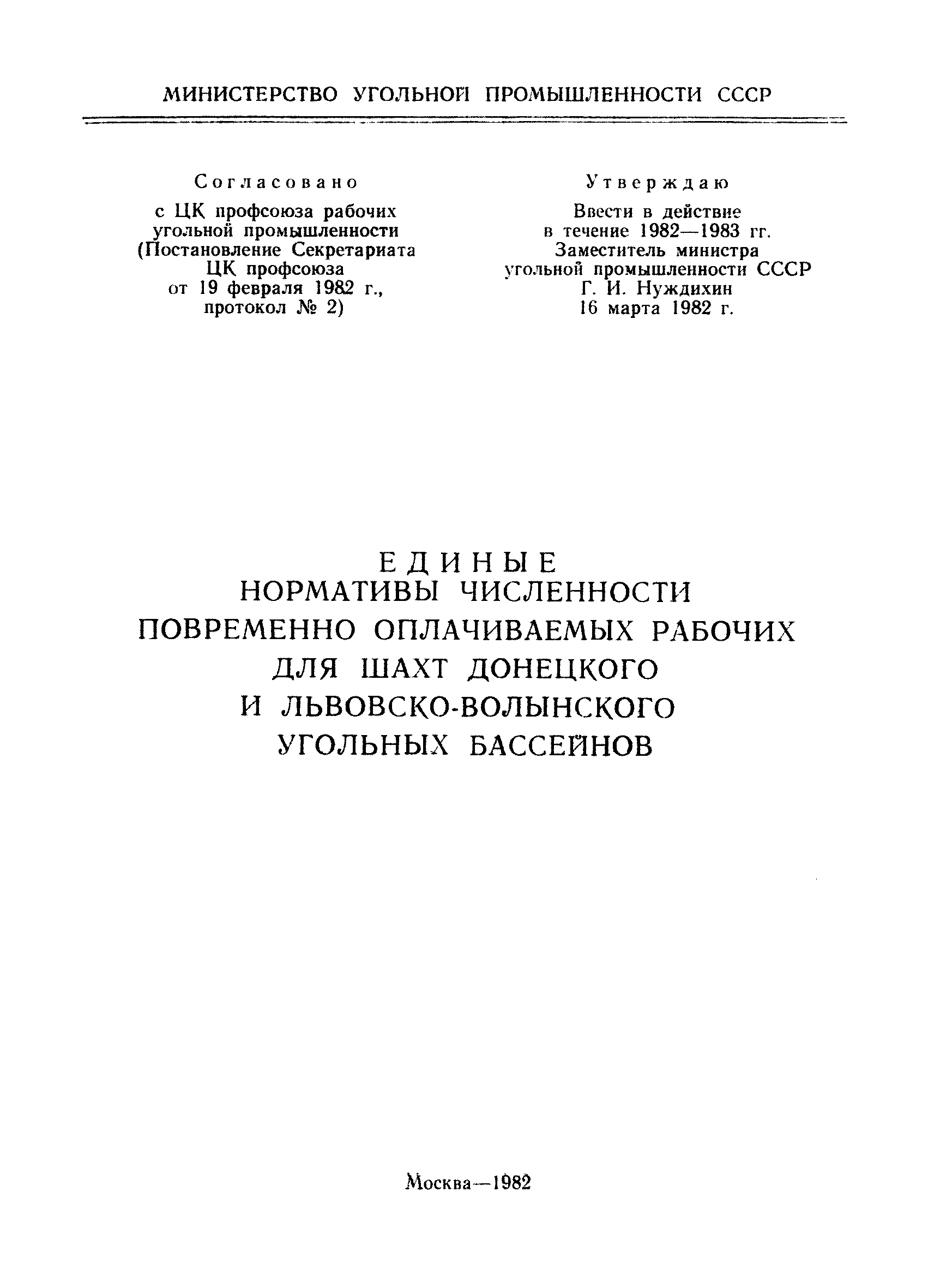 | | Принят: | 19.02.1982 ЦК профсоюза рабочих угольной промышленности (2)